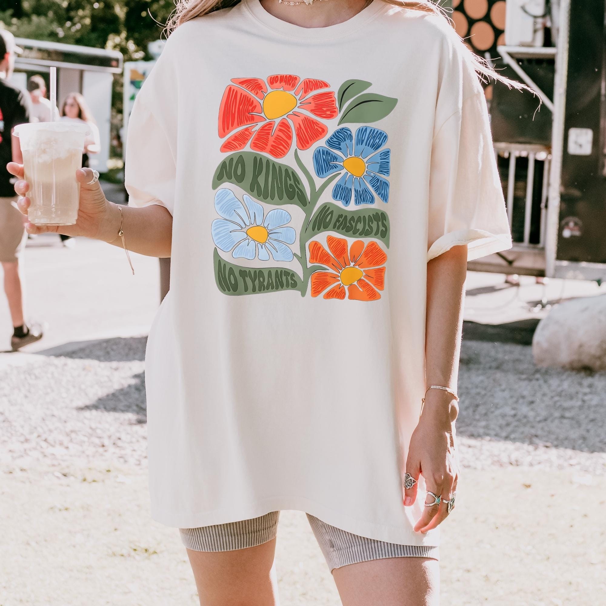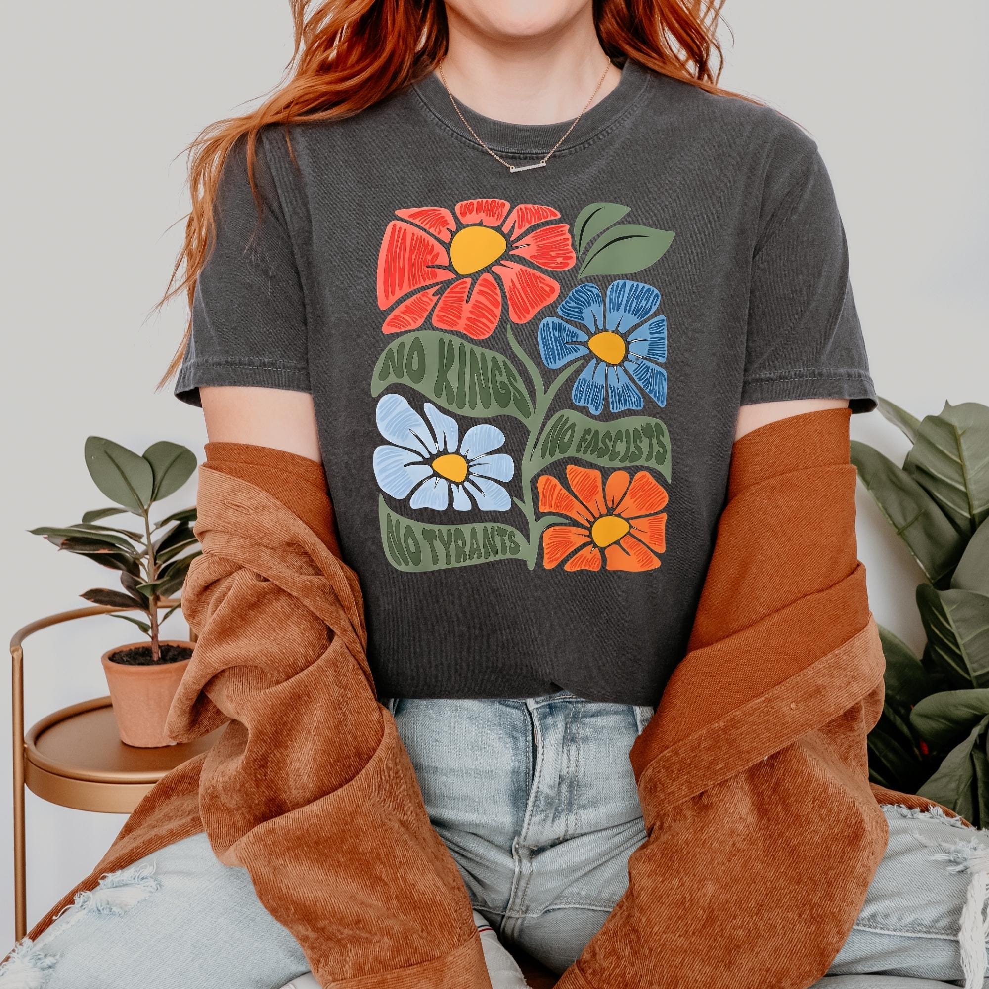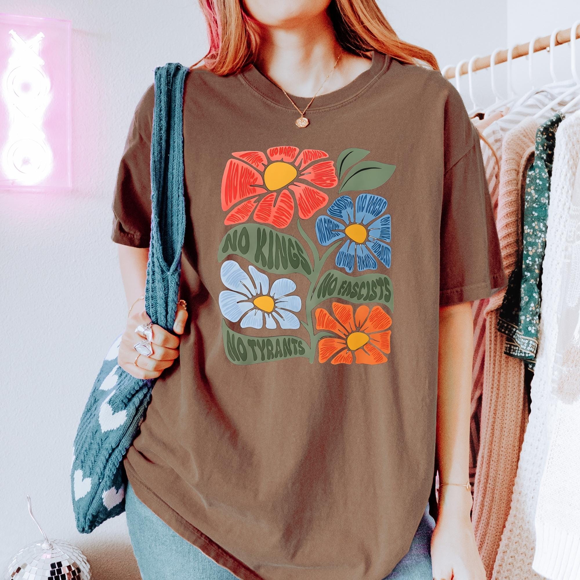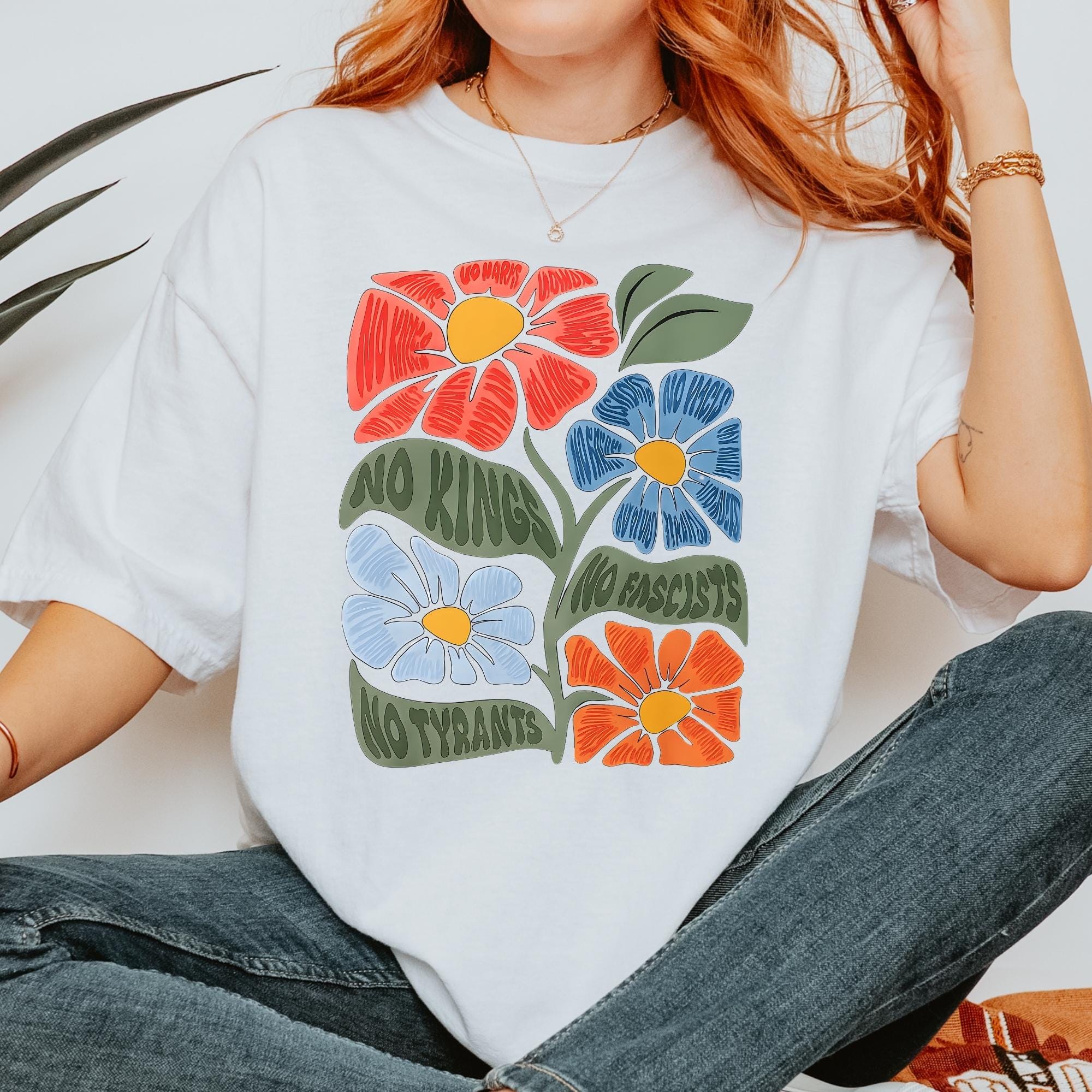 No Kings No Fascists Comfort Colors Shirt, Floral T-Shirt, Anti Trump Protest Tee, Colorful Resistance Sweatshirt, Feminist Political Shirt