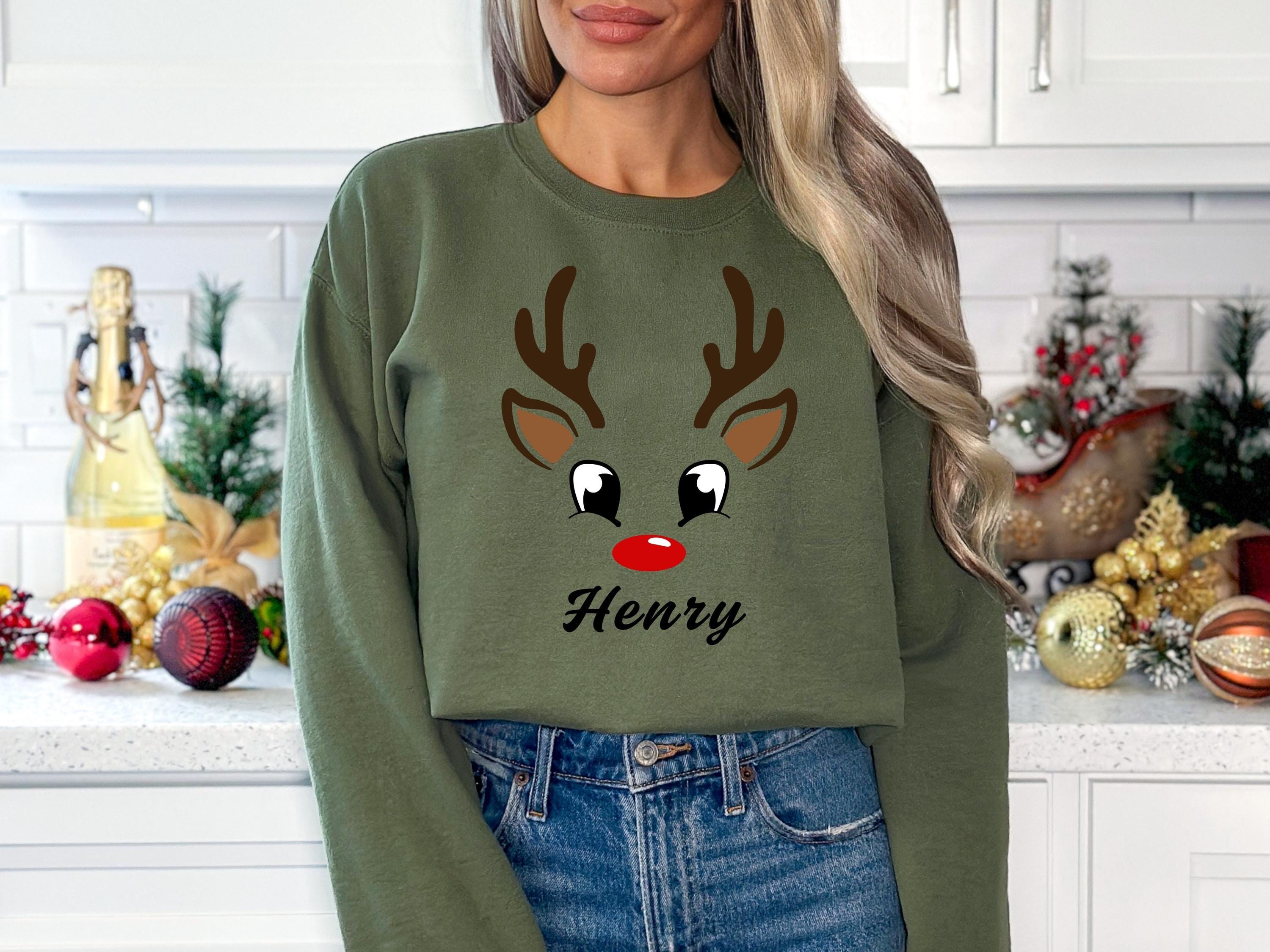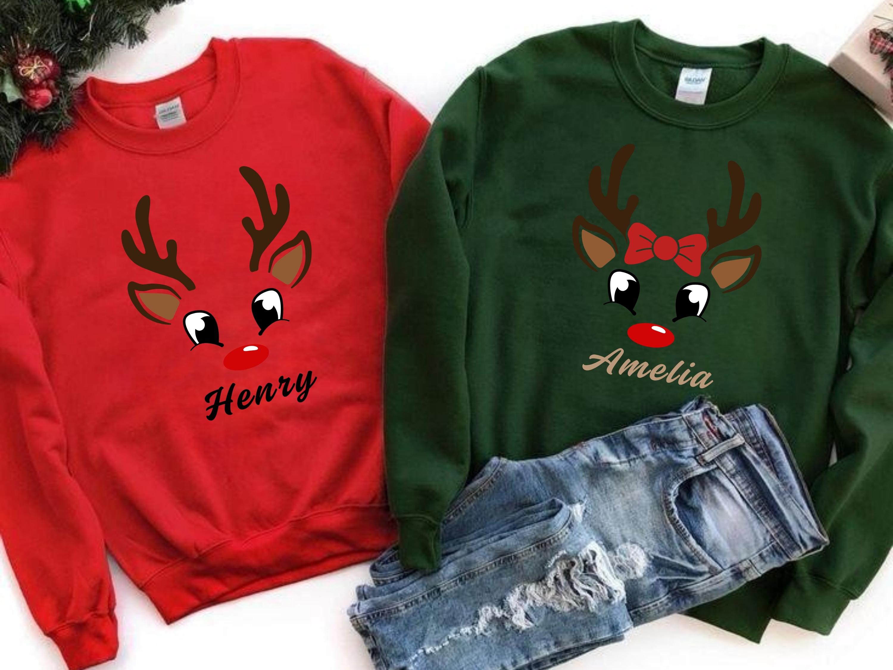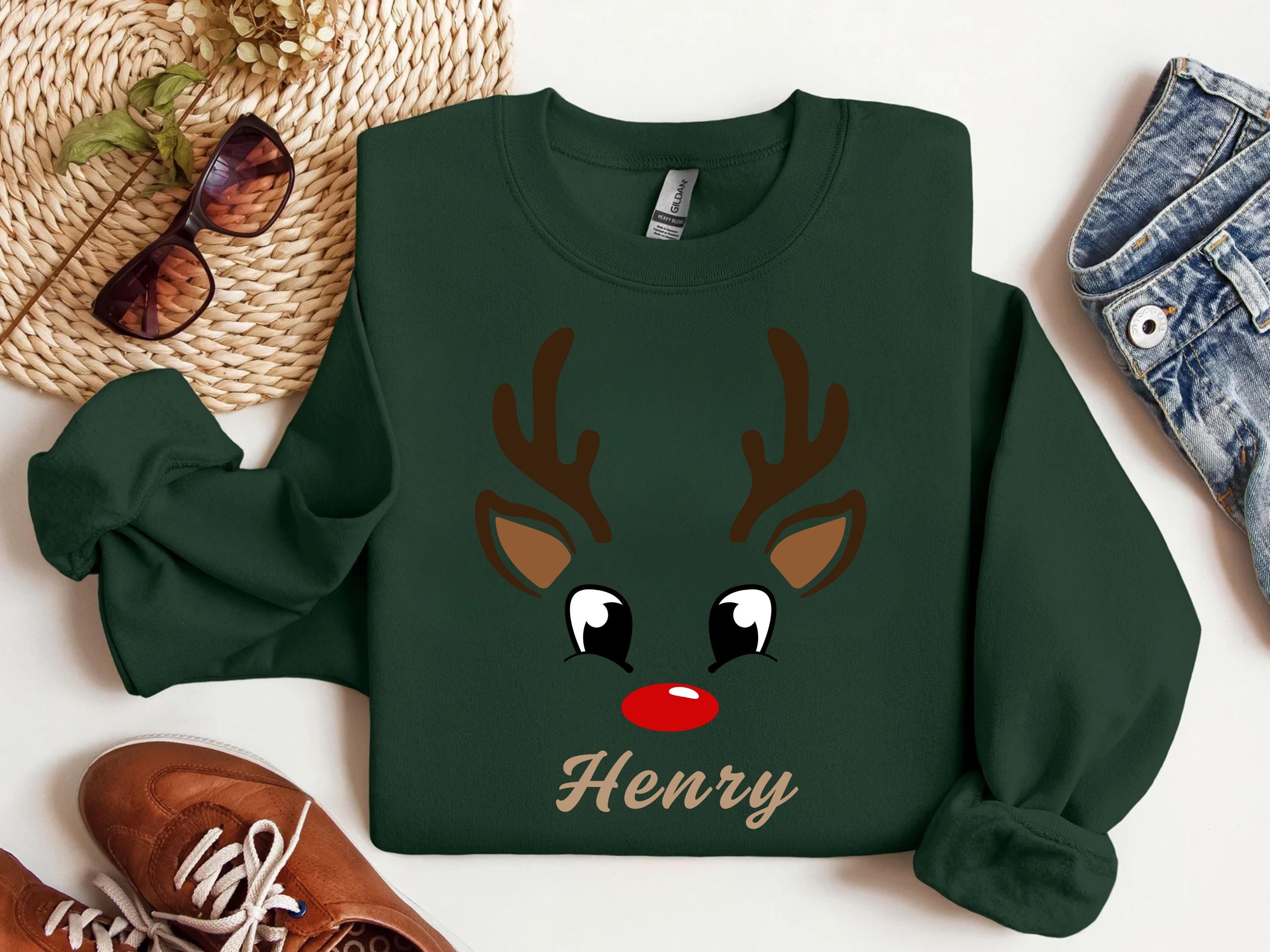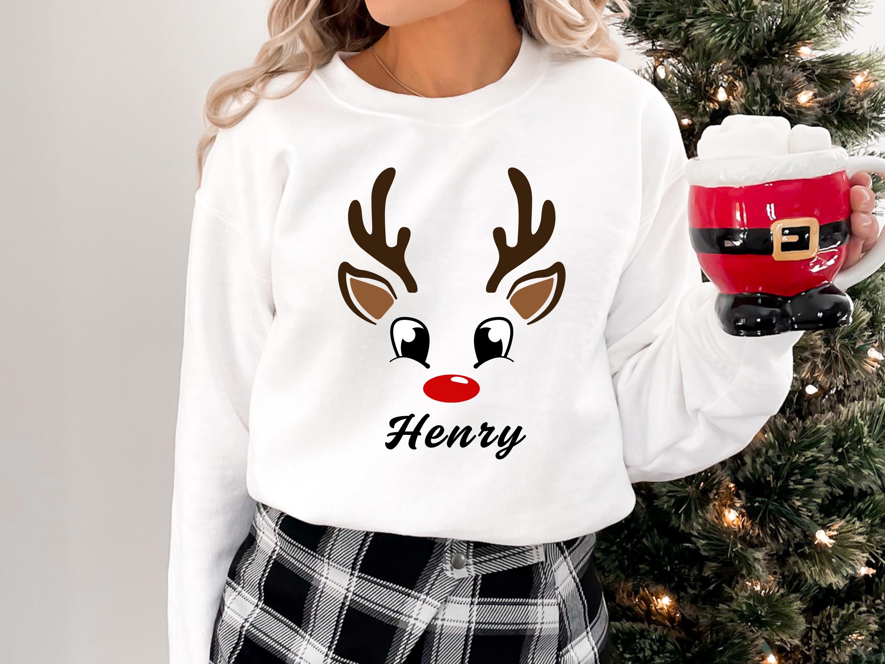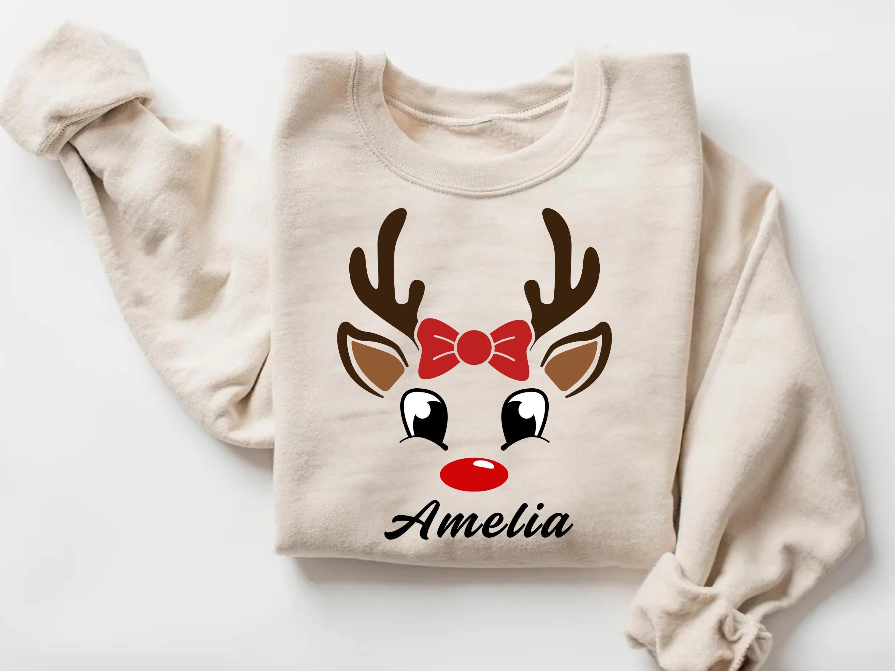Custom Reindeer Toddler Sweatshirt, Custom Name Kids T-Shirt, Custom Christmas Shirt, Christmas Reindeer Shirt, Christmas Toddler Shirt
