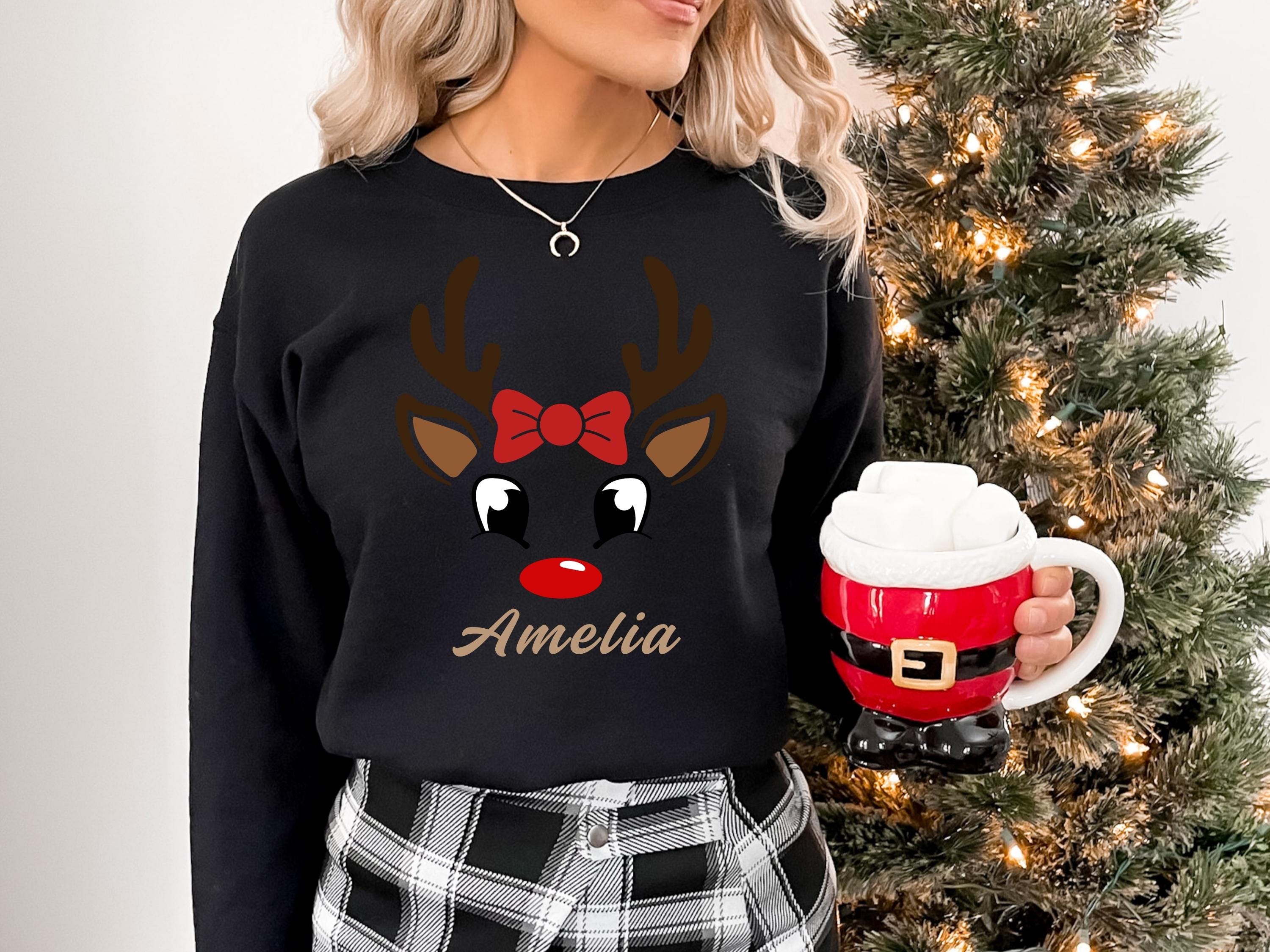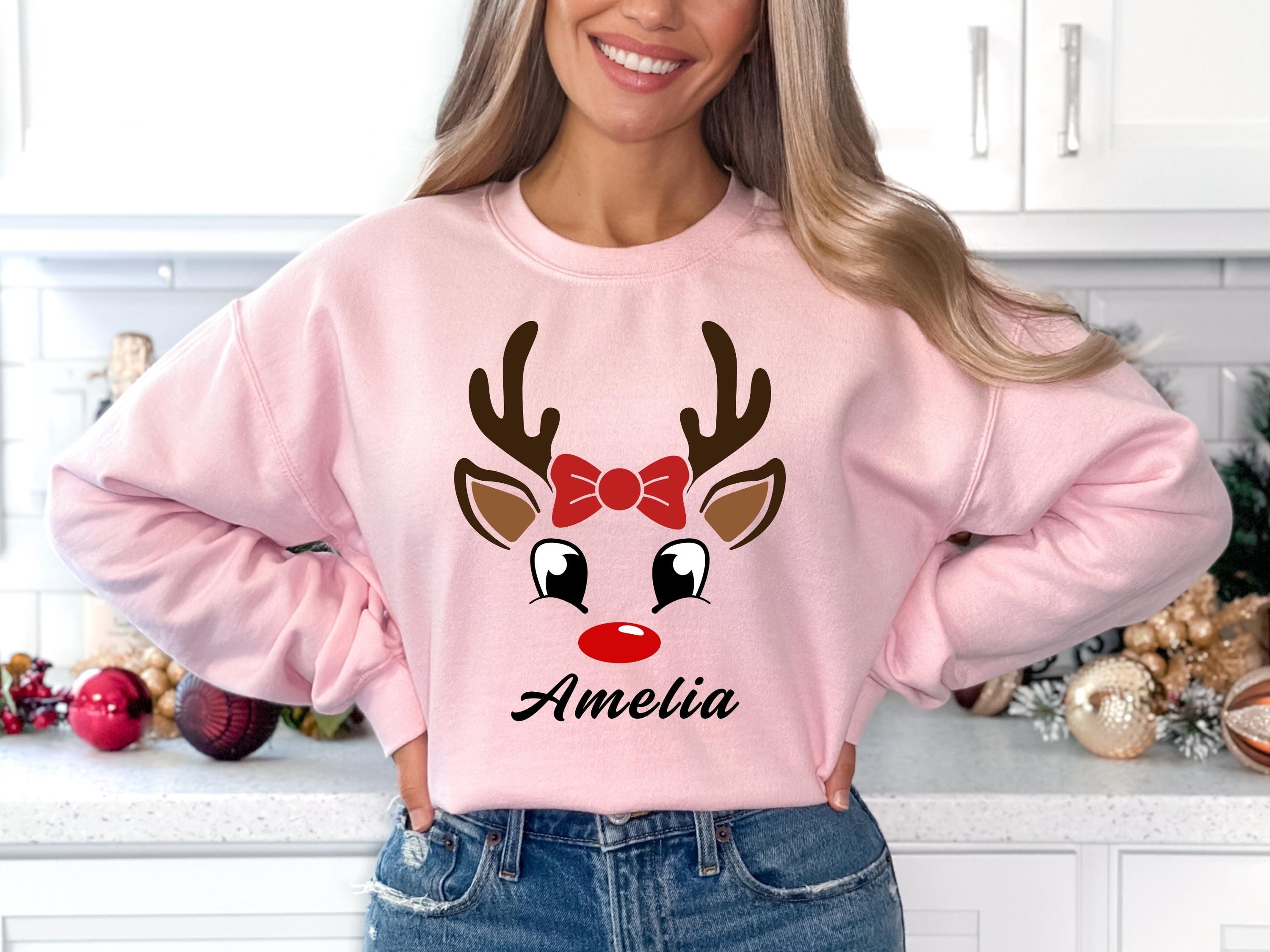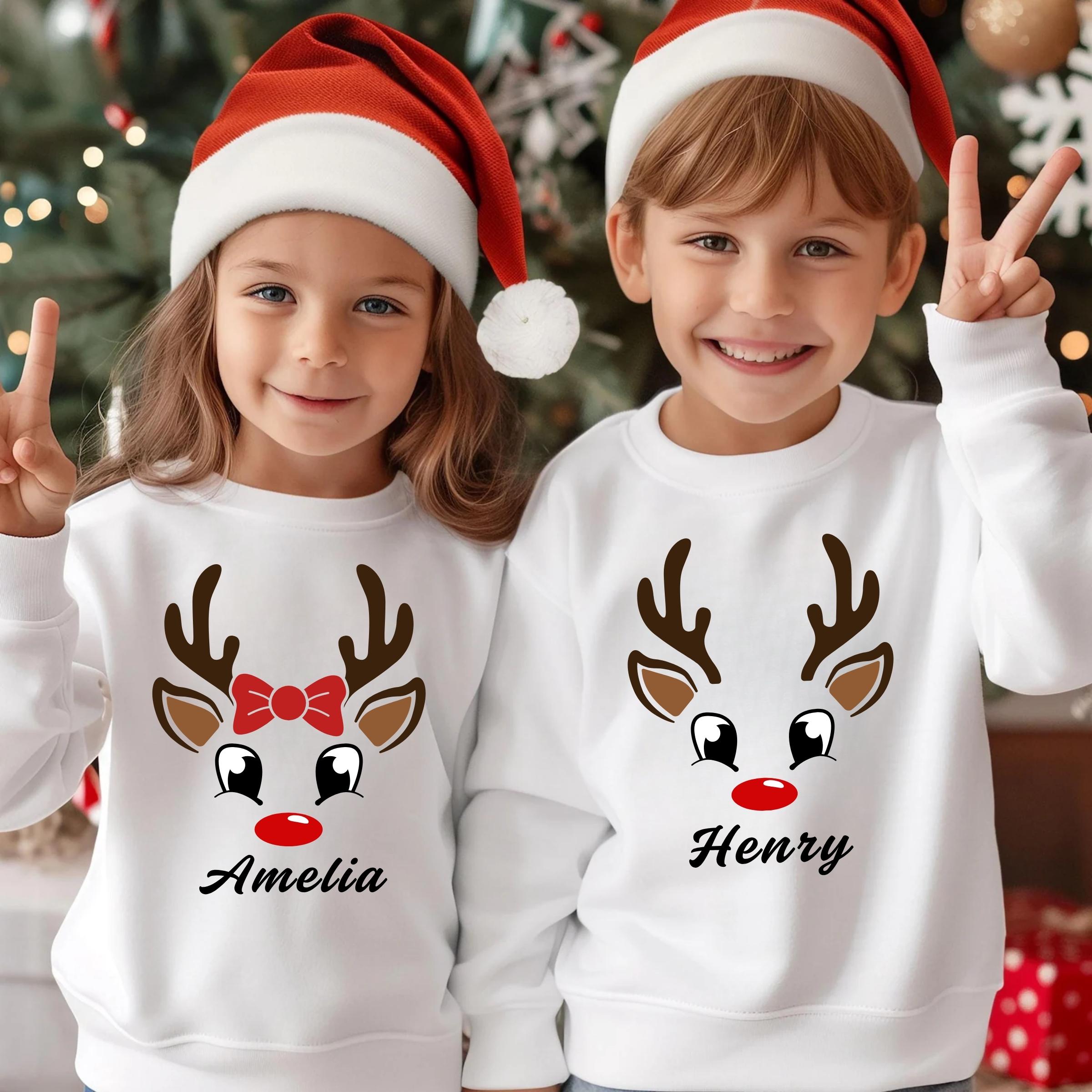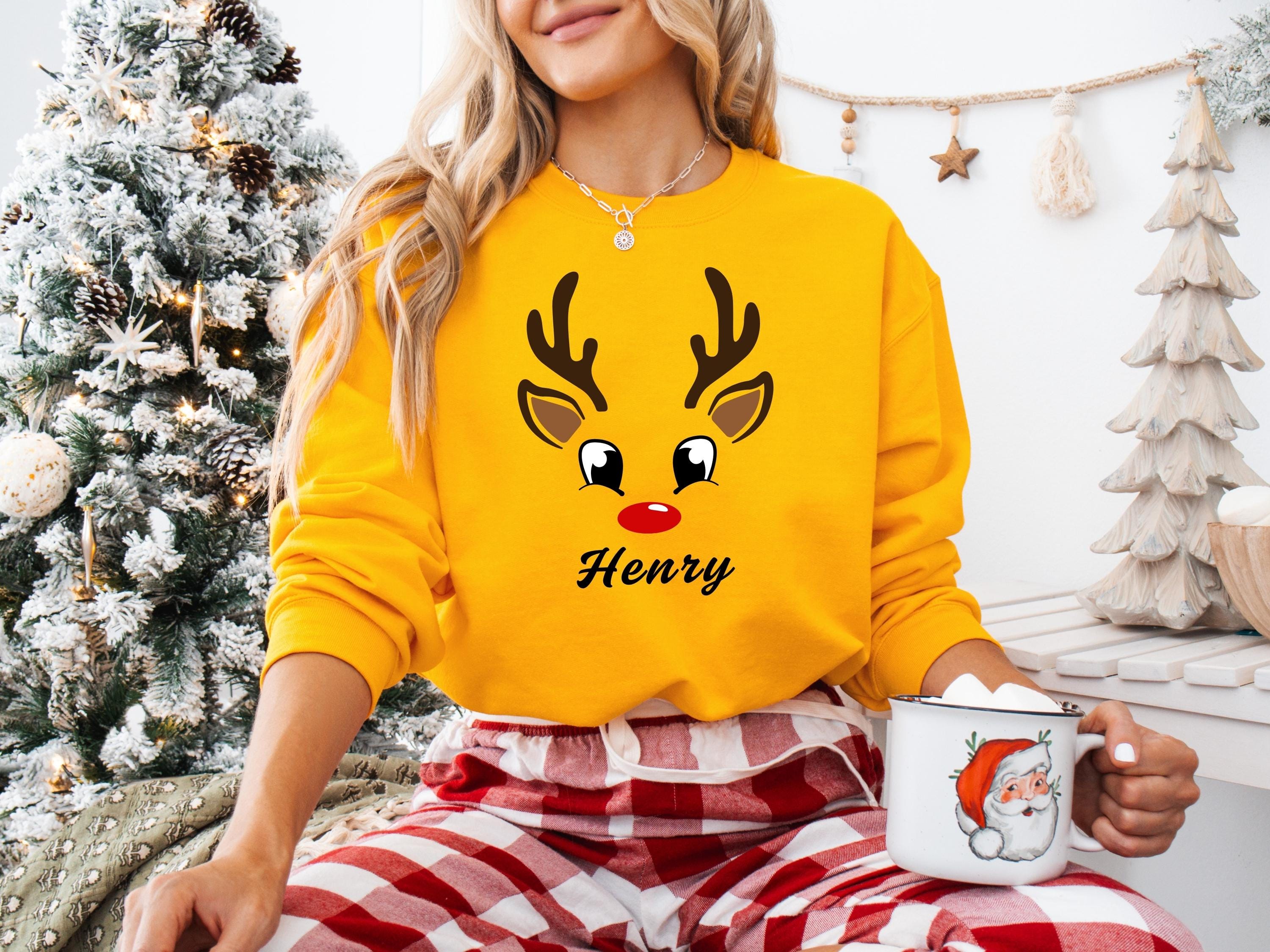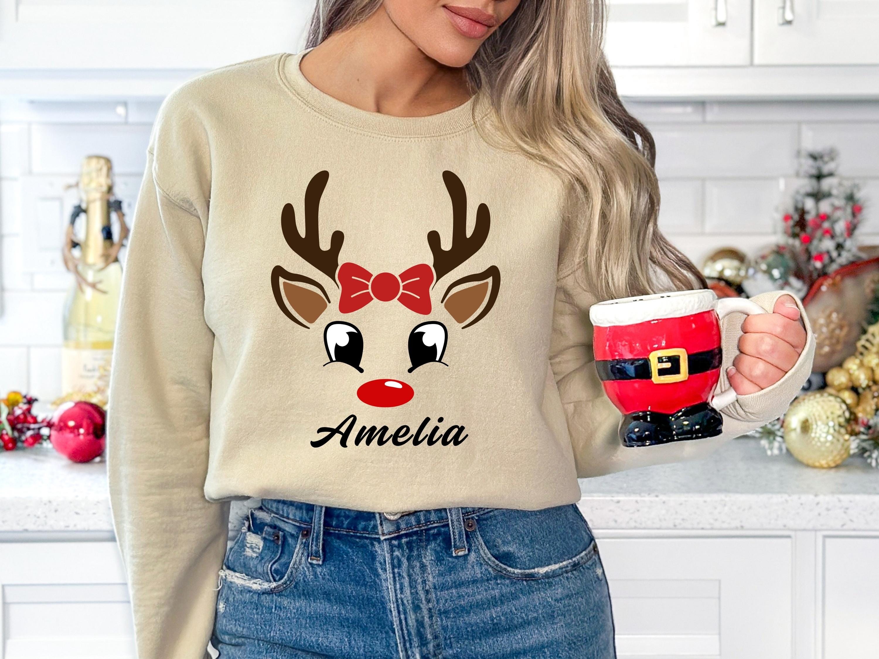 Custom Reindeer Toddler Sweatshirt, Custom Name Kids T-Shirt, Custom Christmas Shirt, Christmas Reindeer Shirt, Christmas Toddler Shirt