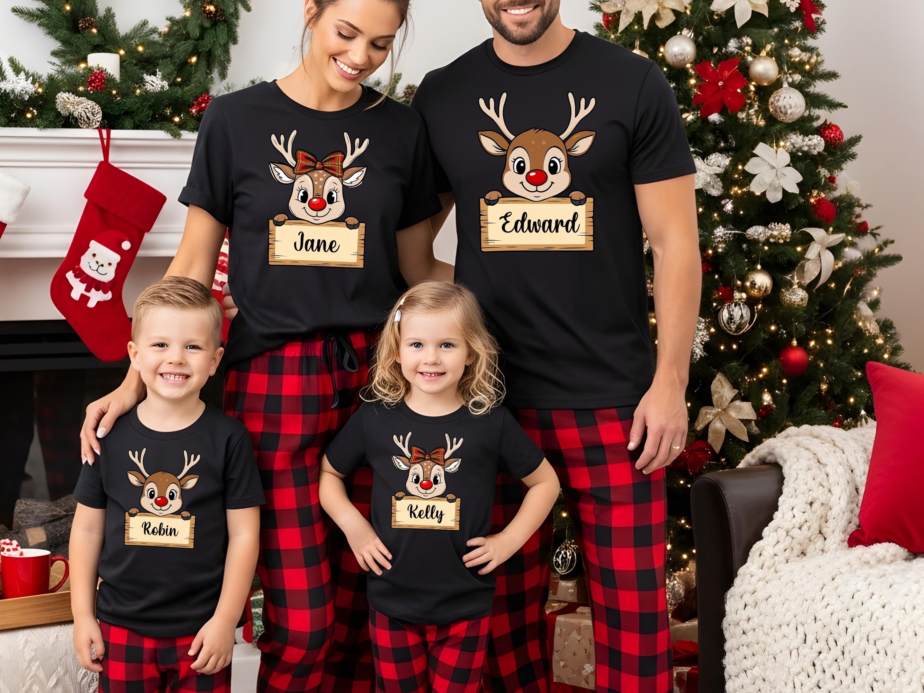 Reindeer Family Christmas Shirt,Personalized Christmas Family Shirt,Custom Family Name Tee,Funny Christmas Tee,Gift For Christmas,Xmas Gift