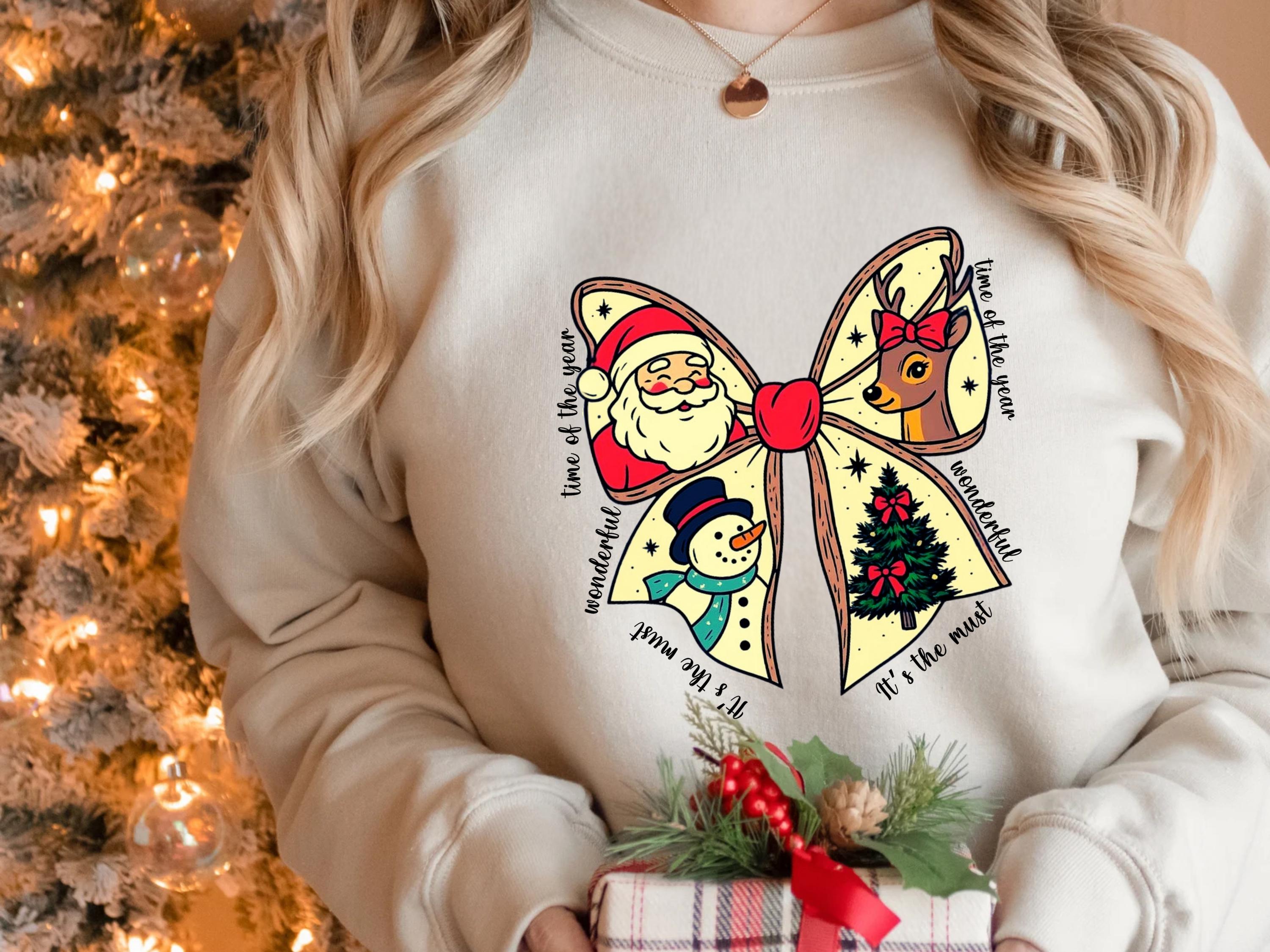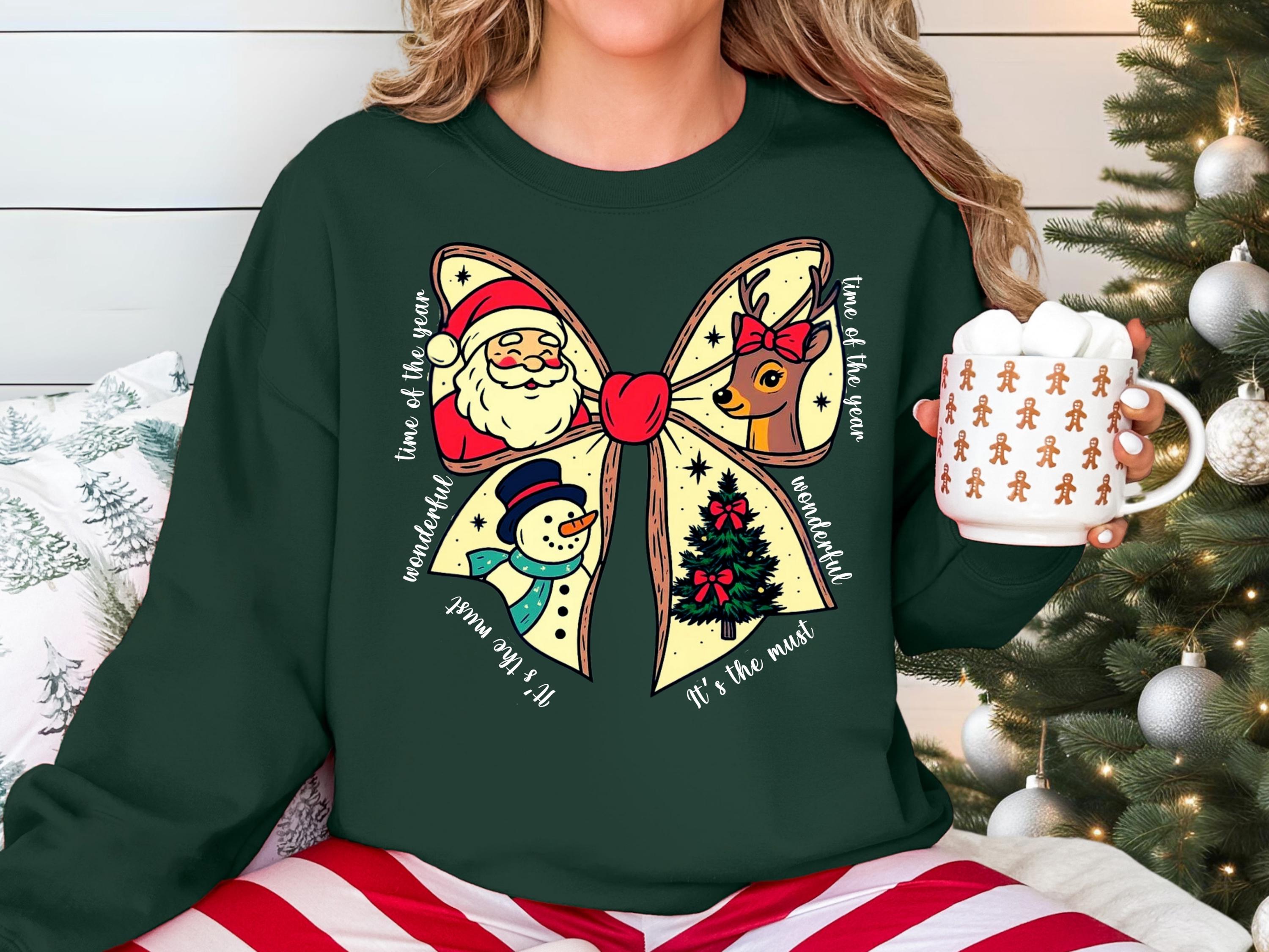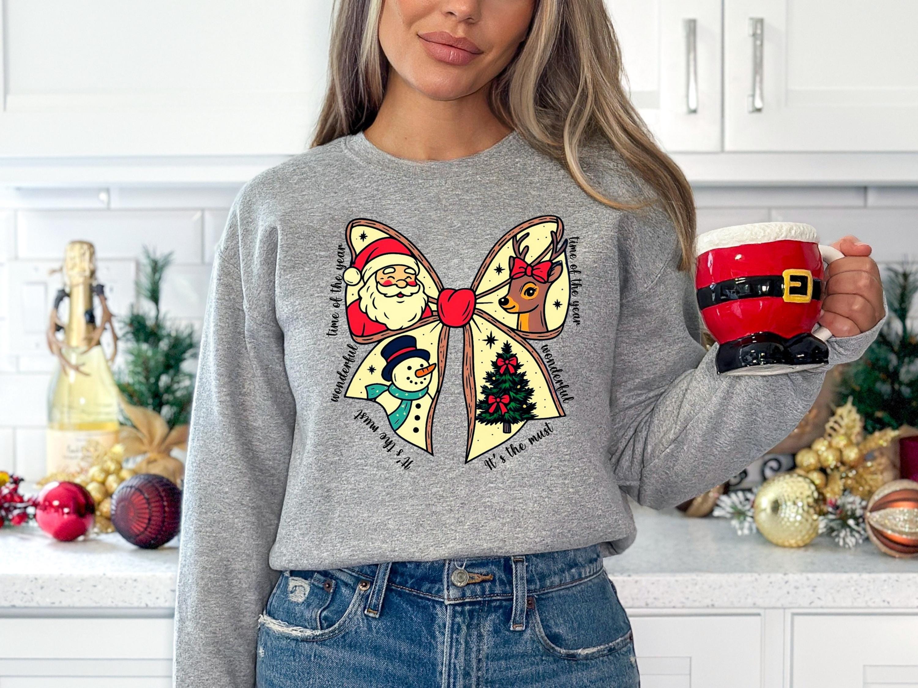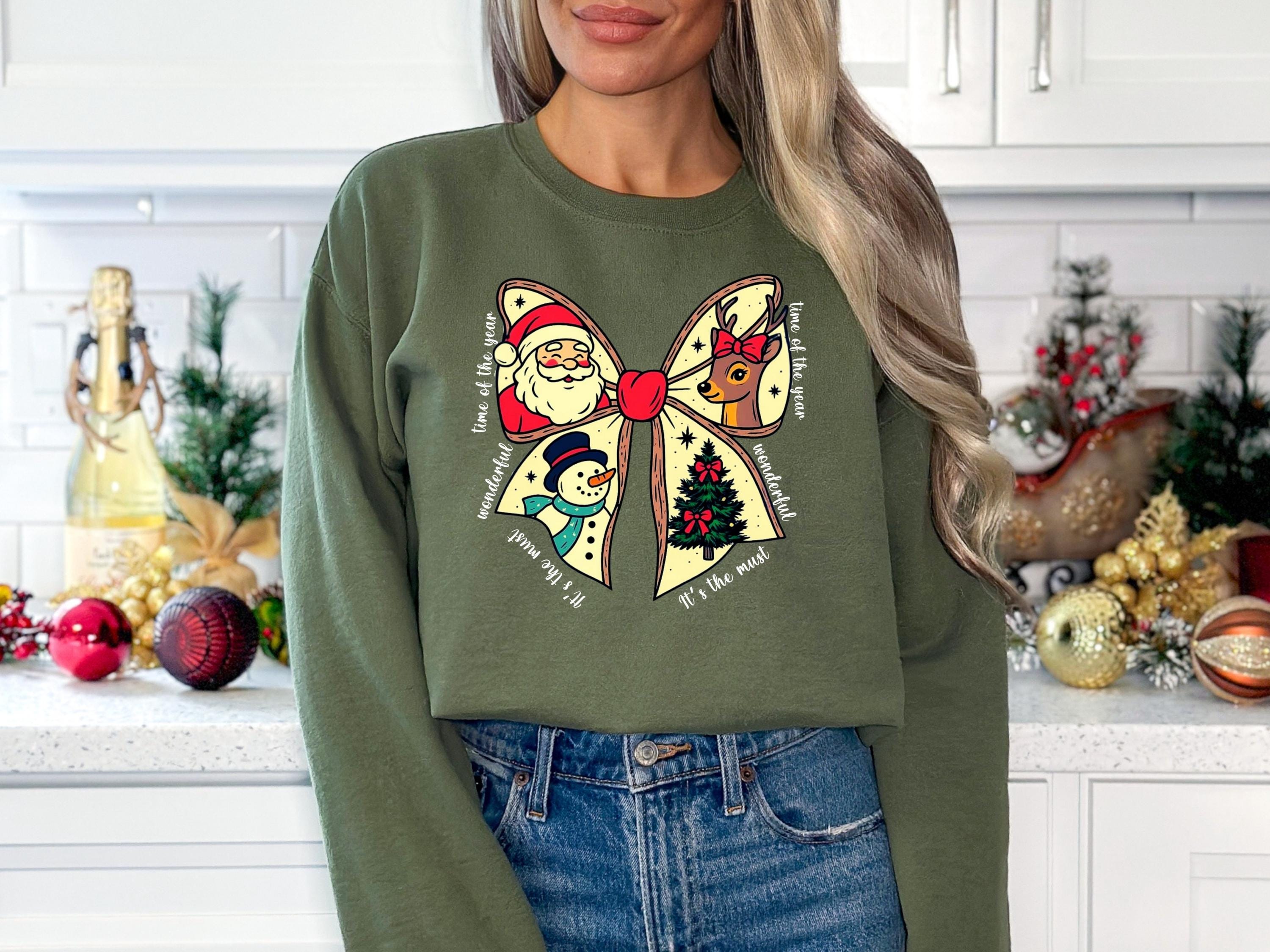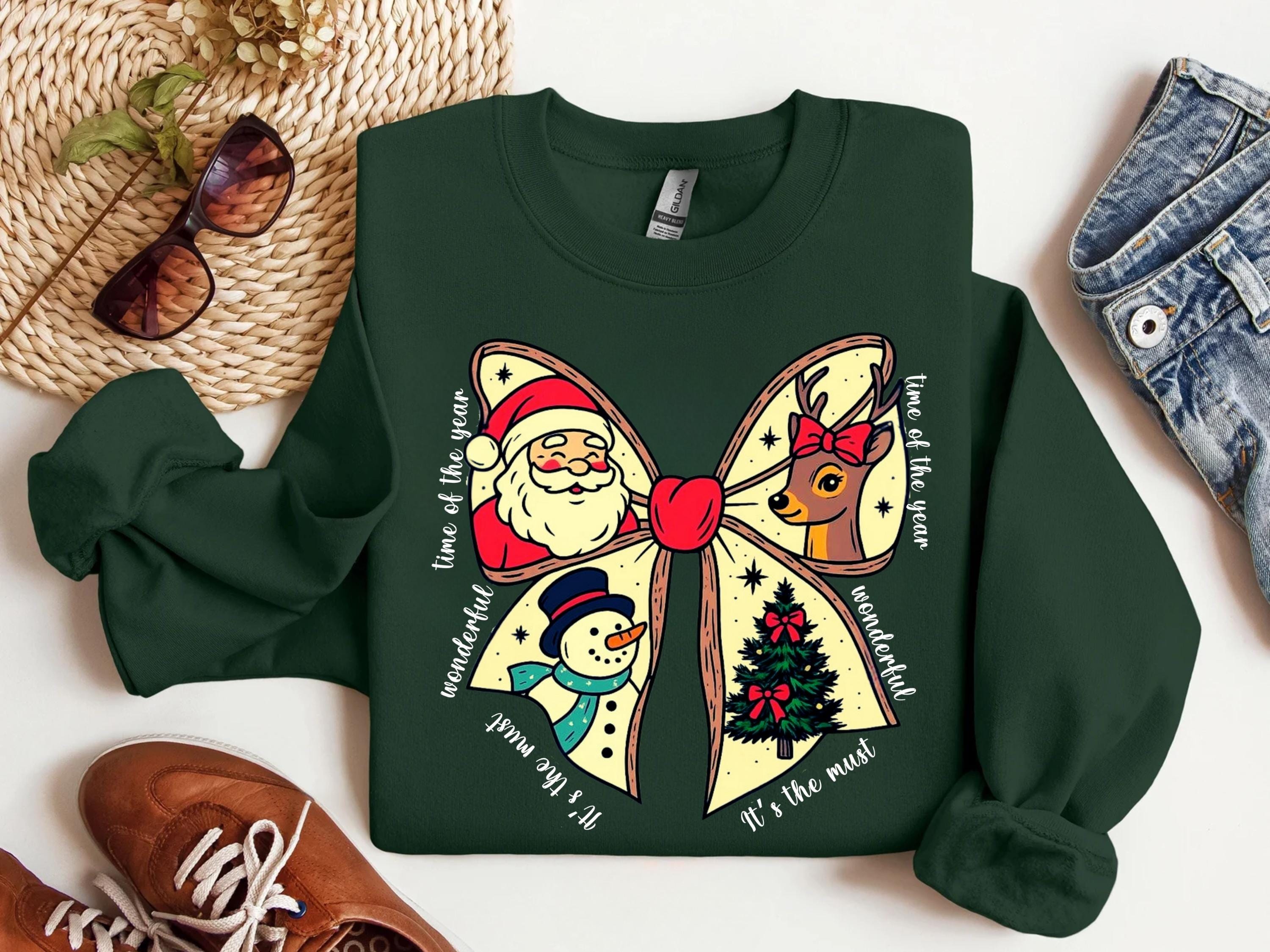 Vintage Retro Santa Christmas Shirt, Cute Snowman & Reindeer with Coquette Bow β Perfect Holiday Gift, Most Wonderful Time of the Year