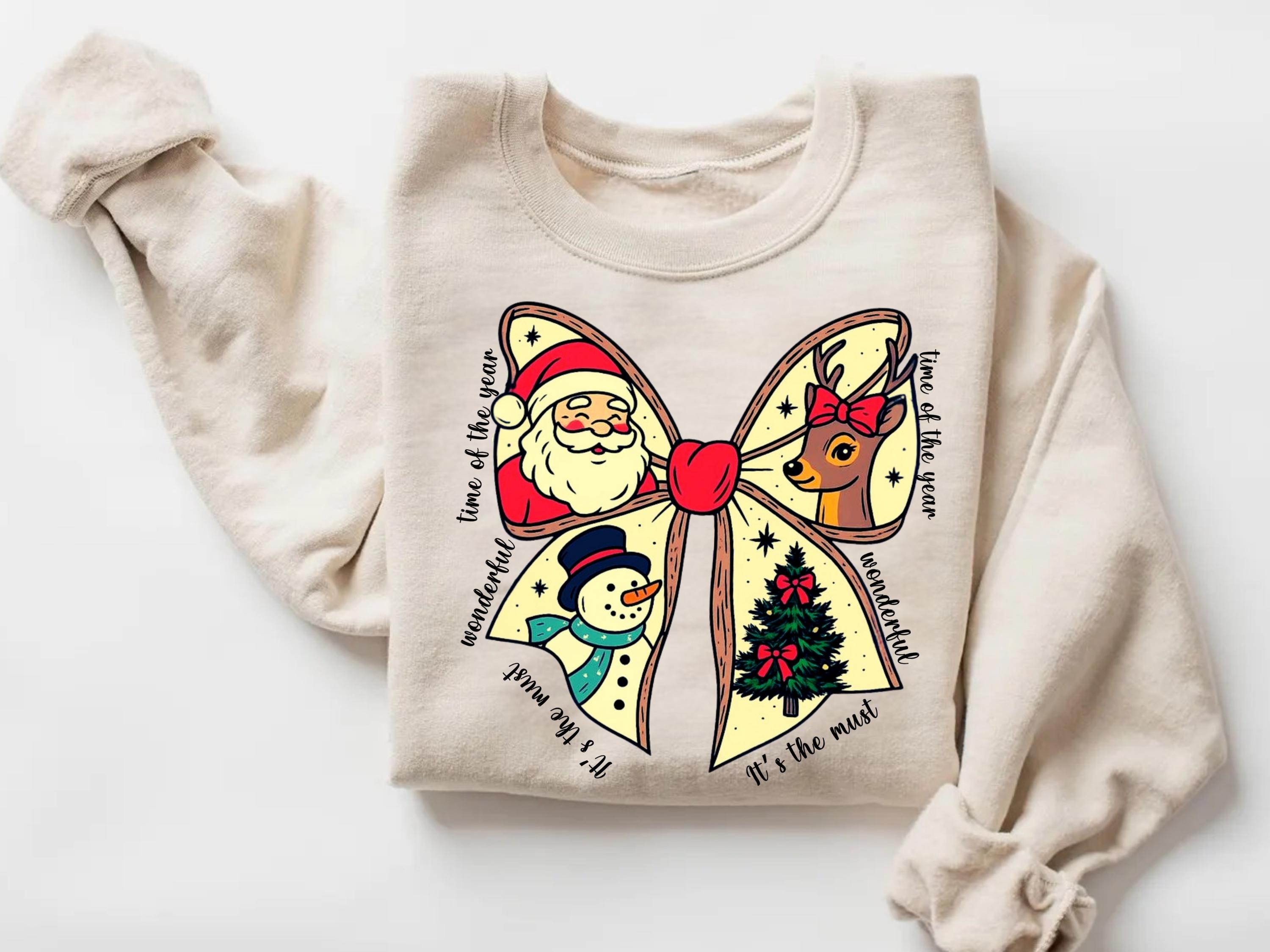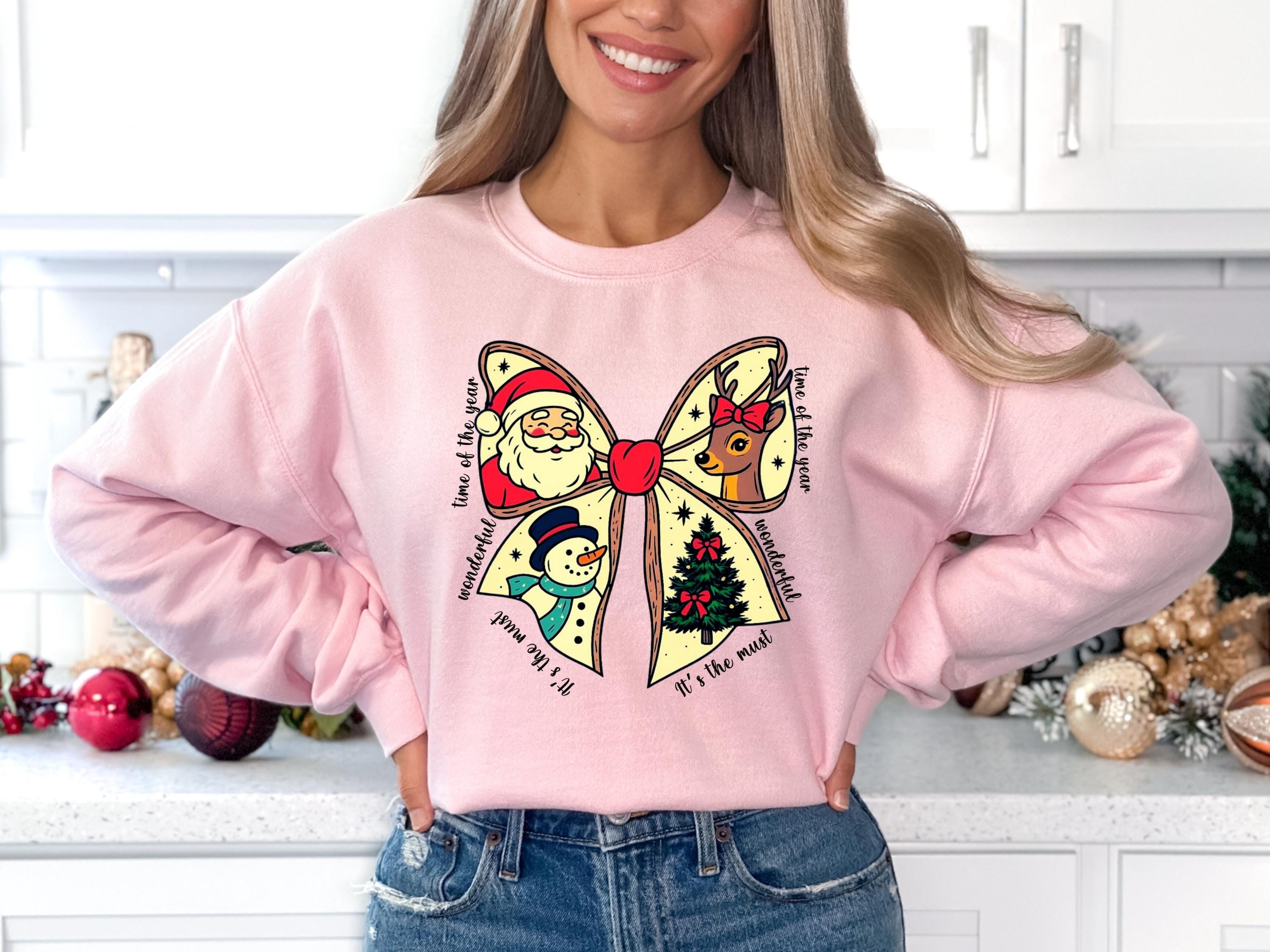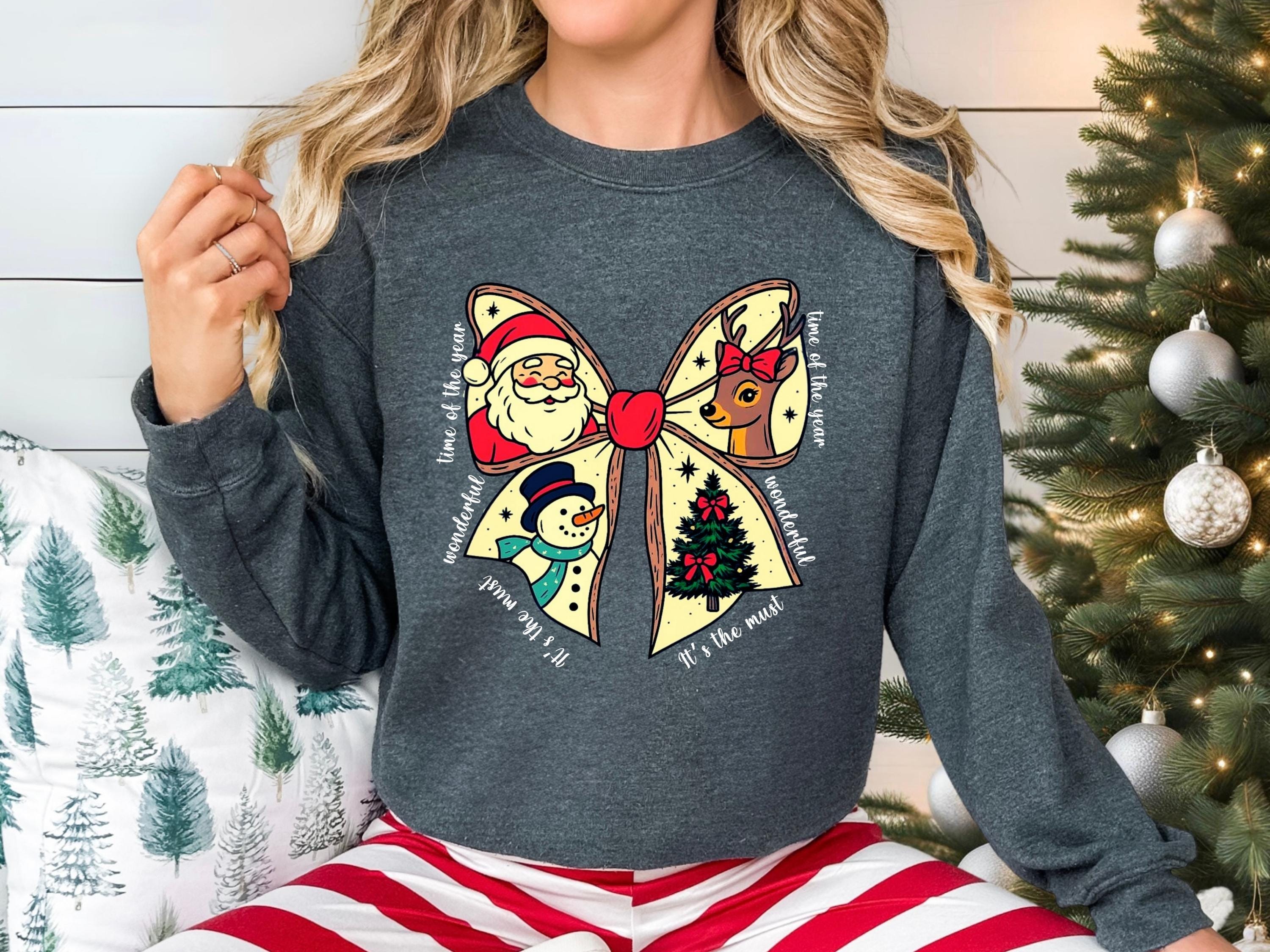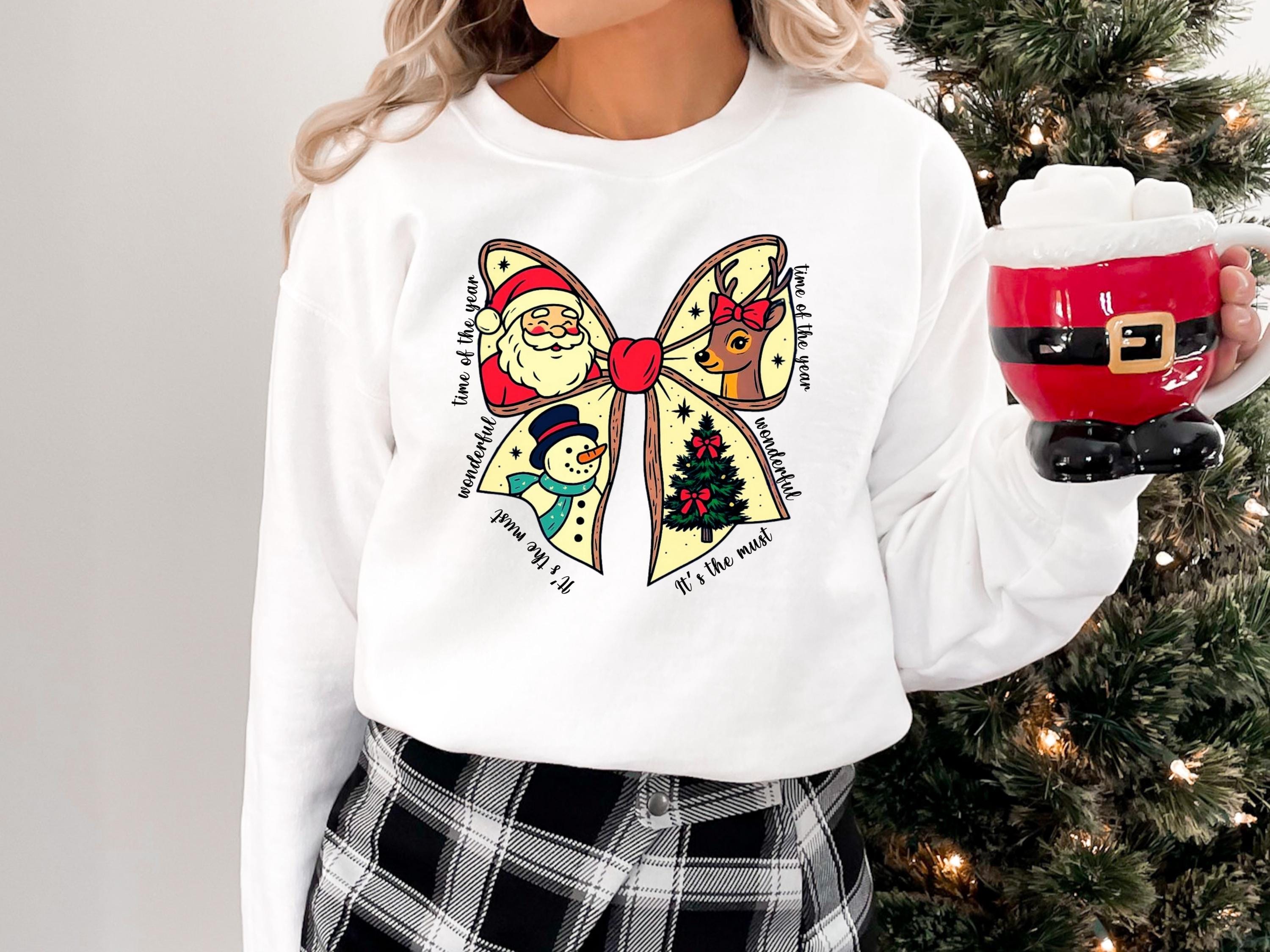 Vintage Retro Santa Christmas Shirt, Cute Snowman & Reindeer with Coquette Bow β Perfect Holiday Gift, Most Wonderful Time of the Year
