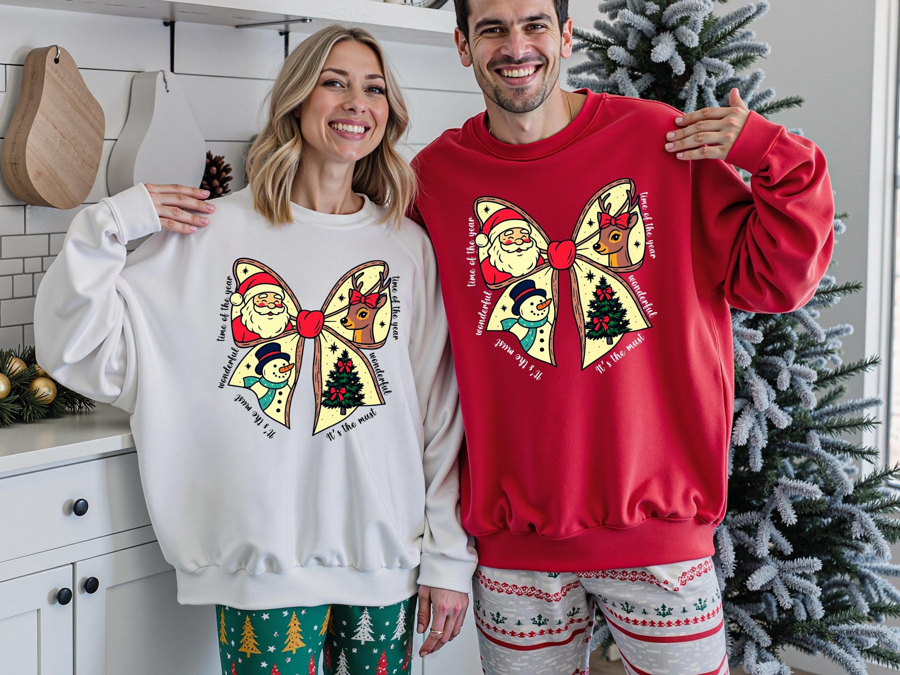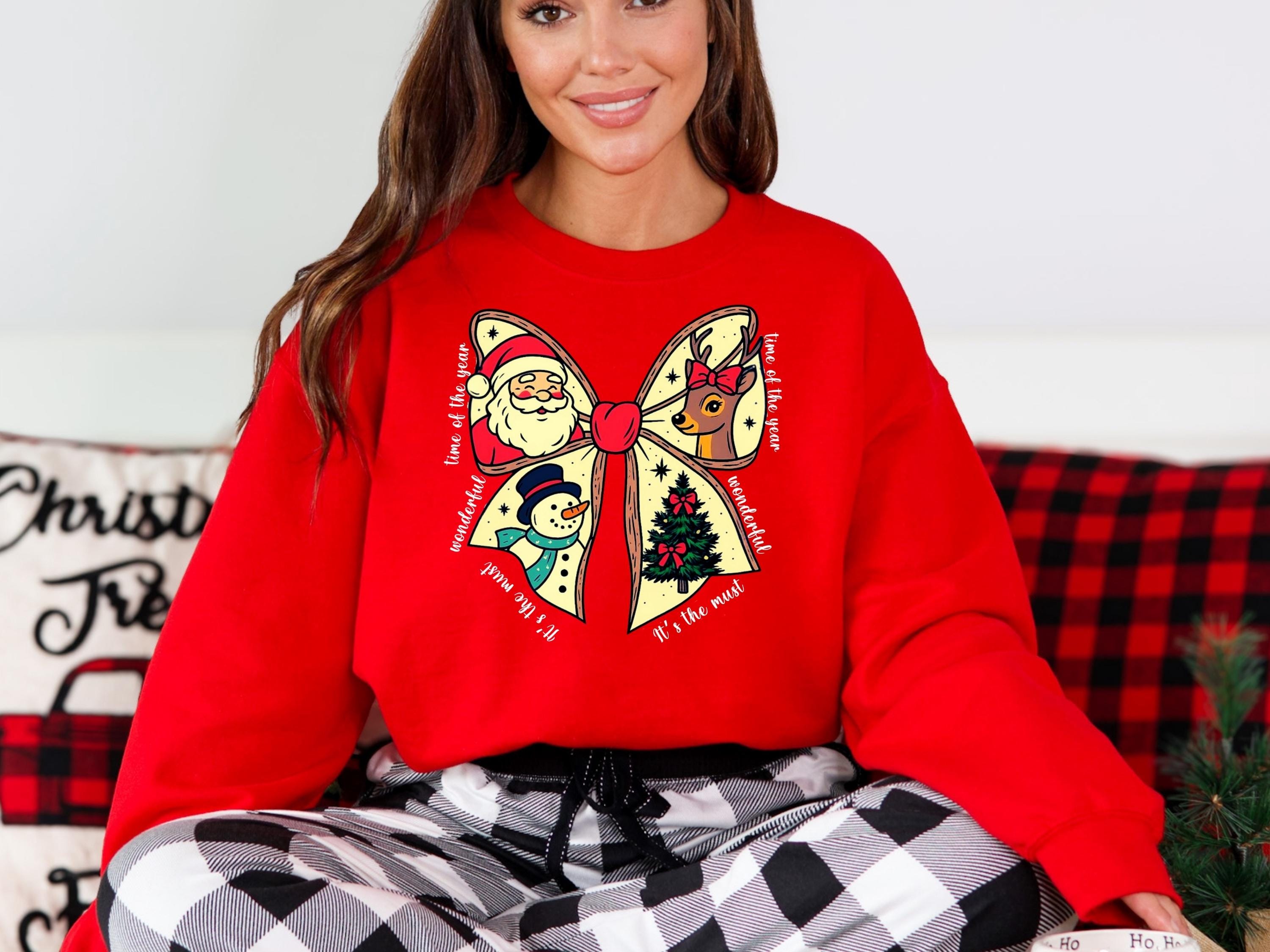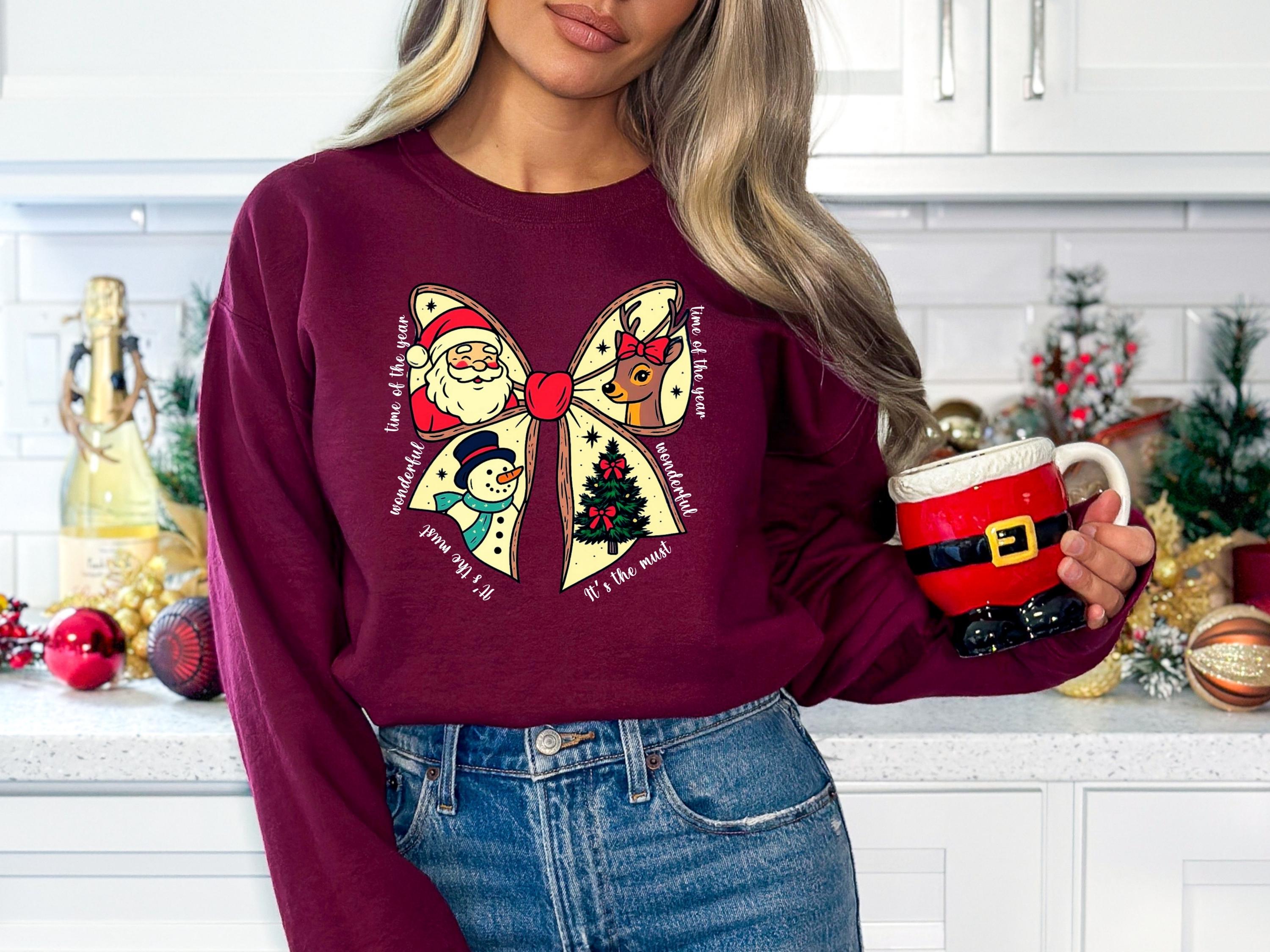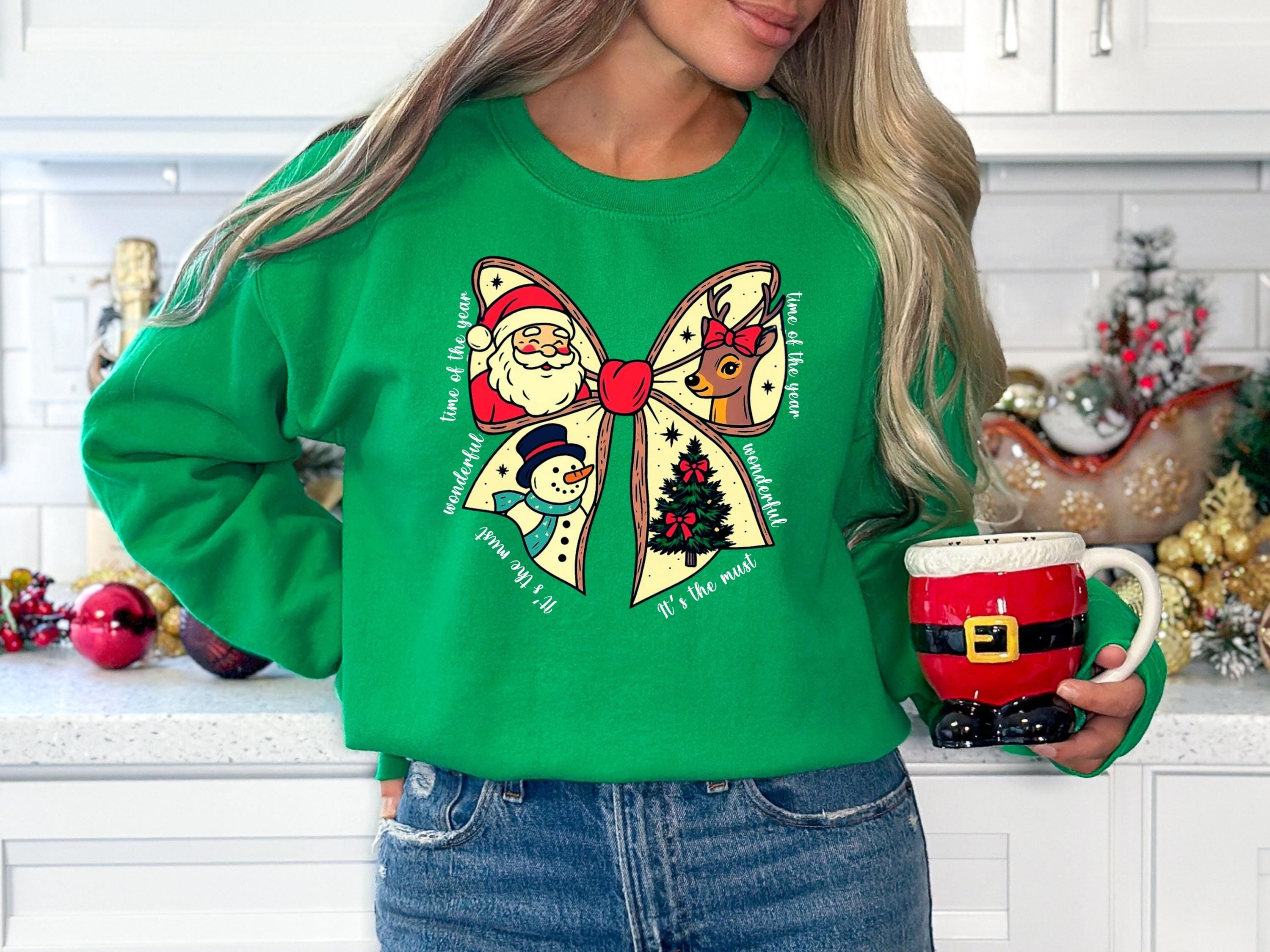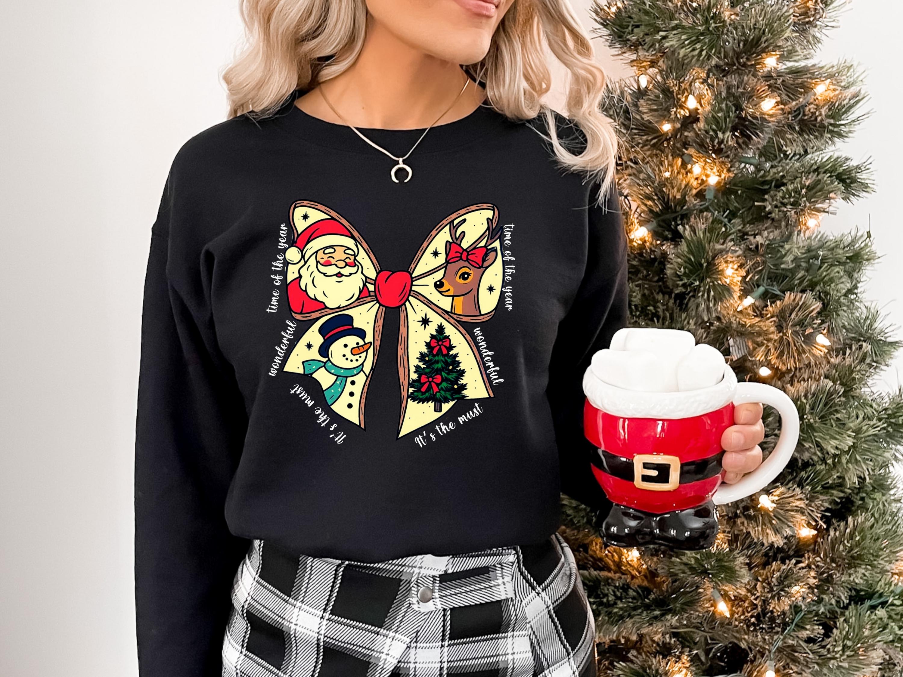 Vintage Retro Santa Christmas Shirt, Cute Snowman & Reindeer with Coquette Bow β Perfect Holiday Gift, Most Wonderful Time of the Year