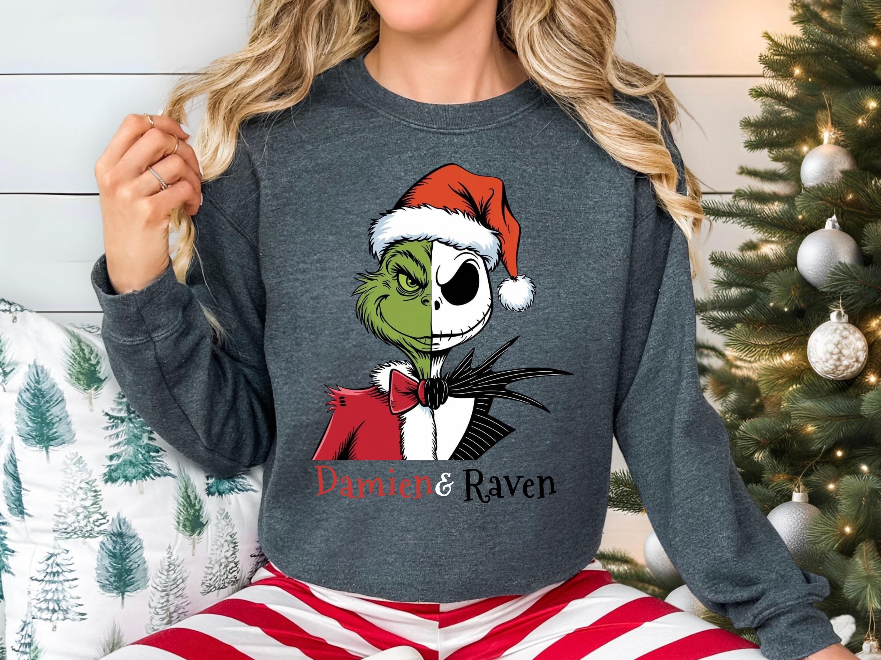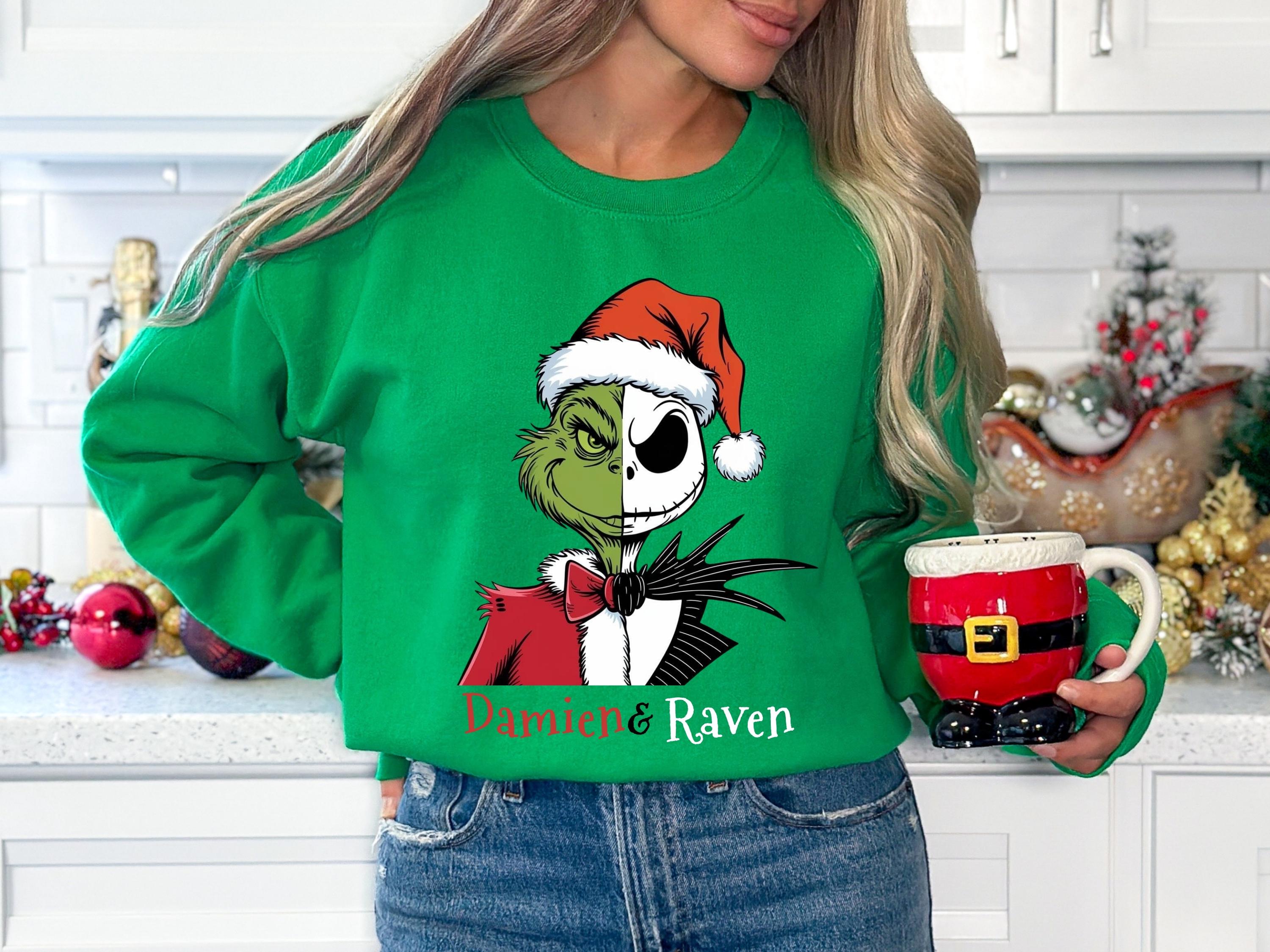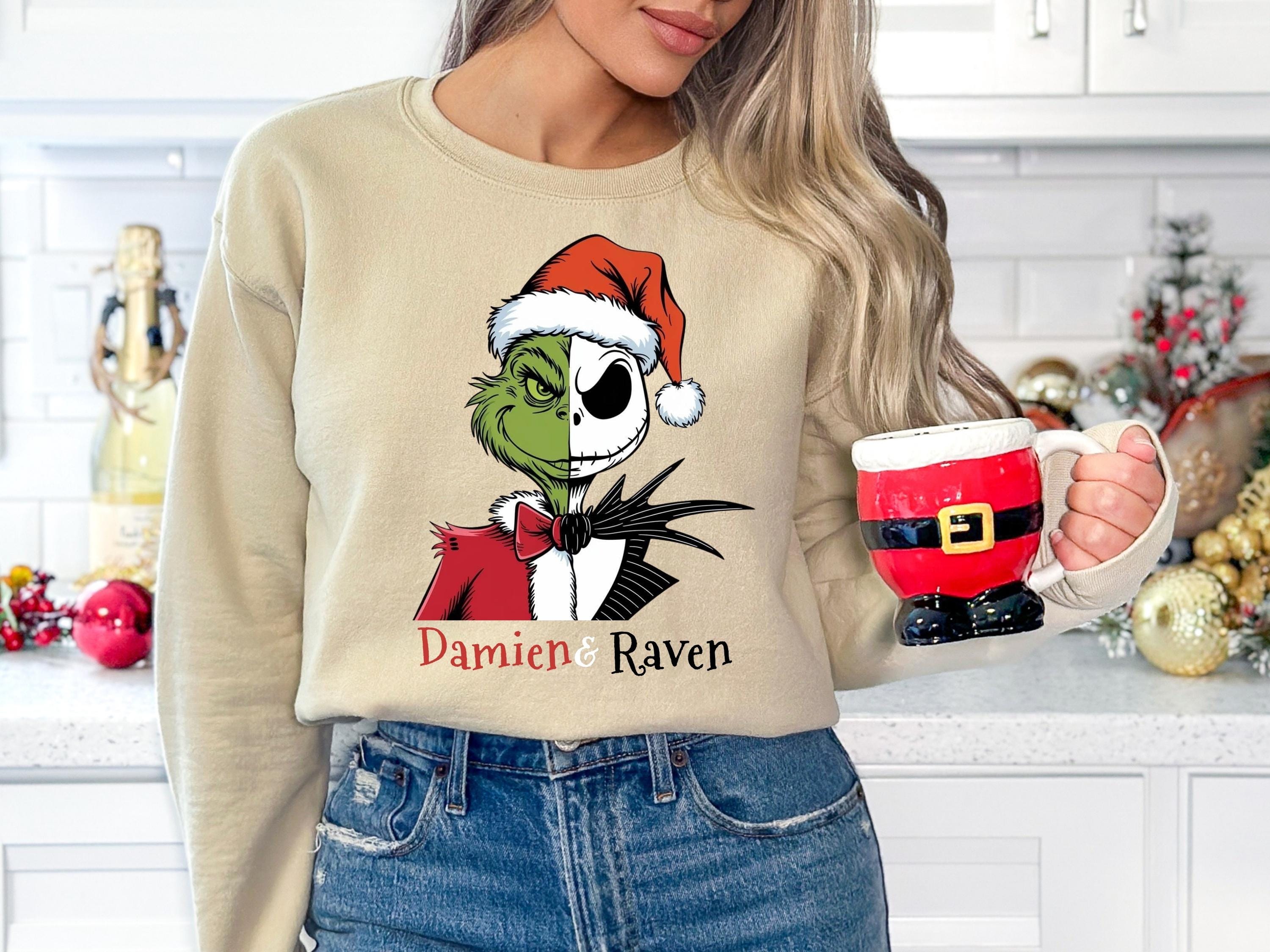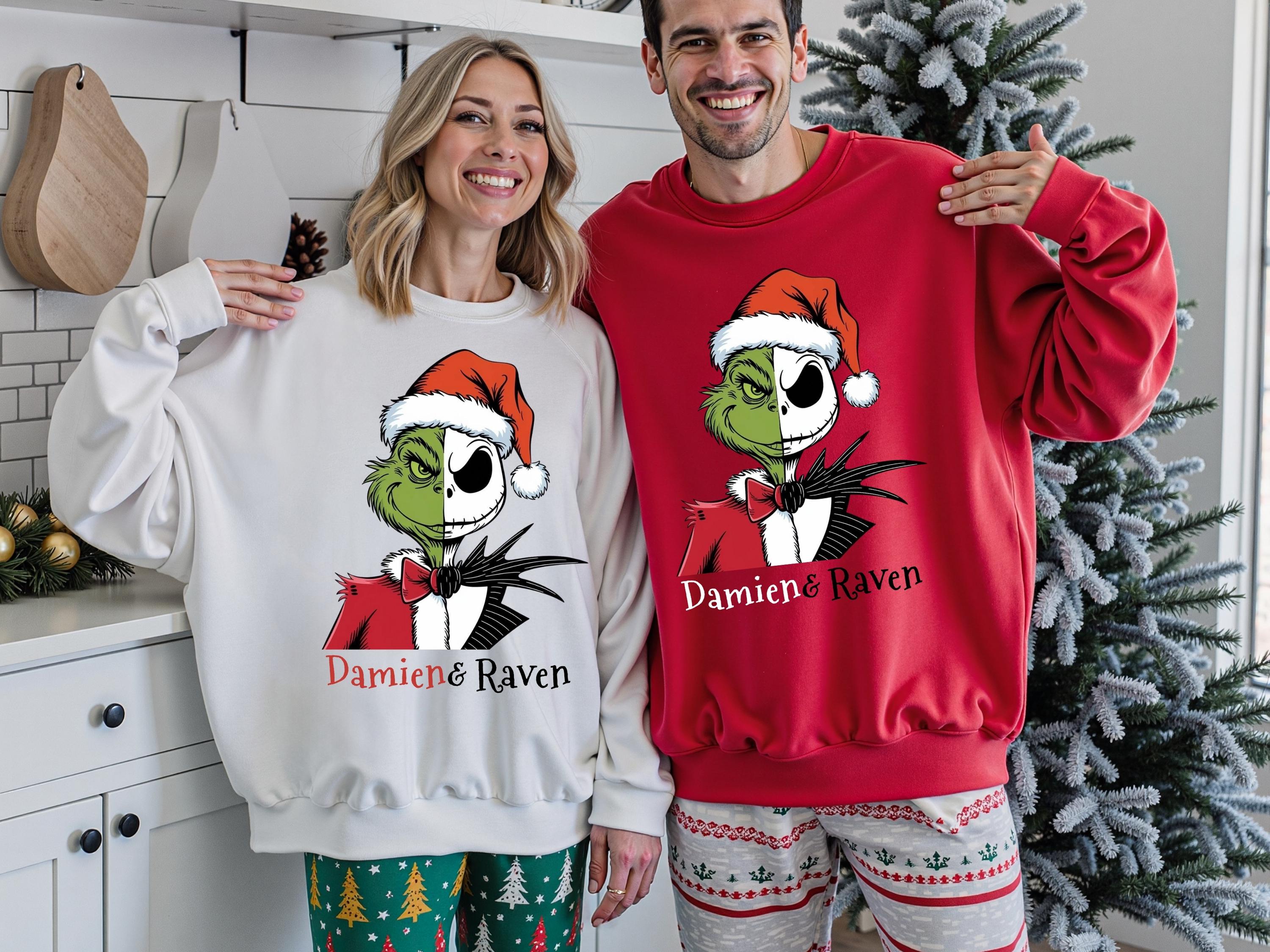 Grinch and Jack Skellington Cuople Name Shirt,Funny Christmas Tee,Nightmare Holiday Shirt,Xmas Graphic Gift for Him Her,gothic christmas Tee