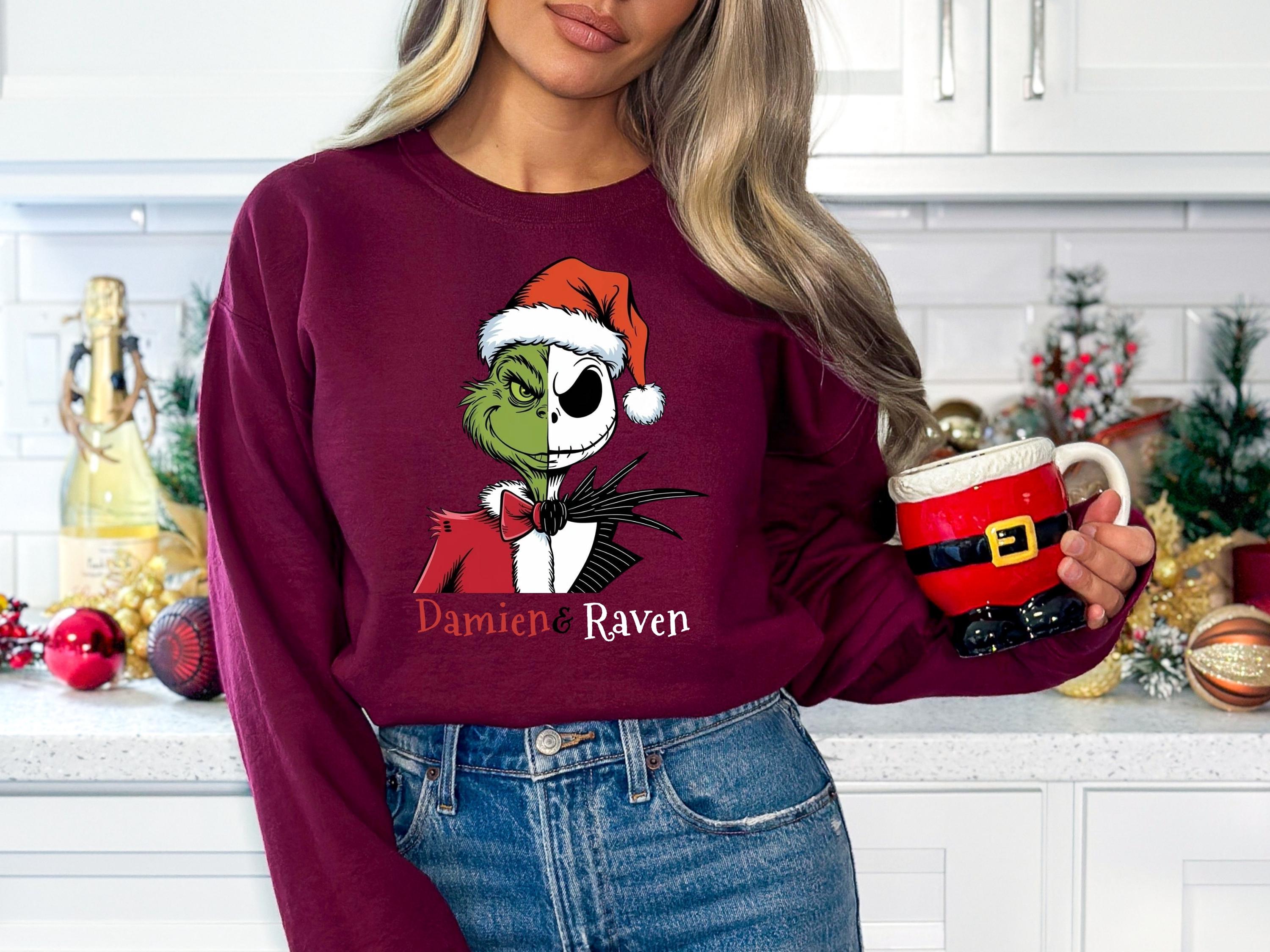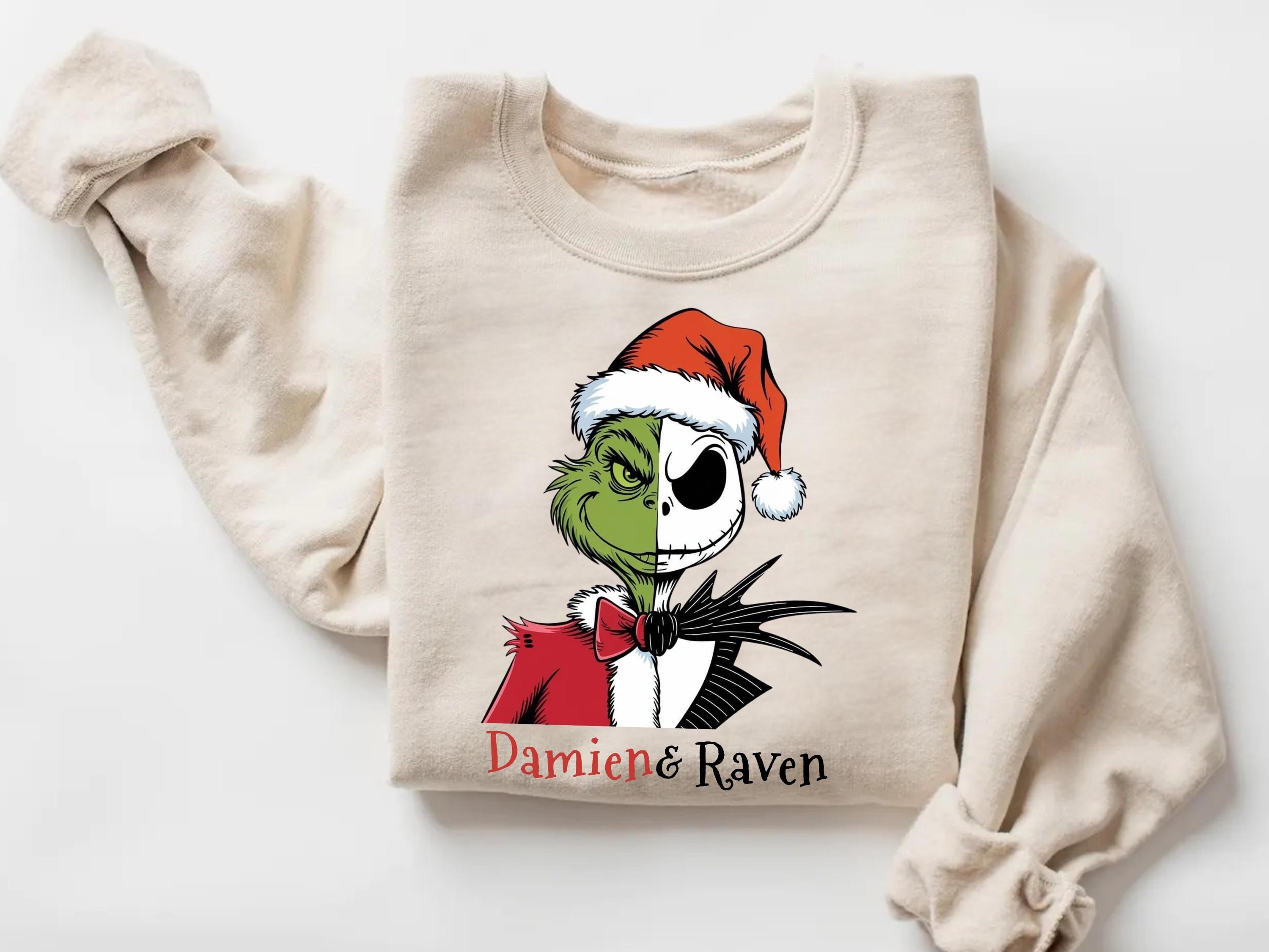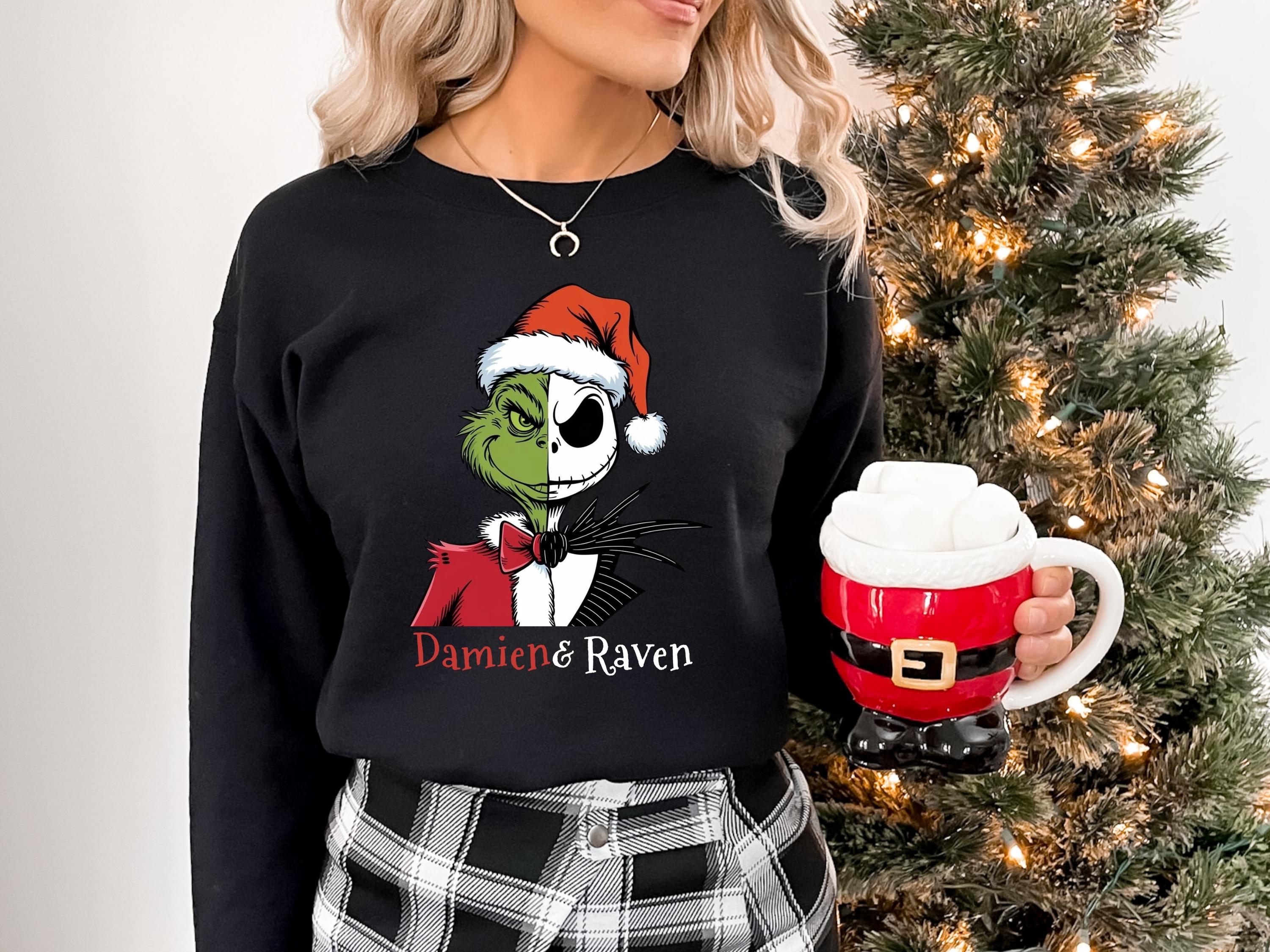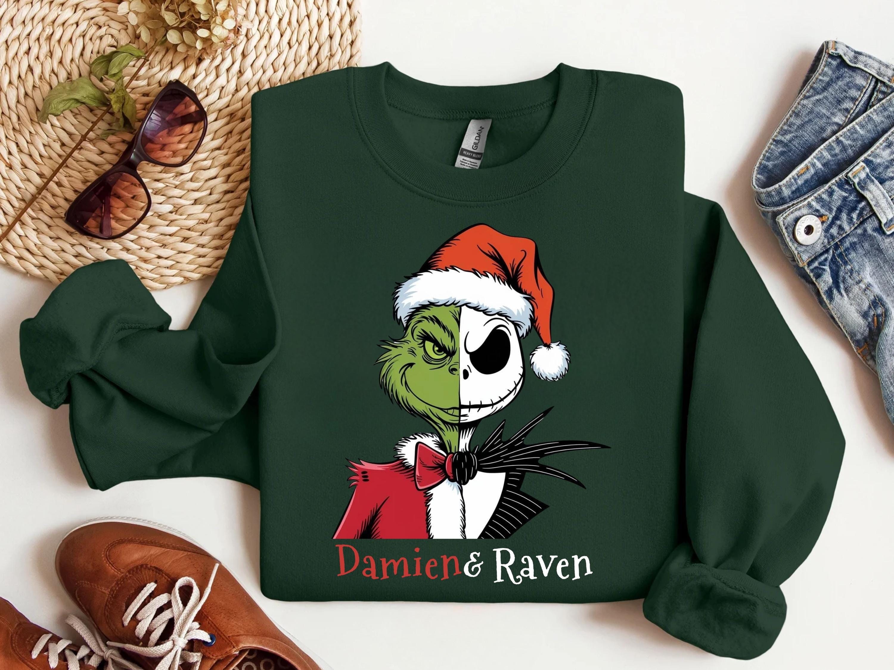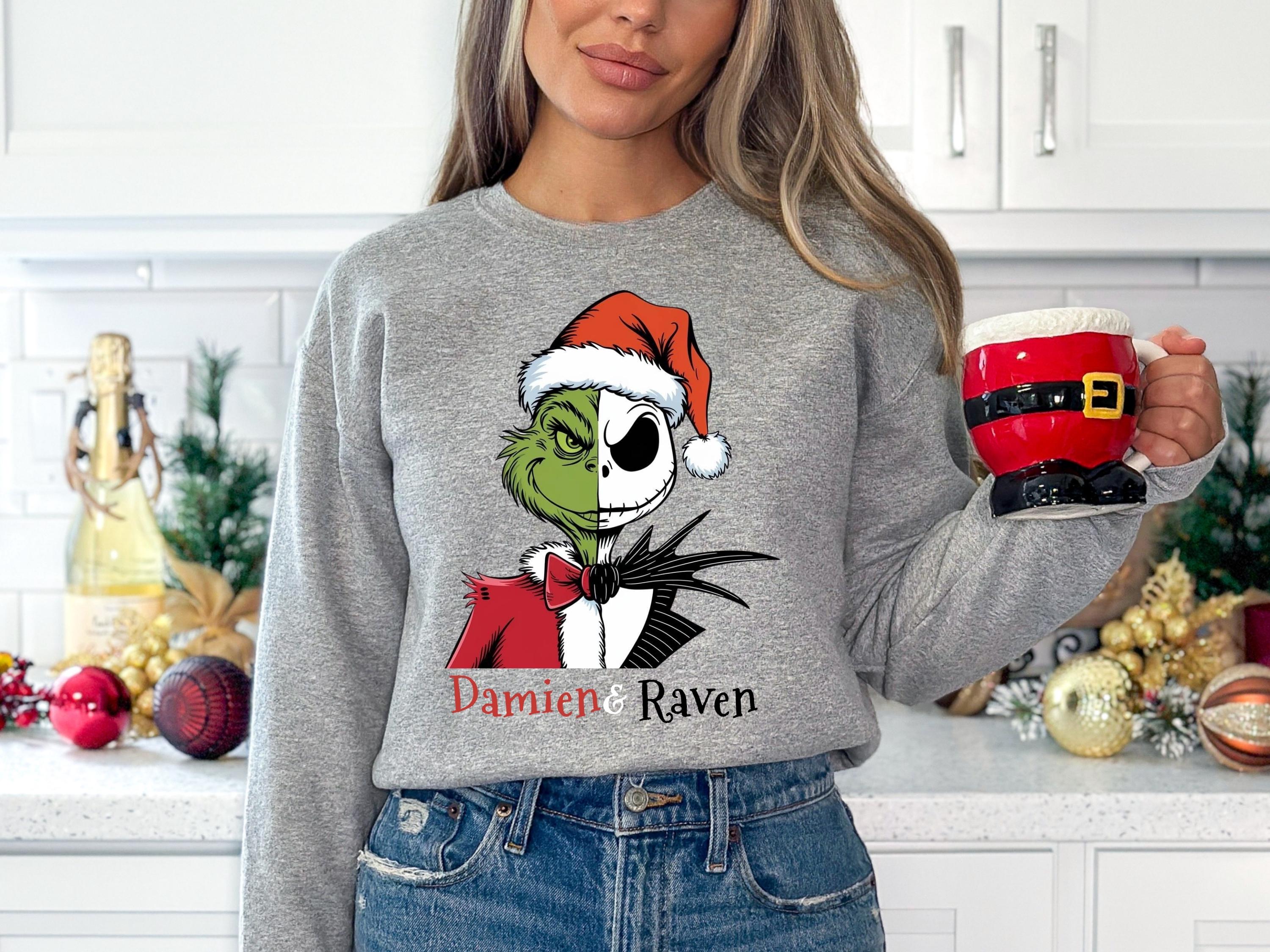 Grinch and Jack Skellington Cuople Name Shirt,Funny Christmas Tee,Nightmare Holiday Shirt,Xmas Graphic Gift for Him Her,gothic christmas Tee