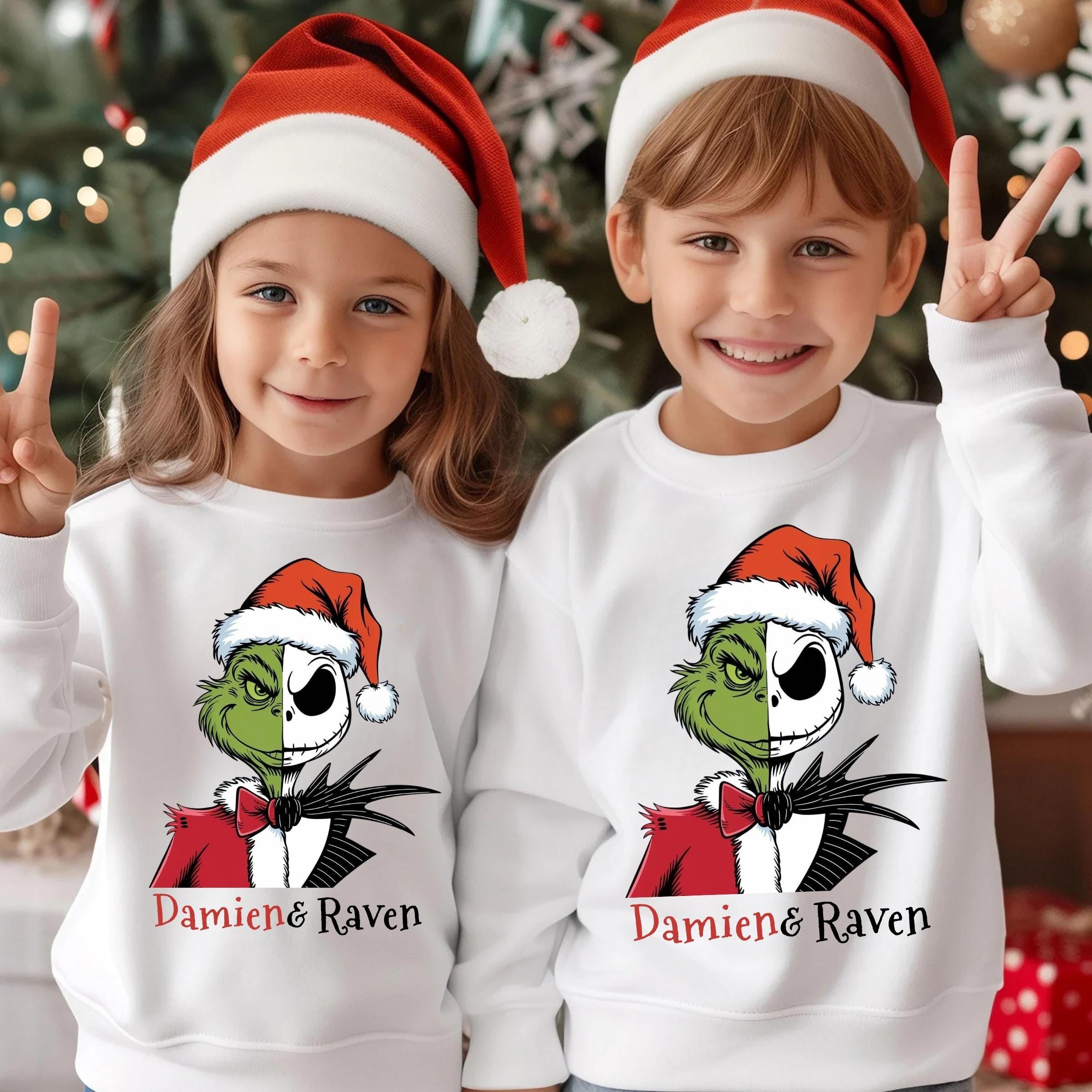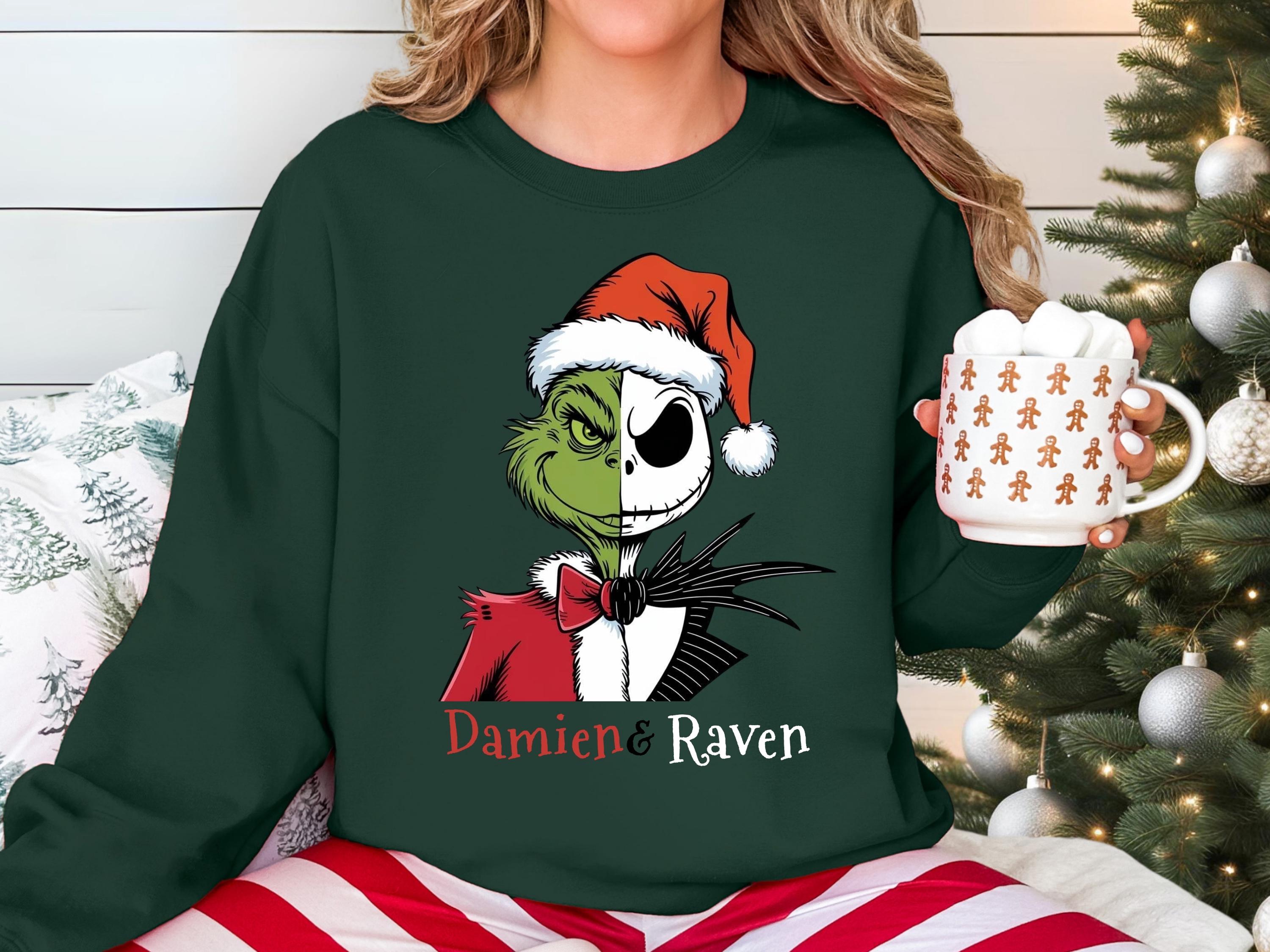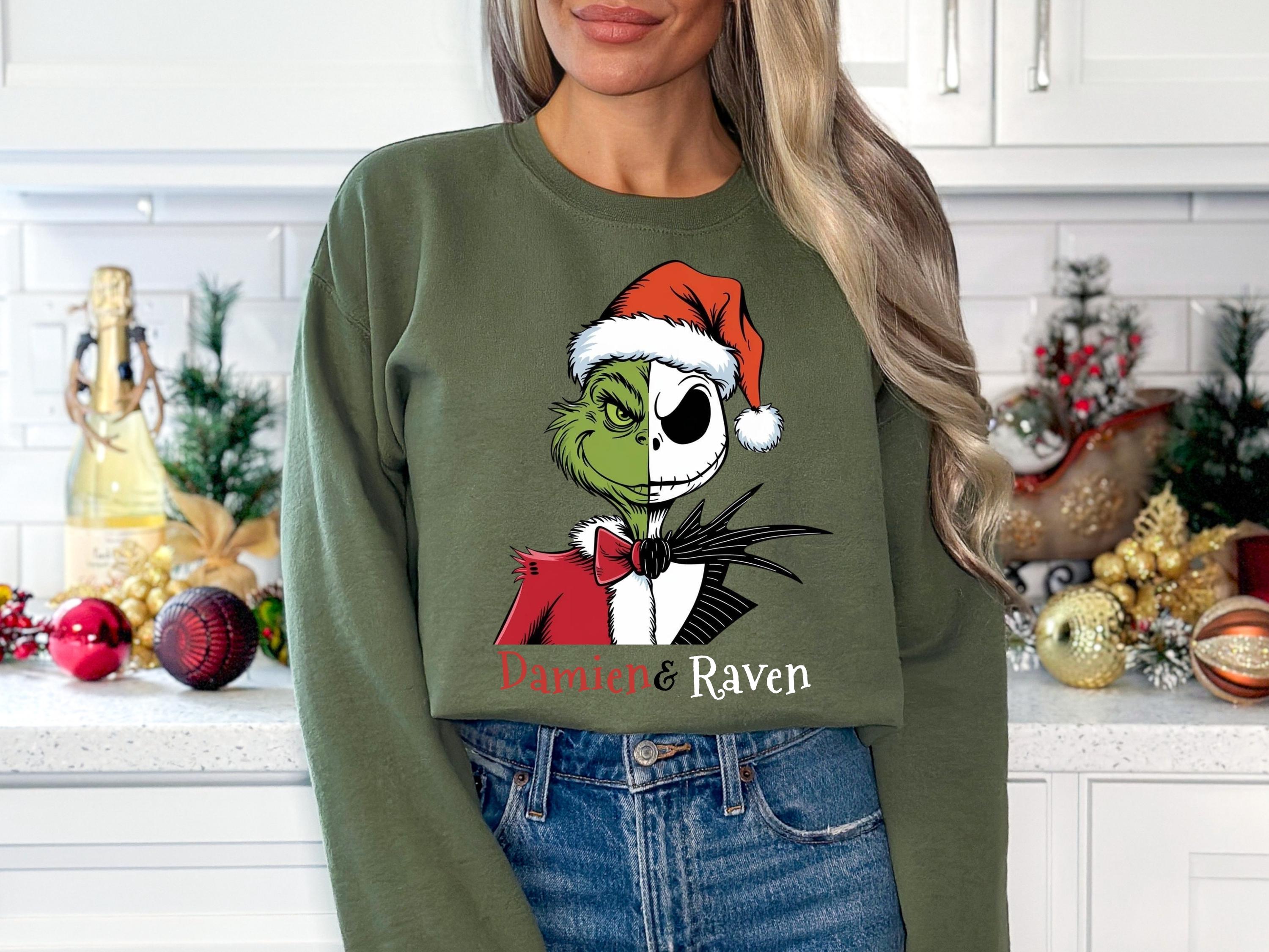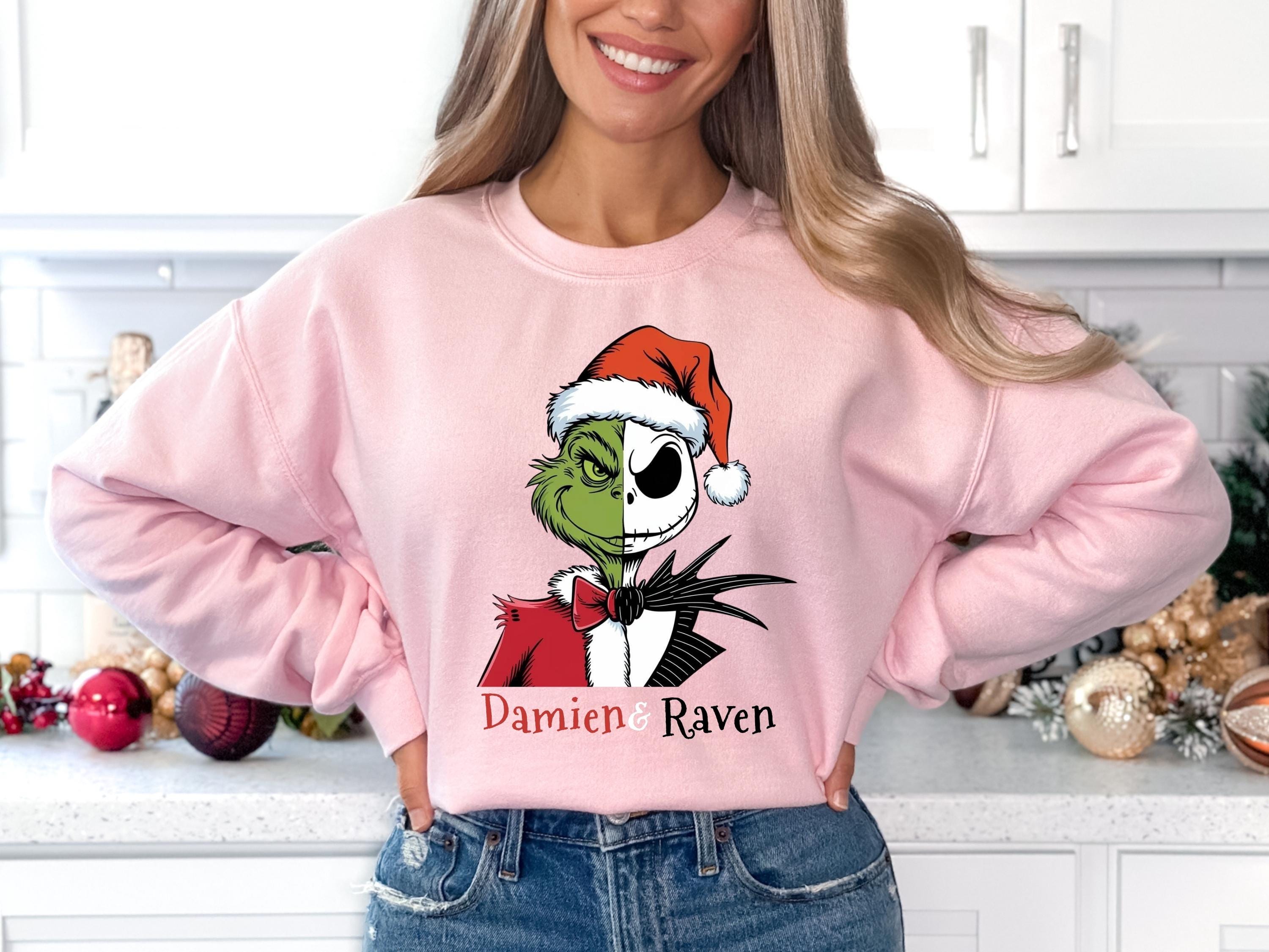 Grinch and Jack Skellington Cuople Name Shirt,Funny Christmas Tee,Nightmare Holiday Shirt,Xmas Graphic Gift for Him Her,gothic christmas Tee