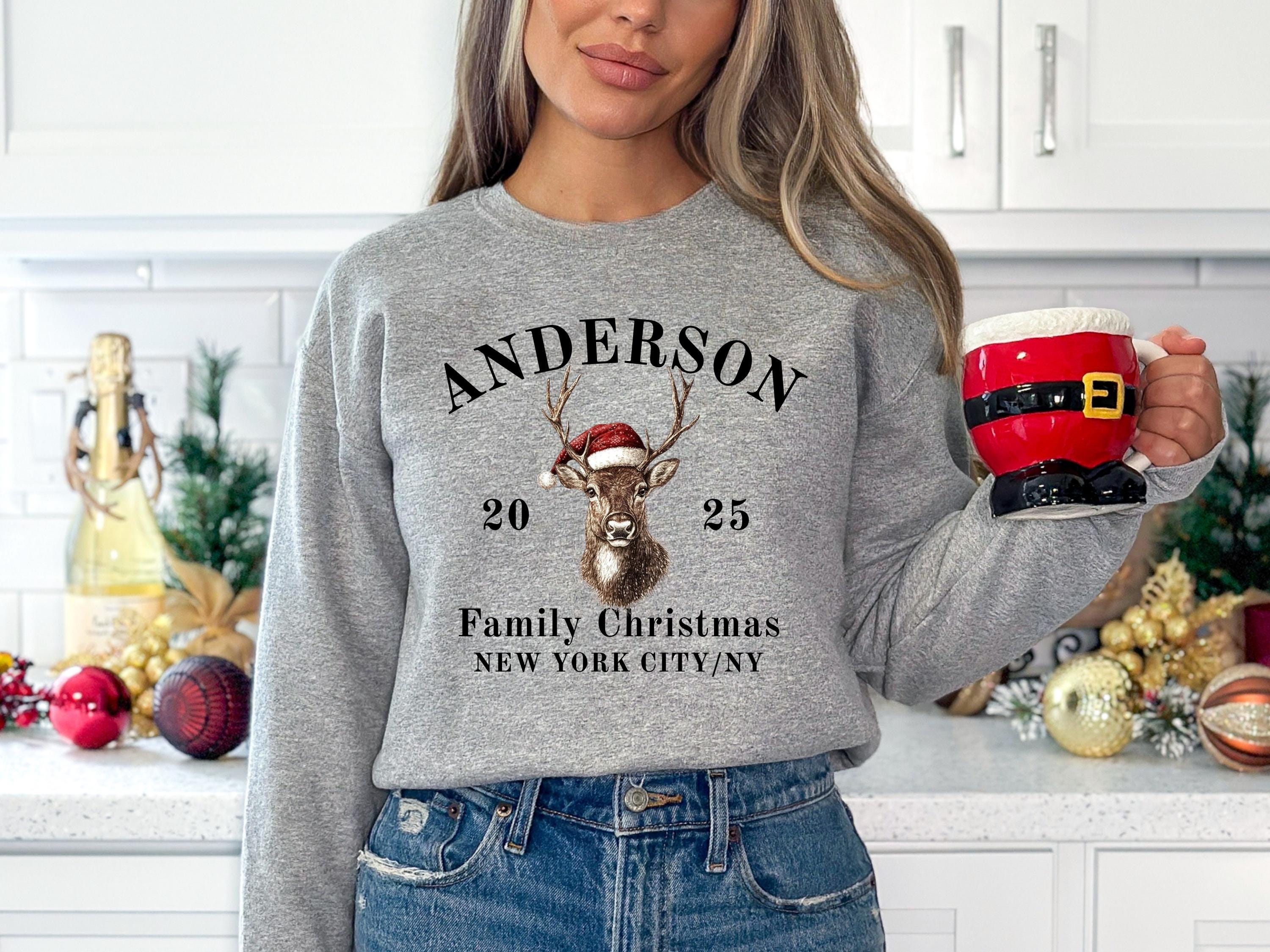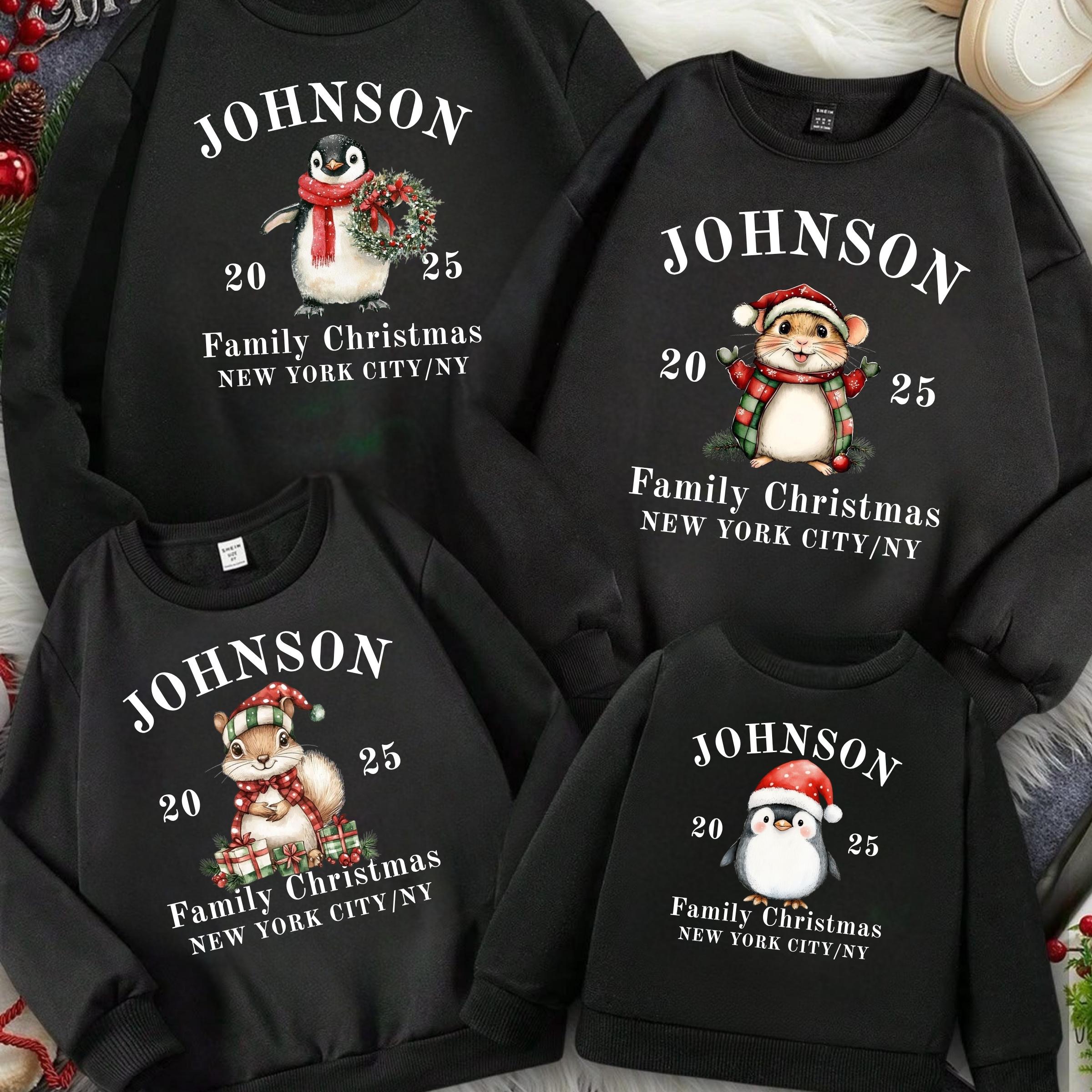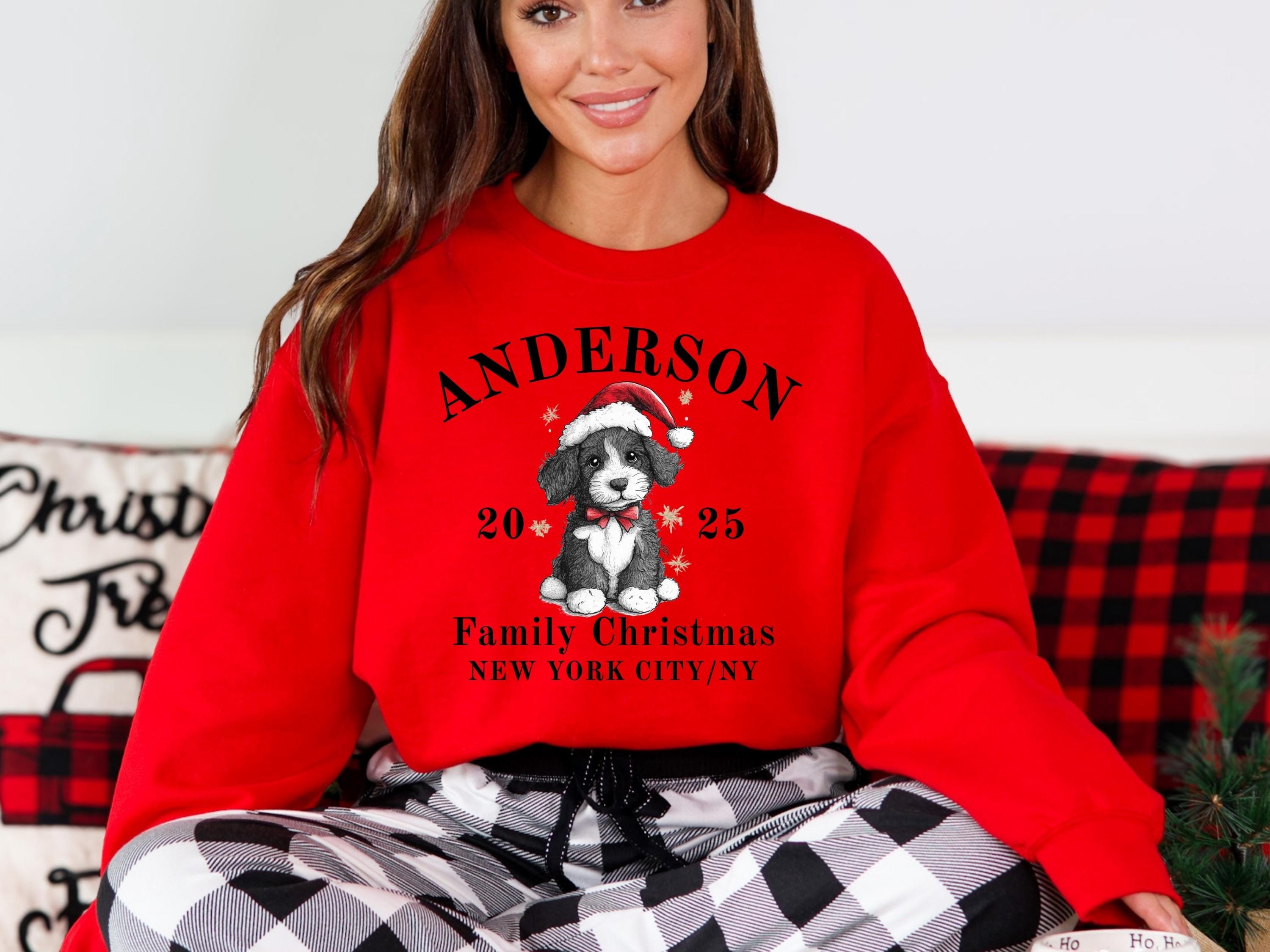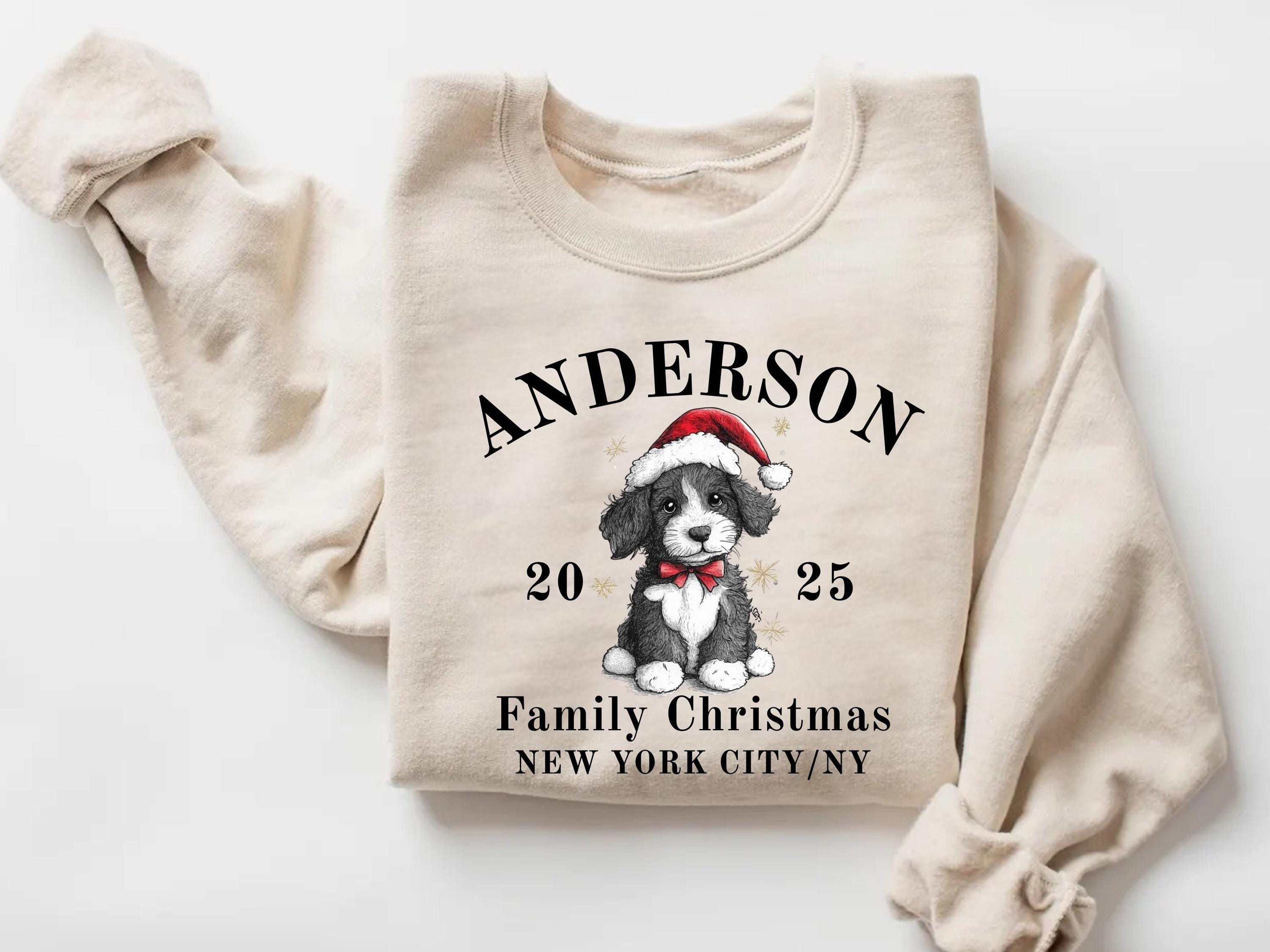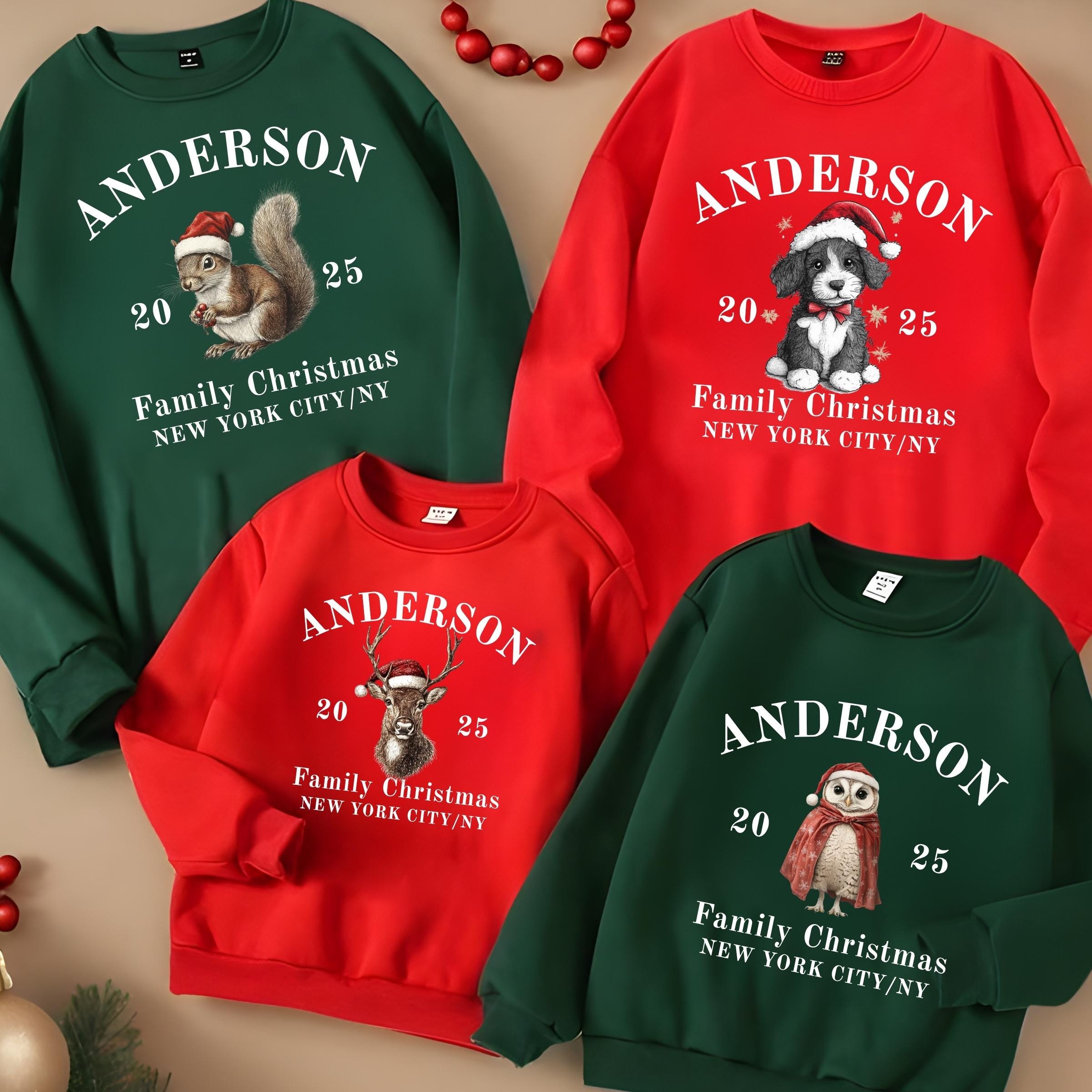 Custom Family Christmas Shirts, Bella Canvas Matching Xmas Tees, Personalized Name Shirt, Vintage Santa Varsity Christmas Family Outfits Pjs