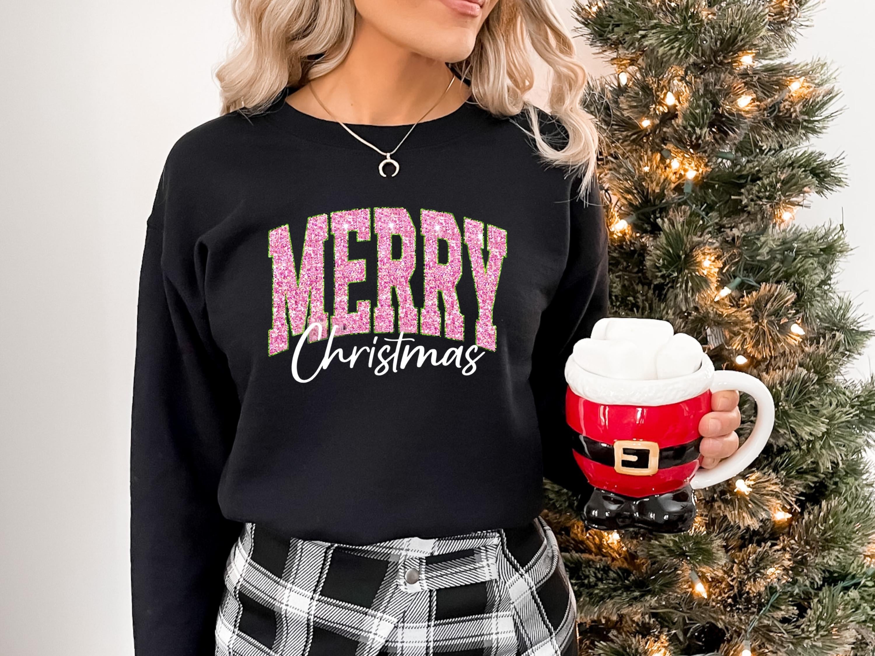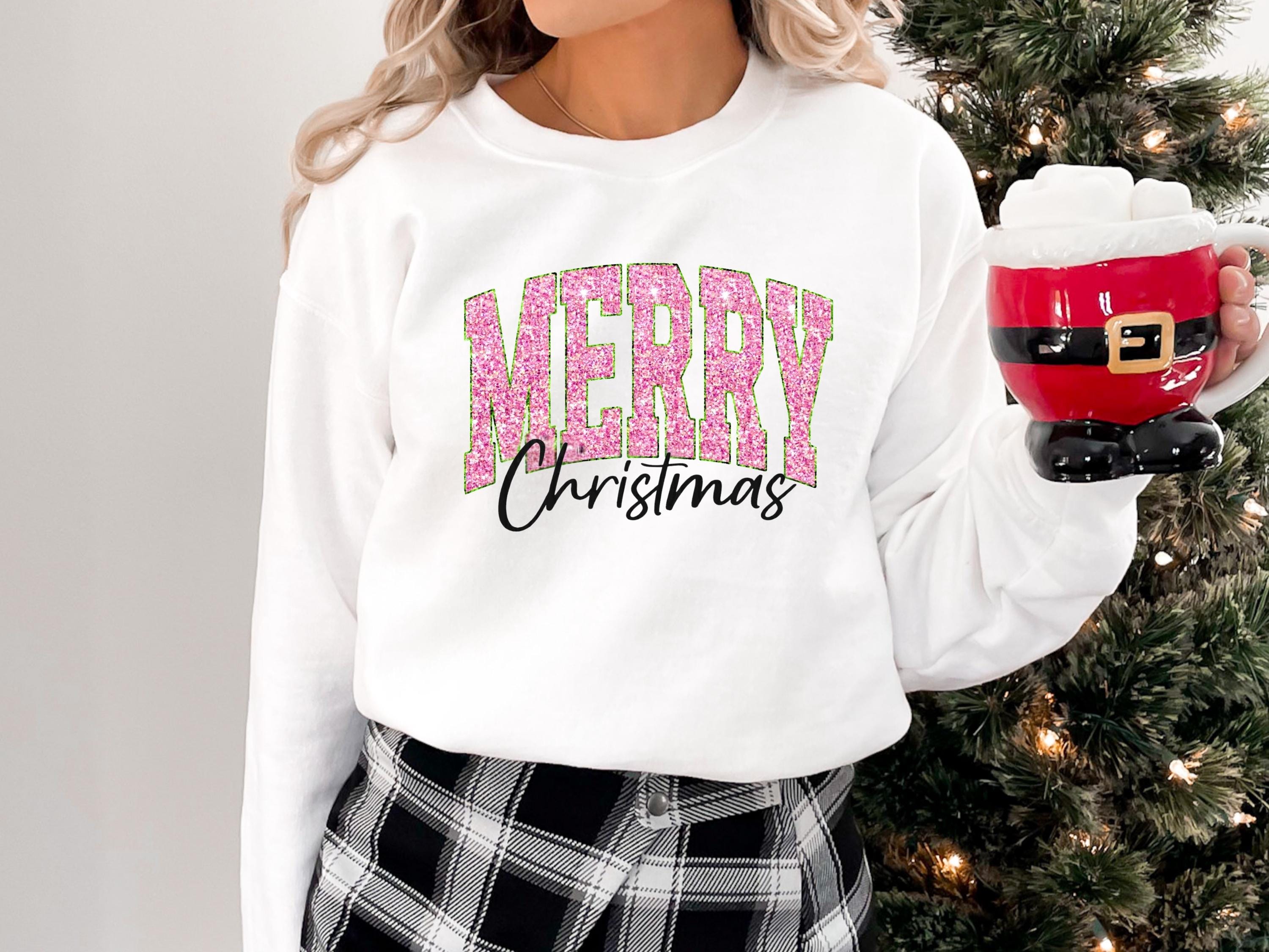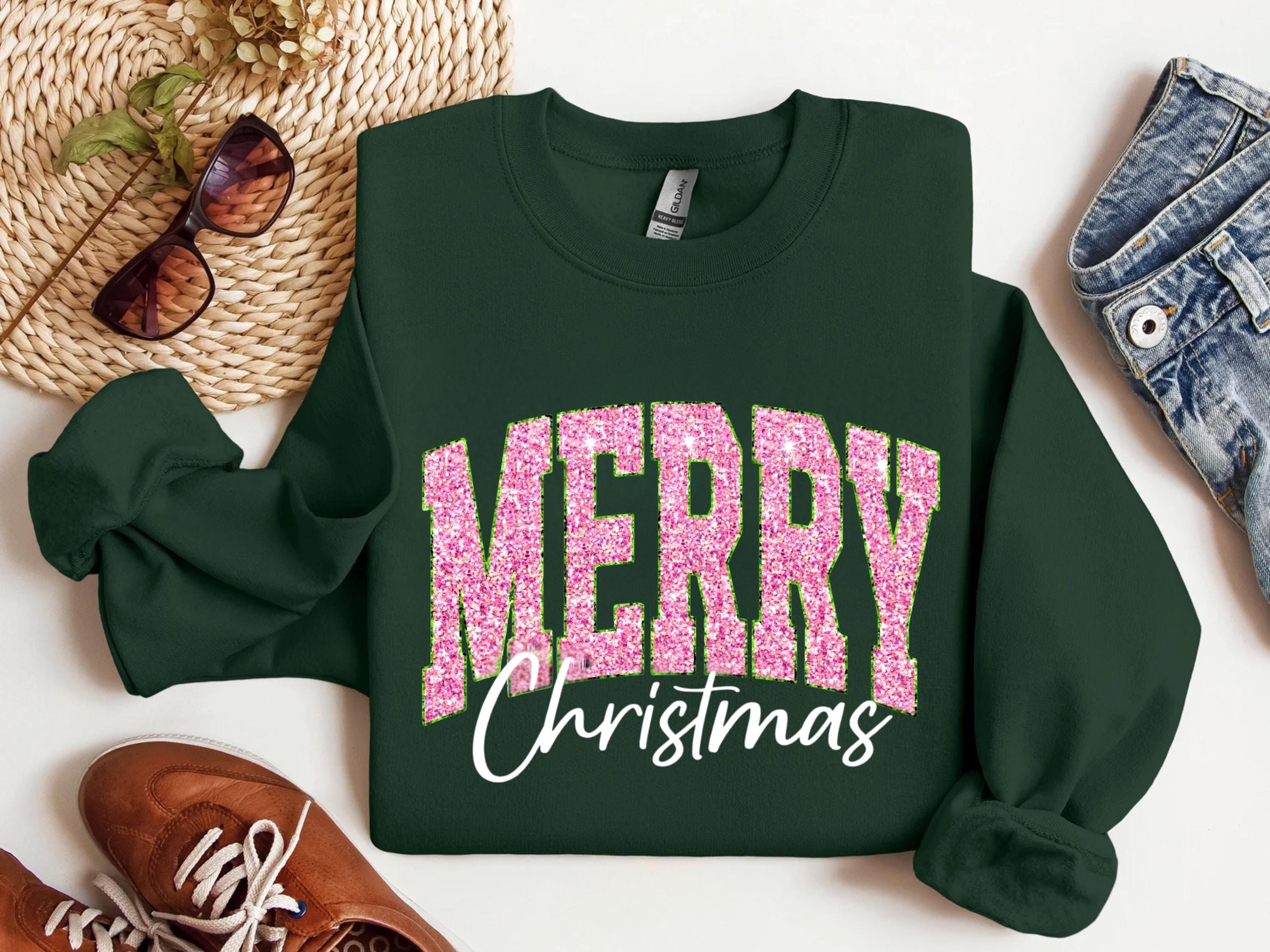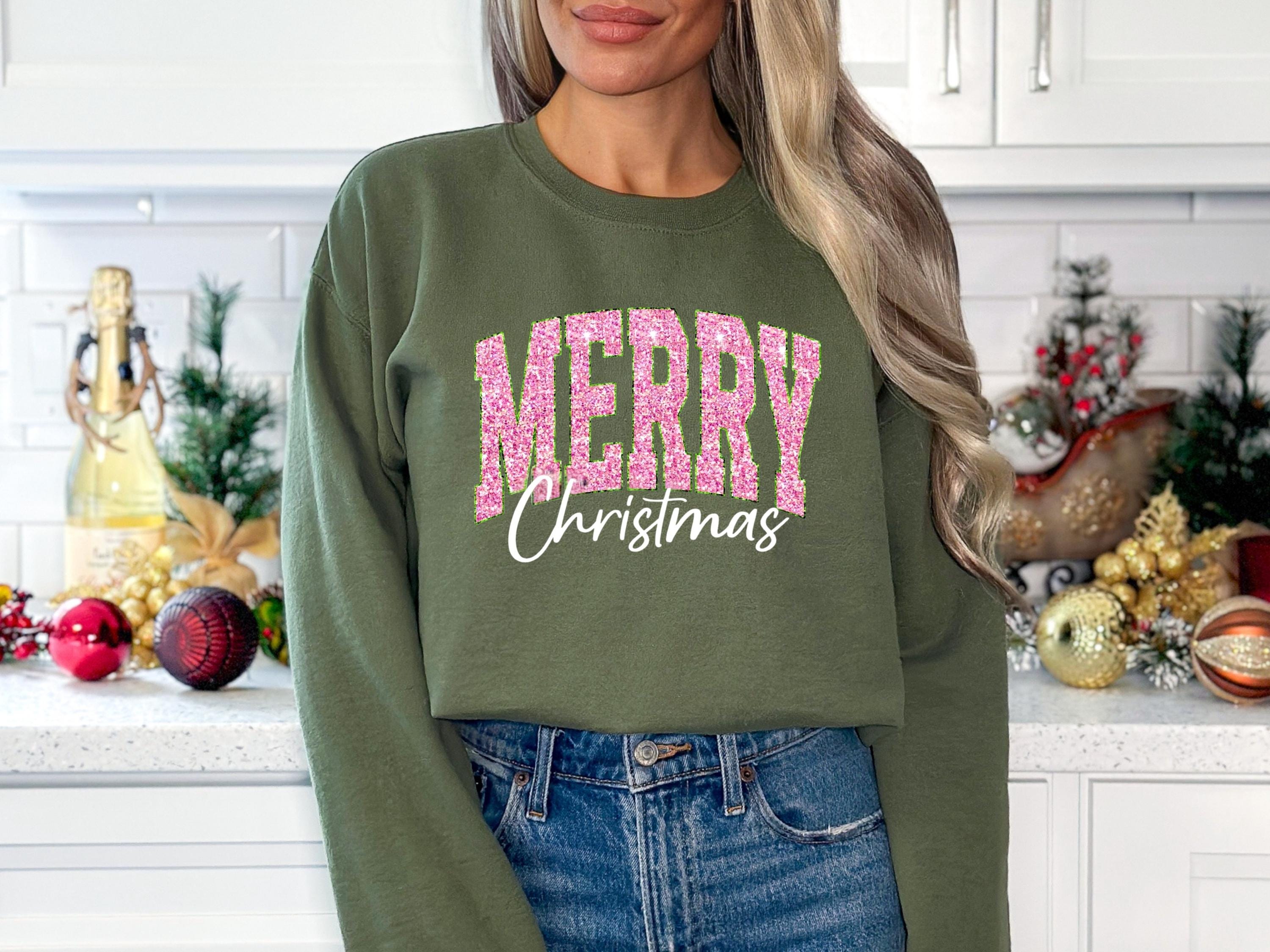 Merry Christmas Shirt, Cute Winter T-Shirt, Christmas Shirt Gift for Women, Holiday Women Shirt, Like Glitter Looking Print