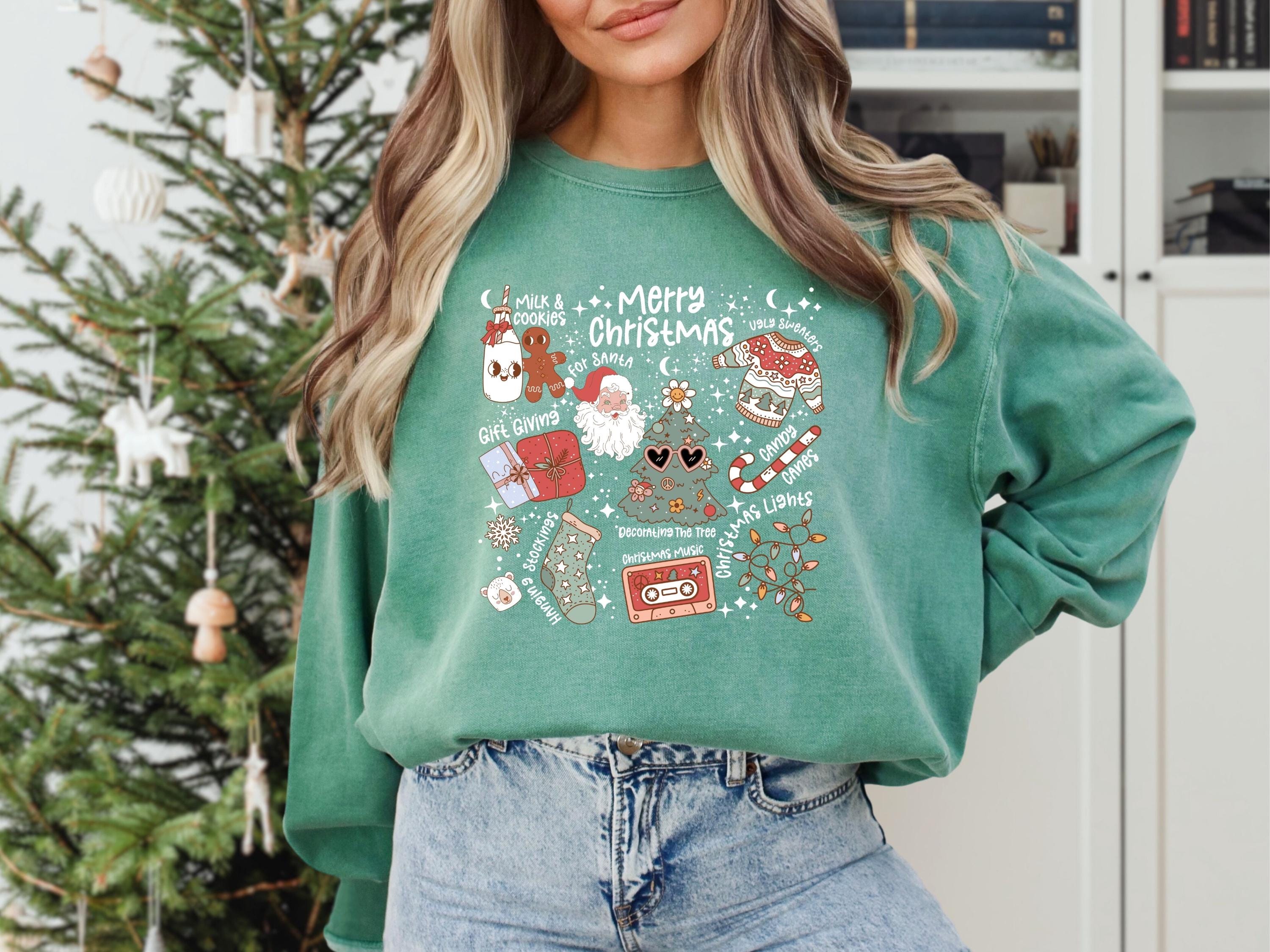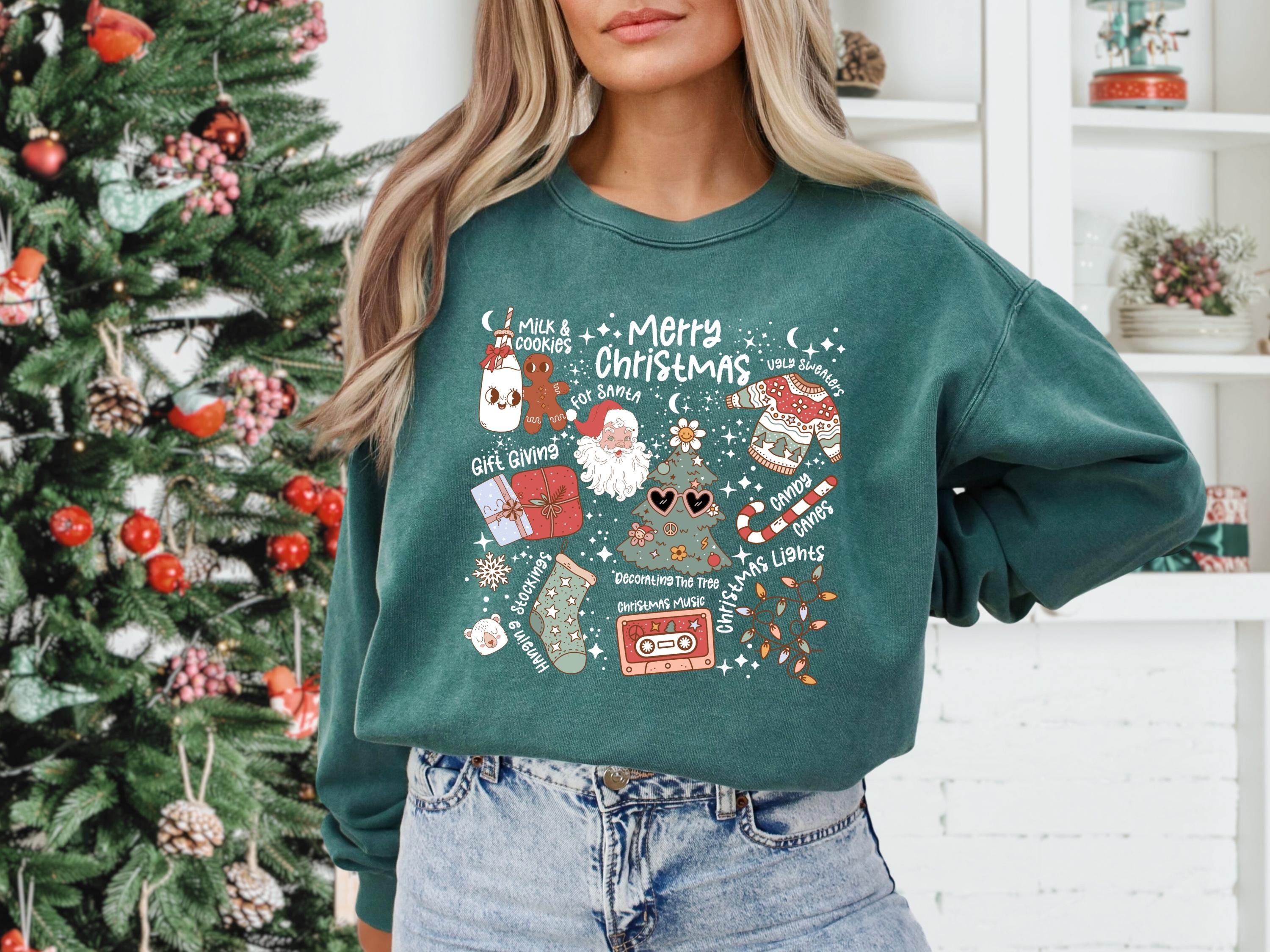 Comfort Colors® Christmas Long Sleeve Shirt, Tis the Season Shirt, Retro Holiday Shirt, Christmas Tree Shirt, Santa Shirt, Womens Christmas 🌟 Your Everyday Go-To – Unique Design Comfort Colors Unisex T-Shirt and Sweatshirt