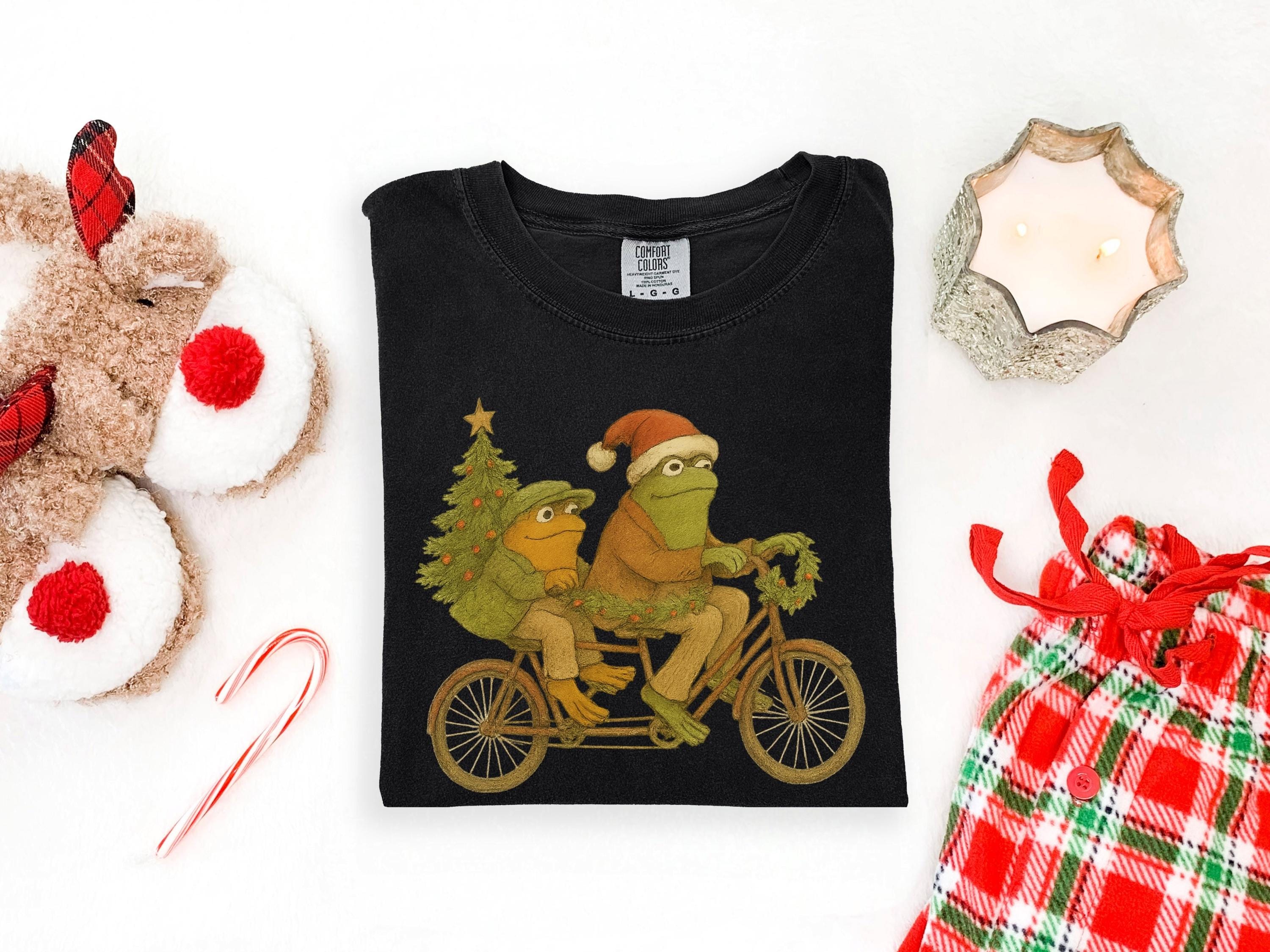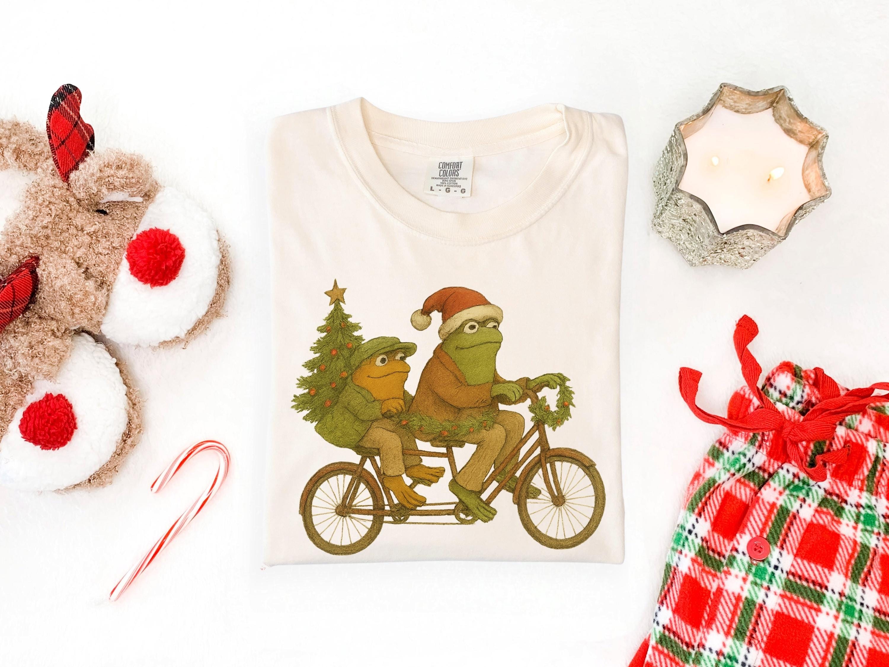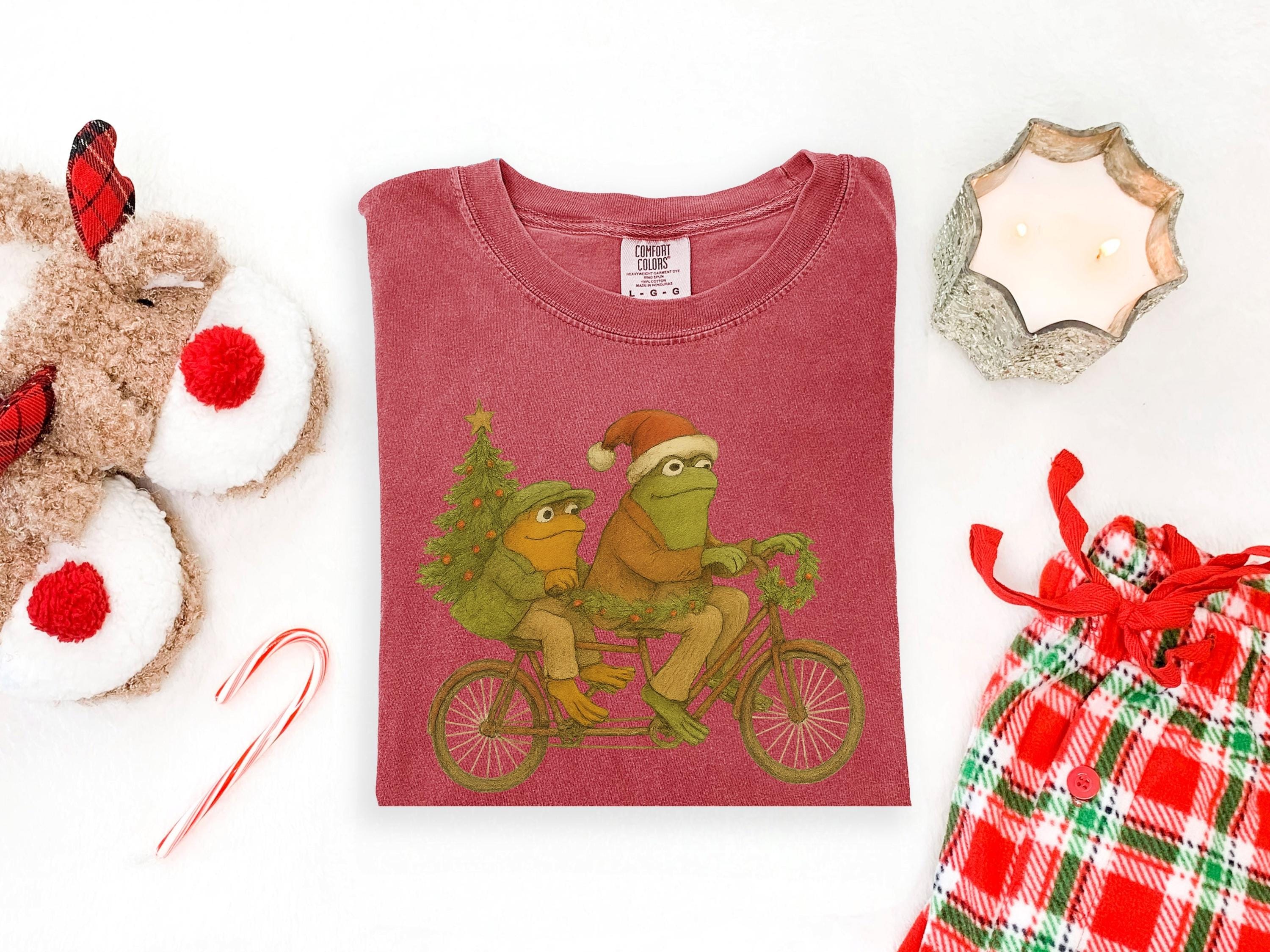 Comfort Colors® Frog And Toad Christmas Shirt, Frog And Toad On Bike Shirt, Nature Shirt, Frog Shirt, Bike Lovers Shirt, Cute Frog Shirt