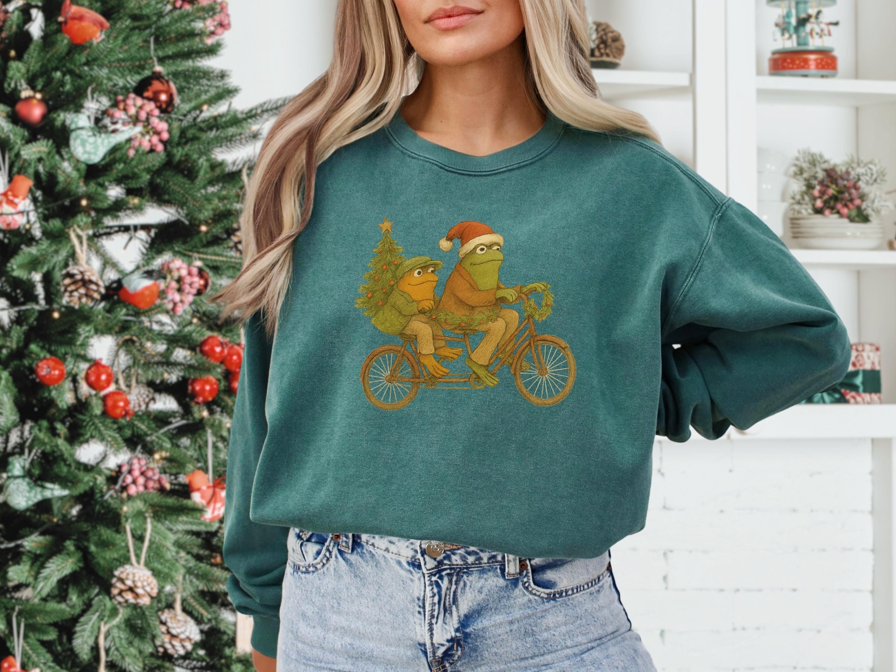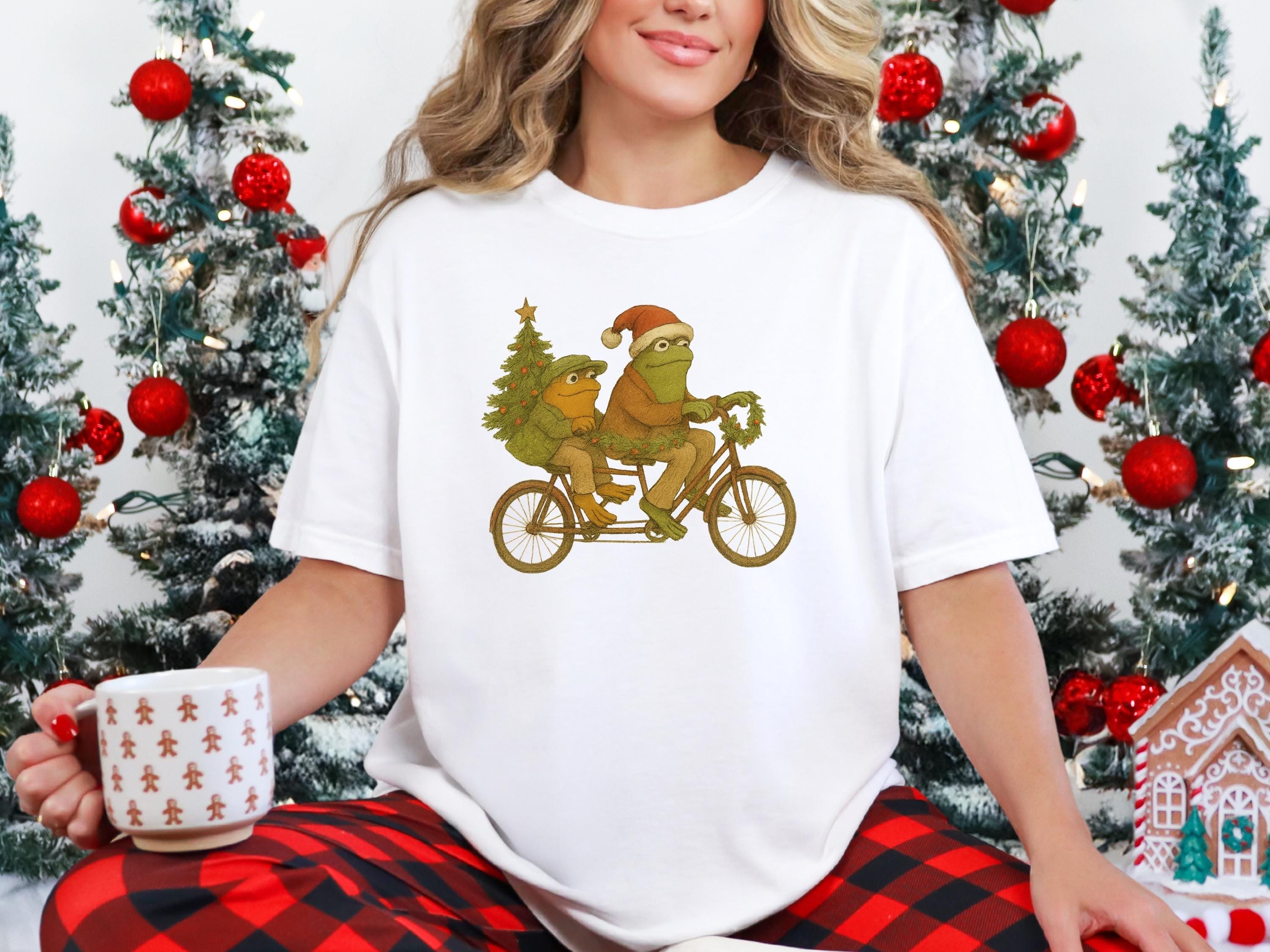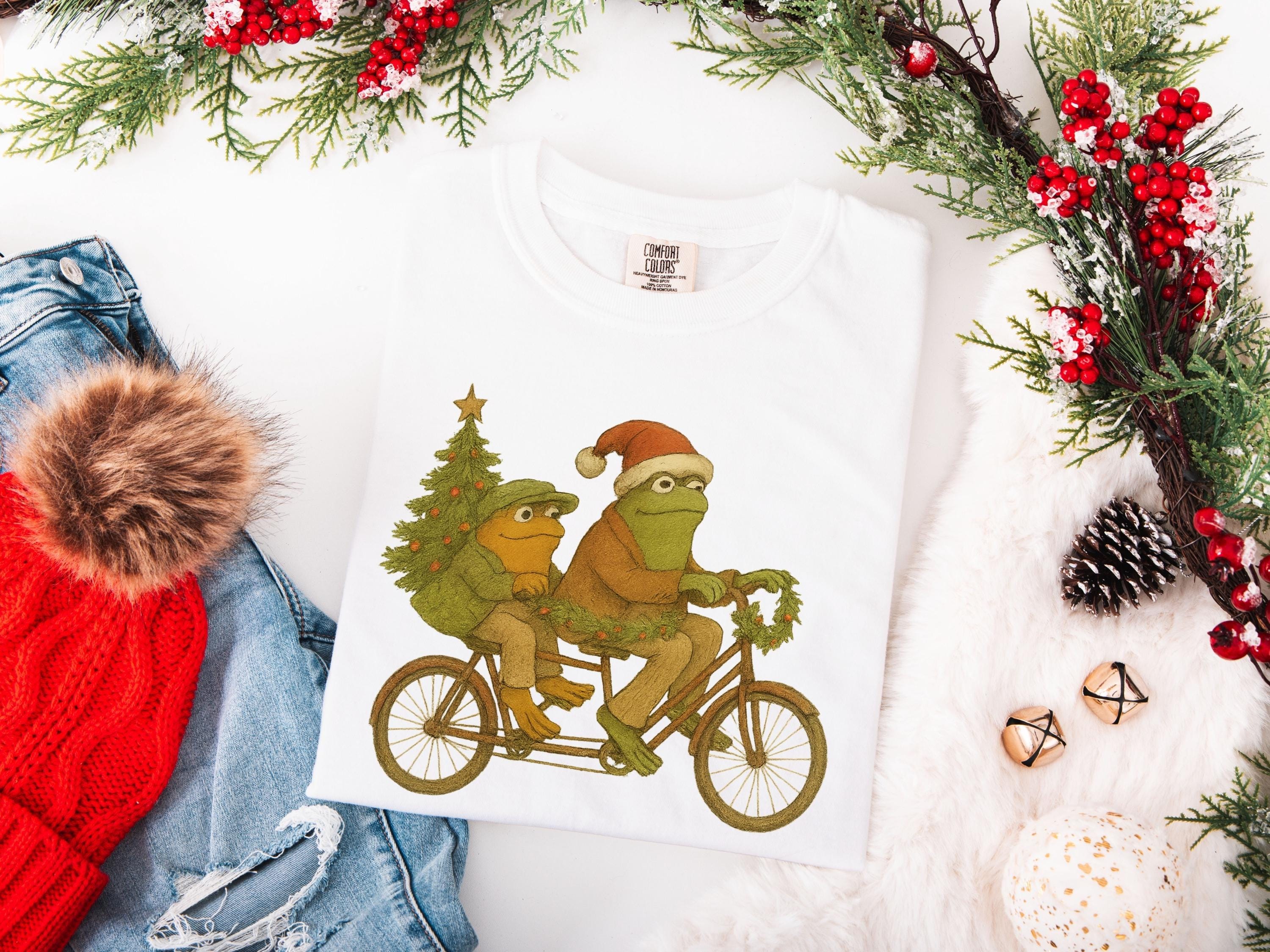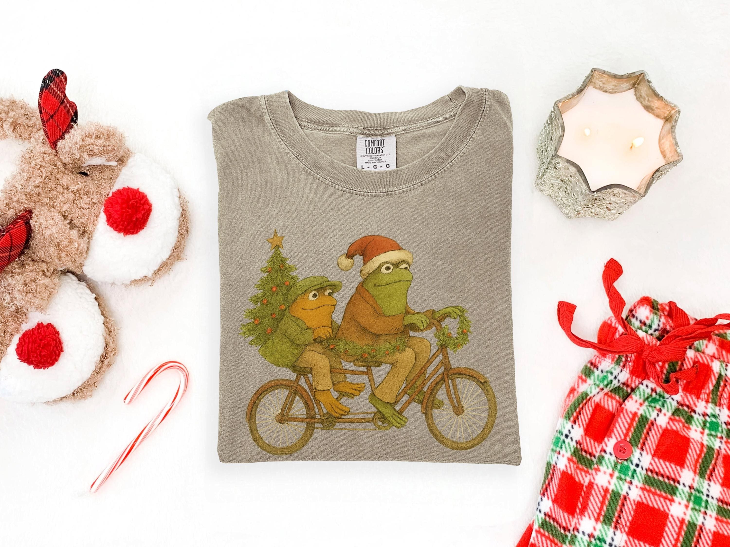 Comfort Colors® Frog And Toad Christmas Shirt, Frog And Toad On Bike Shirt, Nature Shirt, Frog Shirt, Bike Lovers Shirt, Cute Frog Shirt