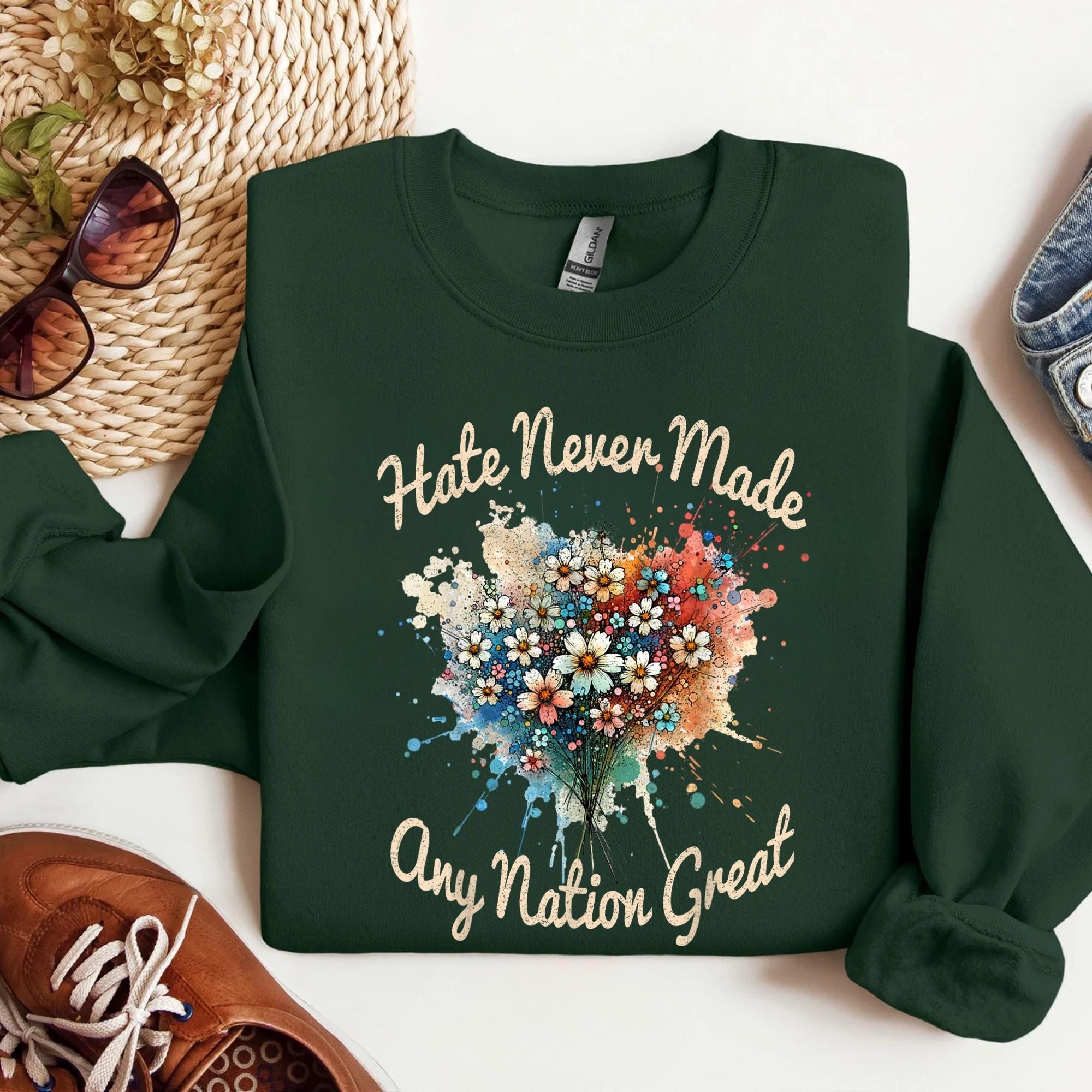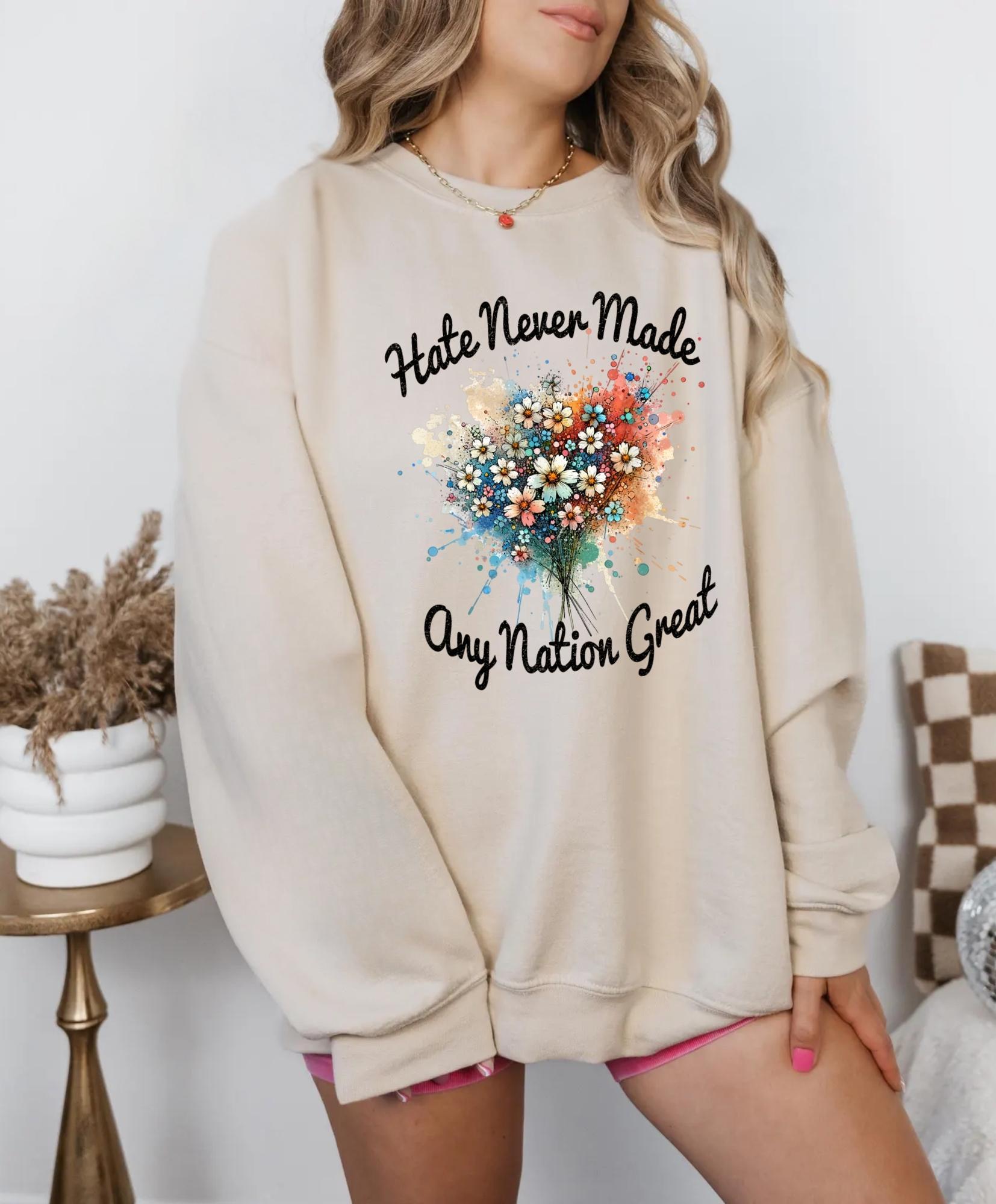 Hate Never Made Any Nation Great Quote Sweatshirt, Political Sweatshirt, Hate Any Nation Great Sweatshirt, Anti Racism Tee, Anti Fascist
