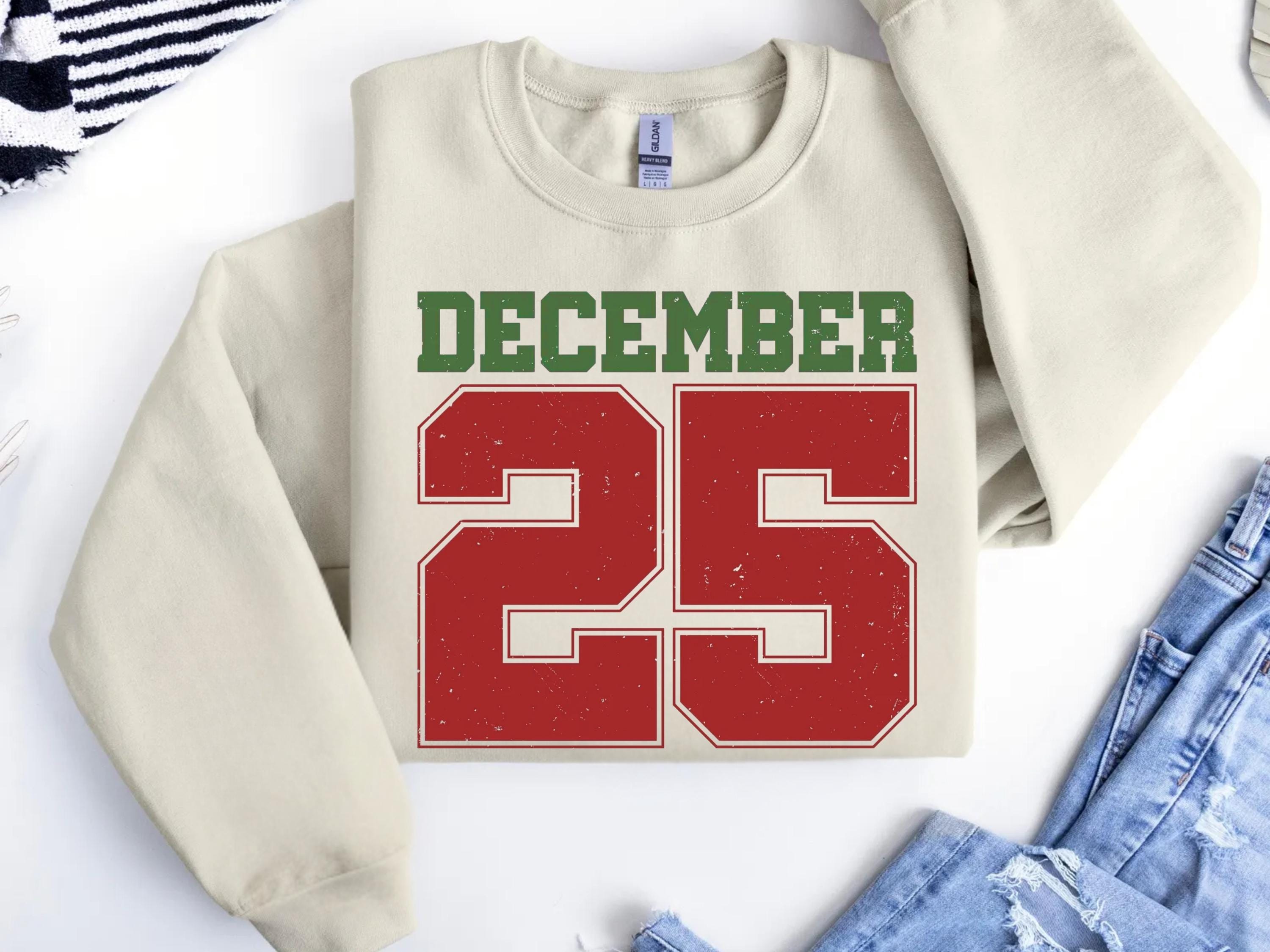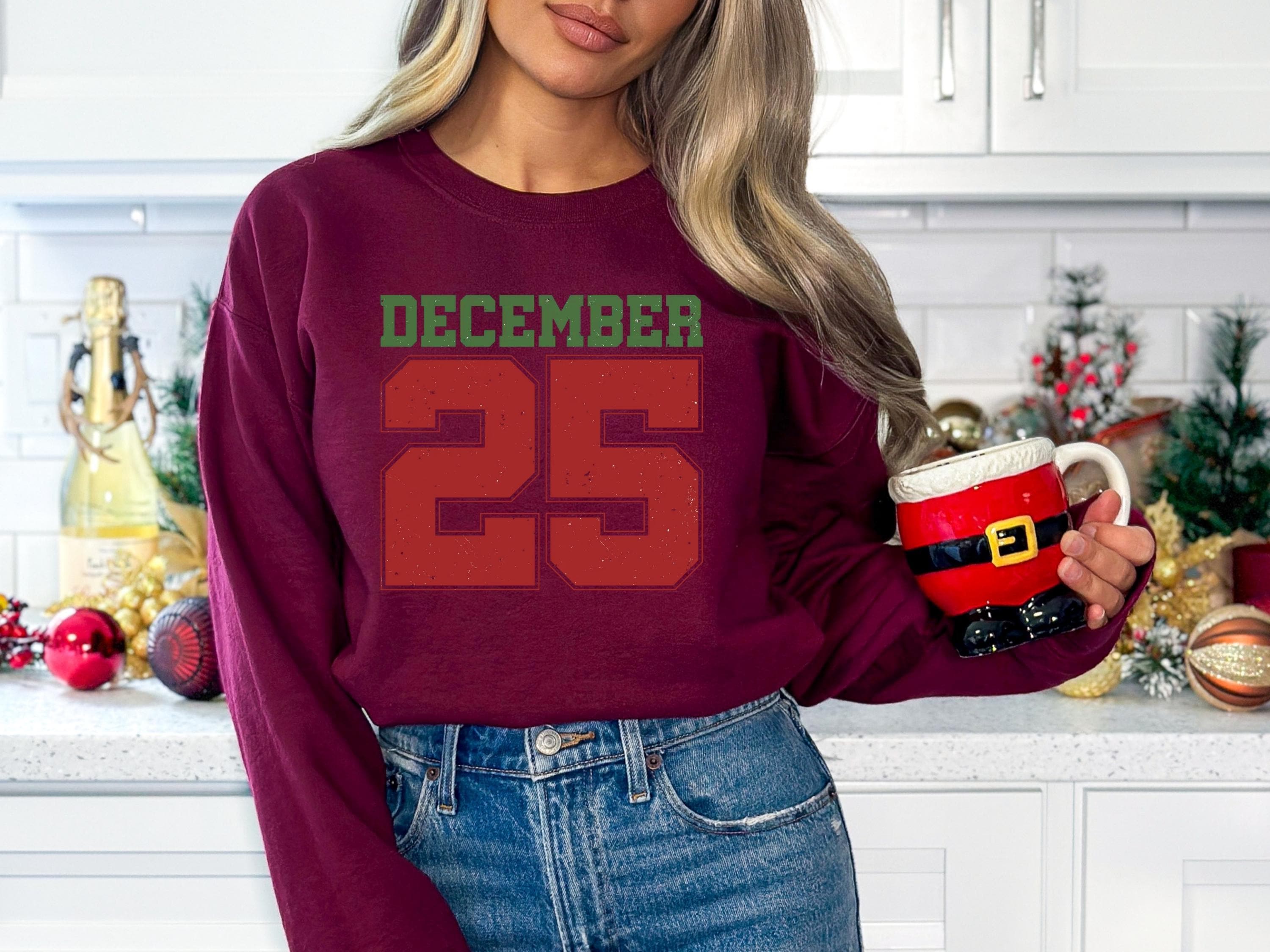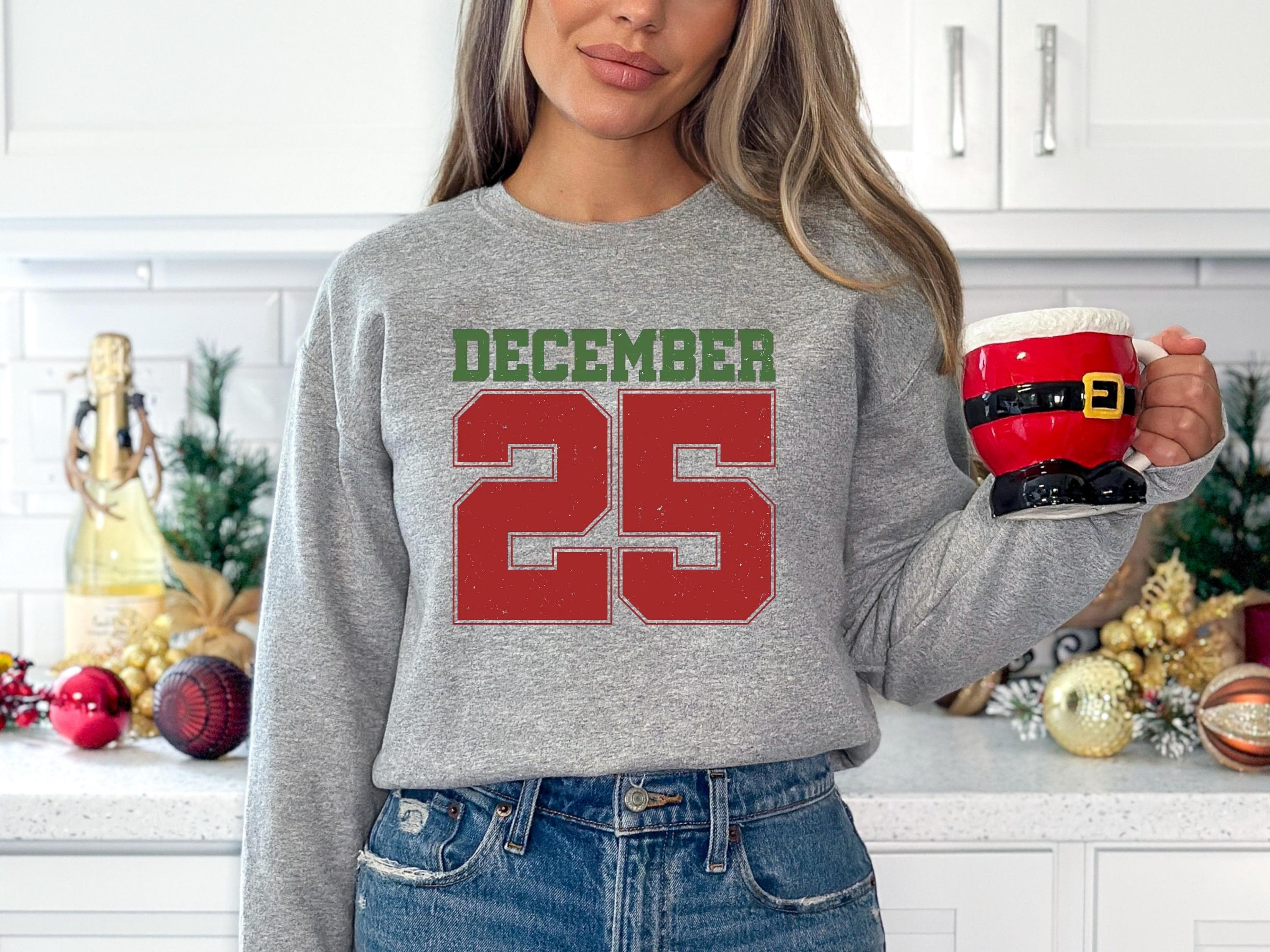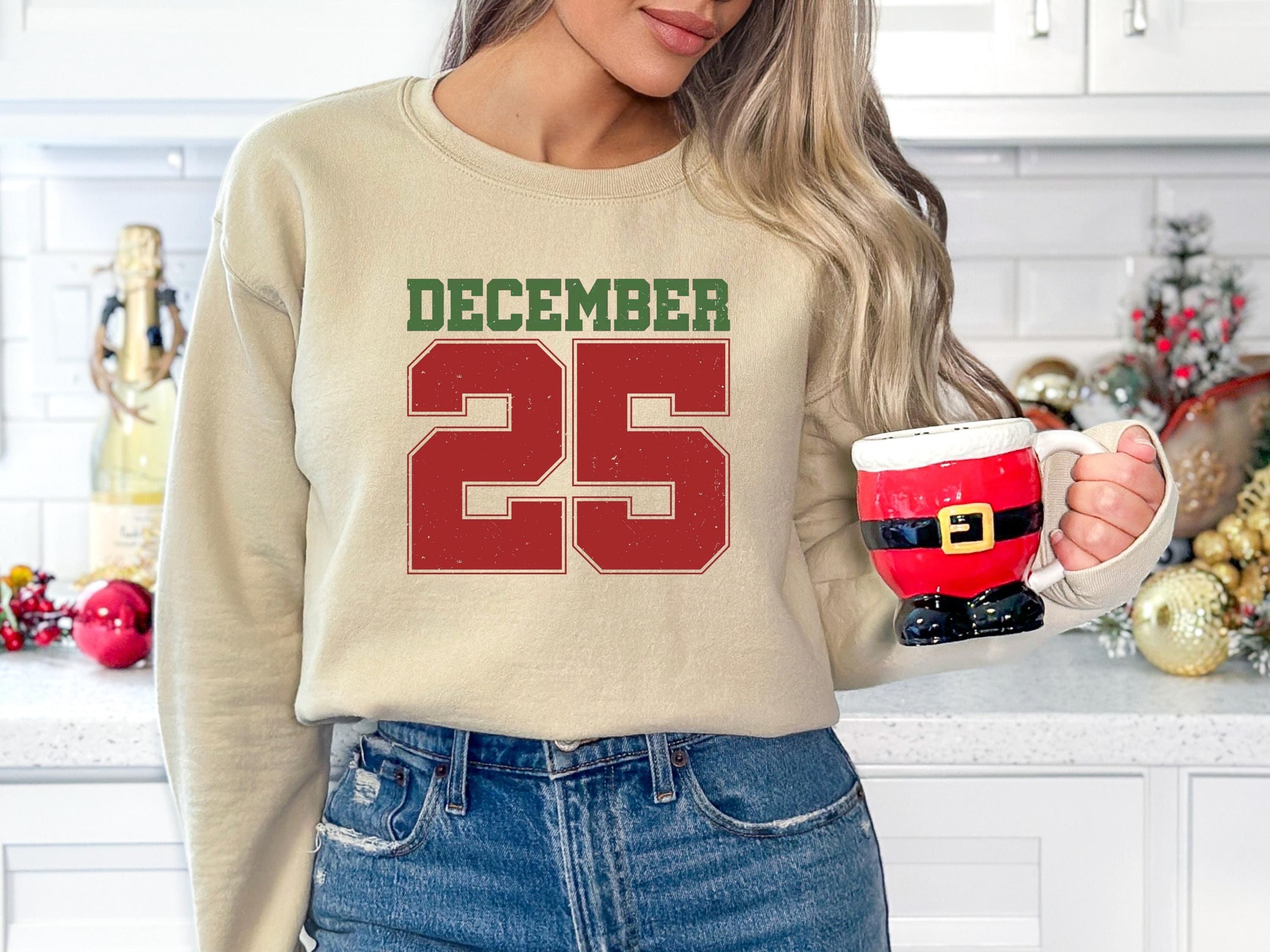 Retro Christmas Sweatshirt, December 25 Shirt, Holiday Clothing, Womens Christmas Shirts, Christmas Crewneck, Christmas Gift, Winter Sweater