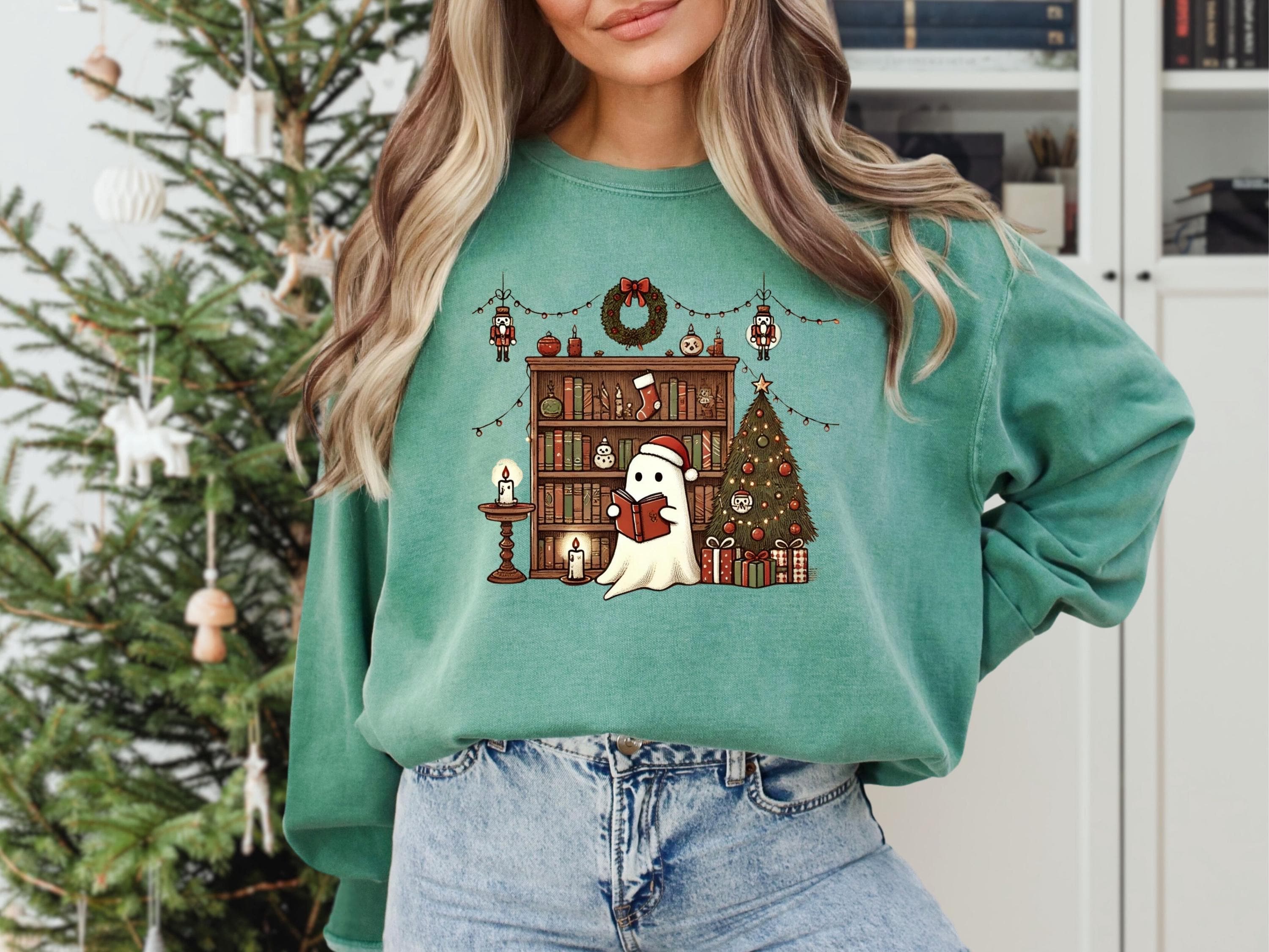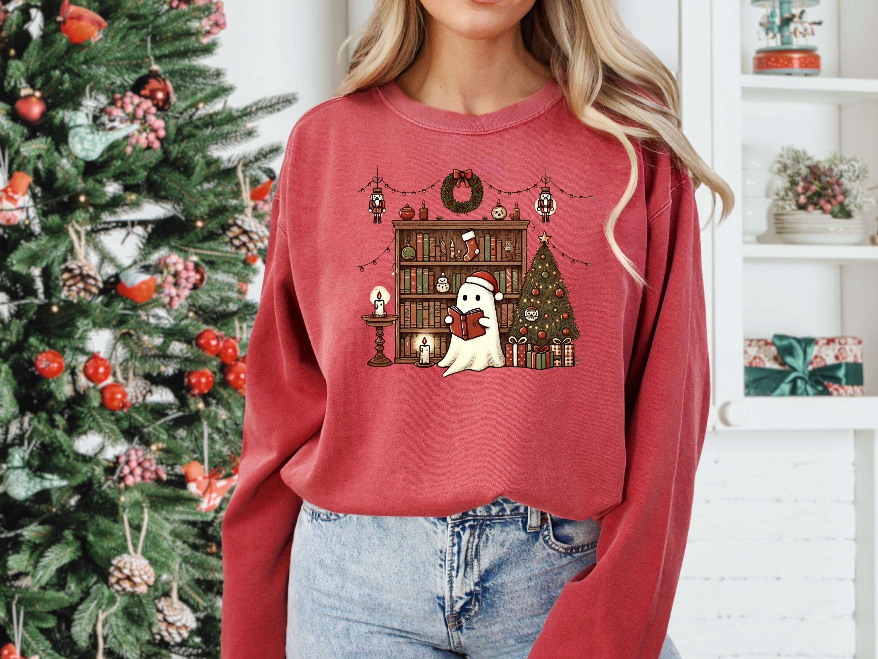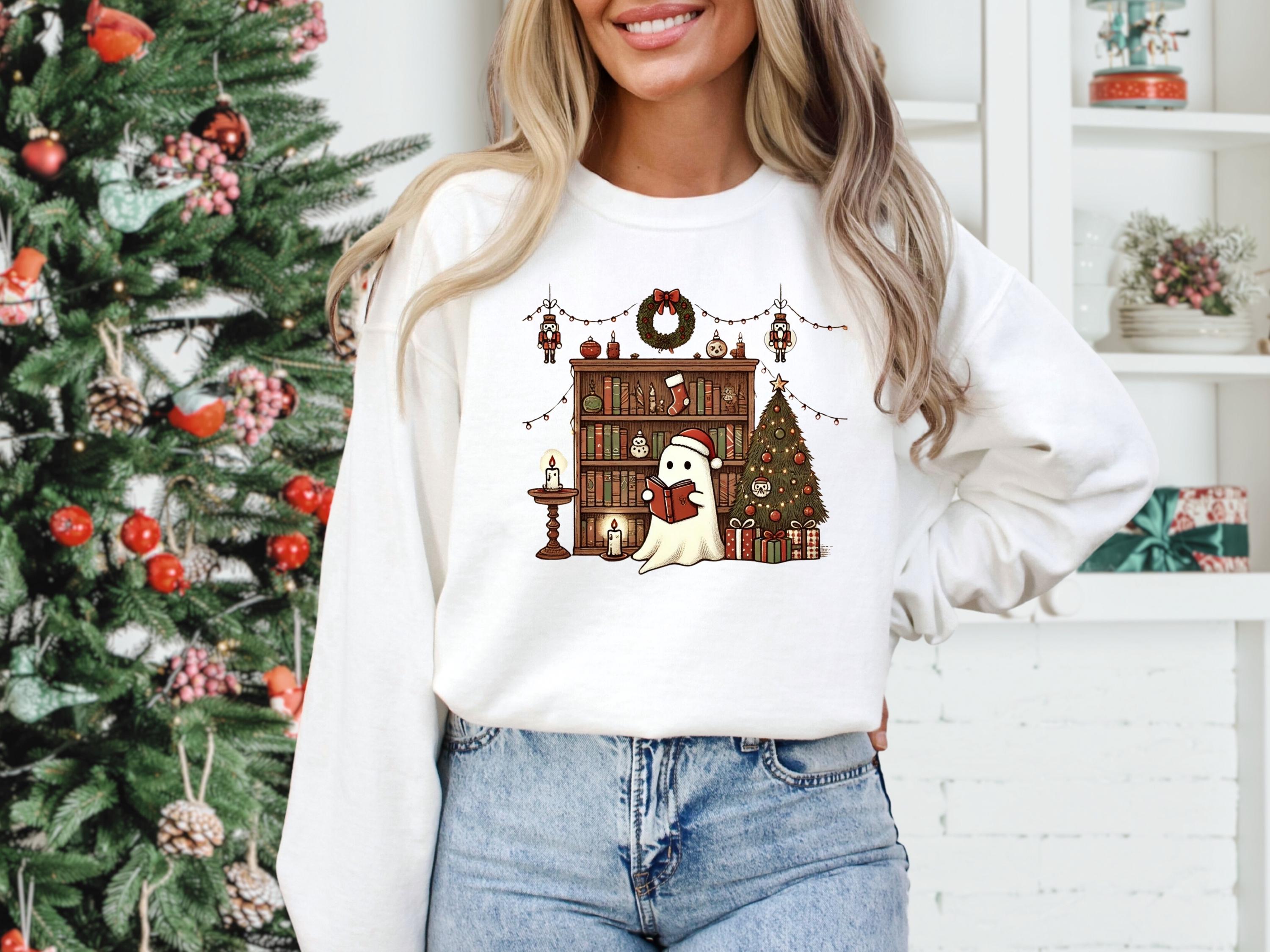 Christmas Ghost Book Sweatshirt, Cute Christmas Ghost Sweater, Ghost Reading Book,Christmas Books Shirt,Christmas Ghost,Christmas Gifts Book