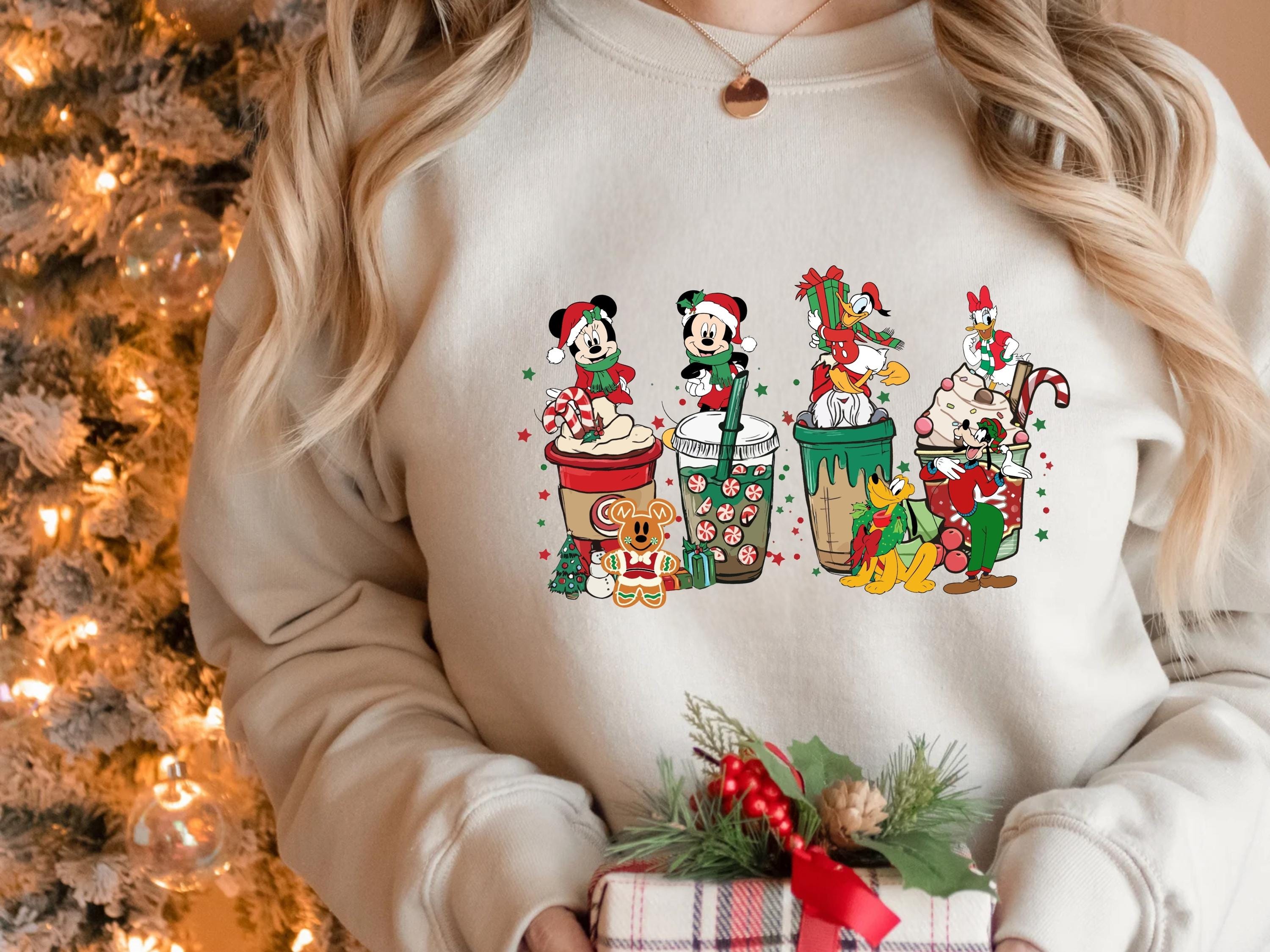 Mickey And Friends Drinks Christmas Coffee Latte Cup Sweater, Mickey's Very Merry Christmas Shirt, Disneyland Christmas Party Matching Gift