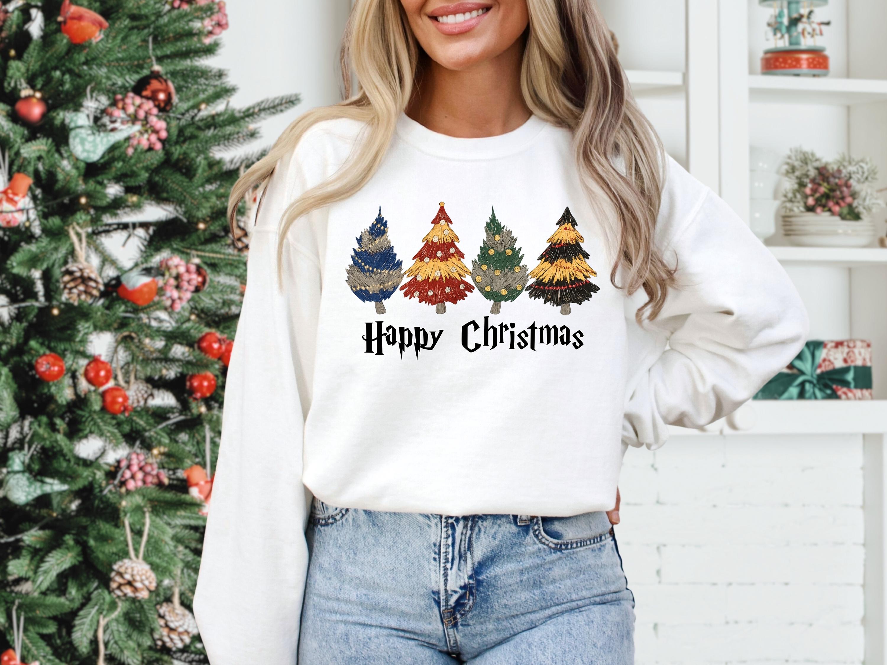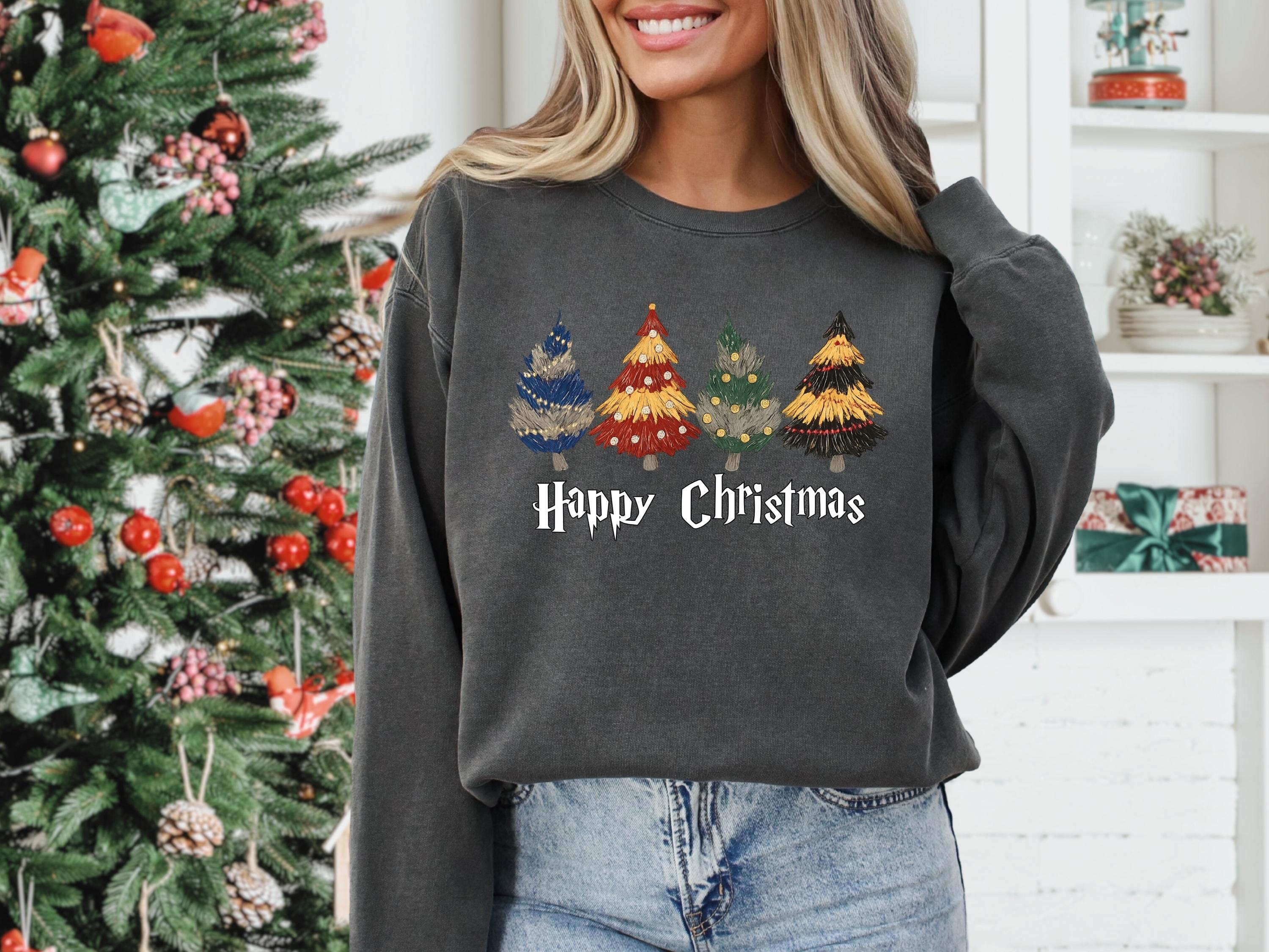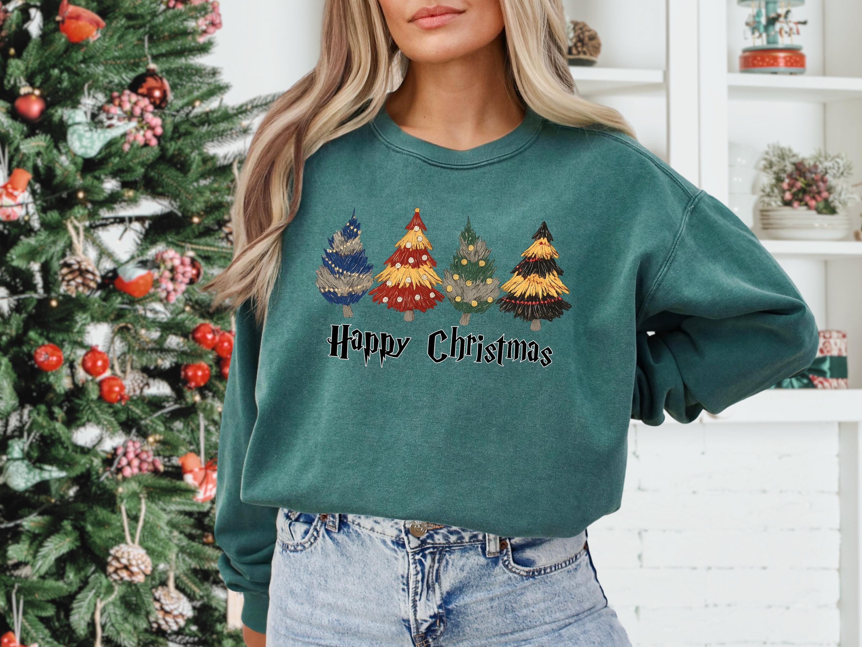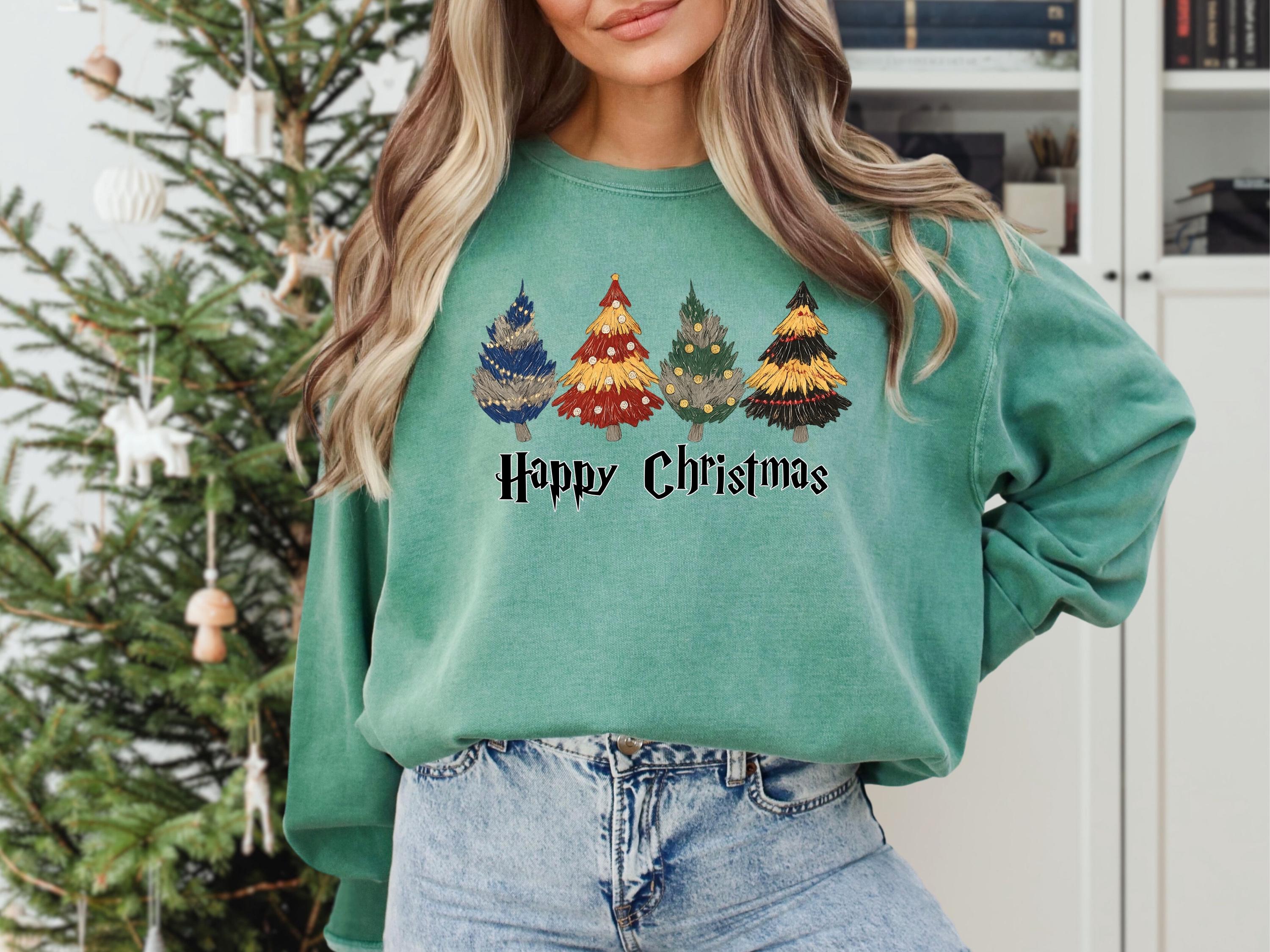 Christmas Tree Comfort Colors Shirt, HP Wizard Houses Christmas Tree Shirt, Happy Christmas Wizard Trees Shirt, Christmas Magical Pine Trees