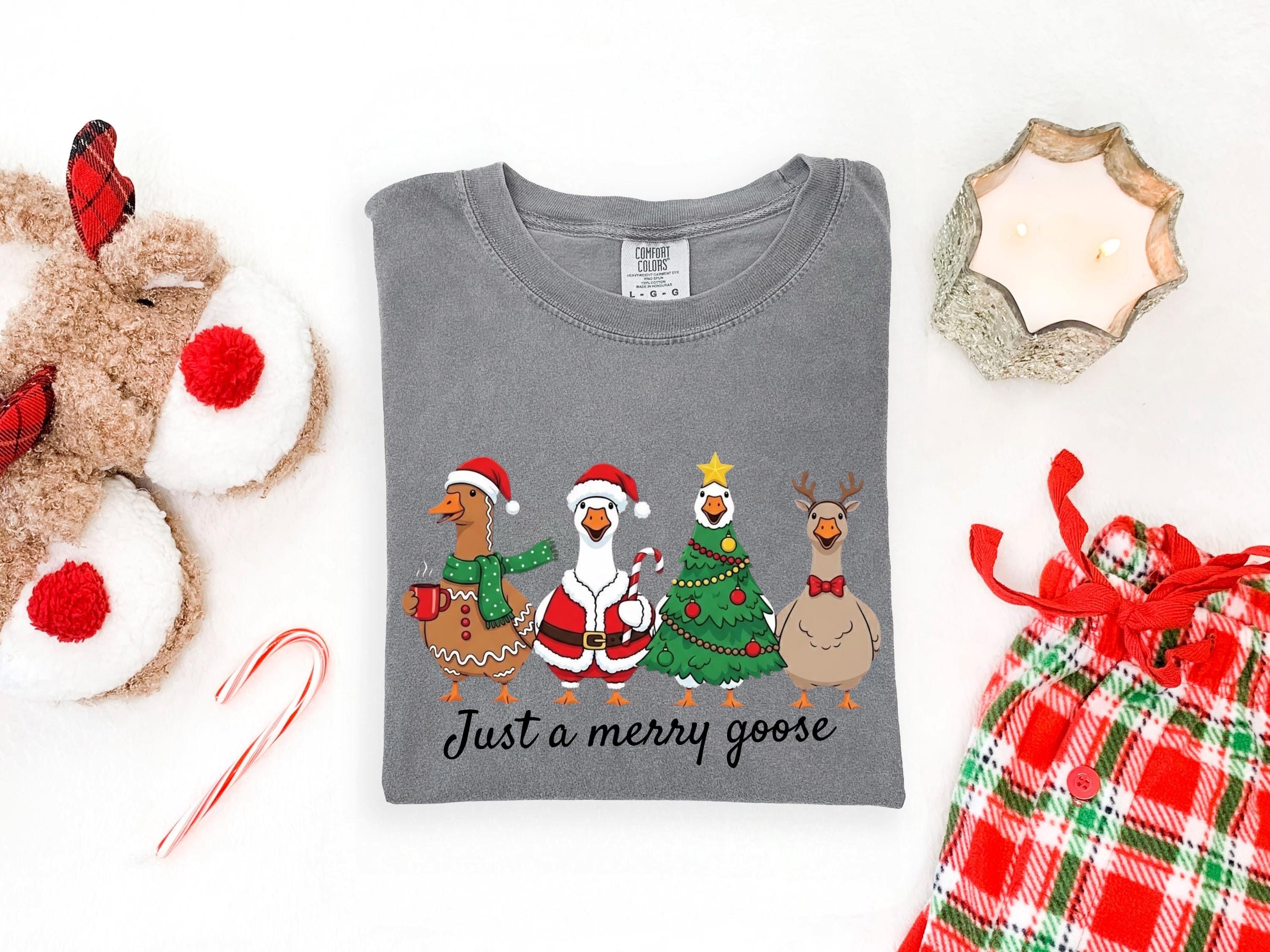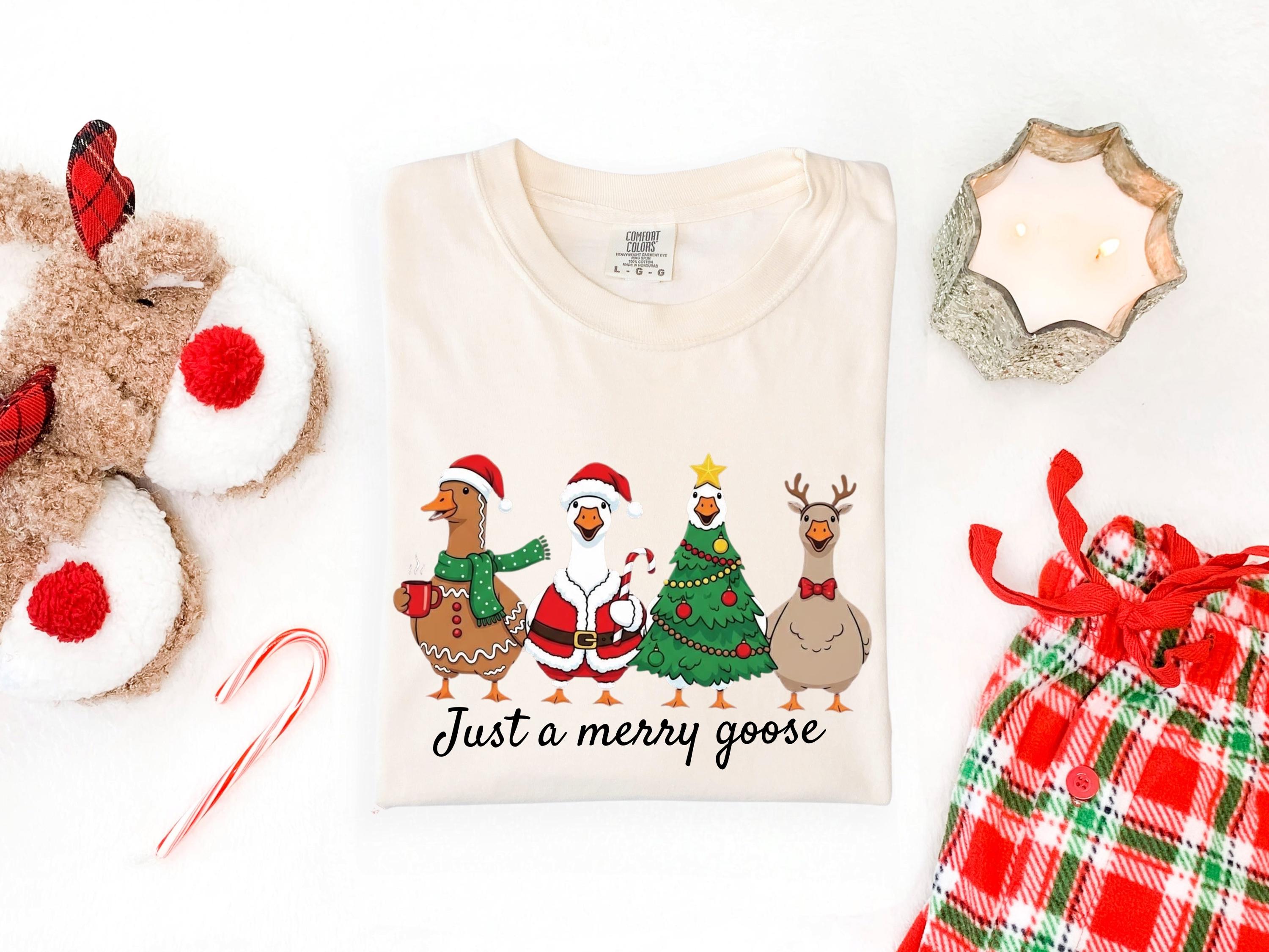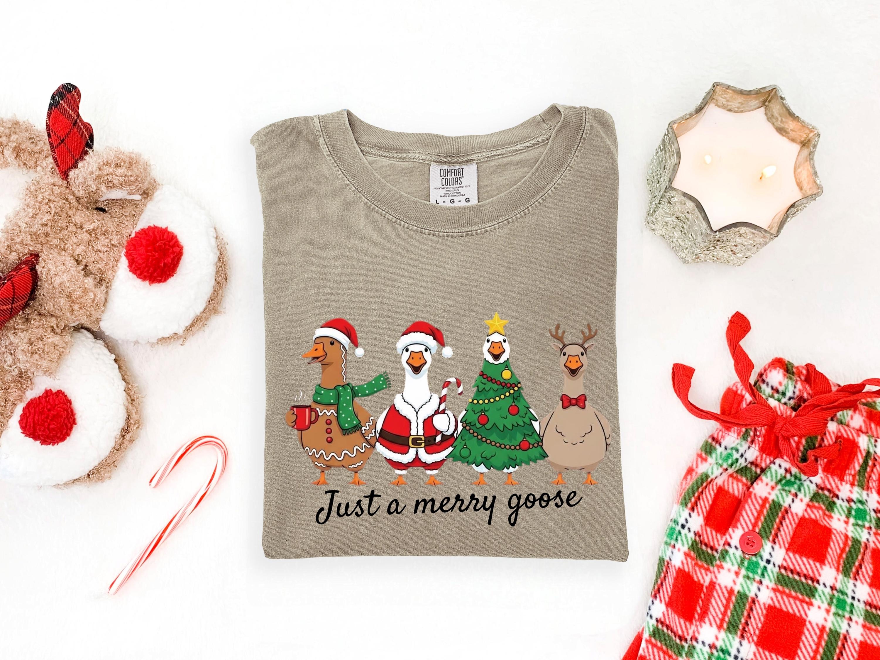 Christmas Comfort Colors Goose Shirt Funny Holiday Santa Lights Tshirt Festive Jolly Goose Tee Merry Christmas Shirt Just A Merry Goose Tee