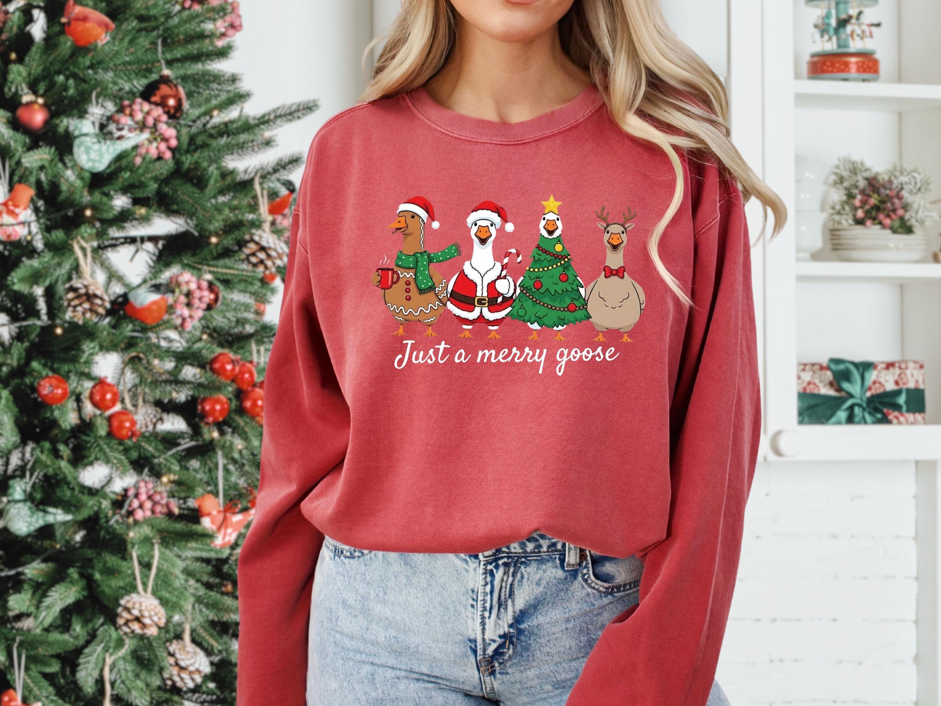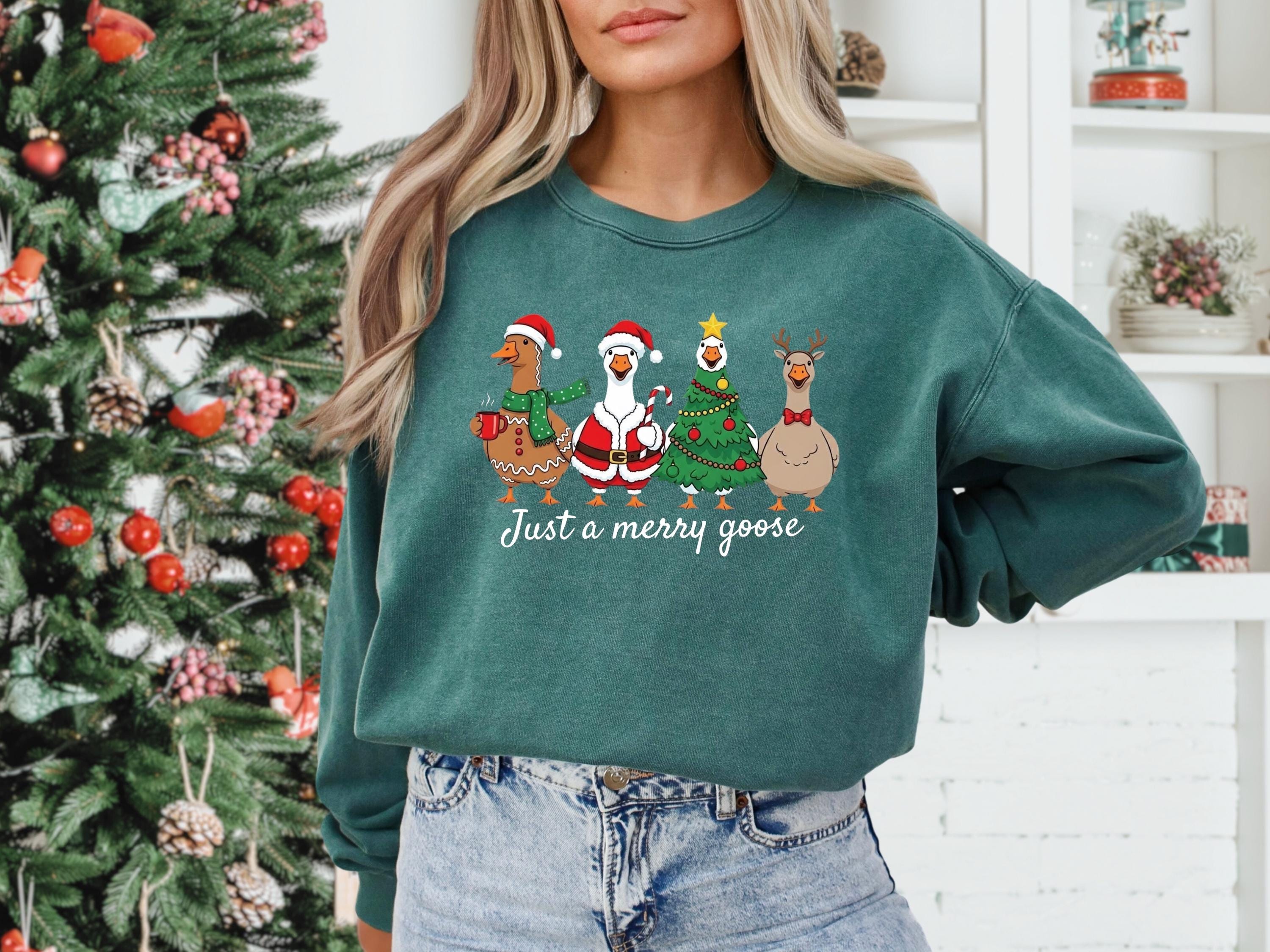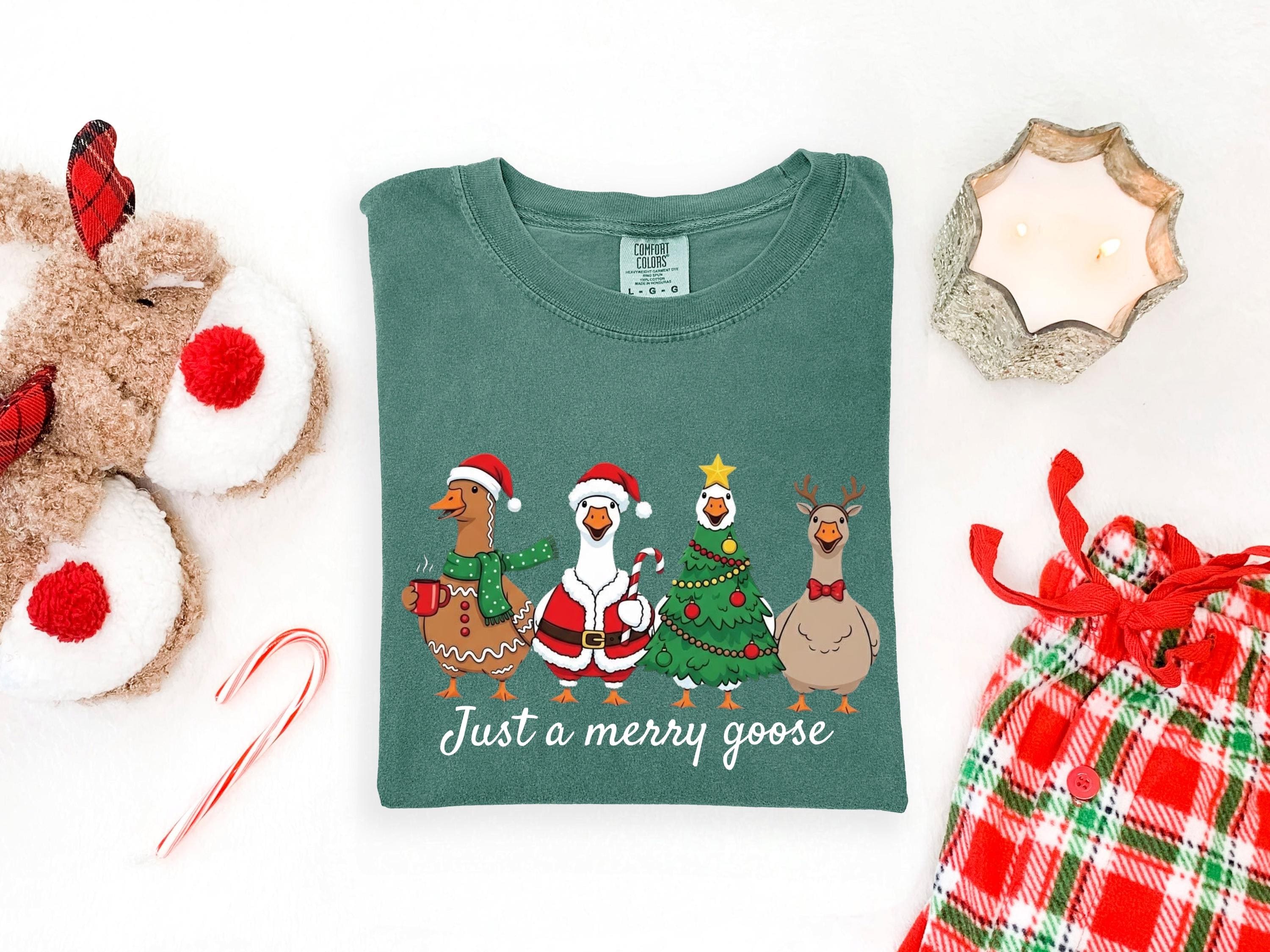 Christmas Comfort Colors Goose Shirt Funny Holiday Santa Lights Tshirt Festive Jolly Goose Tee Merry Christmas Shirt Just A Merry Goose Tee
