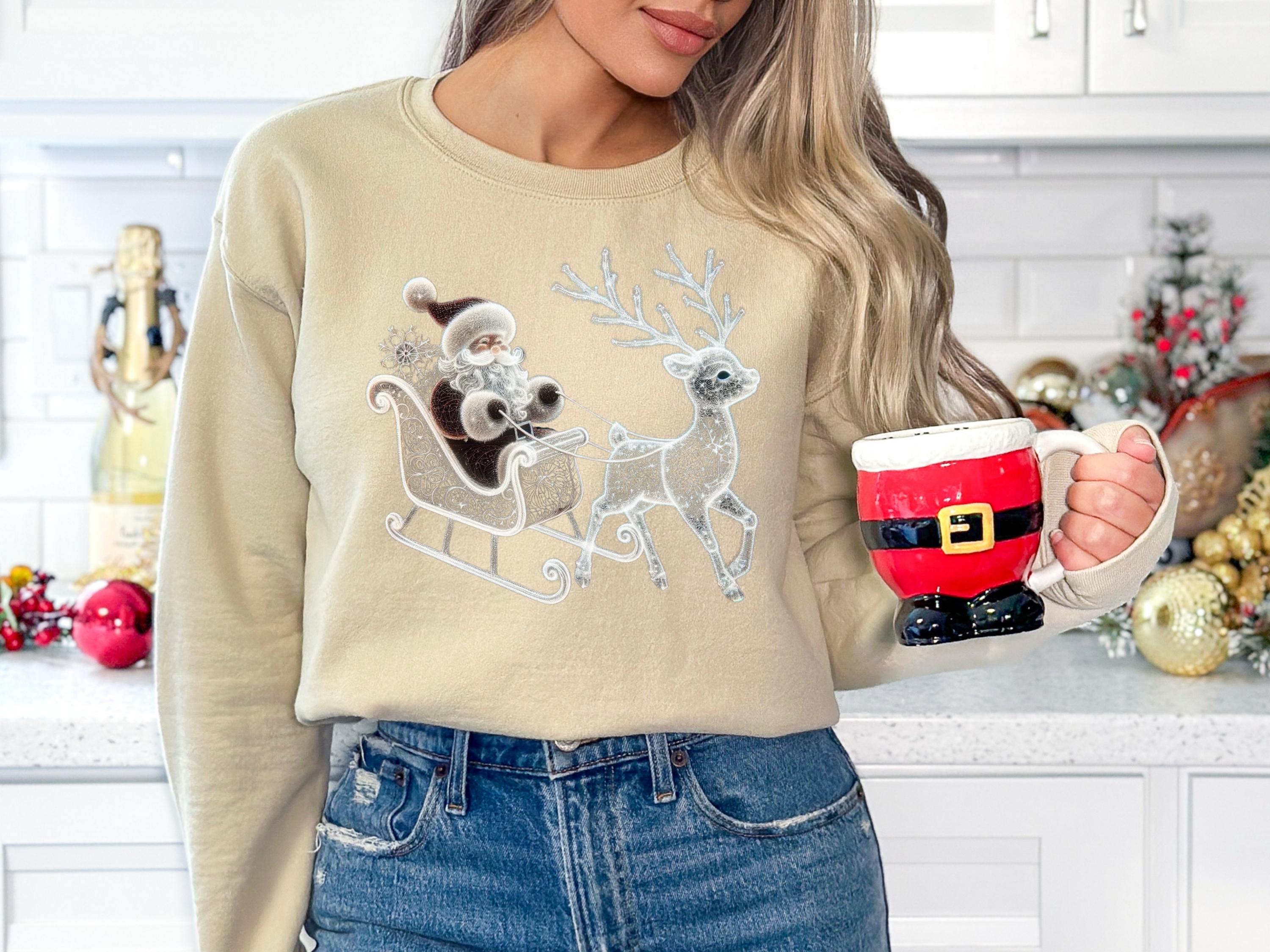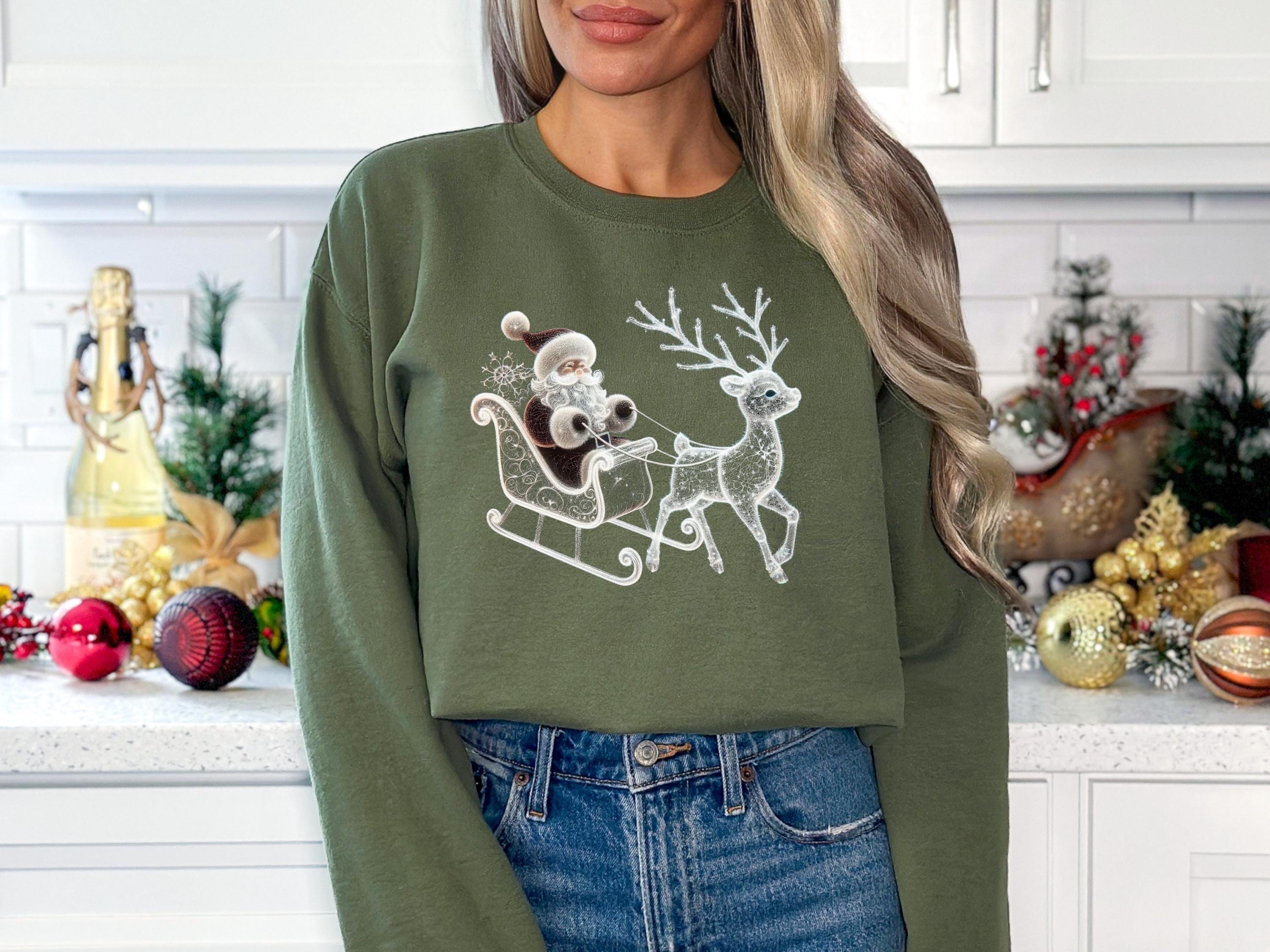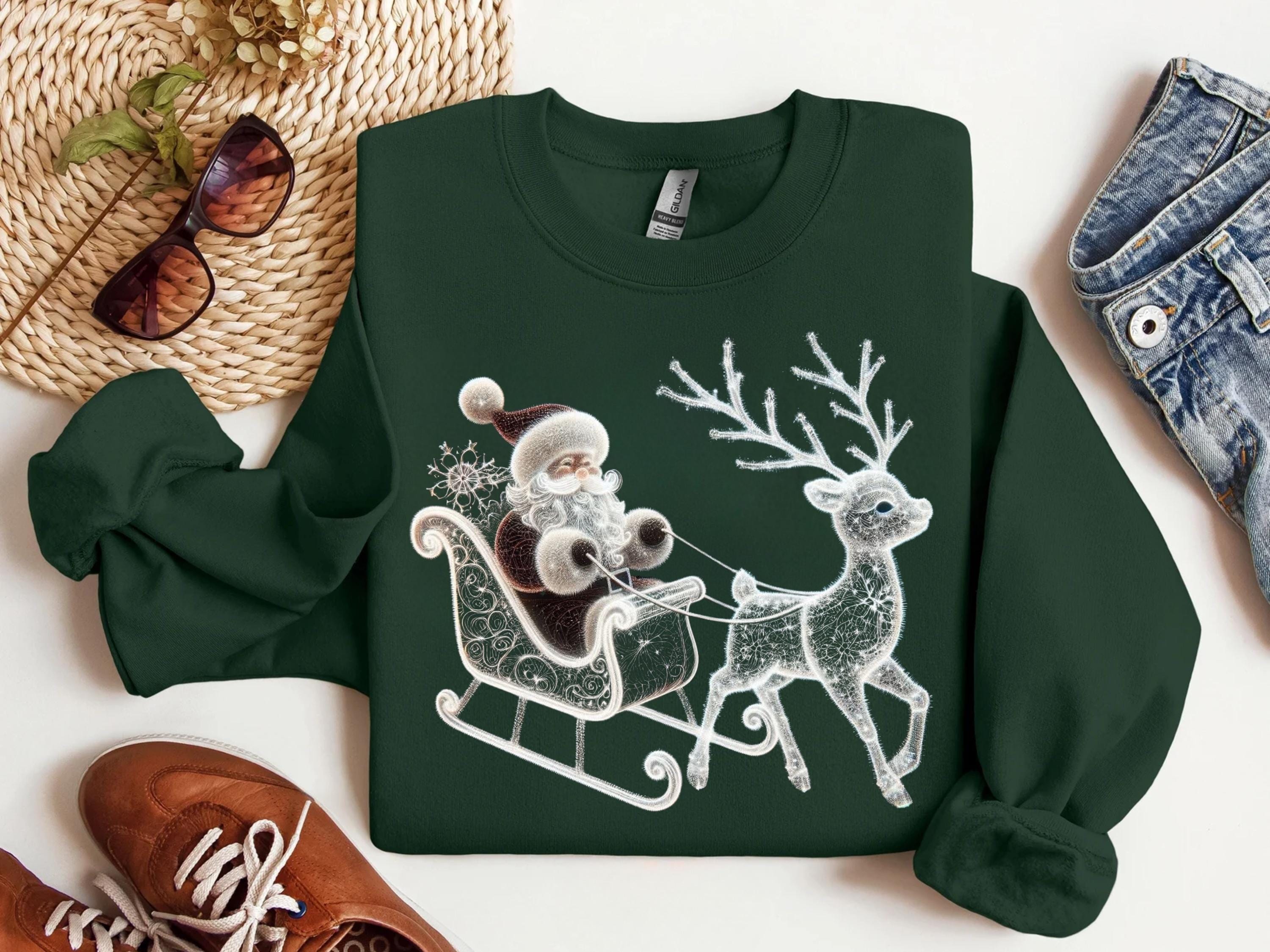 Santa and Reindeer Sweatshirt, Family Holiday Sweater, Deer T-Shirt, Santa Claus Shirt, Classic Christmas Gift, Winter Scene Tee