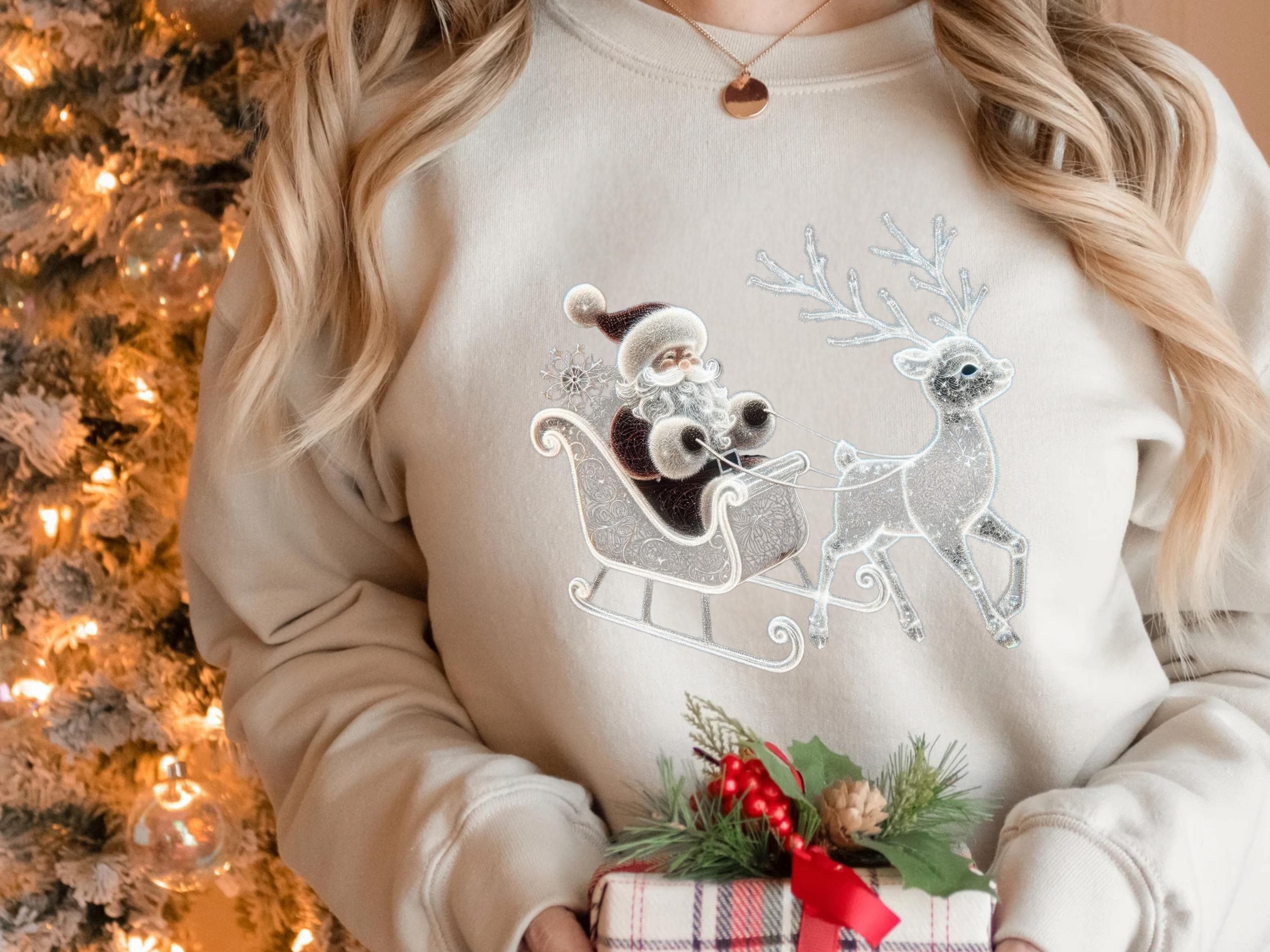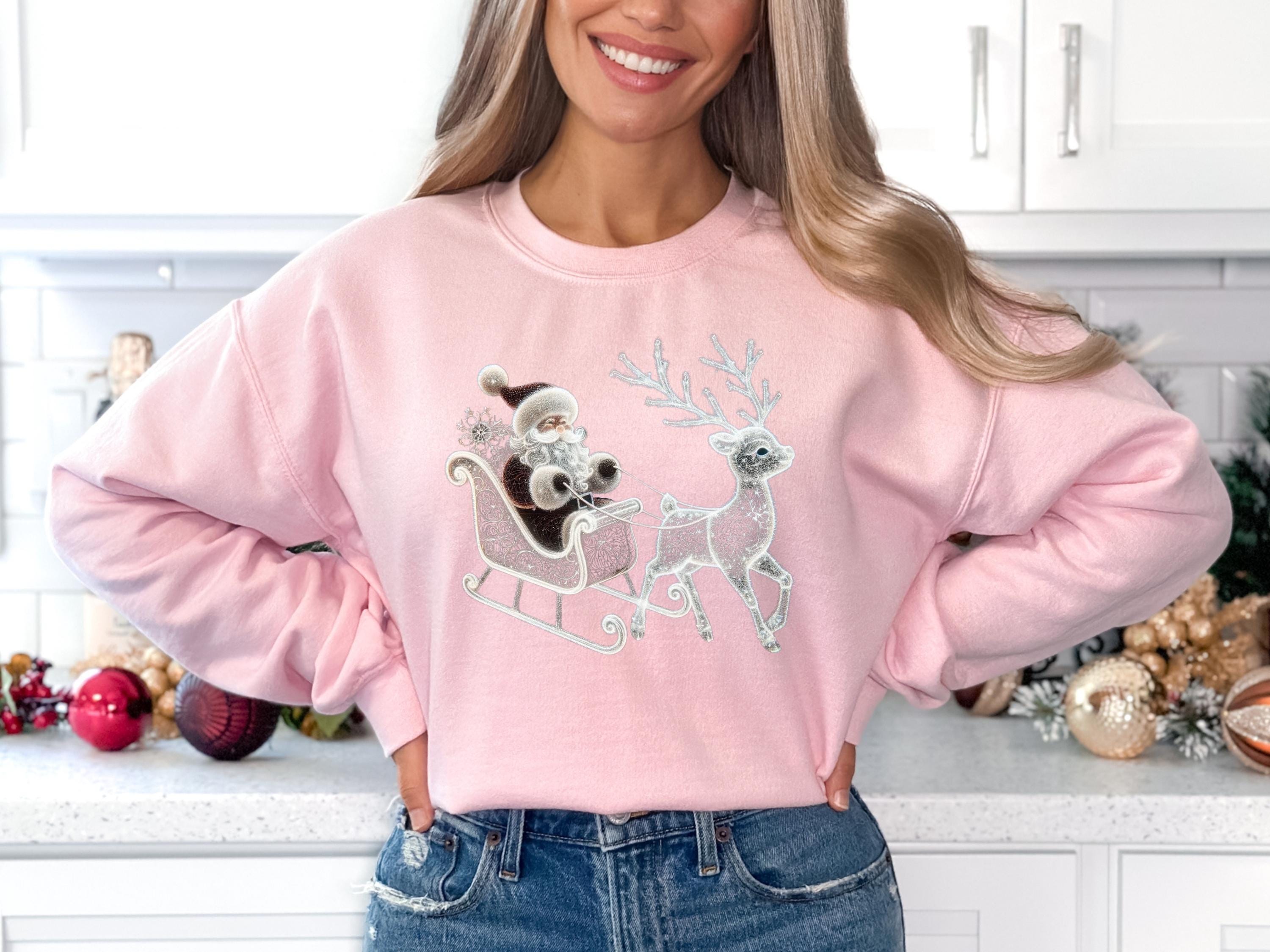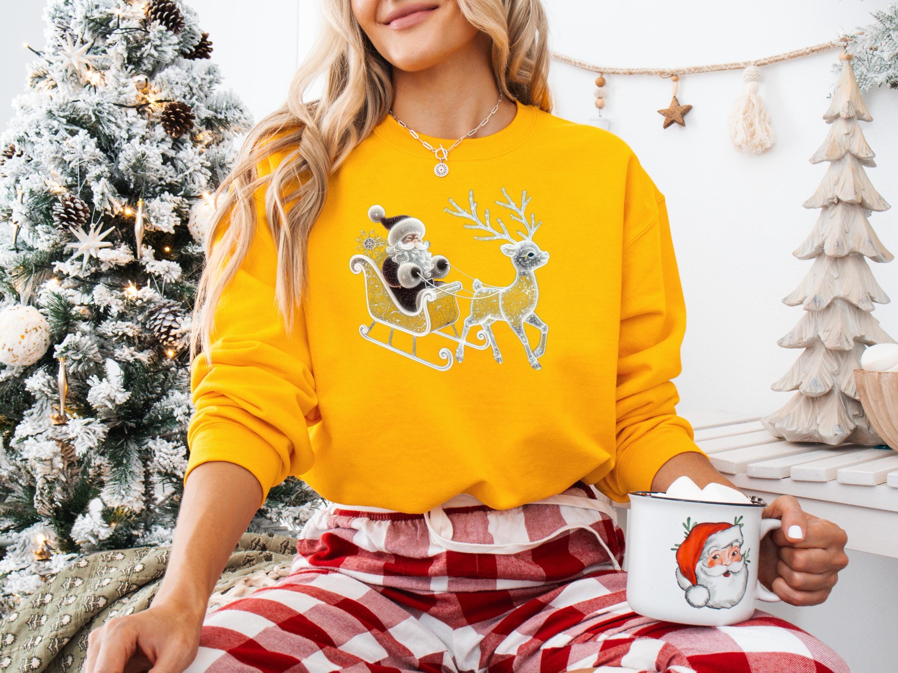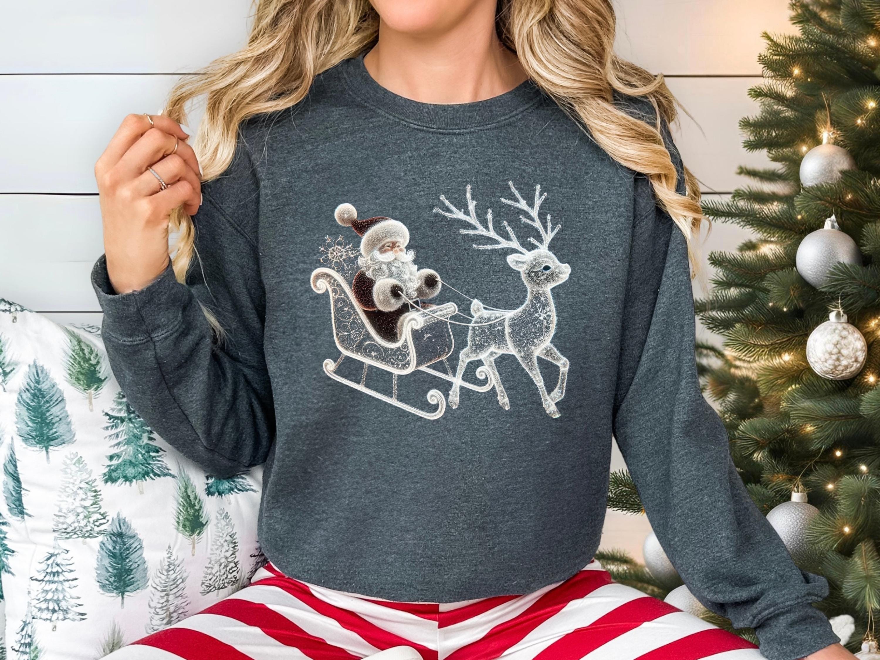 Santa and Reindeer Sweatshirt, Family Holiday Sweater, Deer T-Shirt, Santa Claus Shirt, Classic Christmas Gift, Winter Scene Tee