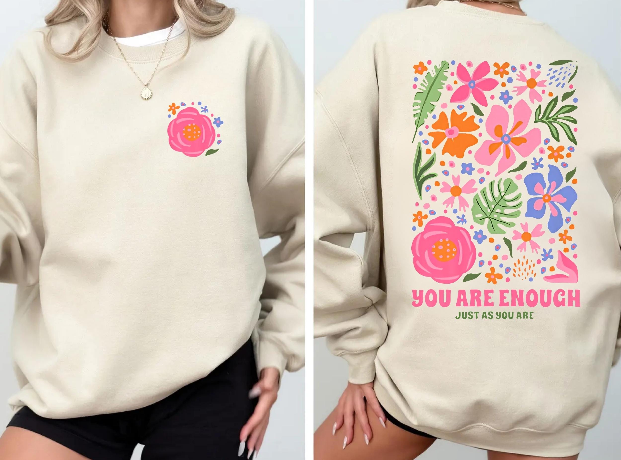 You Are Enough Flower Sweatshirt or Hoodie, Flower Market Beach Hoodie, Vsco hoodie, Aesthetic Sweatshirt,Summer Vibes Hoodie,Tumblr Sweater