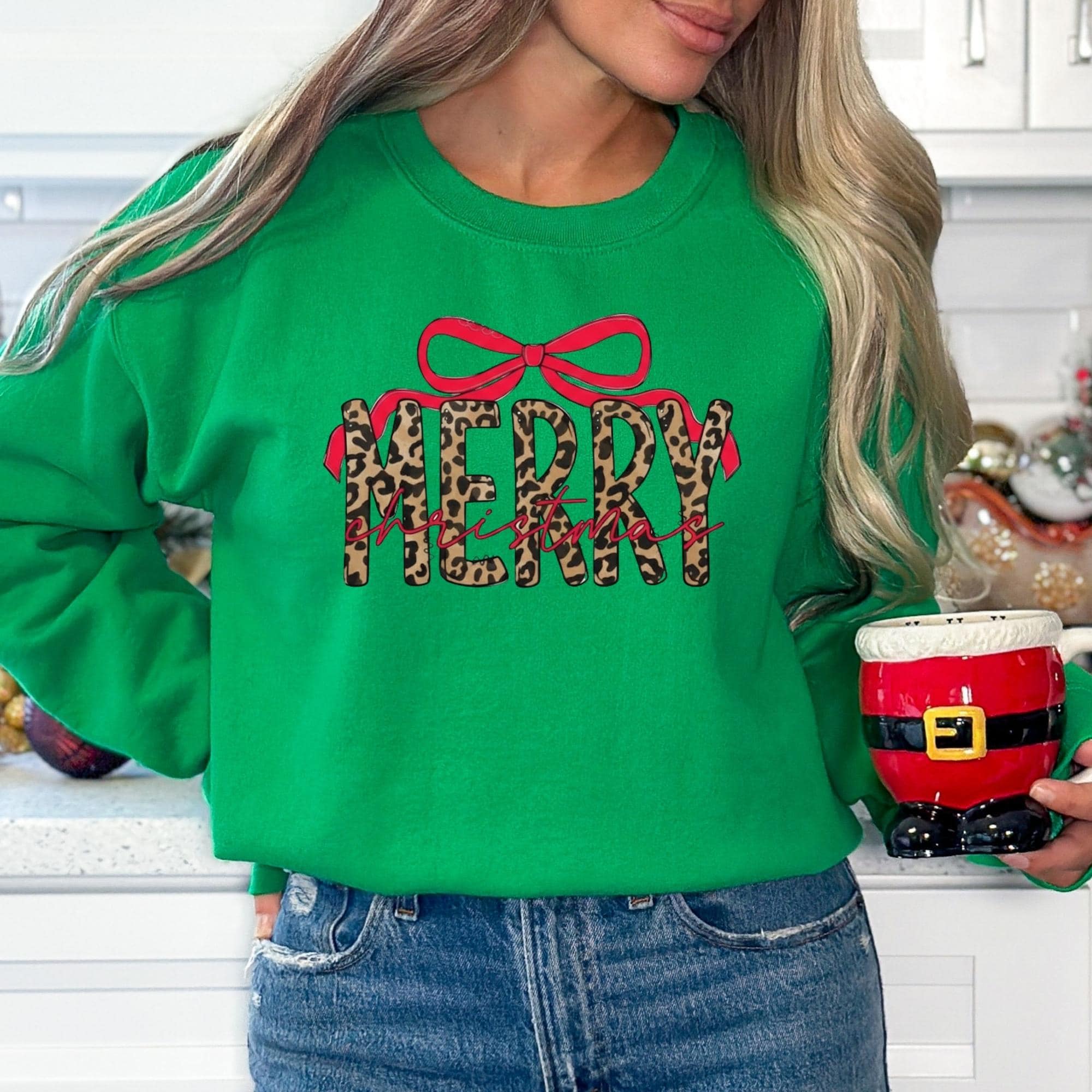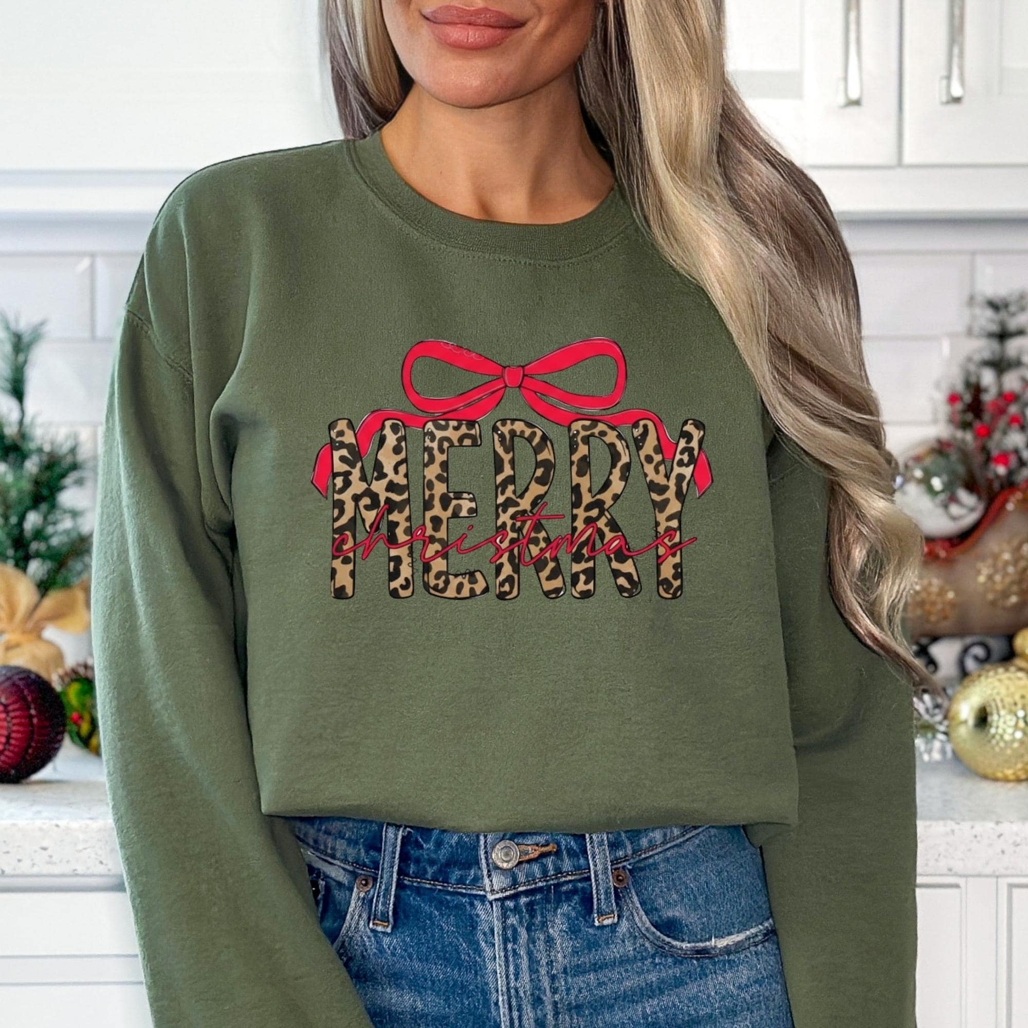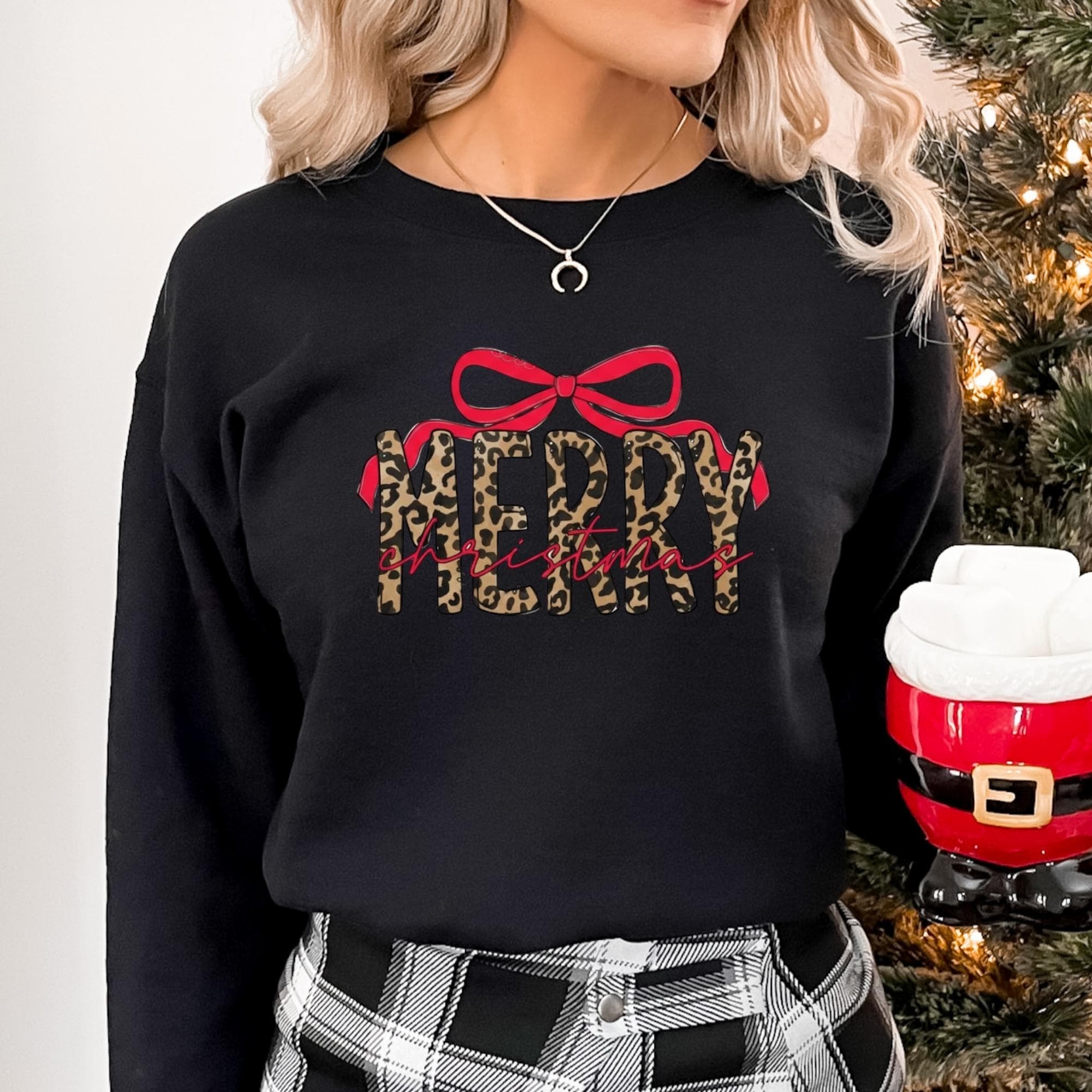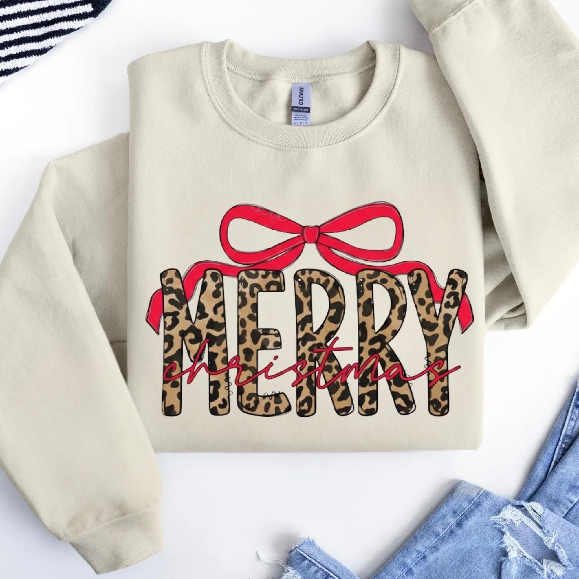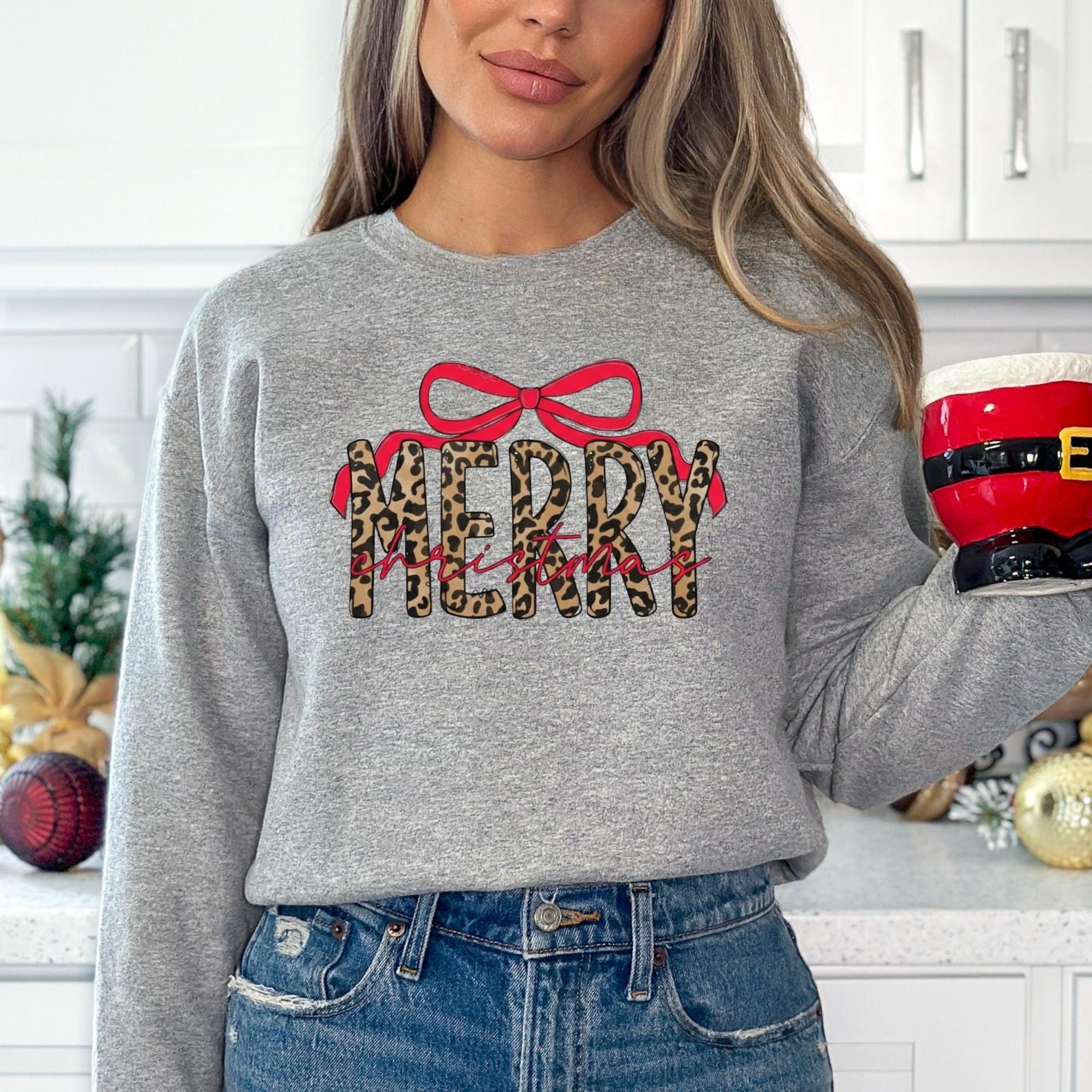 Coquette Leopard Merry Christmas Sweatshirt, Merry Christmas Shirt, Preppy Christmas Tee, Coquette Shirt, Xmas Coquette Preppy Leopard Shirt