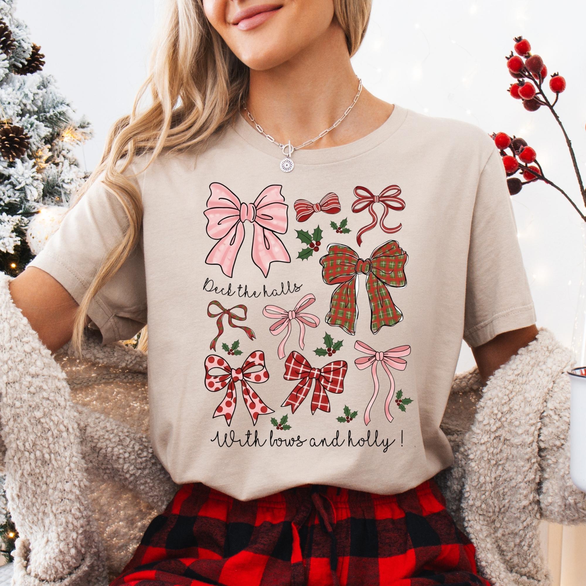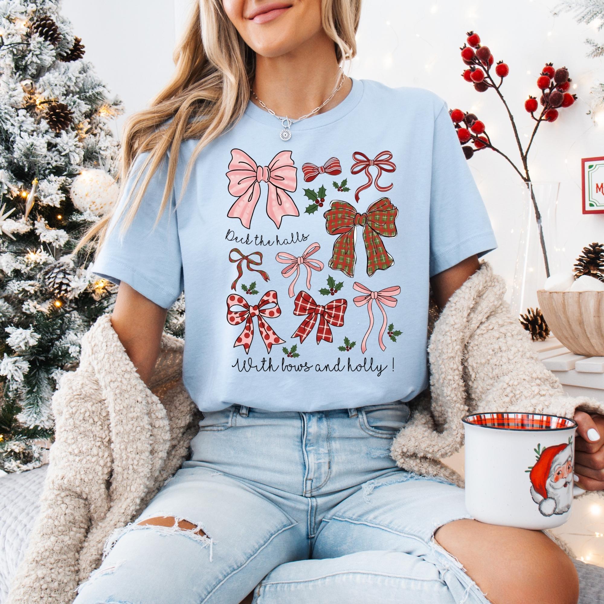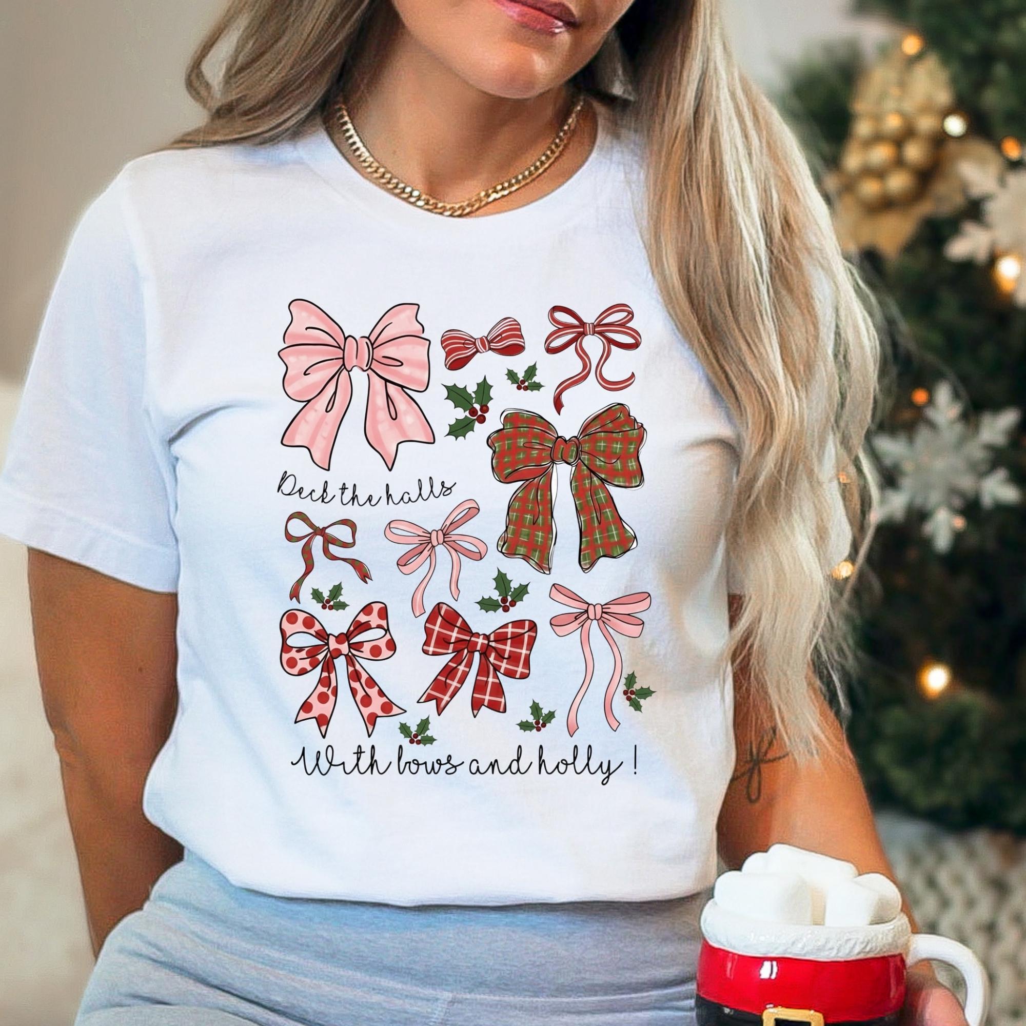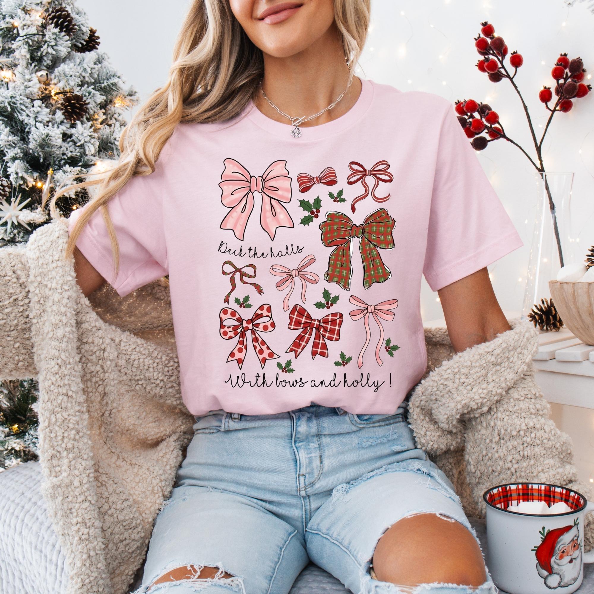 Christmas Coquette Bow Shirt, Holiday Shirt For Women, Deck The Halls Tee, Girly Christmas Shirt, Cute Xmas Gift For Girl, Coquette Bow Tee π Your Everyday Go-To β Unique Design Unisex T-Shirt and Sweatshirt