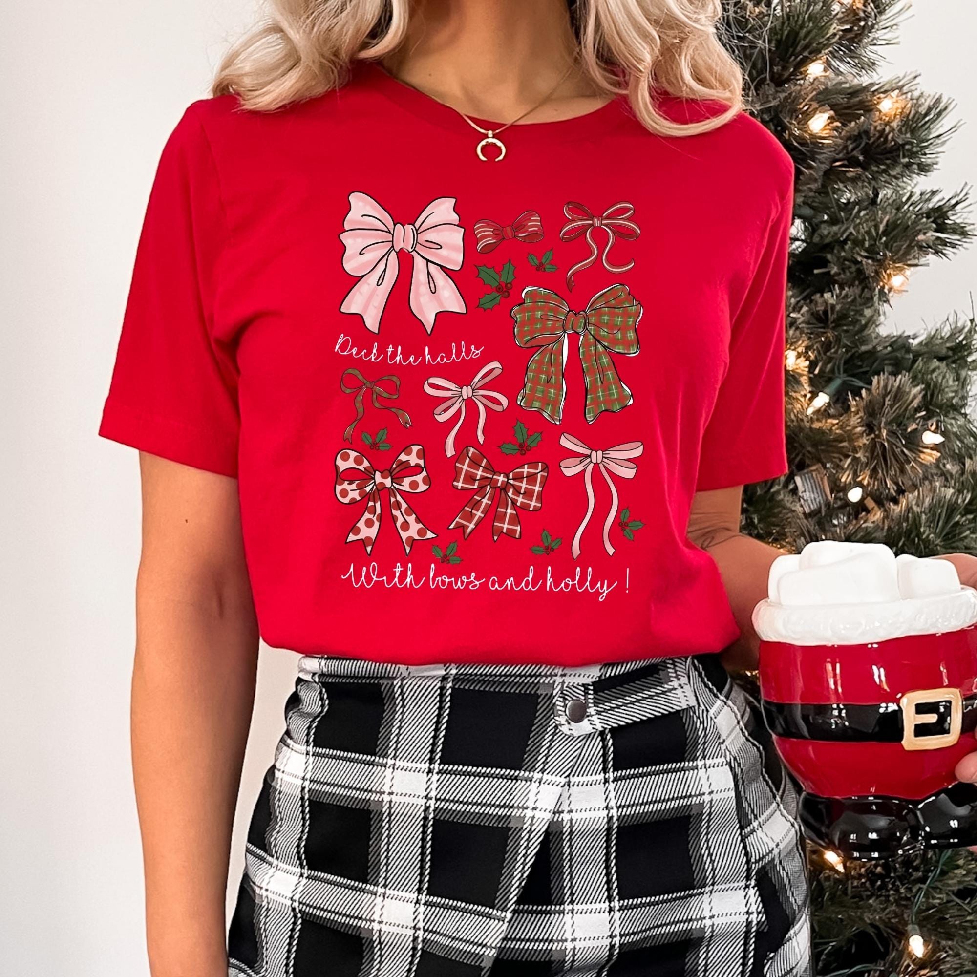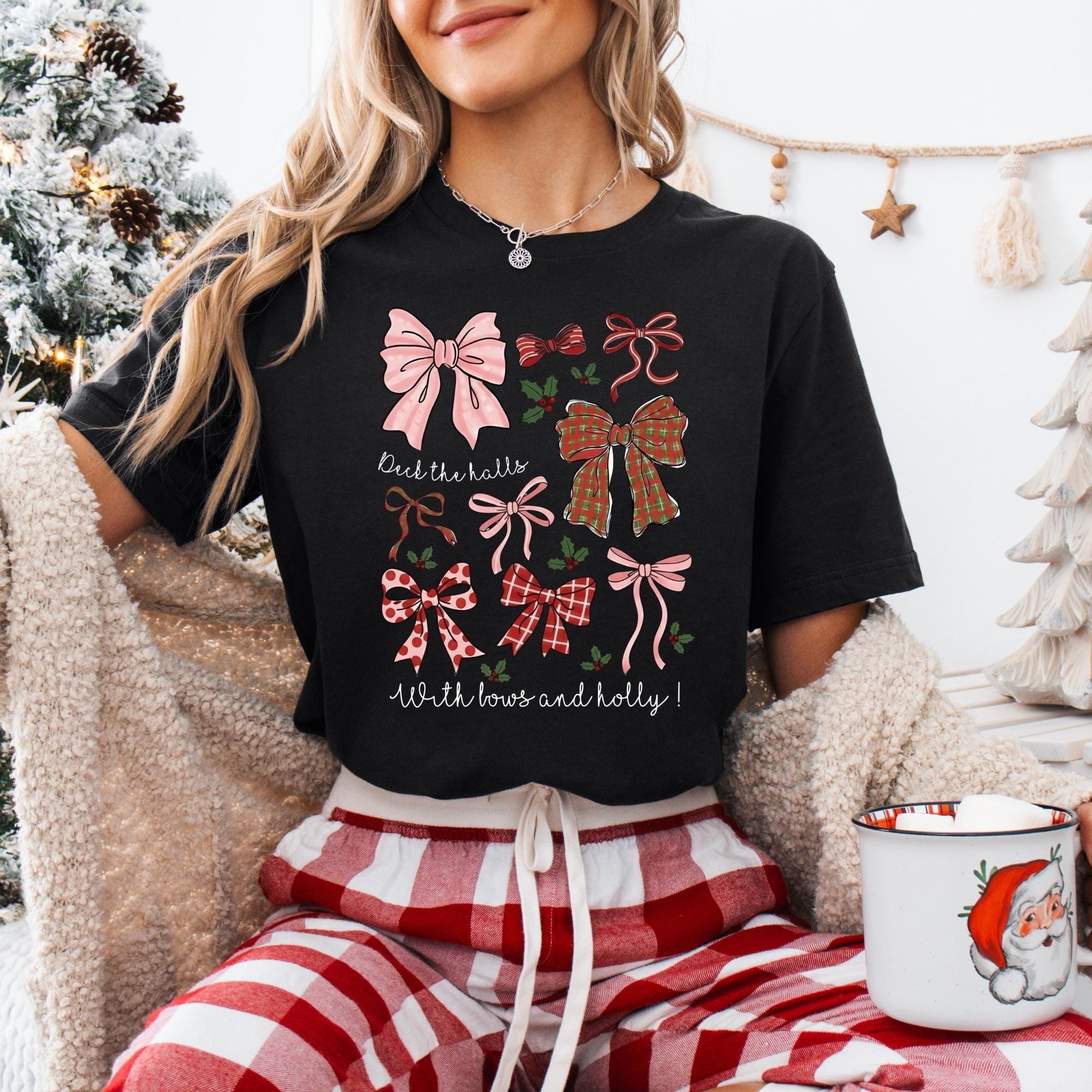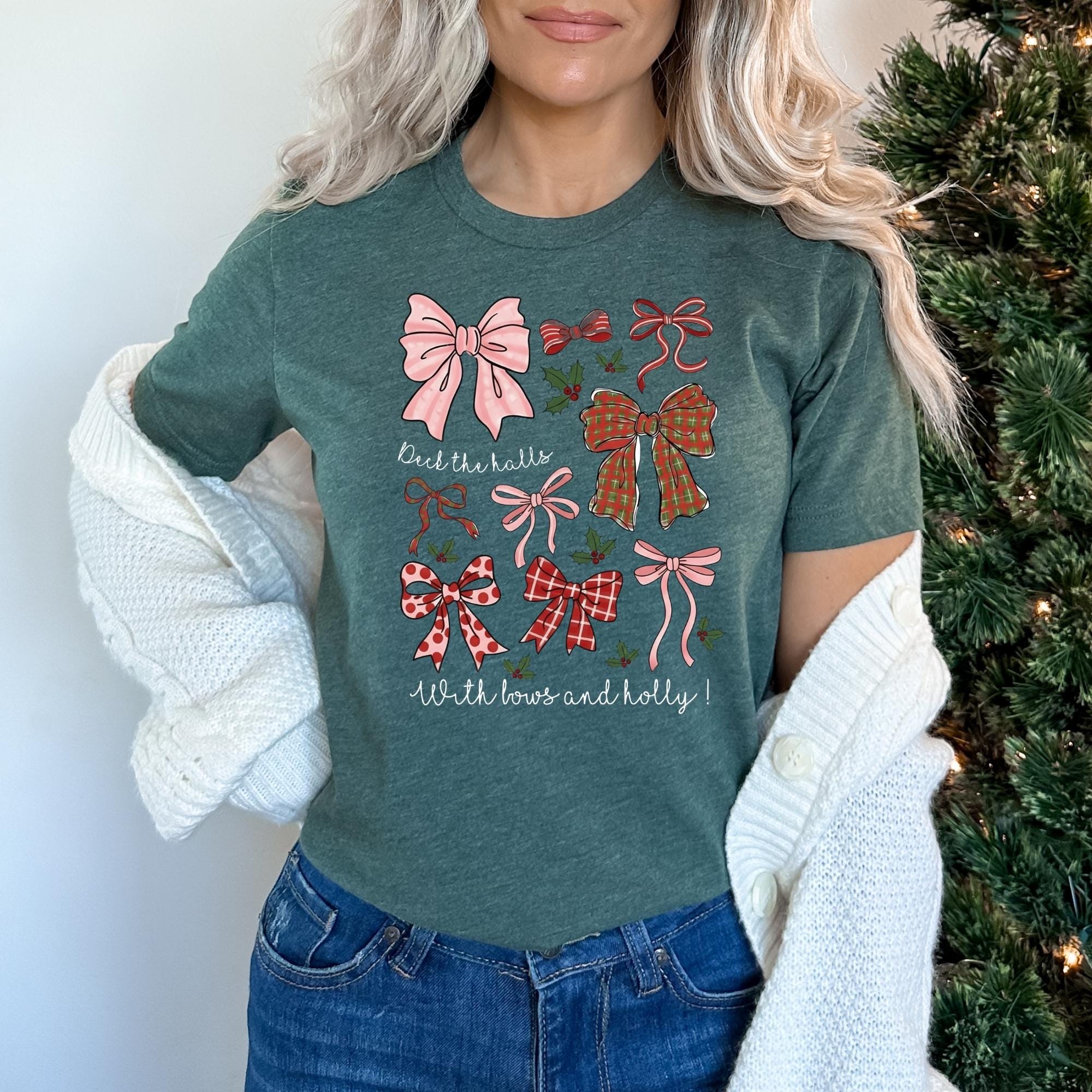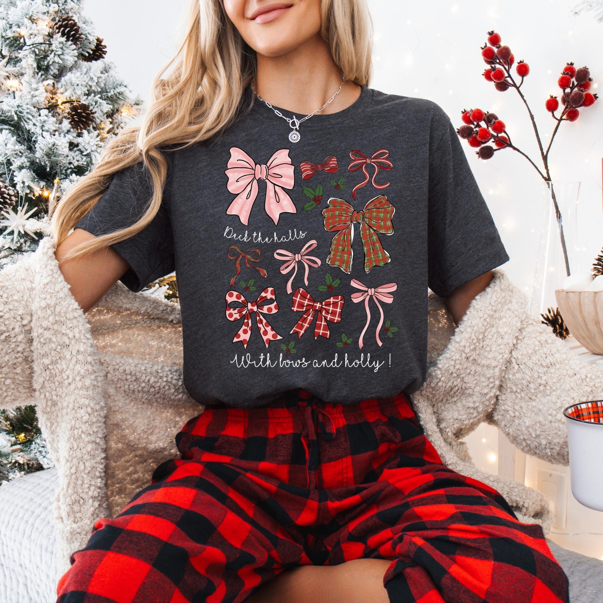 Christmas Coquette Bow Shirt, Holiday Shirt For Women, Deck The Halls Tee, Girly Christmas Shirt, Cute Xmas Gift For Girl, Coquette Bow Tee π Your Everyday Go-To β Unique Design Unisex T-Shirt and Sweatshirt