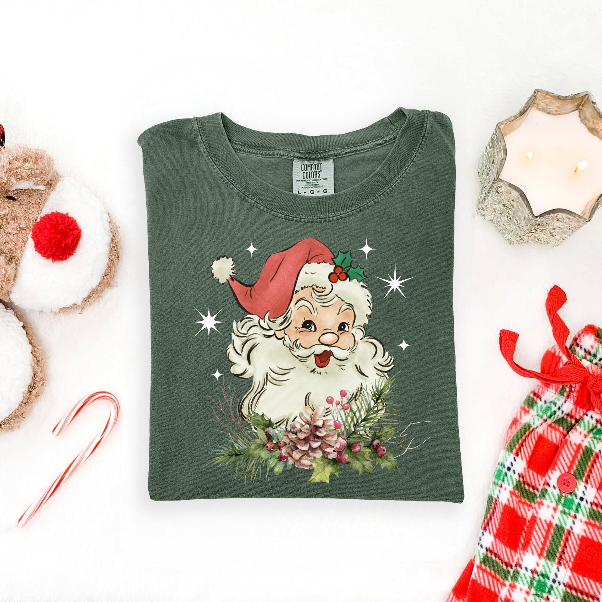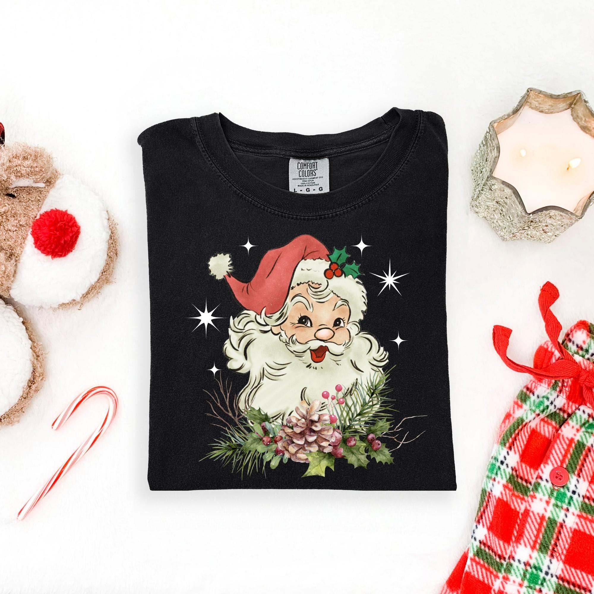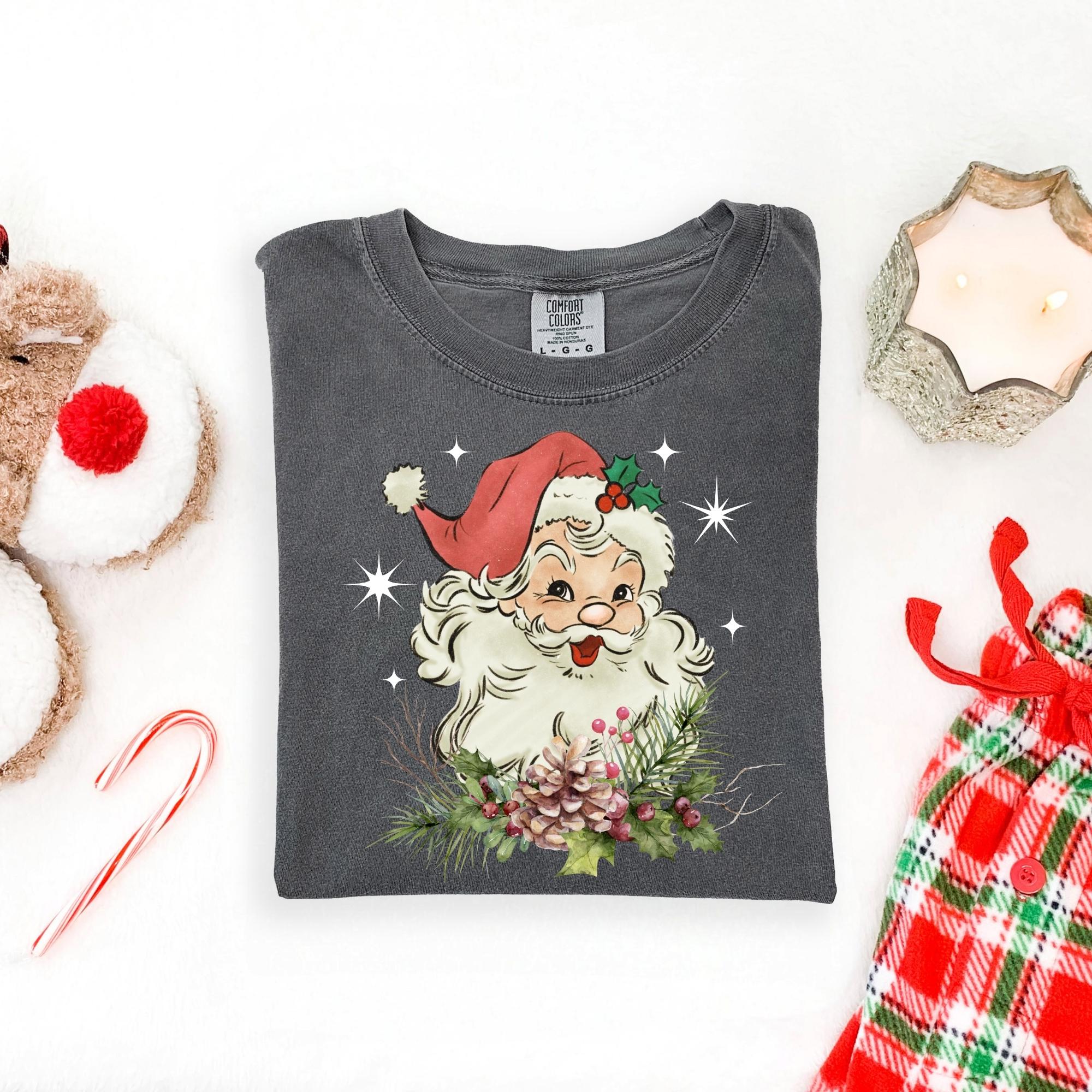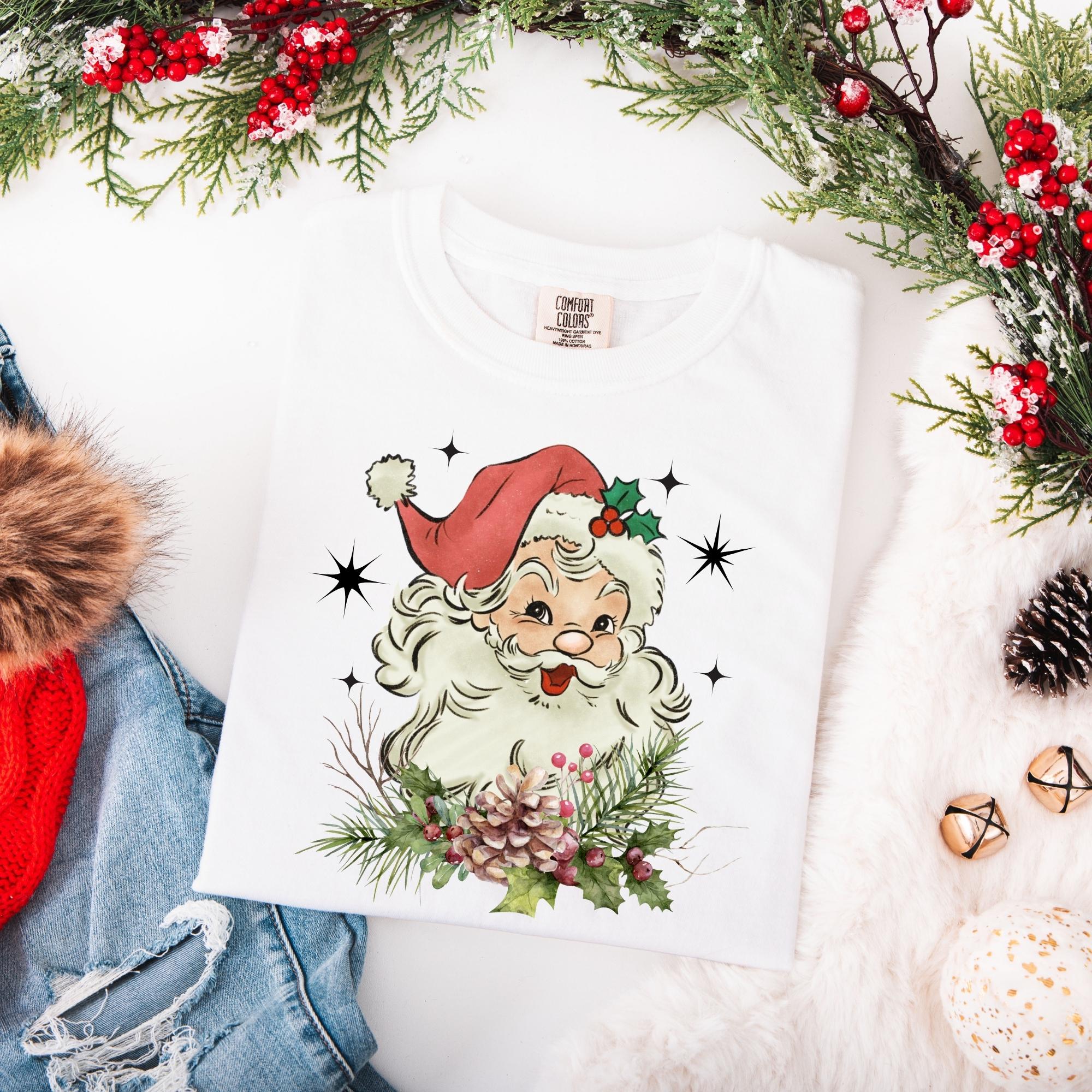 Retro Santa Shirt, Comfort Colors Christmas Tee, Women's Holiday Shirts, Vintage Santa Xmas Gift for Her π Your Everyday Go-To β Unique Design Comfort Colors Unisex T-Shirt and Sweatshirt