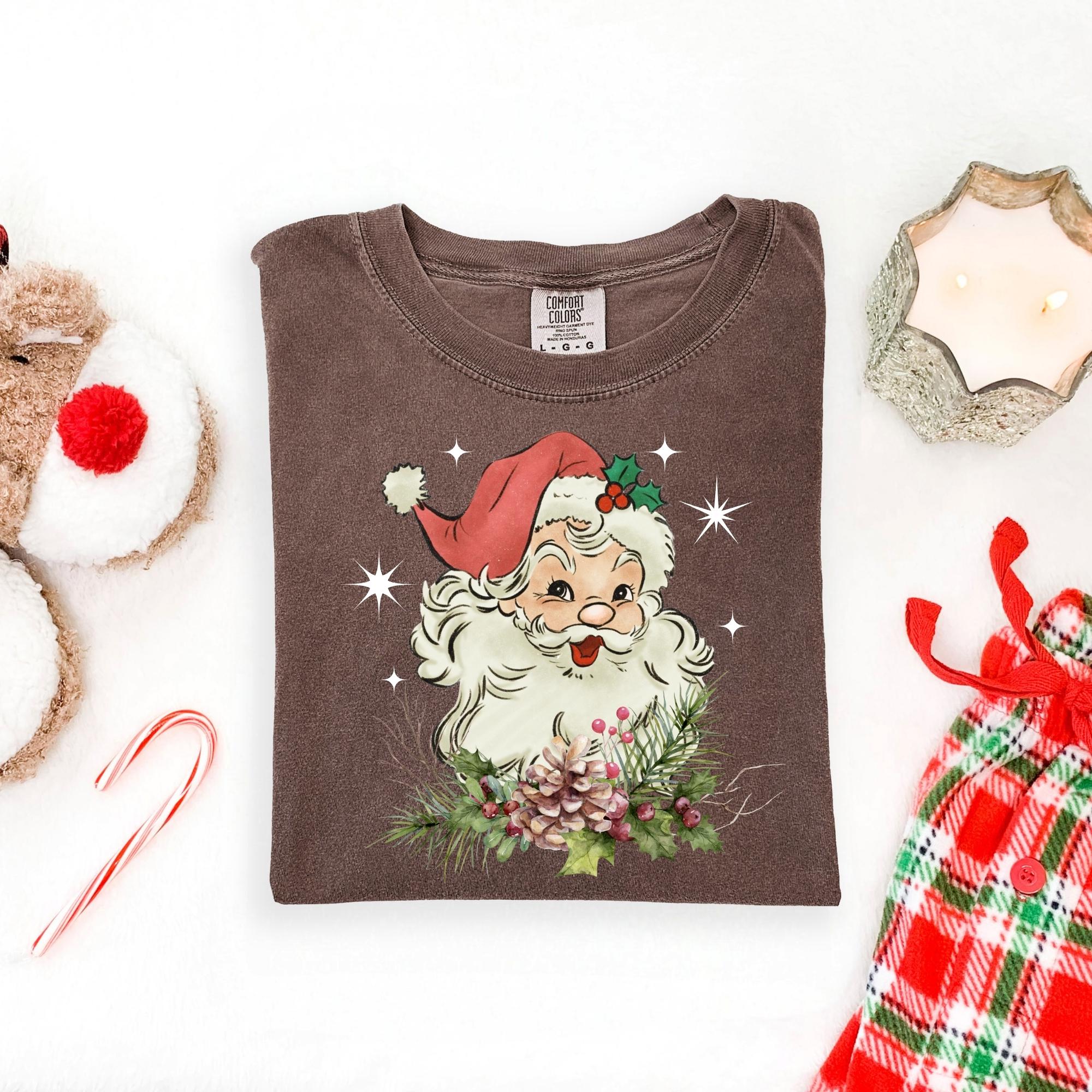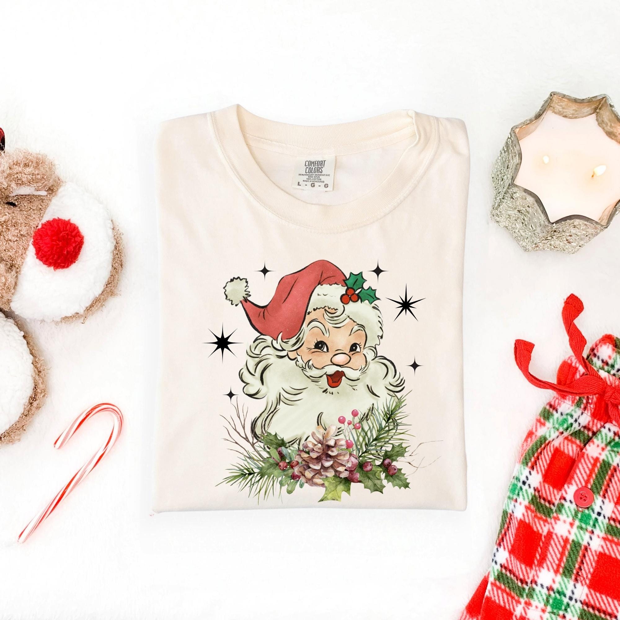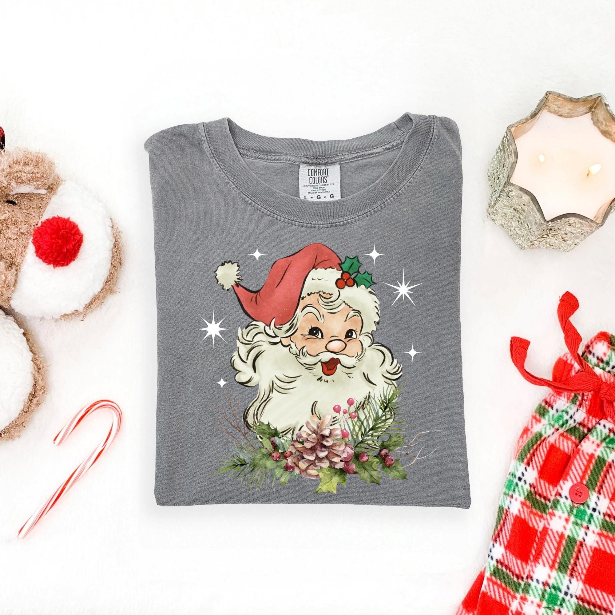 Retro Santa Shirt, Comfort Colors Christmas Tee, Women's Holiday Shirts, Vintage Santa Xmas Gift for Her π Your Everyday Go-To β Unique Design Comfort Colors Unisex T-Shirt and Sweatshirt