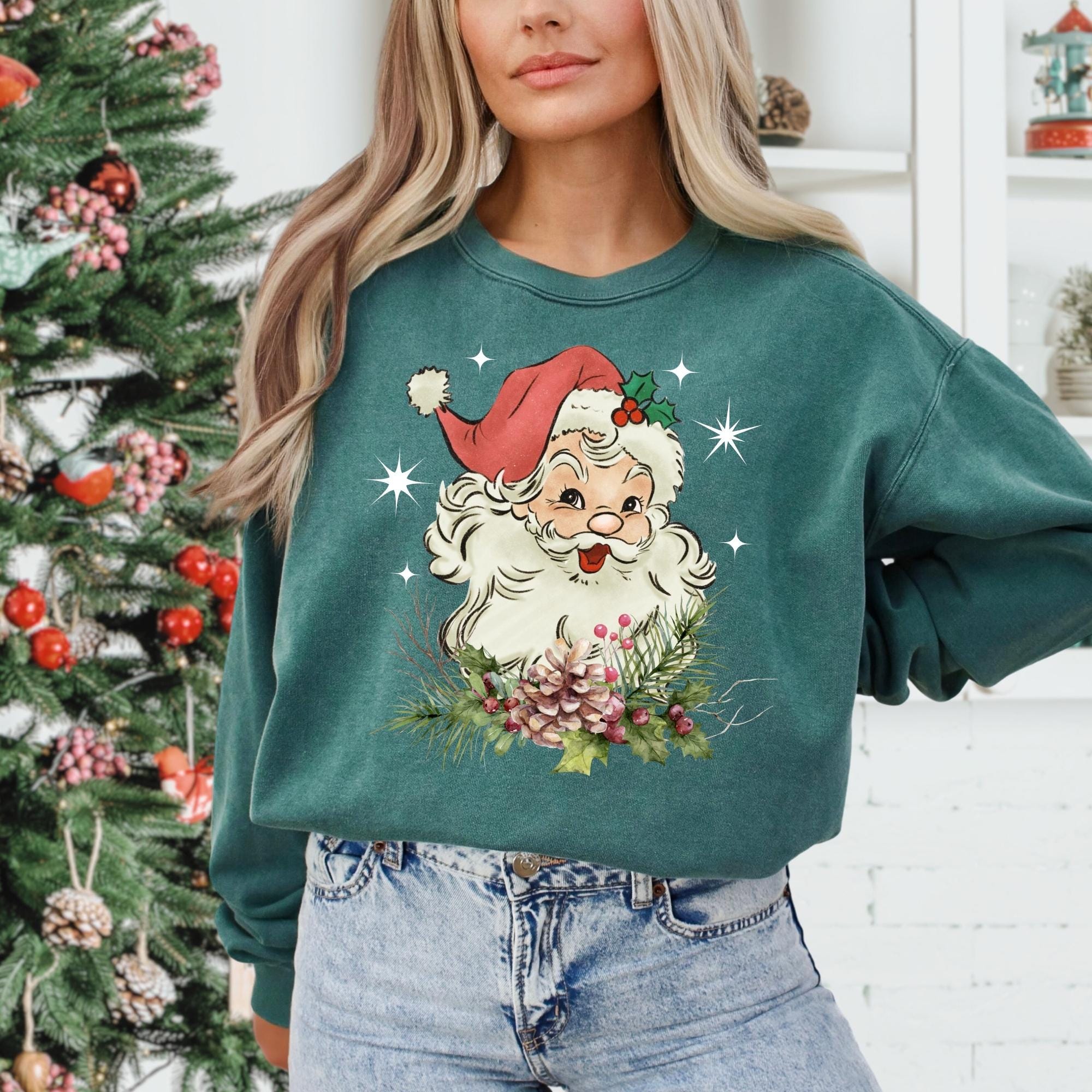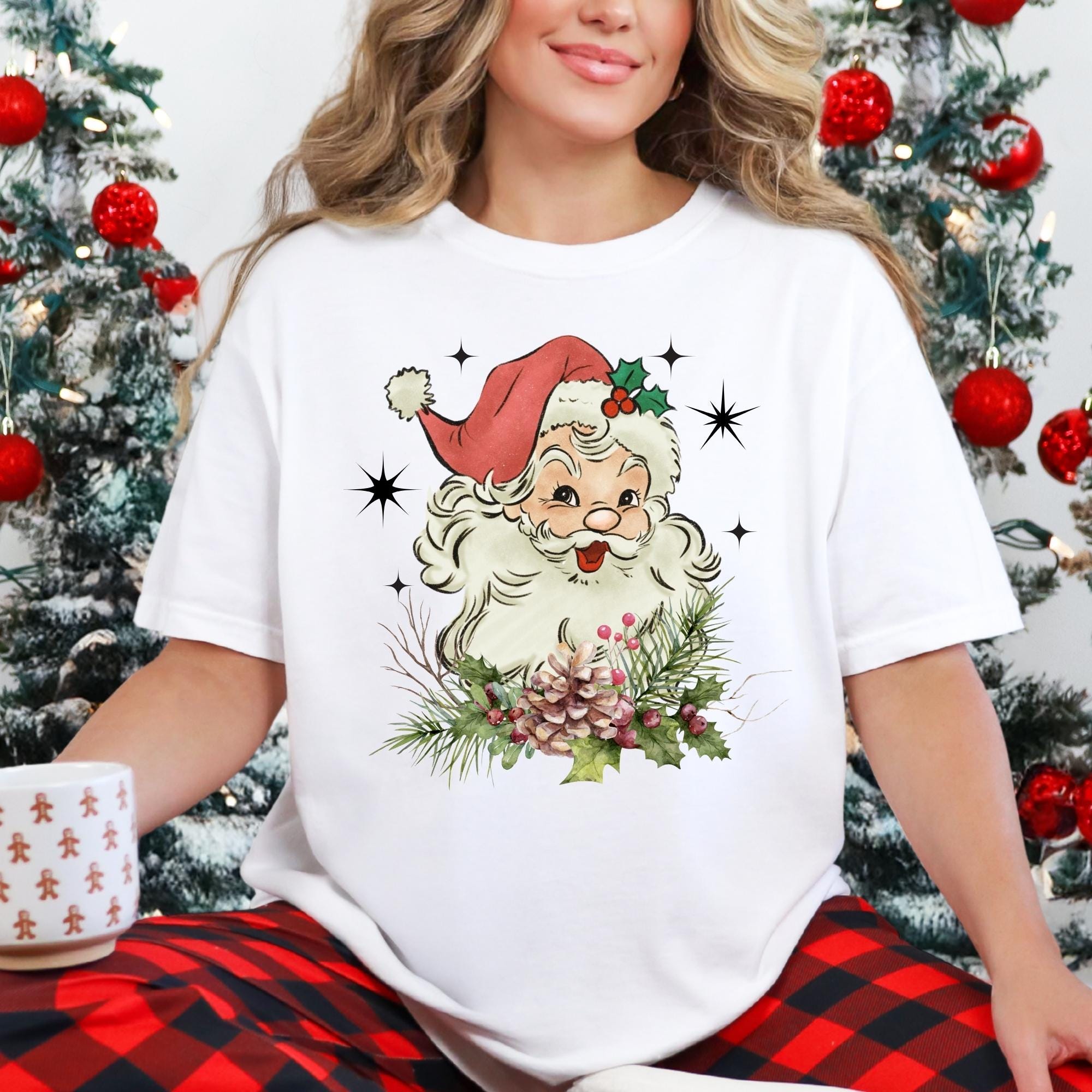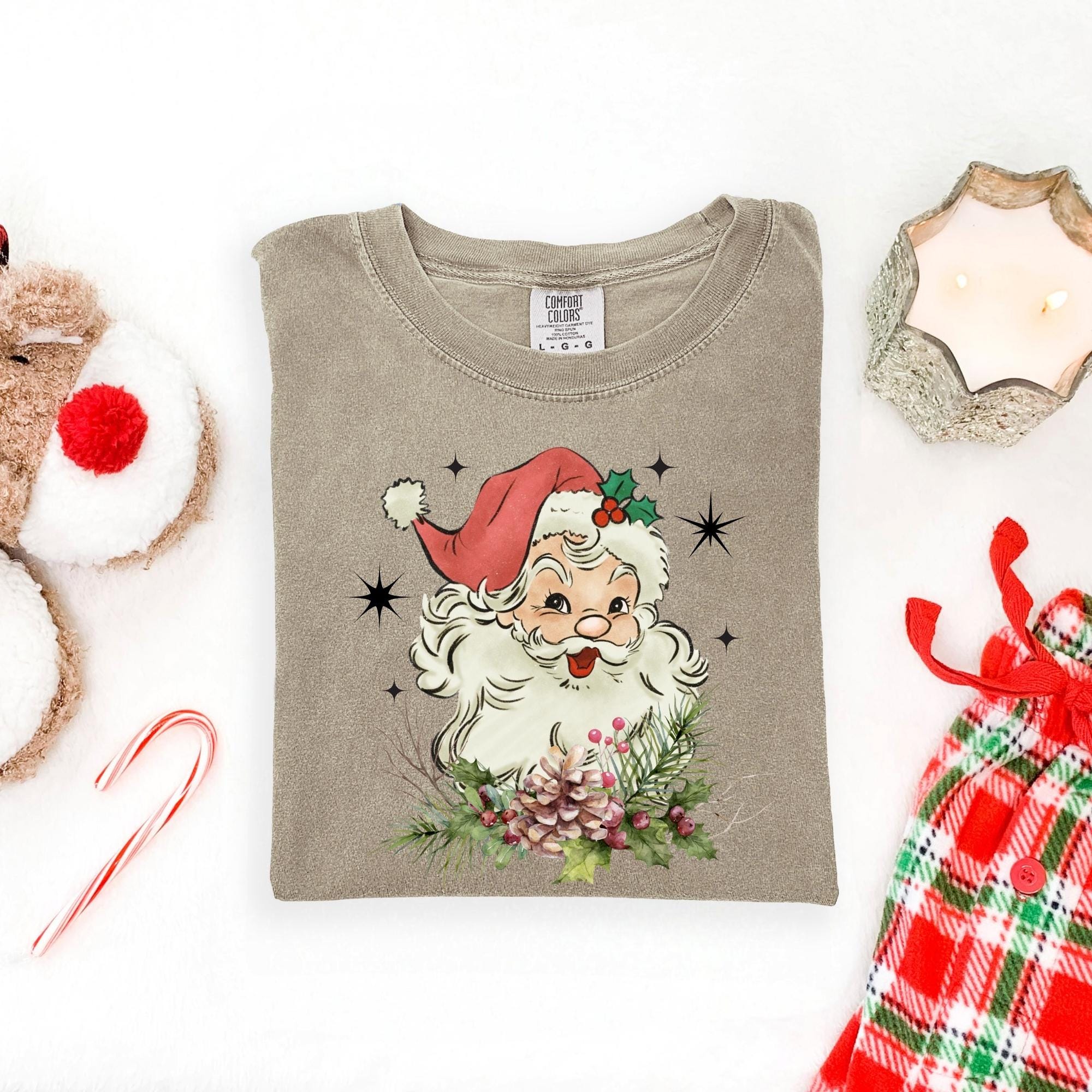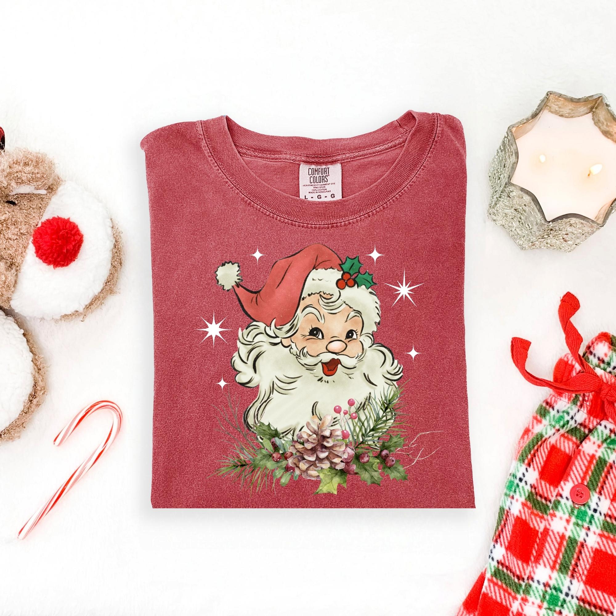 Retro Santa Shirt, Comfort Colors Christmas Tee, Women's Holiday Shirts, Vintage Santa Xmas Gift for Her π Your Everyday Go-To β Unique Design Comfort Colors Unisex T-Shirt and Sweatshirt