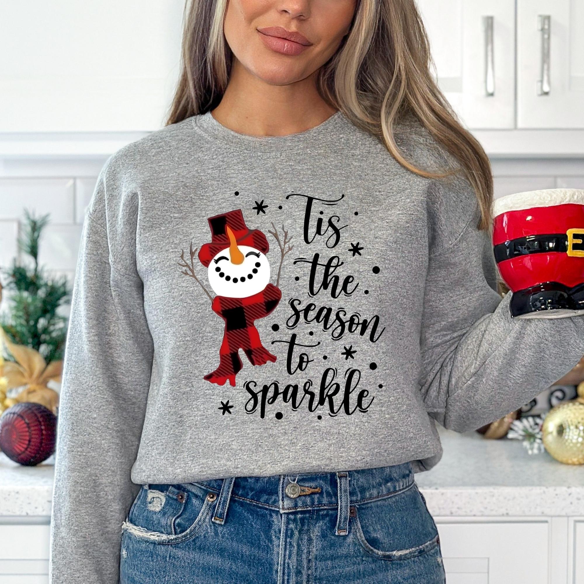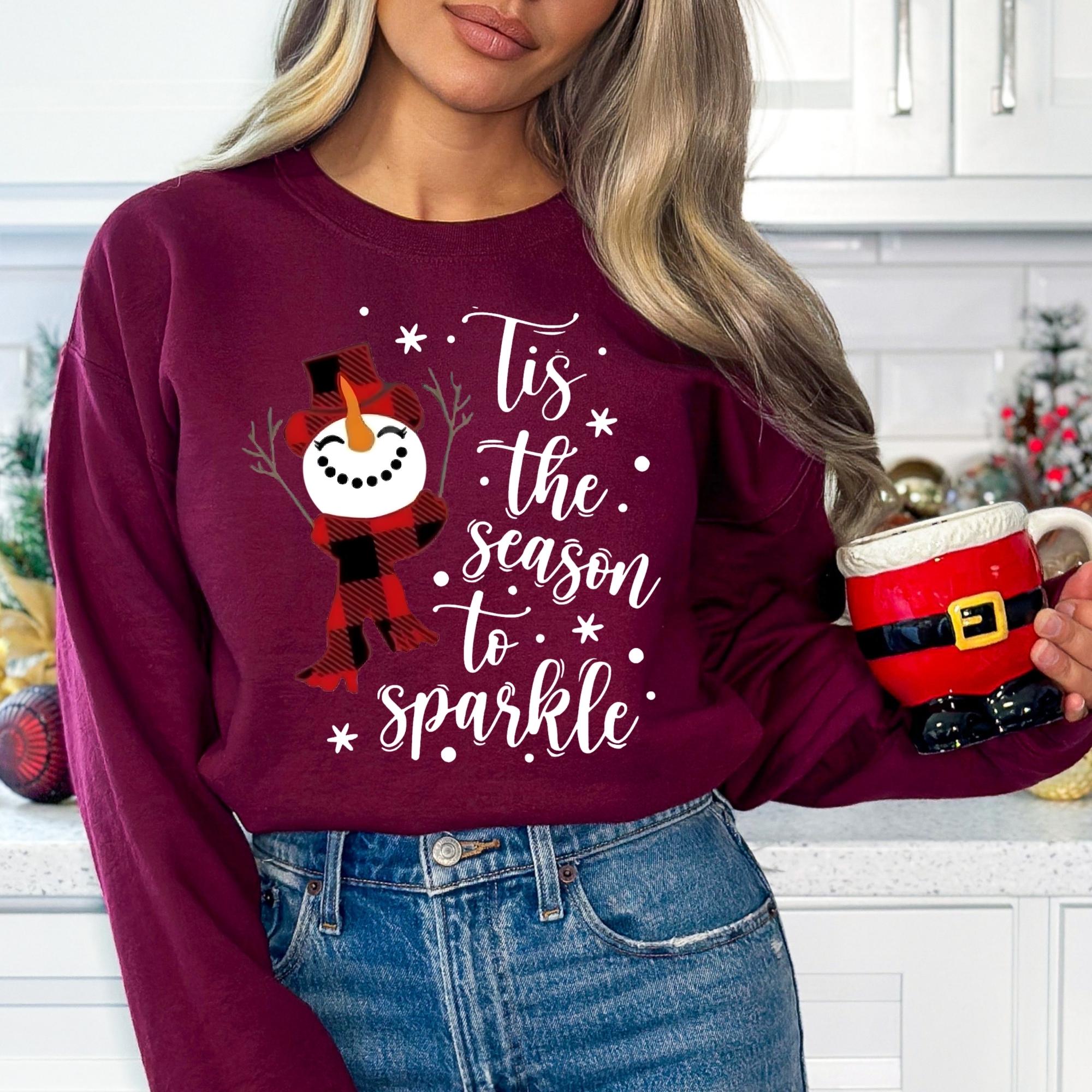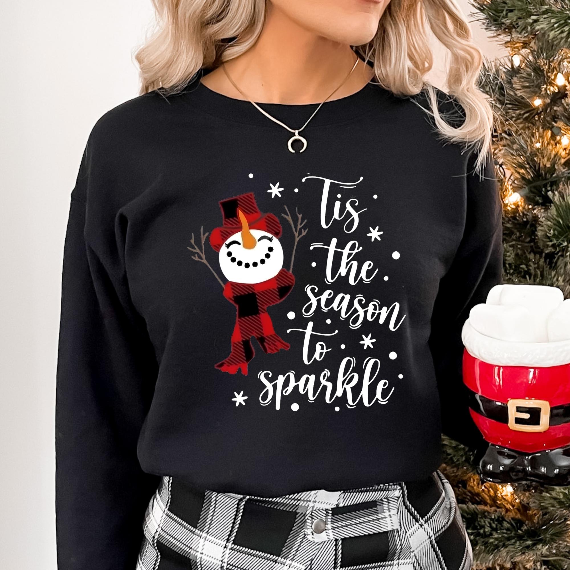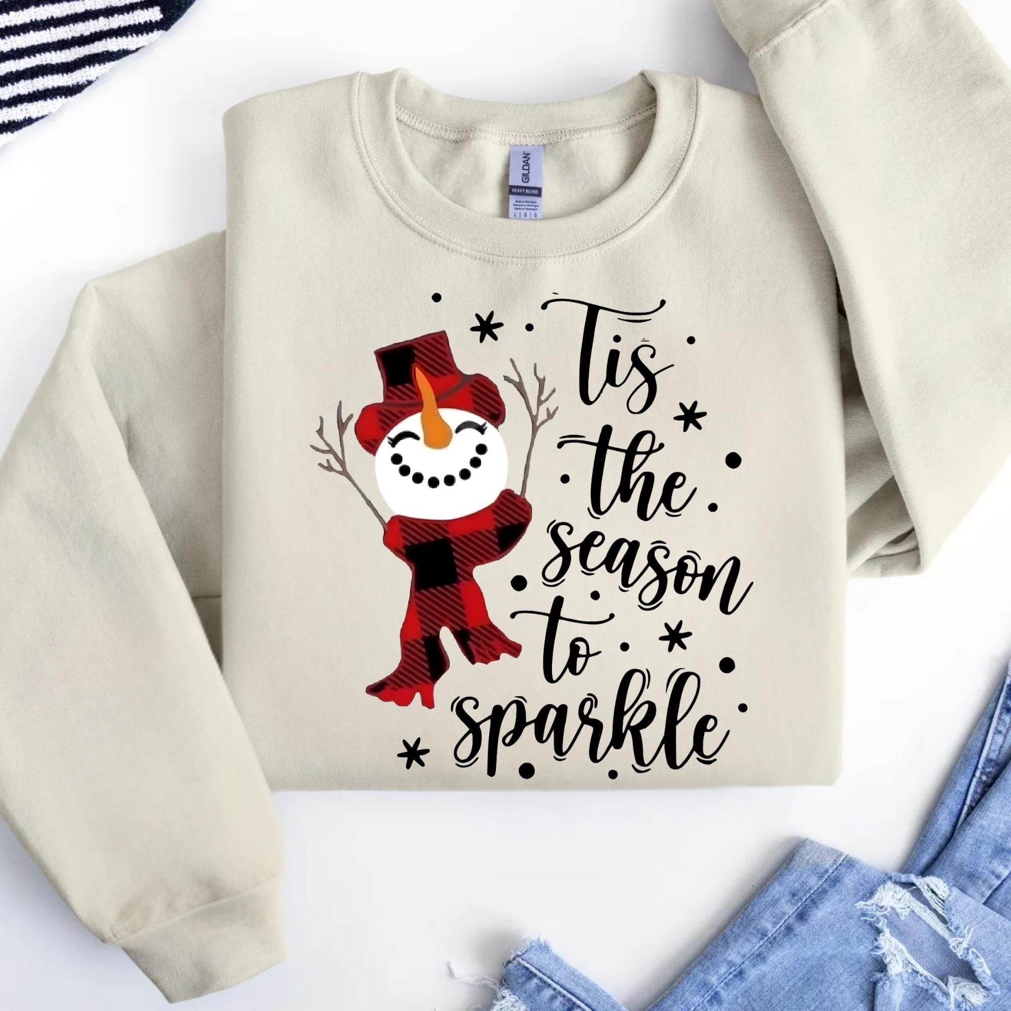 Snowman Christmas Sweatshirt: Tis The Season To Sparkle Holiday Tee