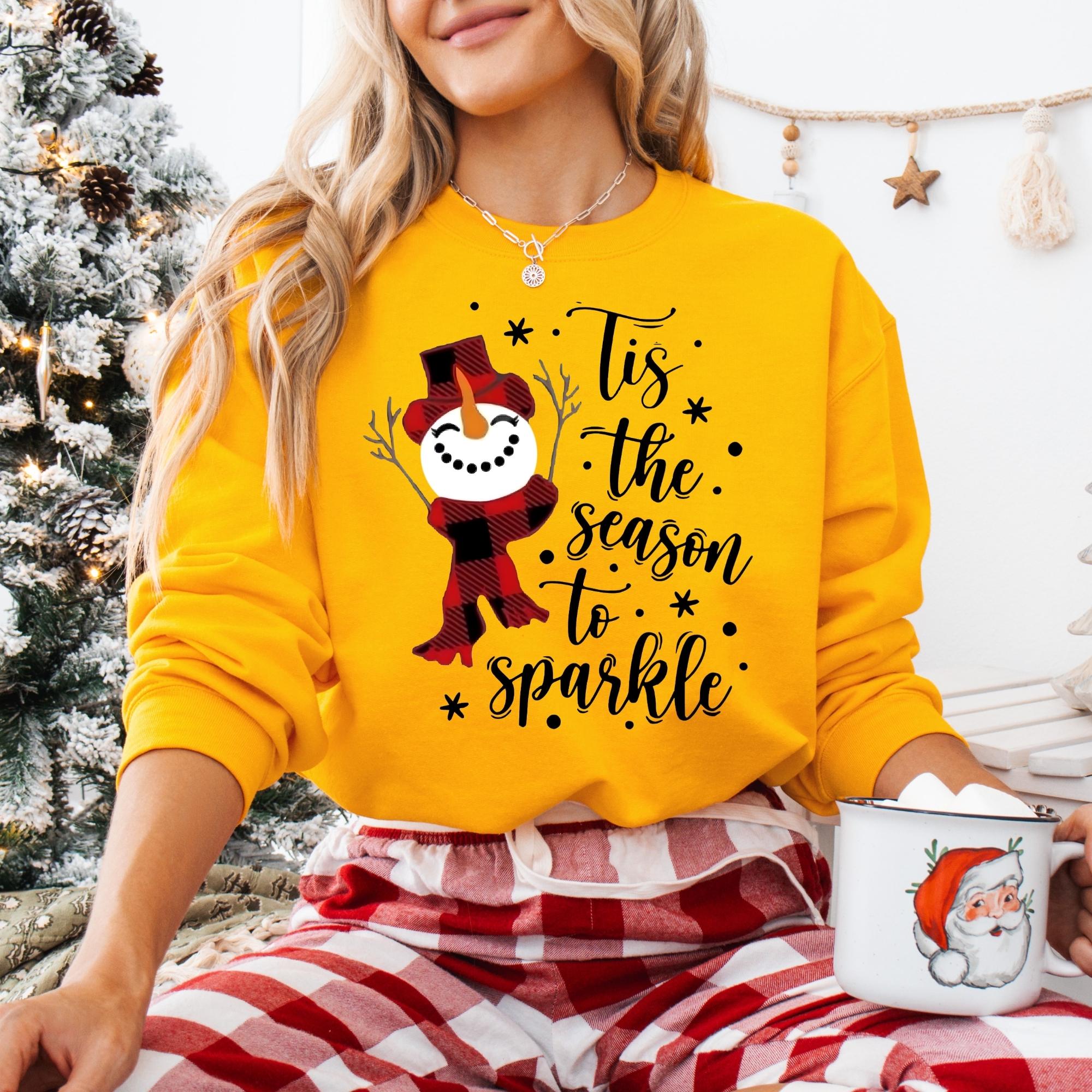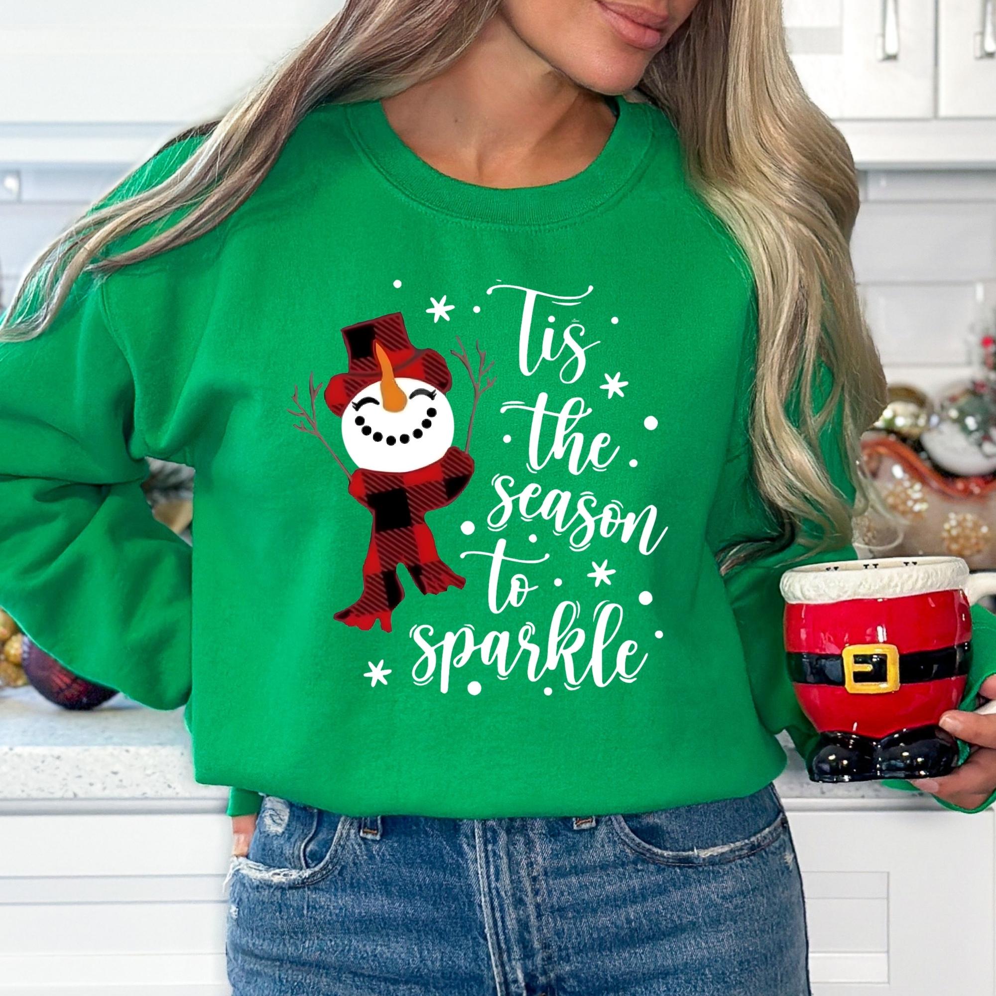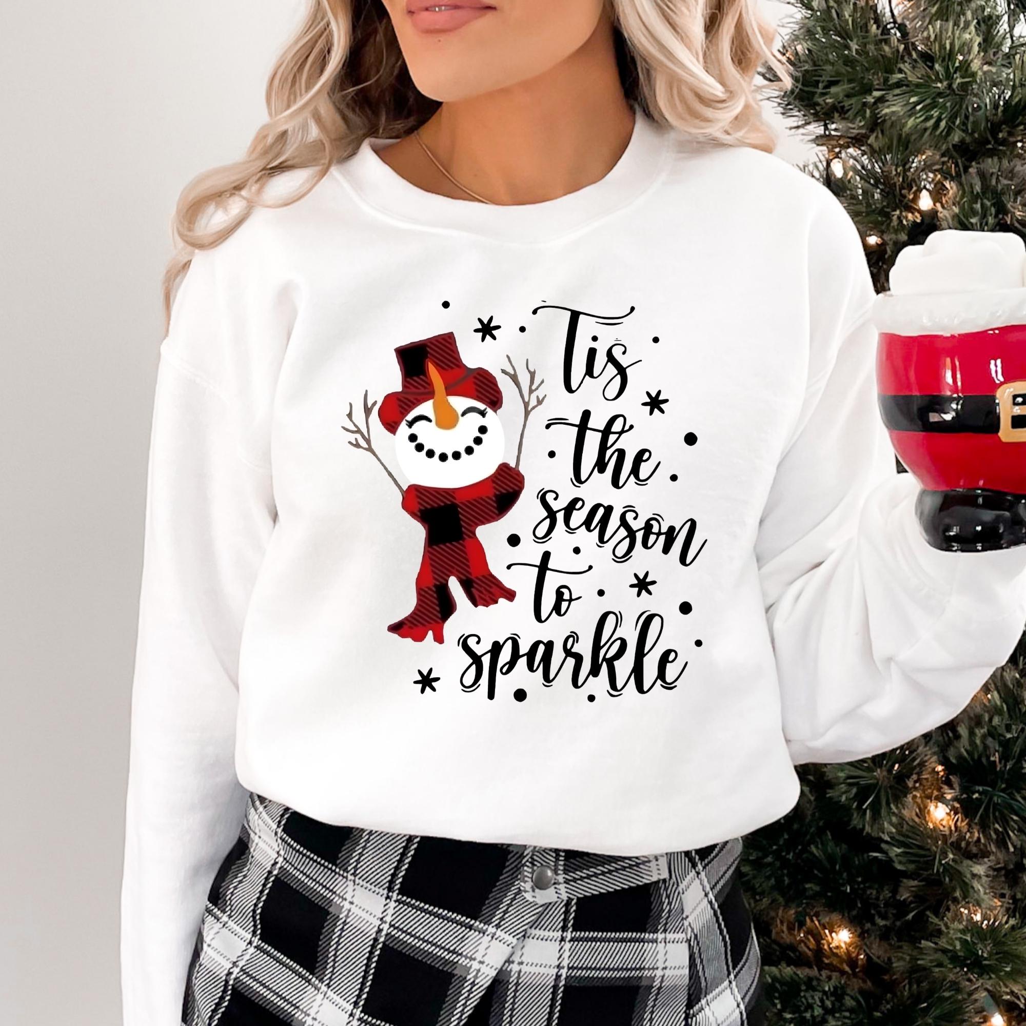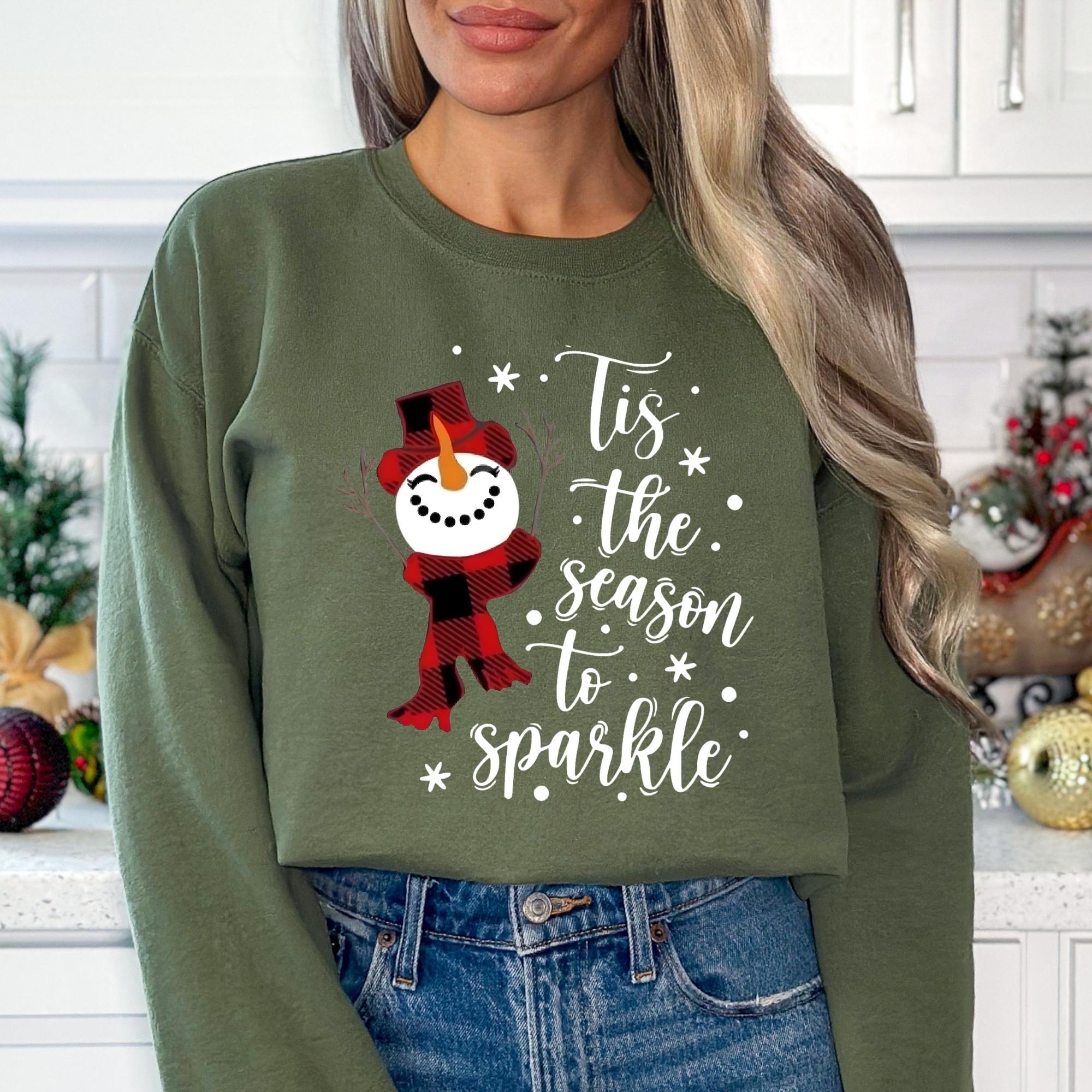 Snowman Christmas Sweatshirt: Tis The Season To Sparkle Holiday Tee