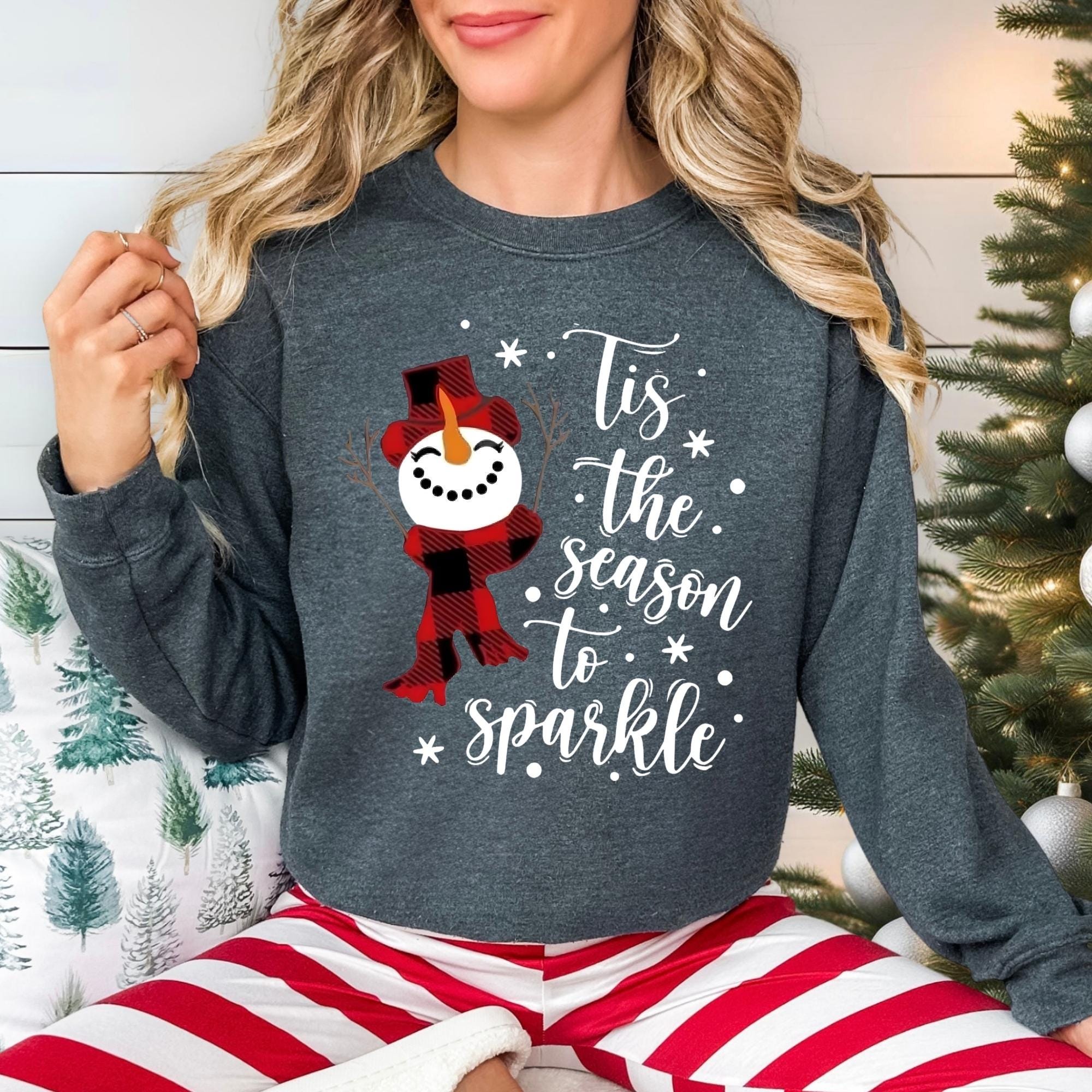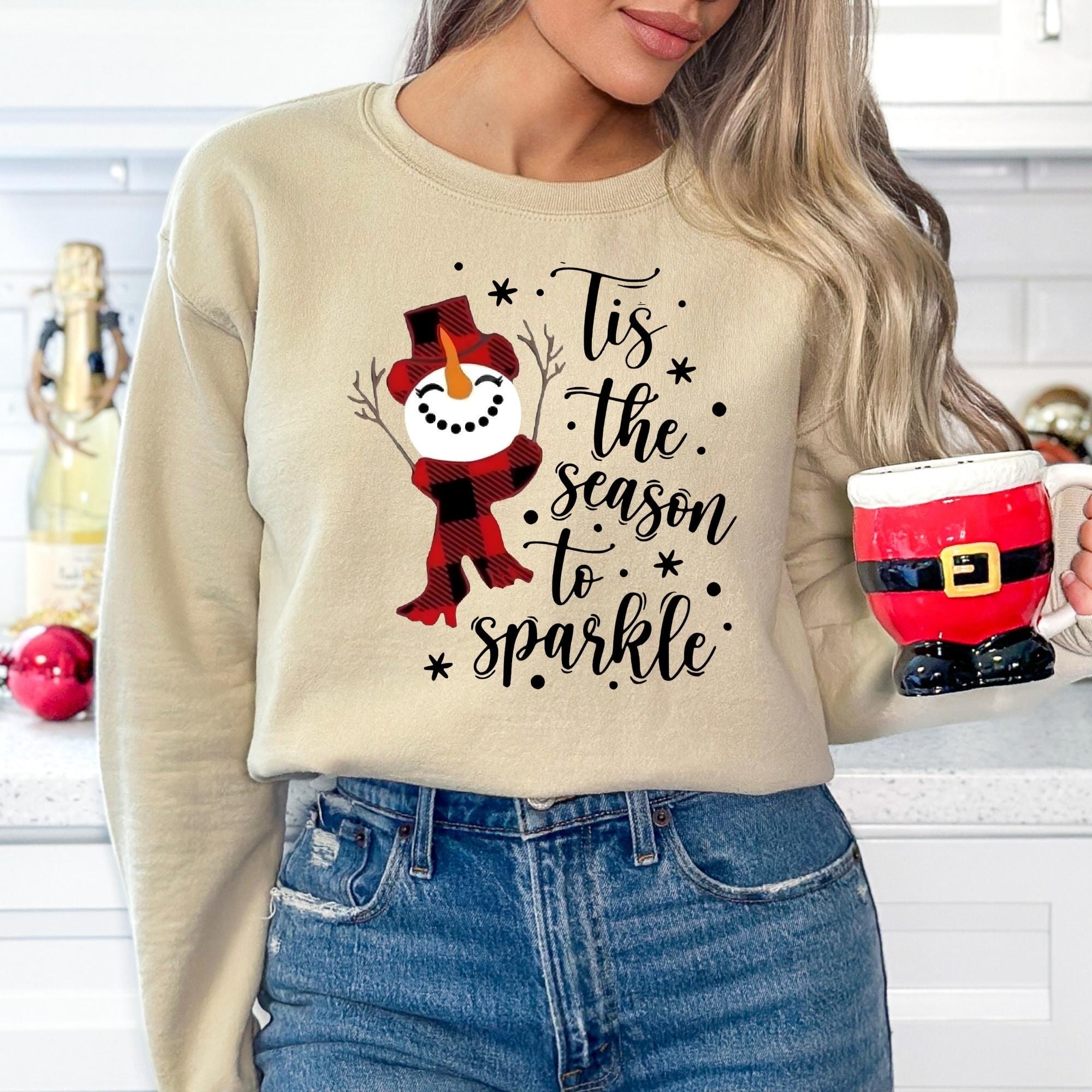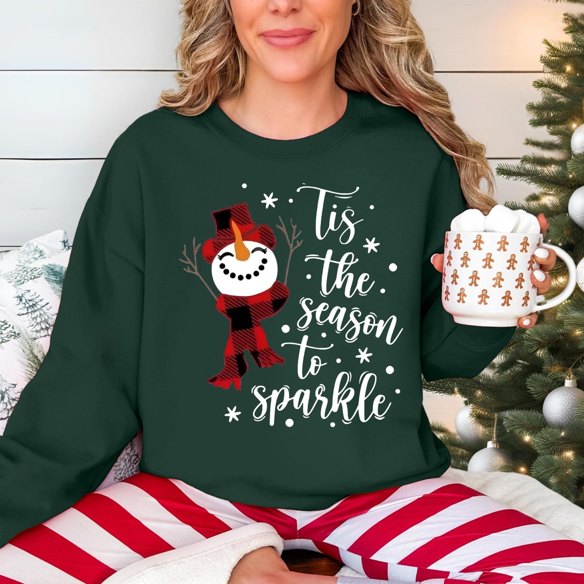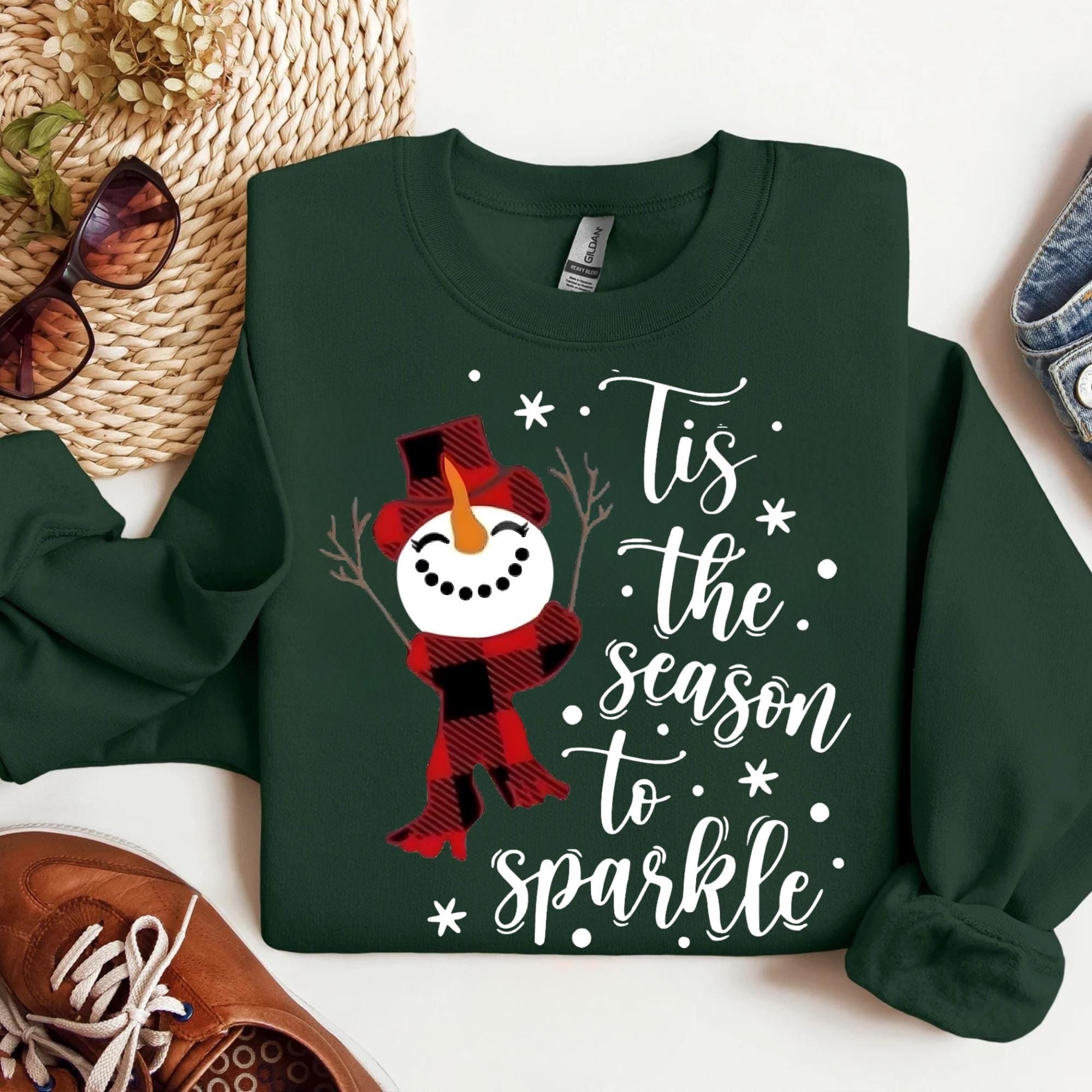 Snowman Christmas Sweatshirt: Tis The Season To Sparkle Holiday Tee
