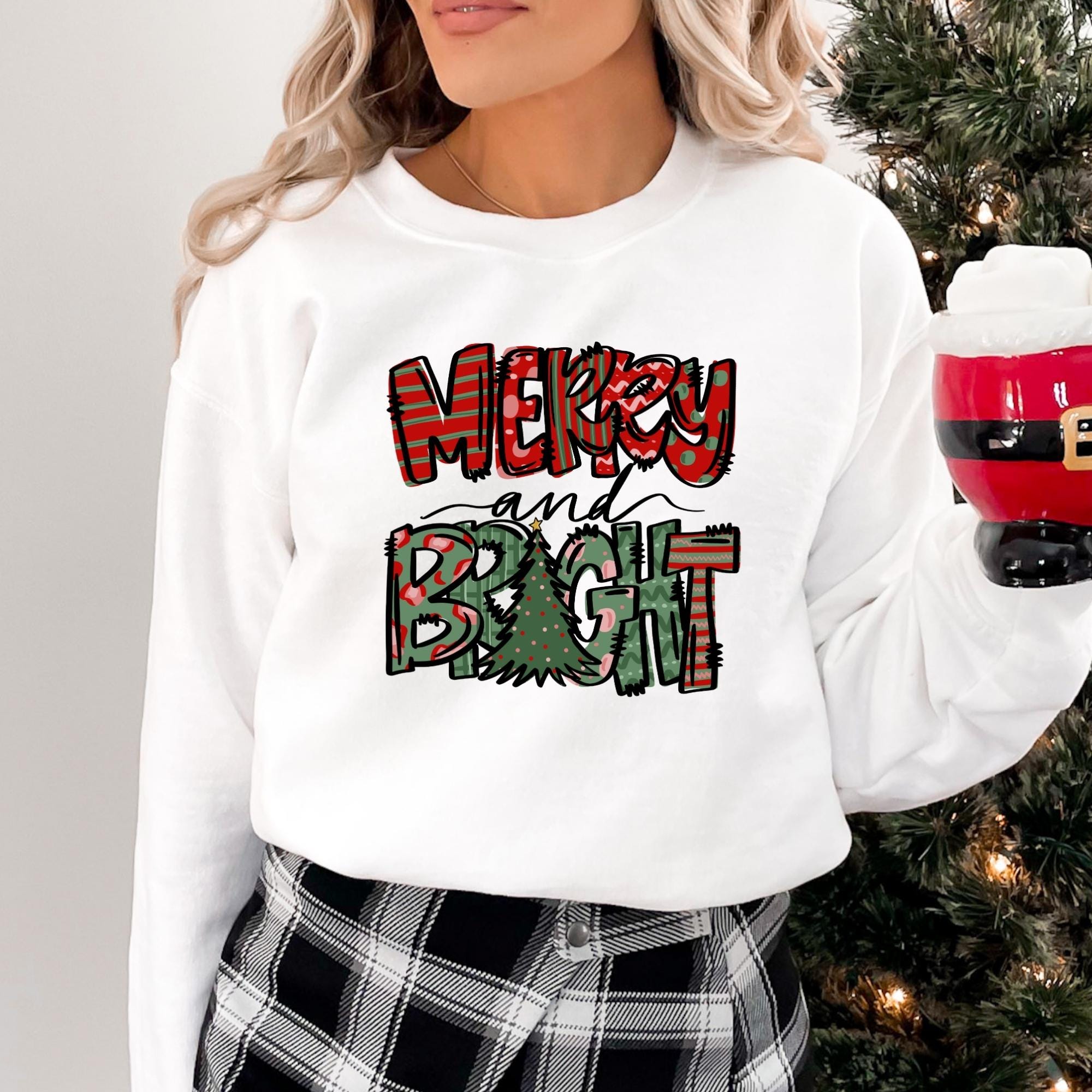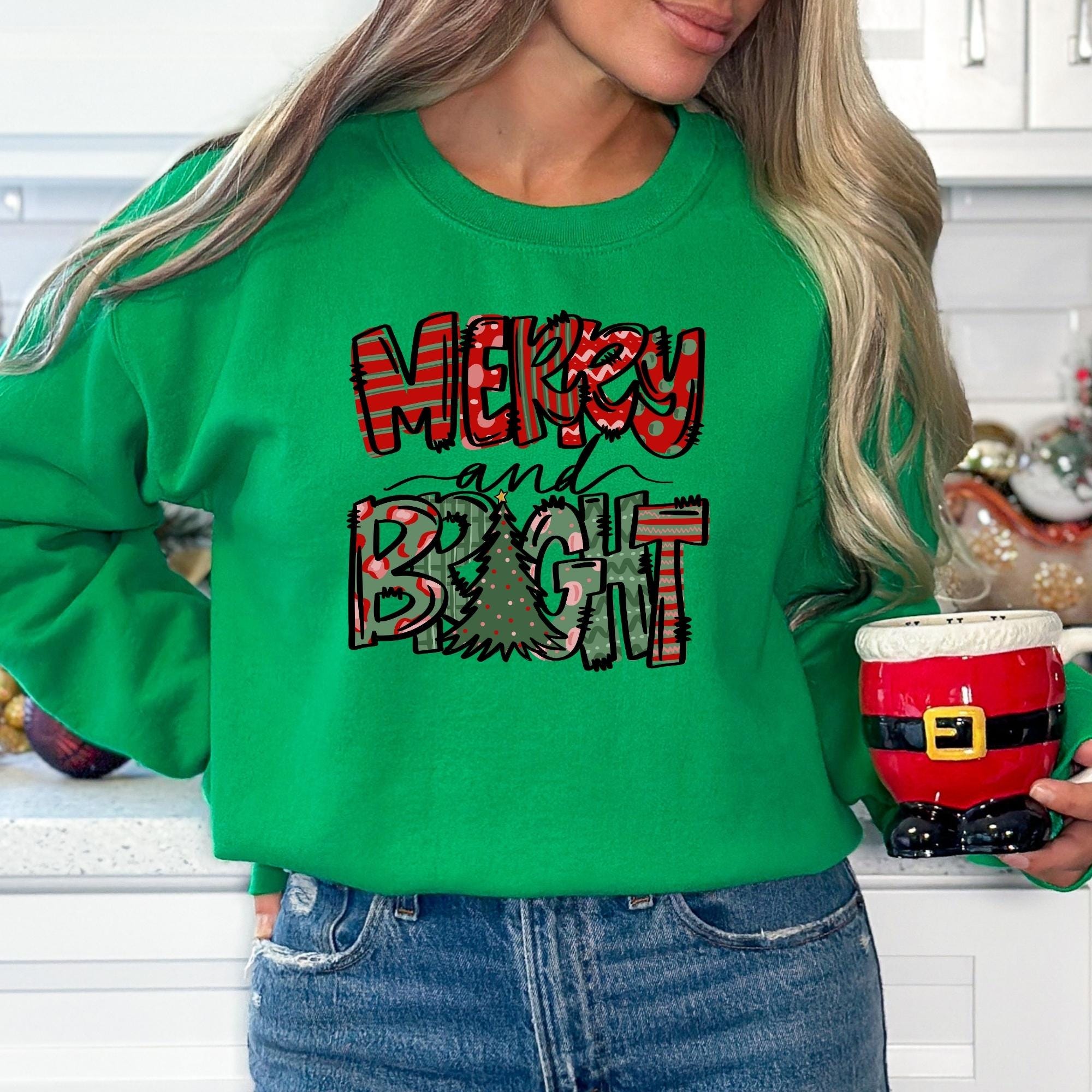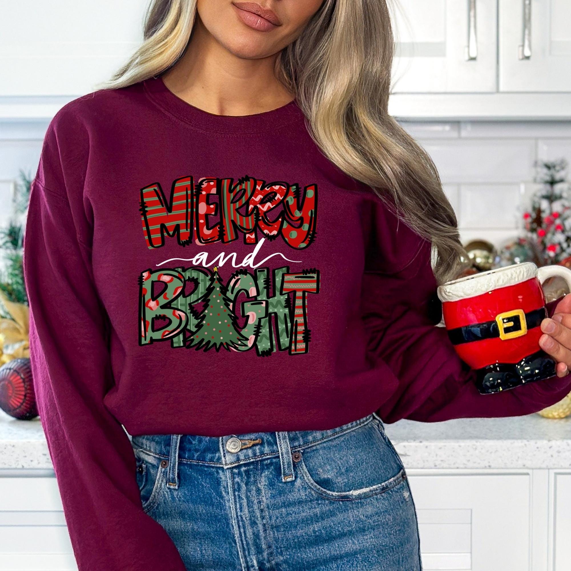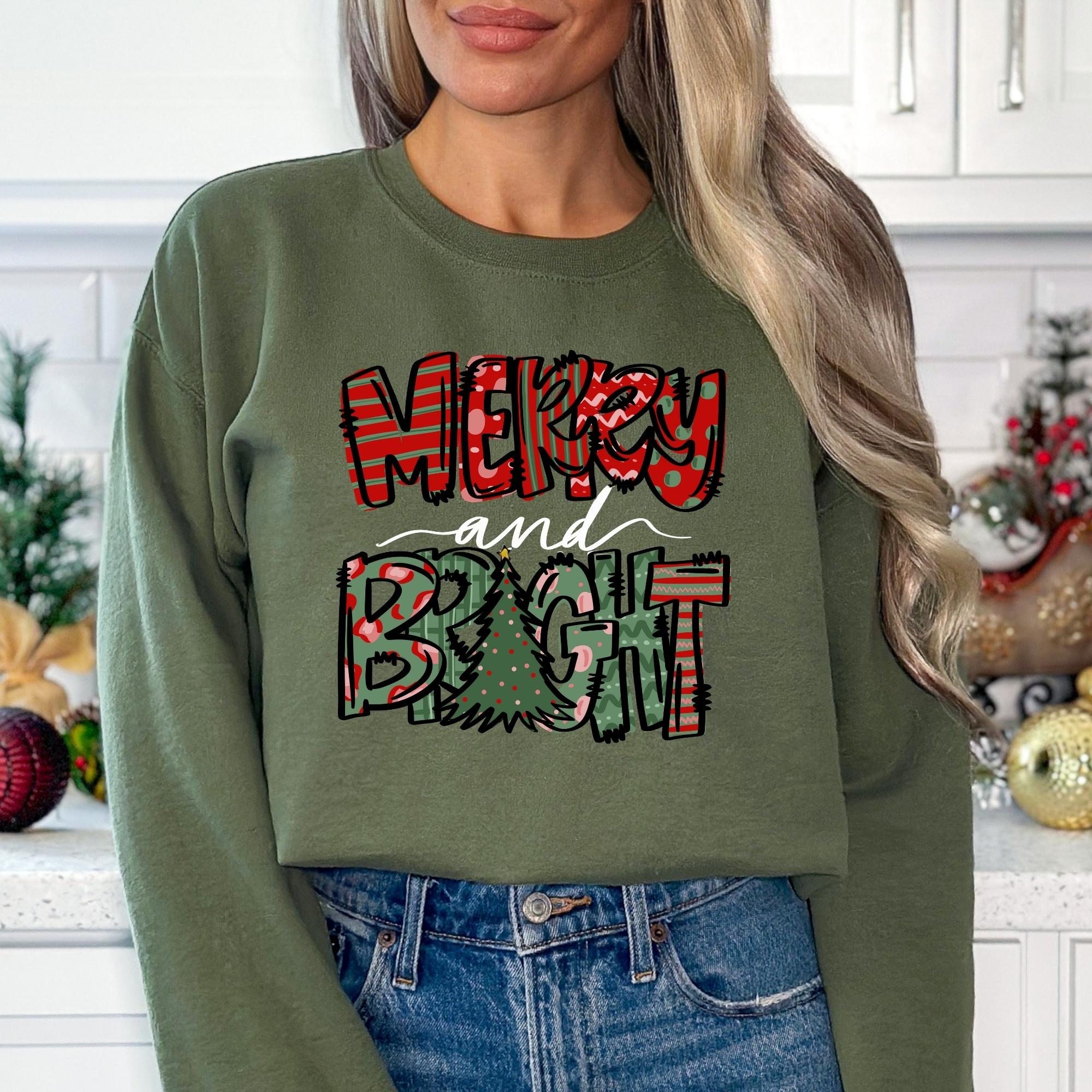 Merry and Bright Sweatshirt, Christmas Sweatshirt, Family Christmas Sweatshirt, Christmas Sweatshirts for Women, Merry Christmas Sweatshirt
