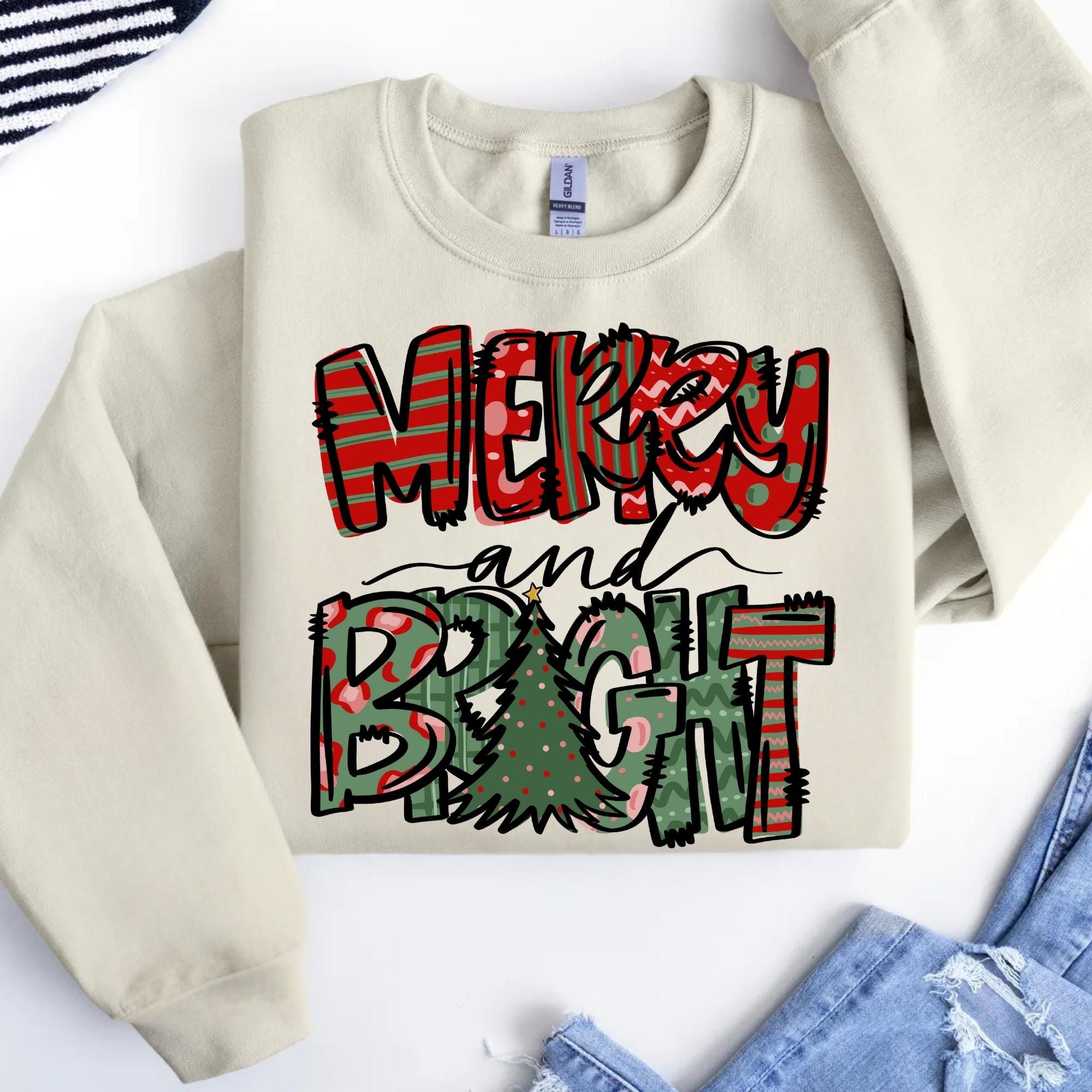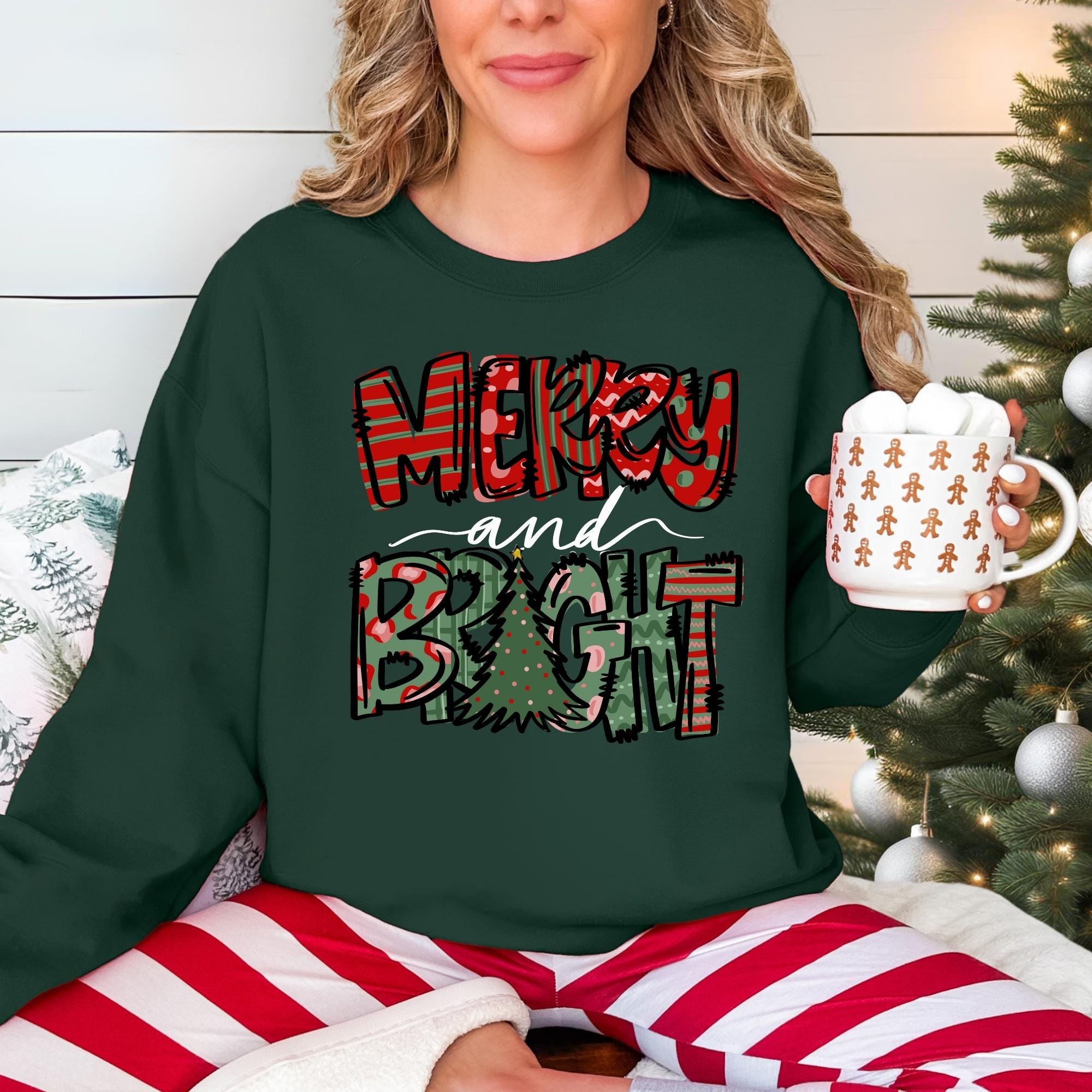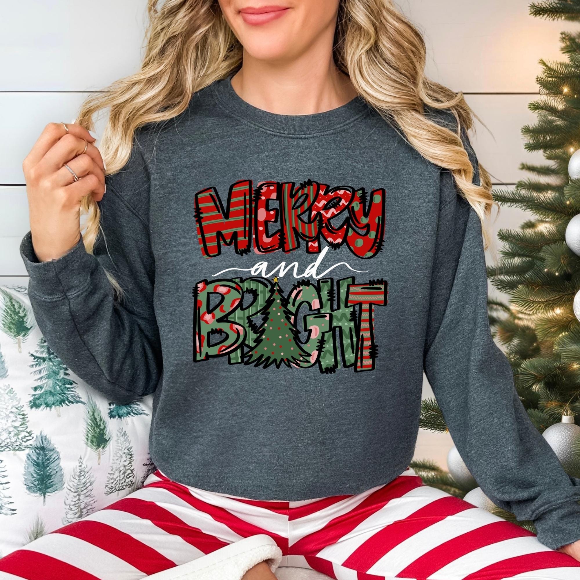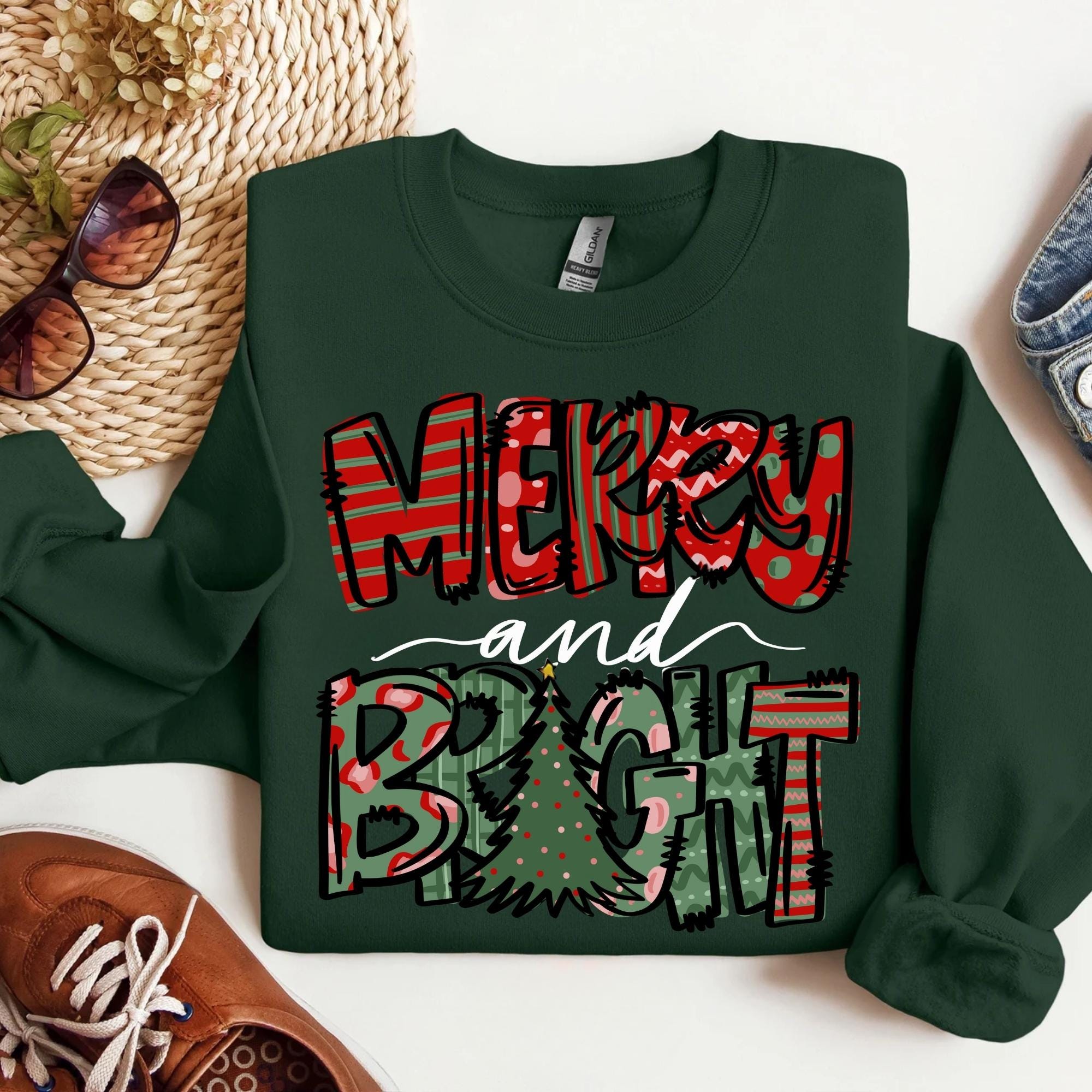 Merry and Bright Sweatshirt, Christmas Sweatshirt, Family Christmas Sweatshirt, Christmas Sweatshirts for Women, Merry Christmas Sweatshirt