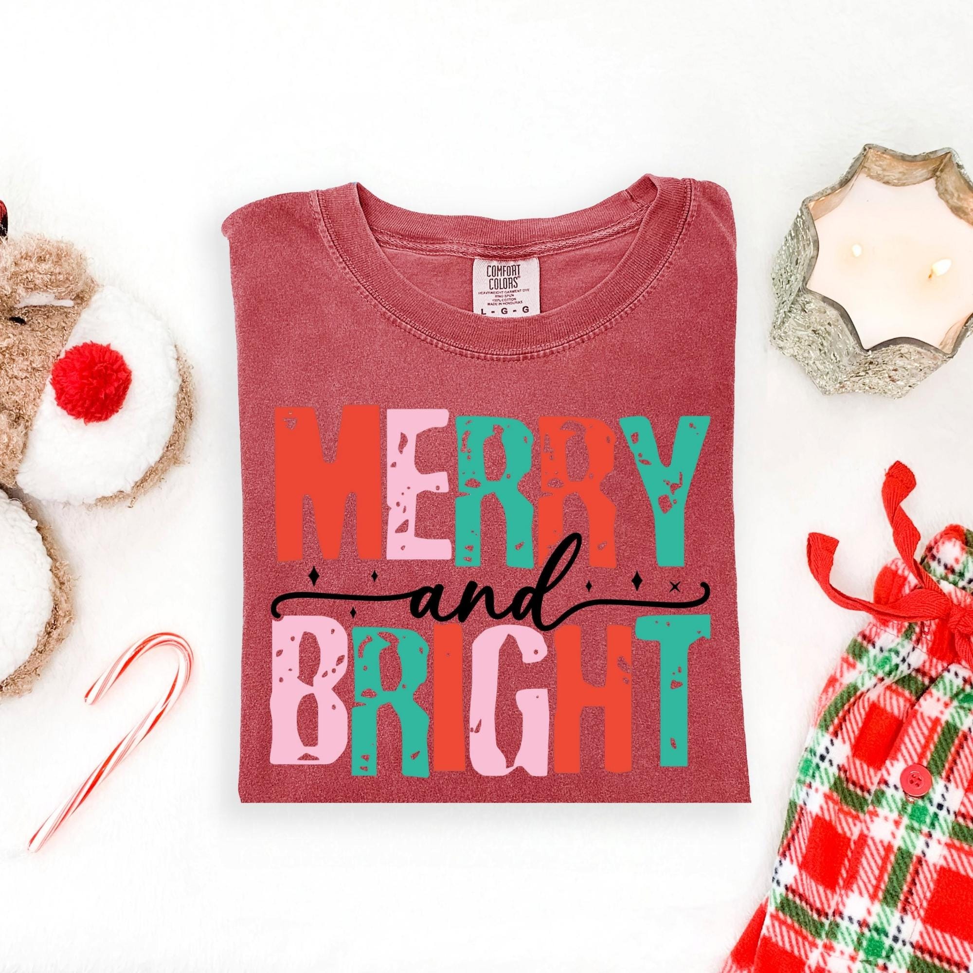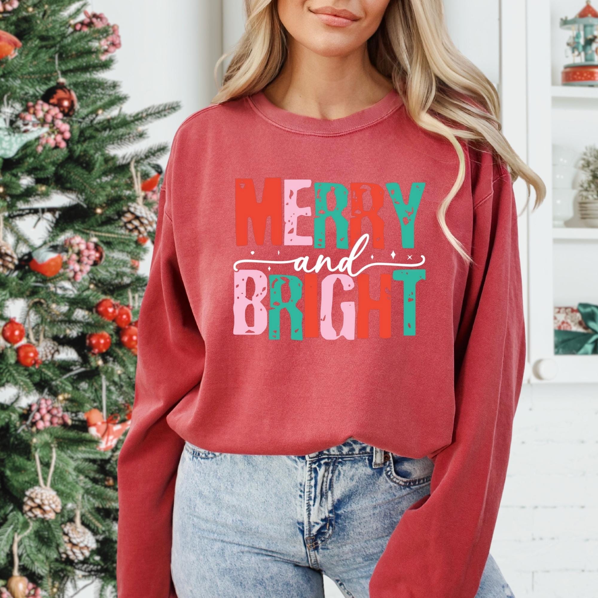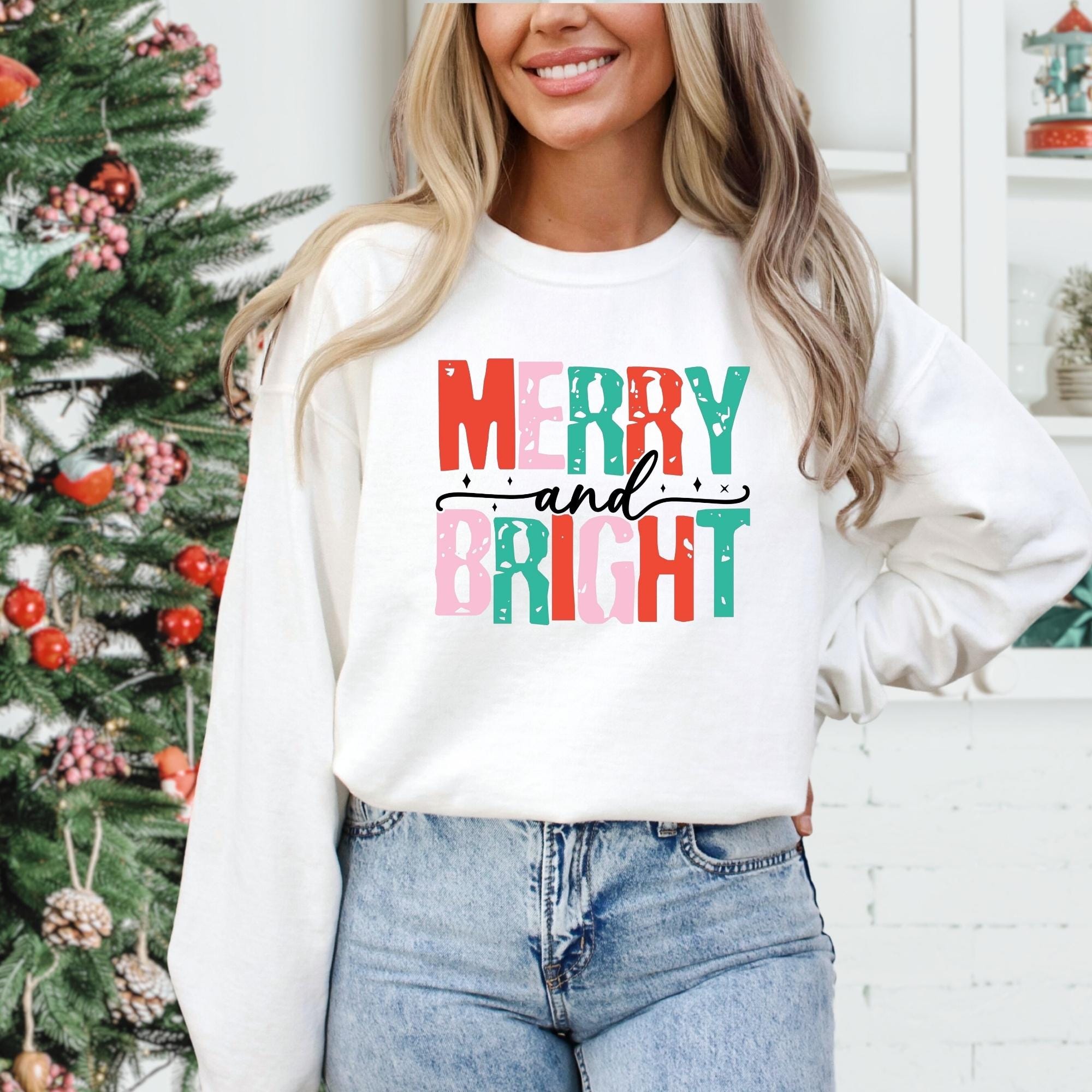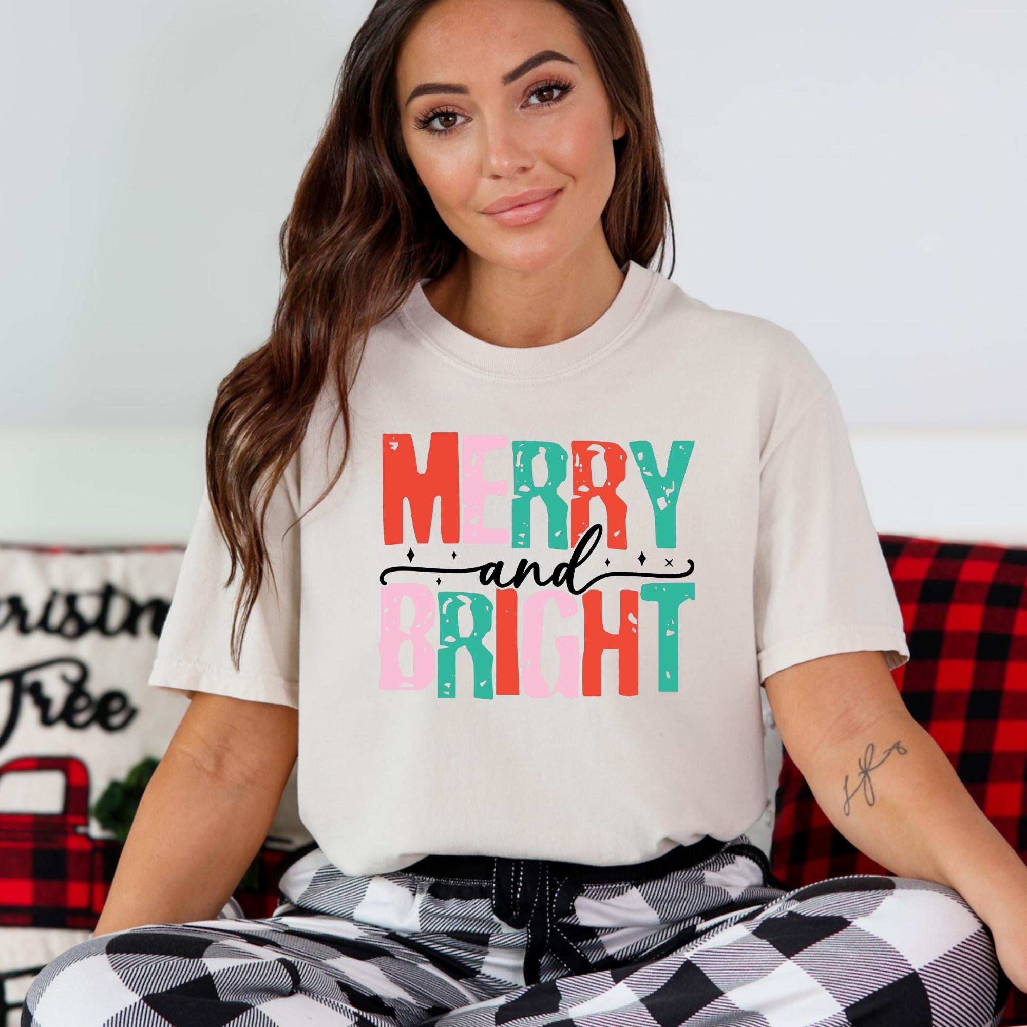 Merry and Bright Christmas Tee, Women's Christmas Shirt, Christmas Gifts, Long Sleeve Shirt, Christmas Shirt for Her, Cute Xmas Gift for Her