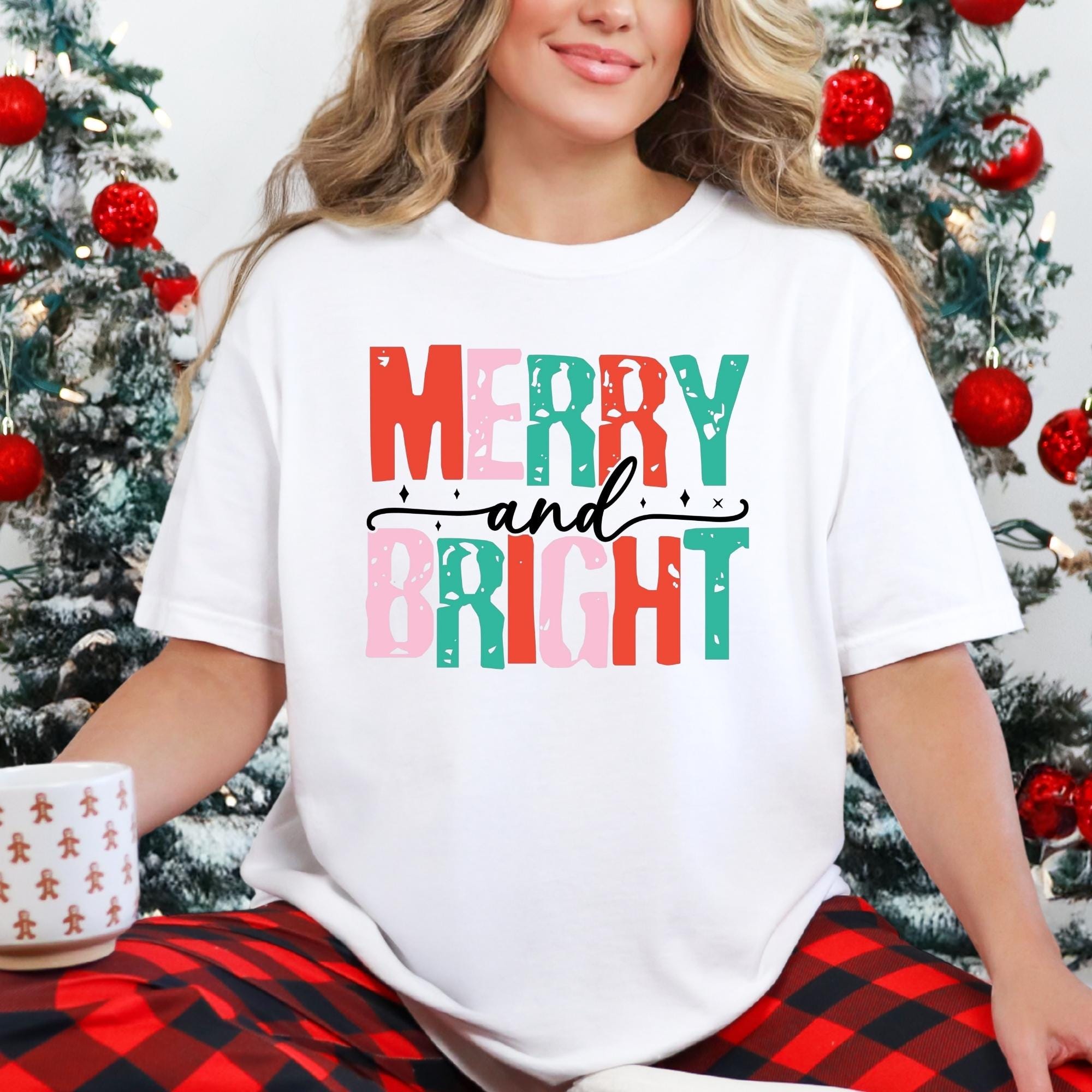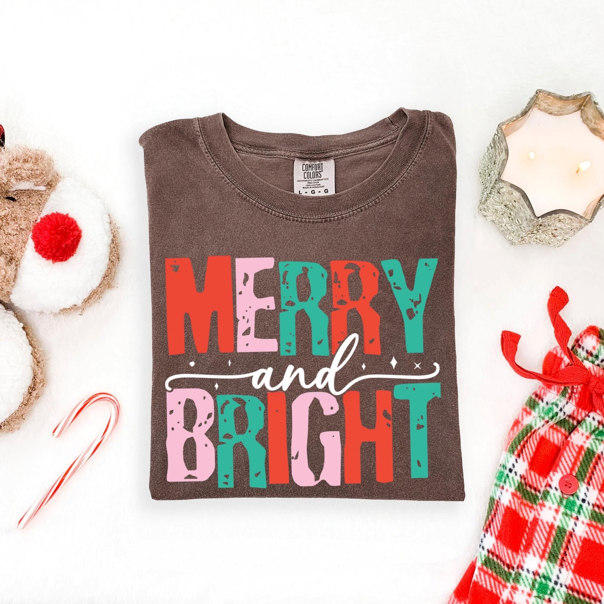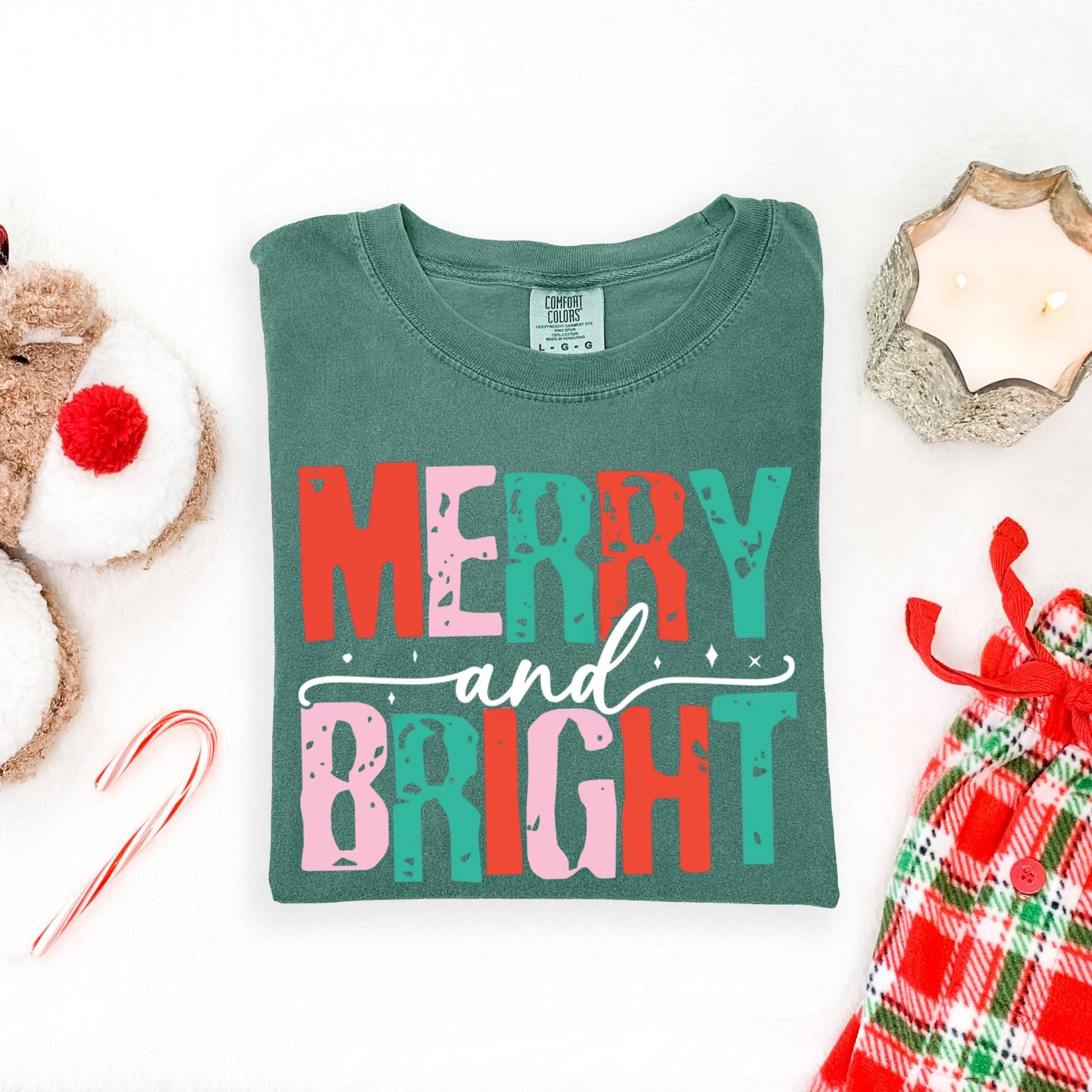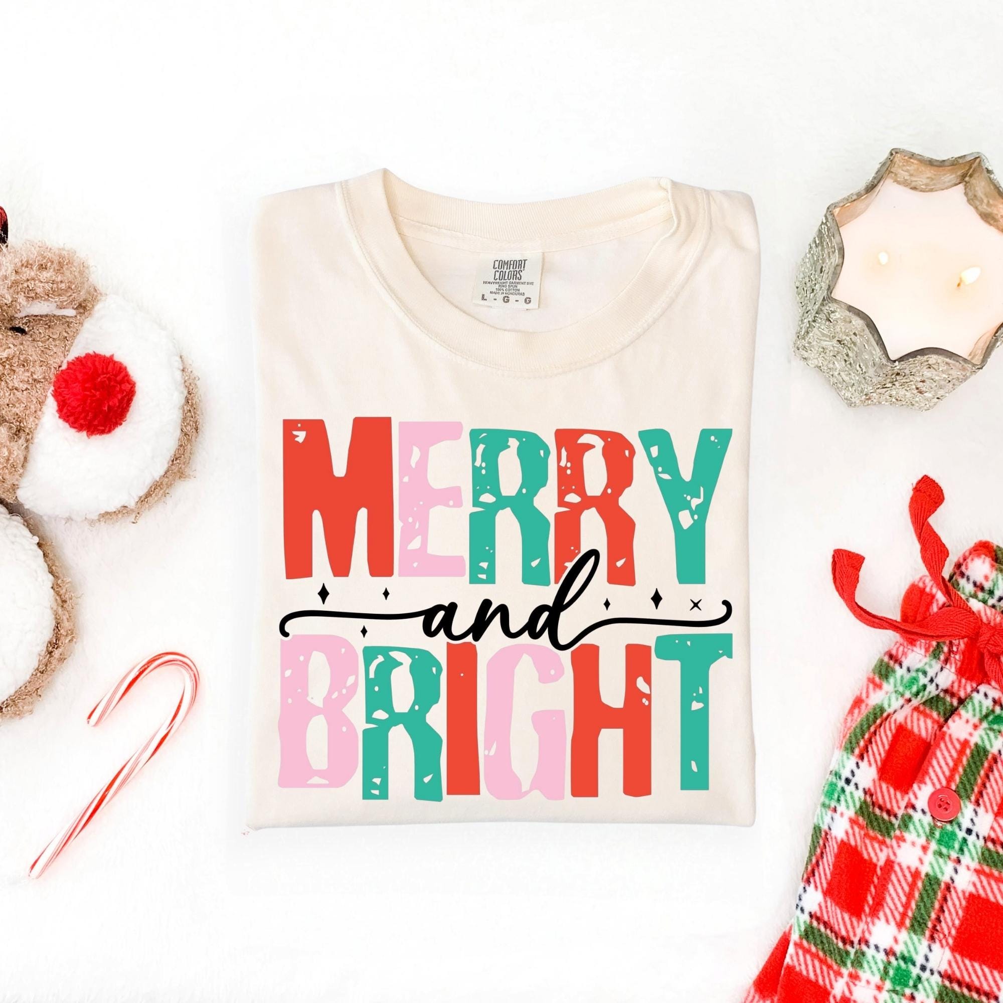 Merry and Bright Christmas Tee, Women's Christmas Shirt, Christmas Gifts, Long Sleeve Shirt, Christmas Shirt for Her, Cute Xmas Gift for Her