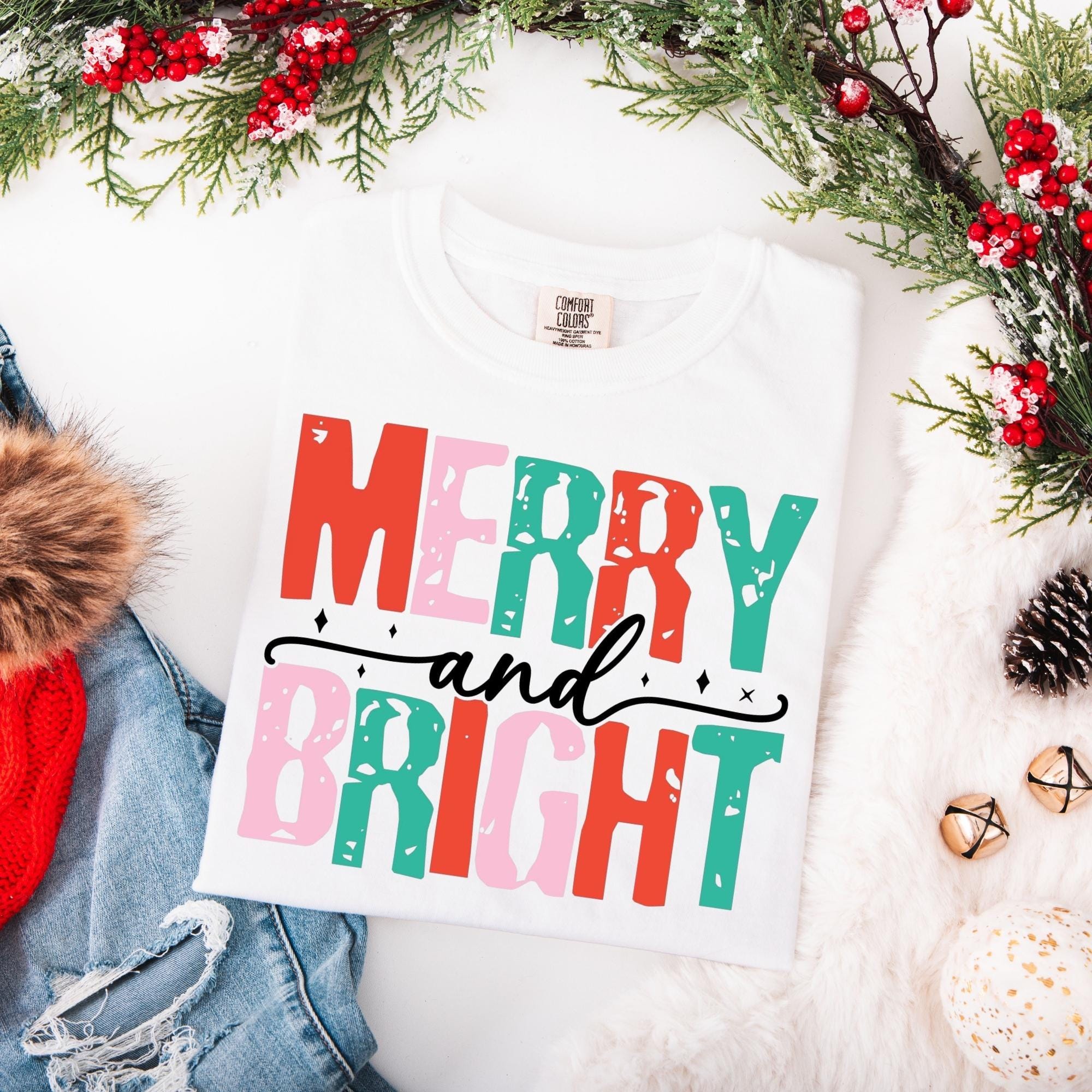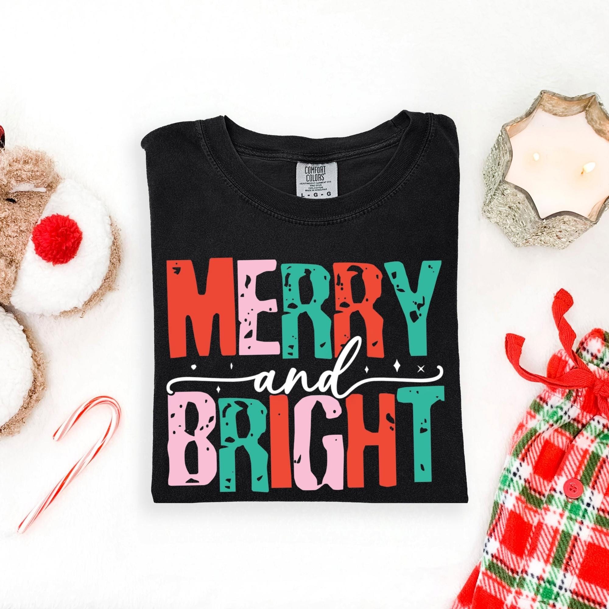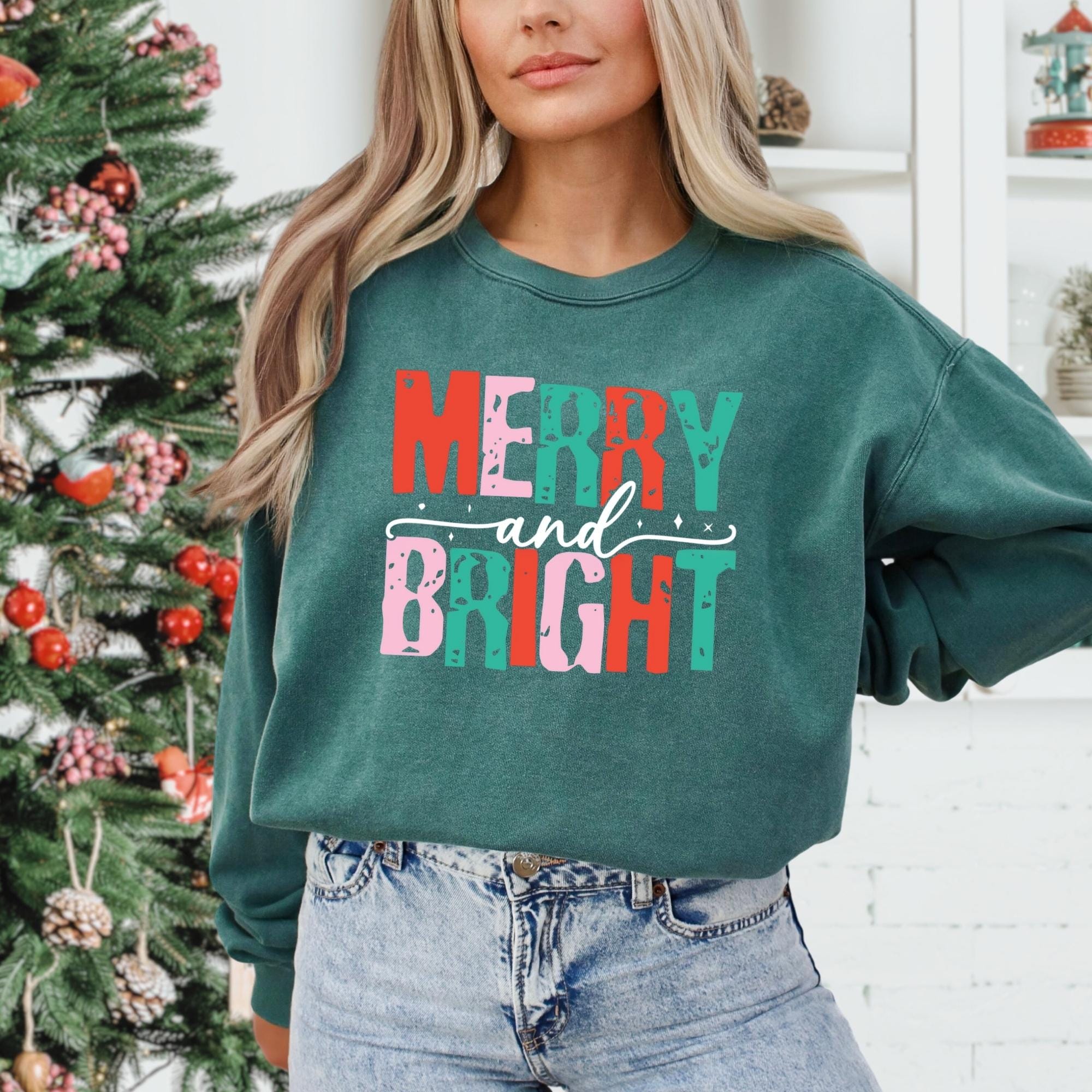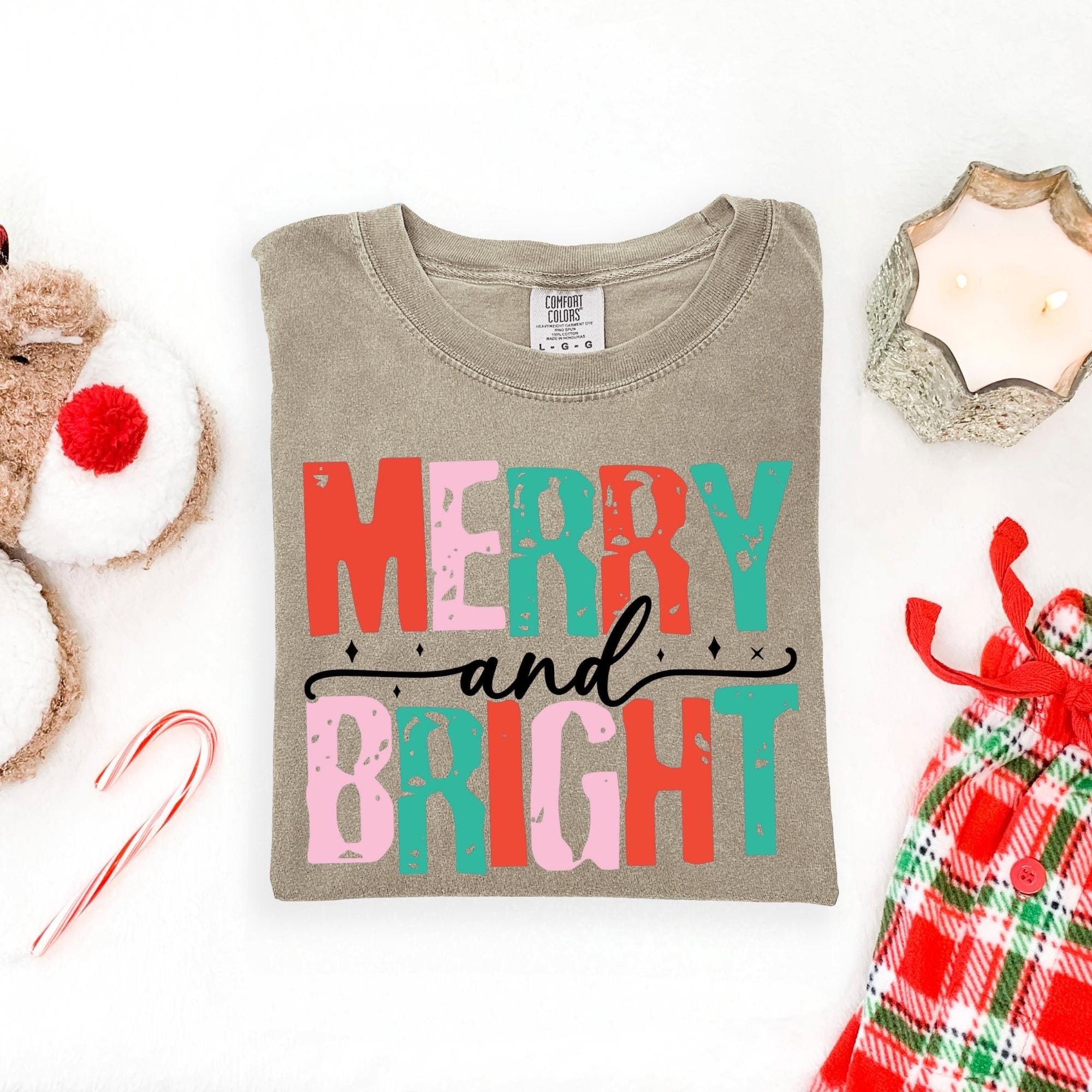 Merry and Bright Christmas Tee, Women's Christmas Shirt, Christmas Gifts, Long Sleeve Shirt, Christmas Shirt for Her, Cute Xmas Gift for Her