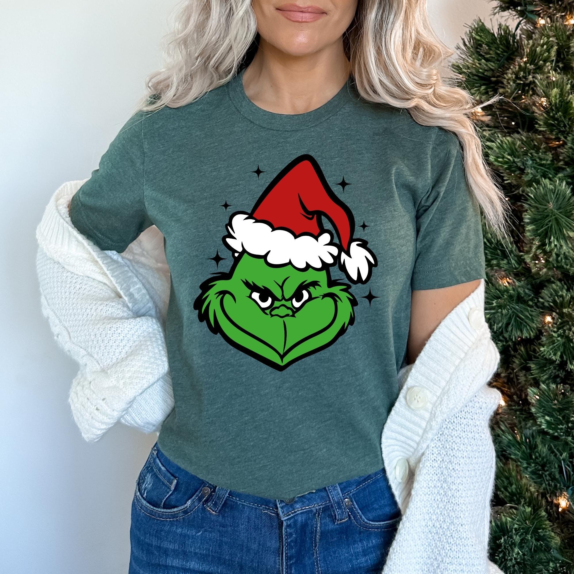 Grinch Christmas Shirt, Unisex Xmas Tee, Funny Grinch Gift, Women Shirt, Grinch Face Shirt, Christmas Shirt, Grinchmas Tshirt, Holiday Shirt