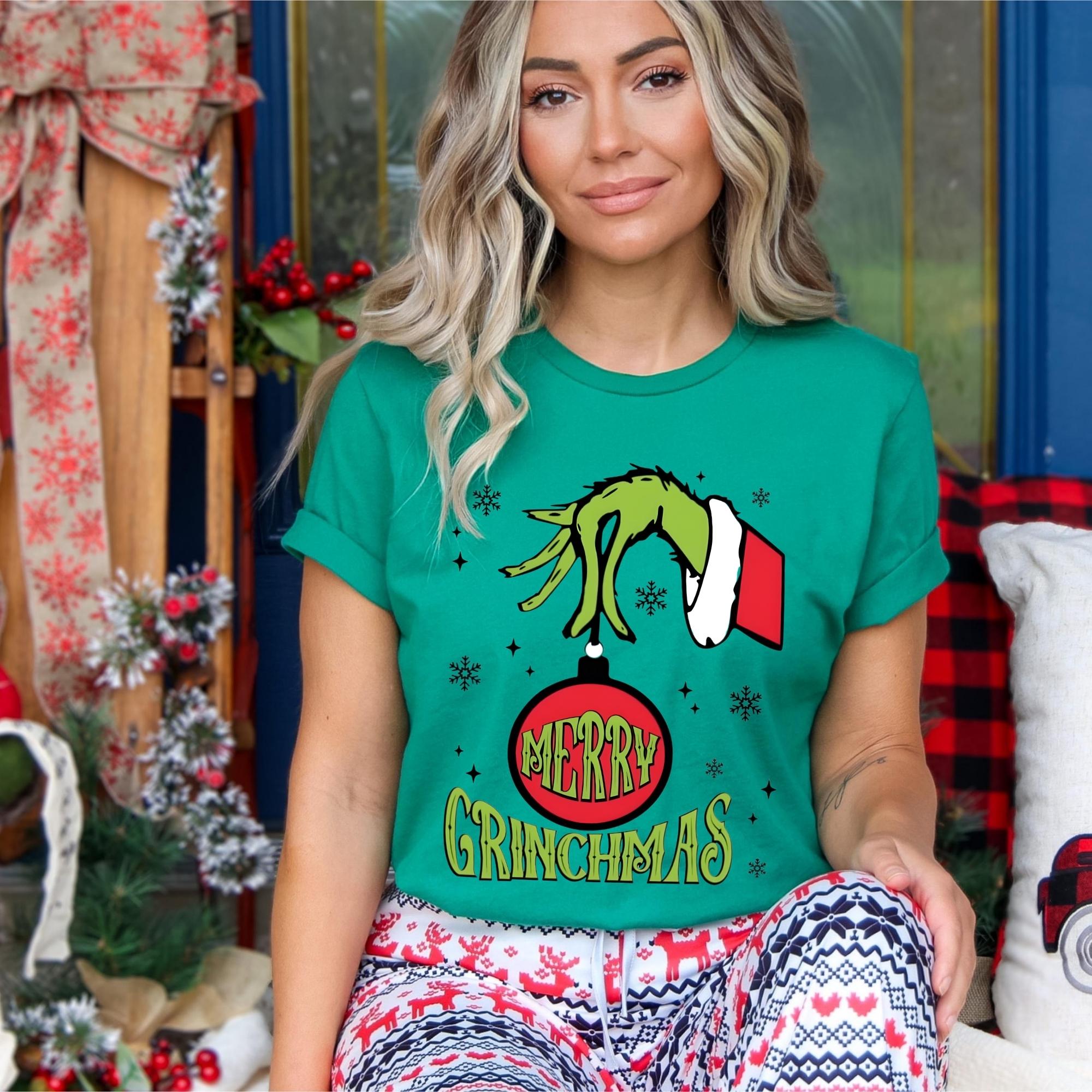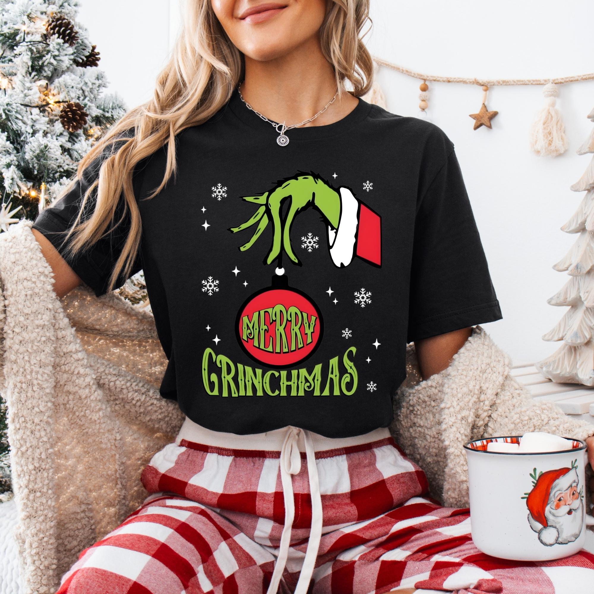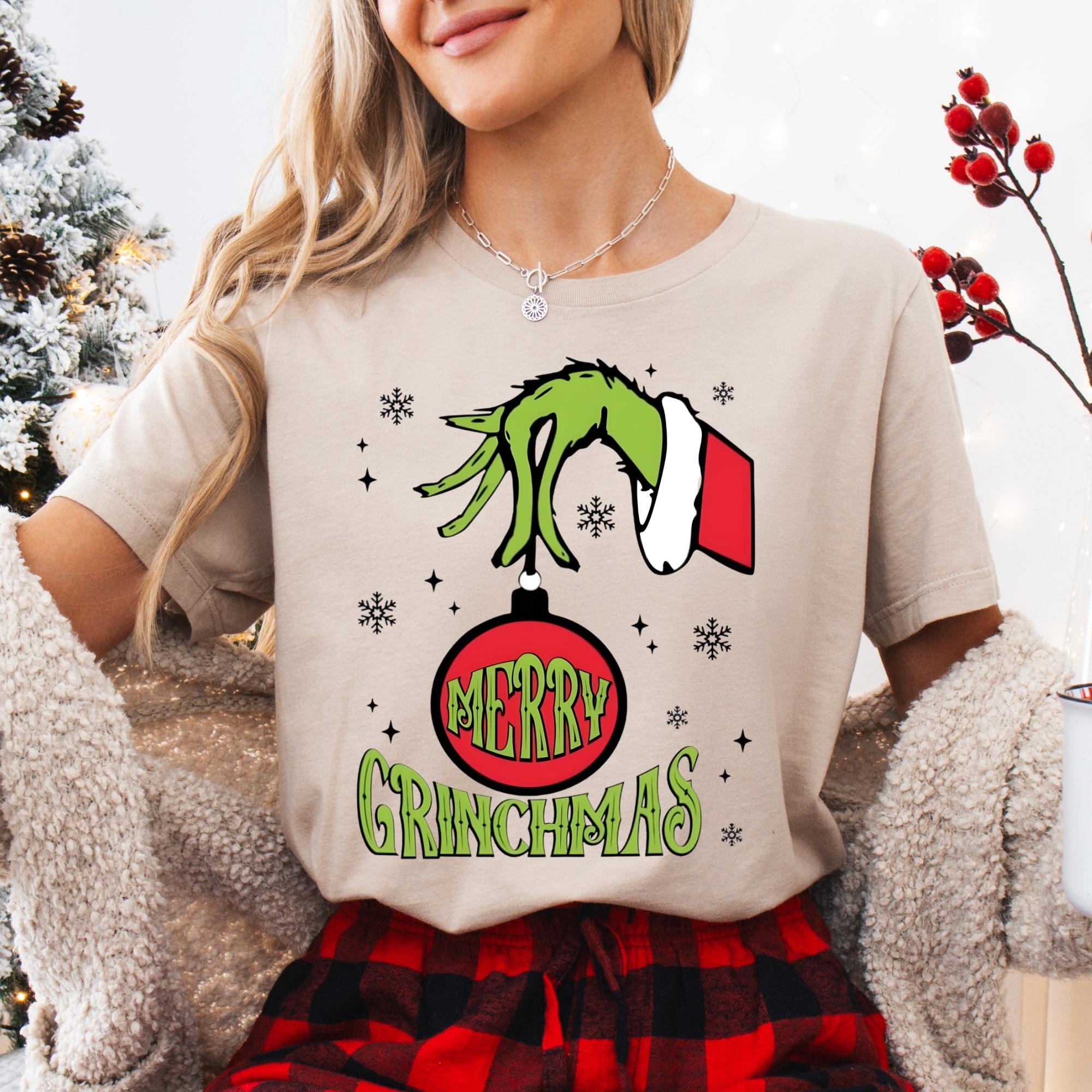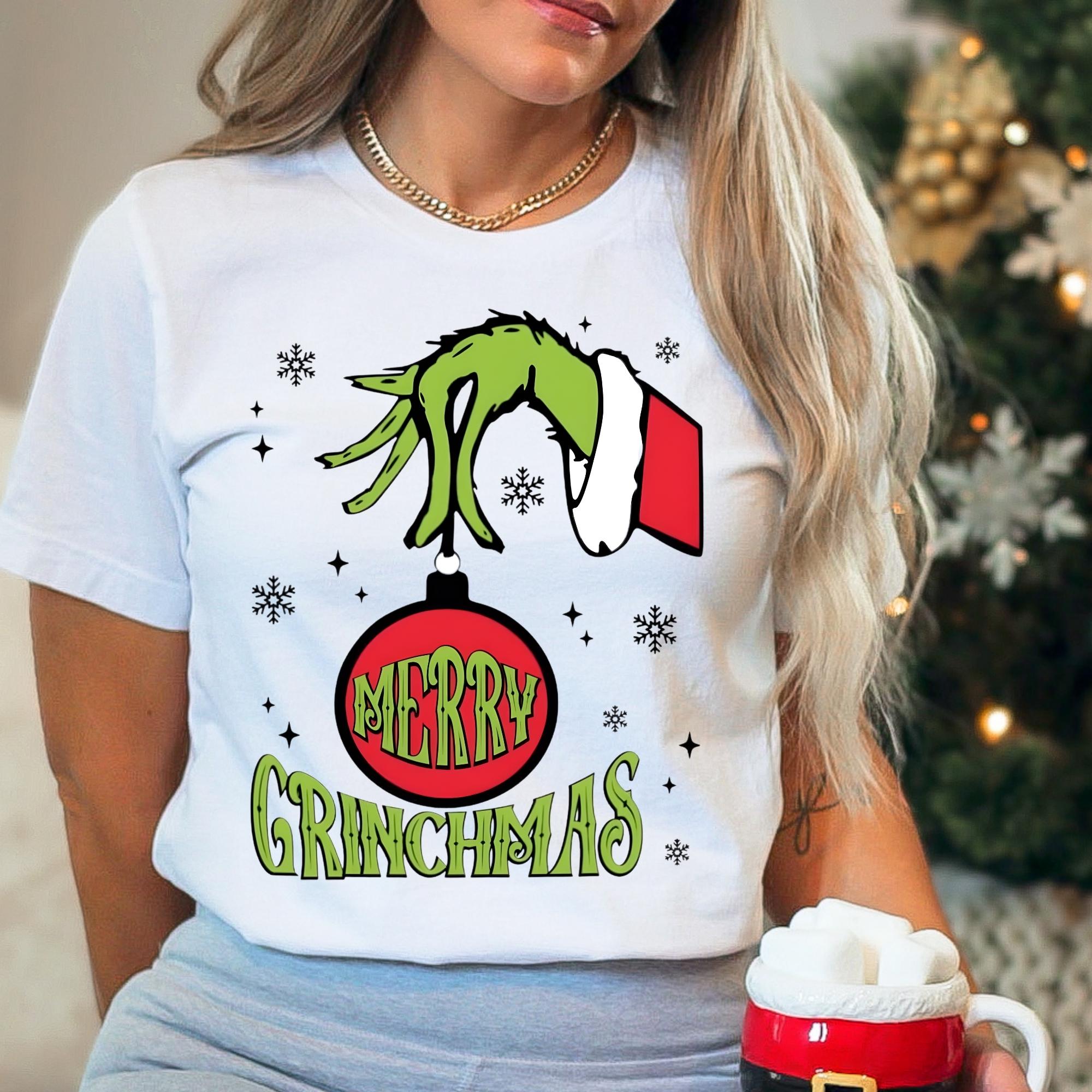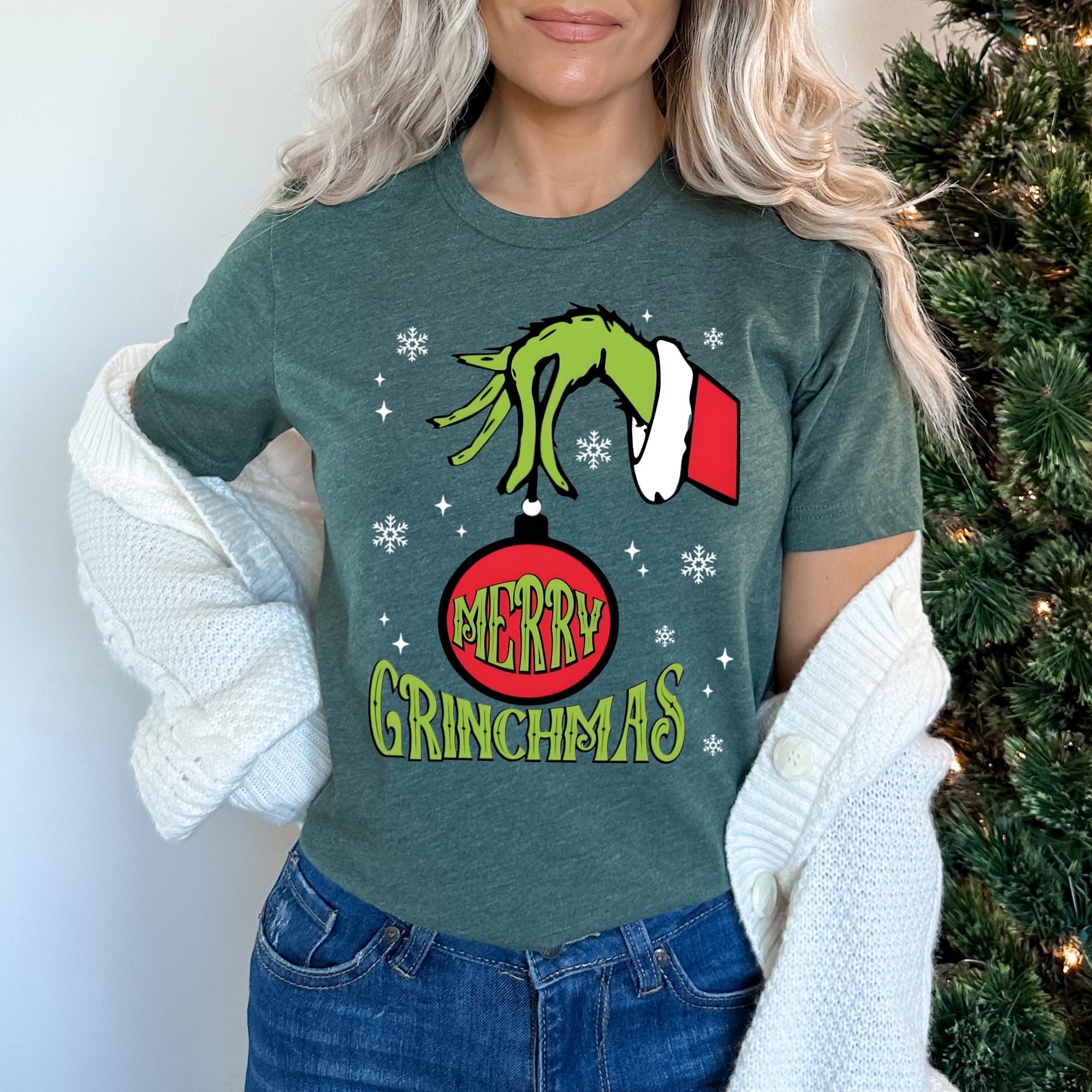 Grinch Hand Graphic T-Shirt, Christmas Ornament Crewneck, Grinch Christmas Tee, Merry Christmas T-Shirt,xmas Trend Tee,Christmas Gift Tee