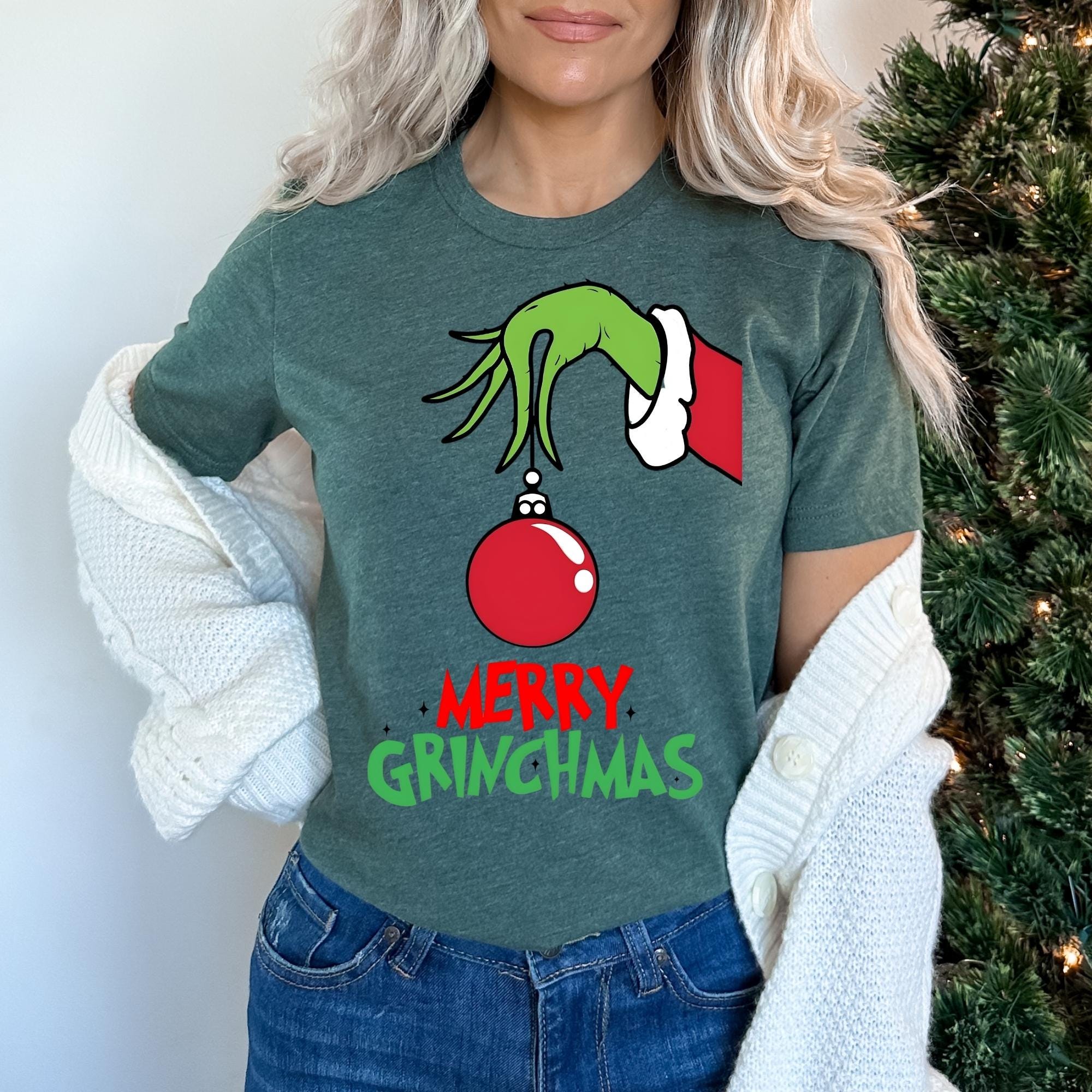 Grinch Hand Graphic T-Shirt, Christmas Ornament Crewneck, Grinch Christmas Tee, Merry Christmas T-Shirt,xmas Trend Tee,Christmas Gift Tee