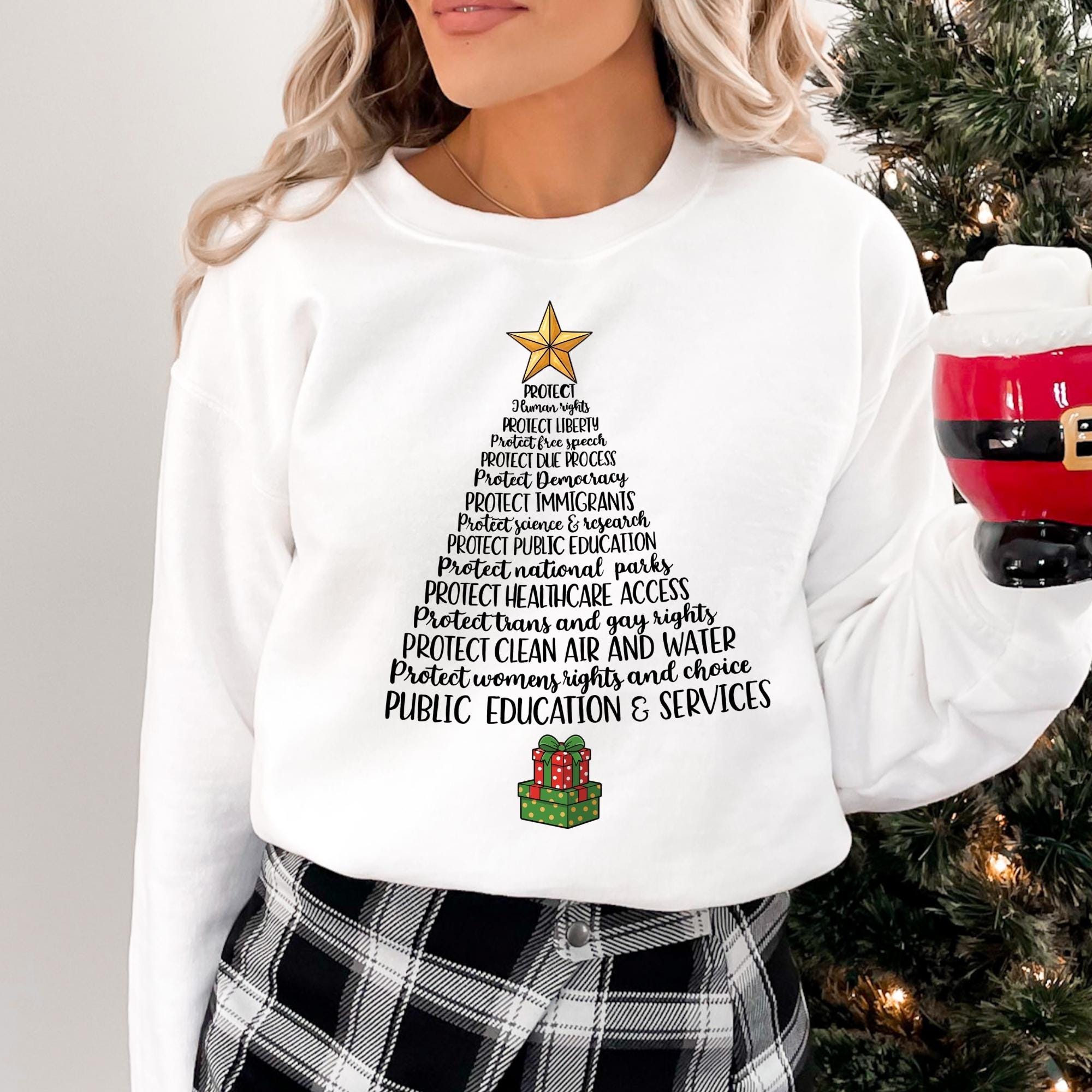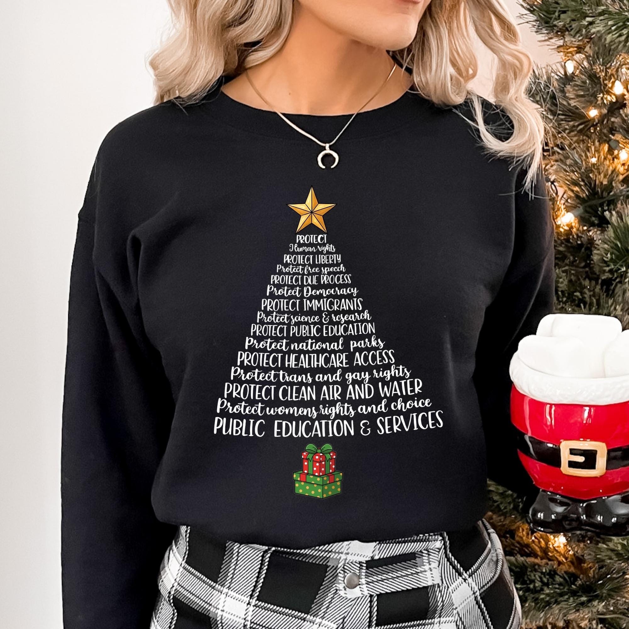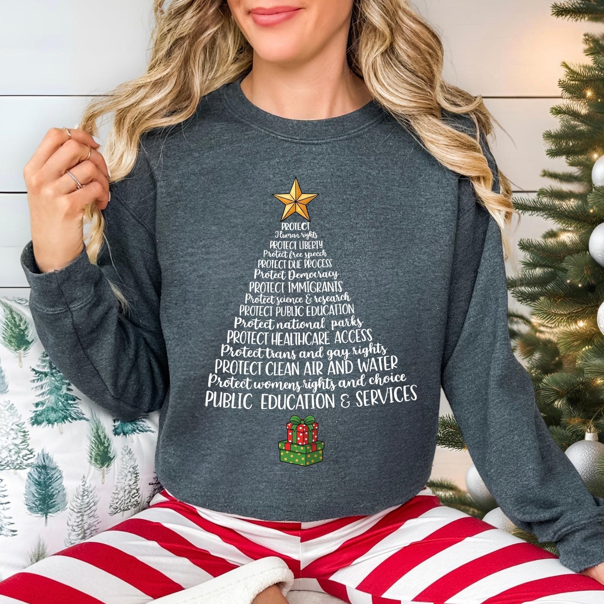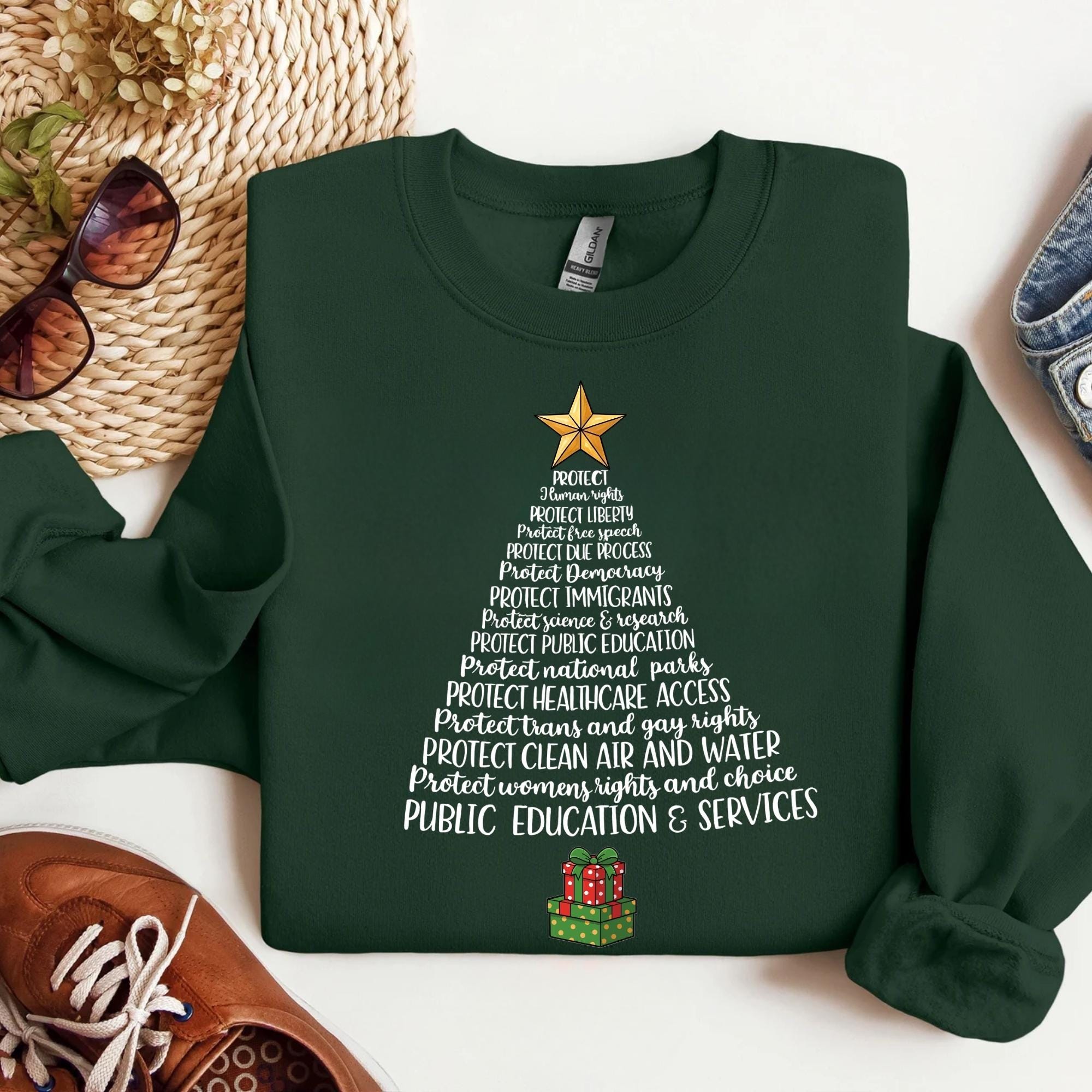Protect Democracy Christmas Tree Shirt, Anti-Trump Liberal Values Tee, Social Justice Holiday Sweatshirt, Pro-Democracy Christmas Top