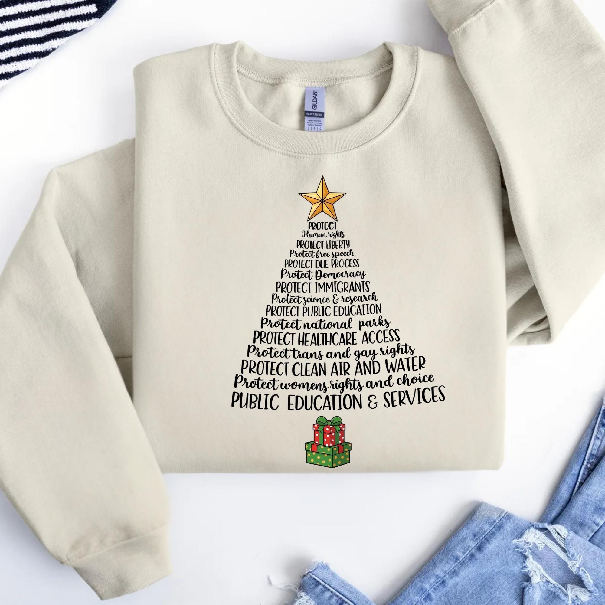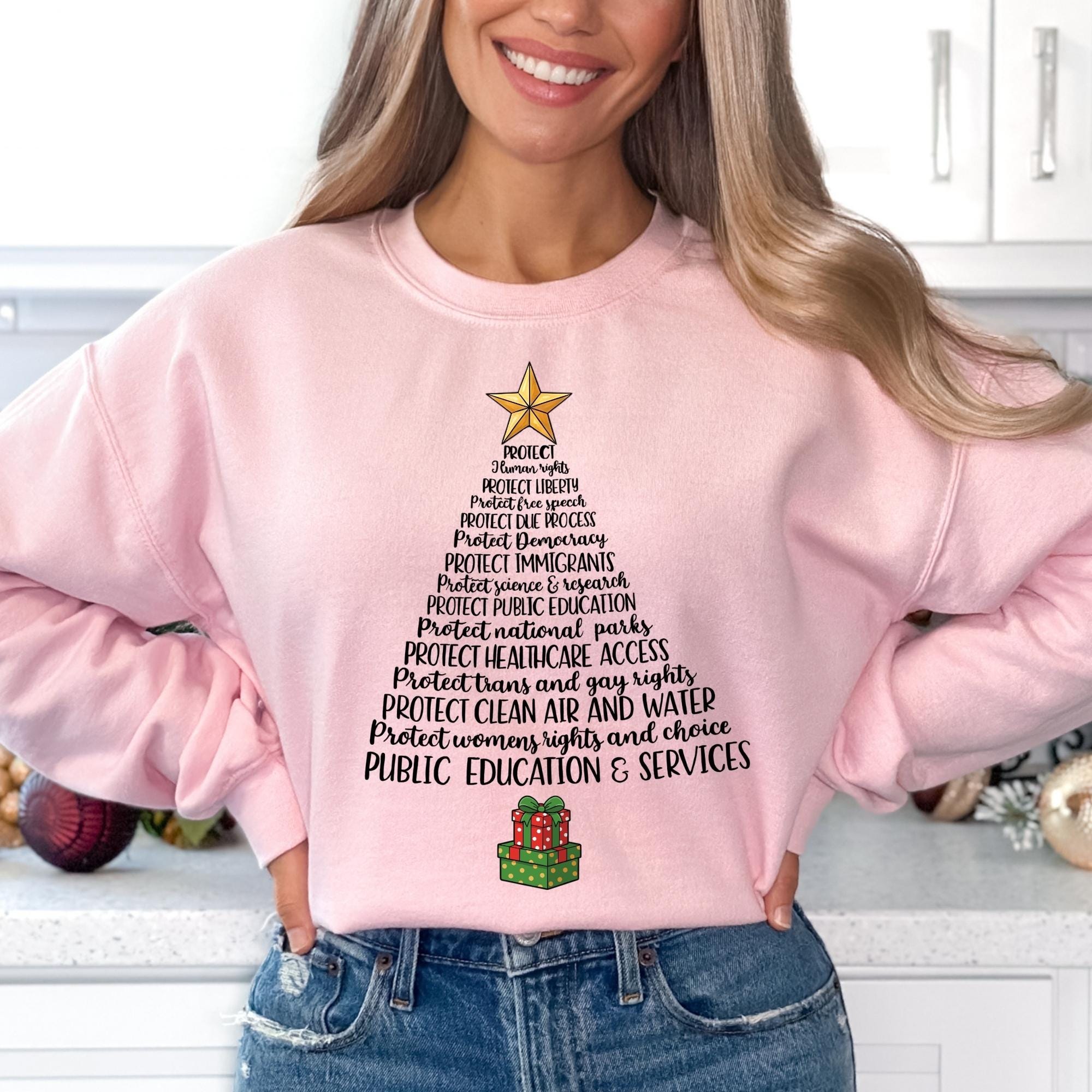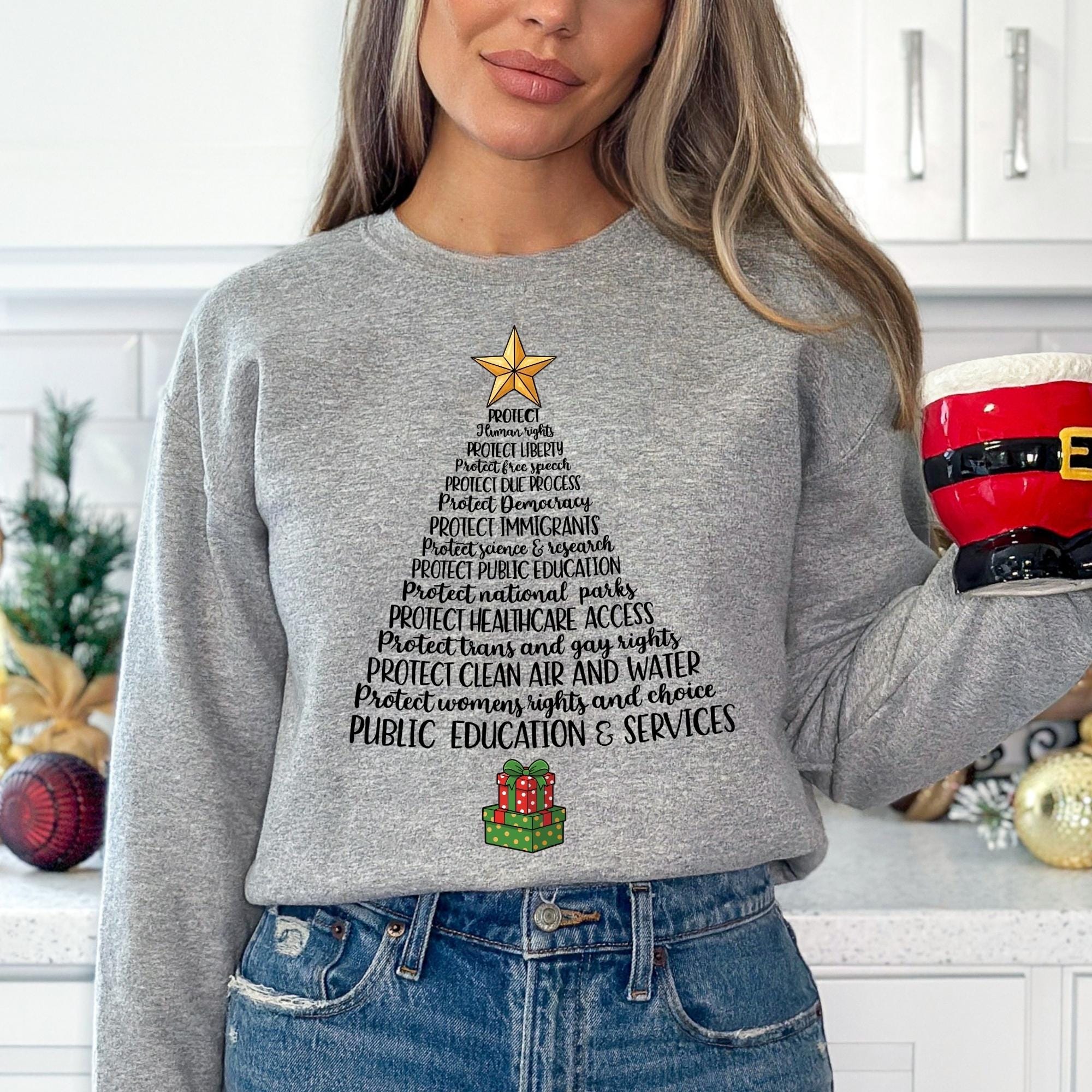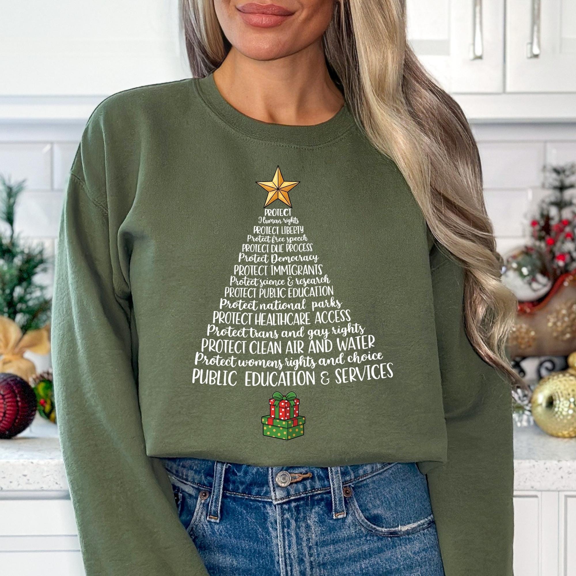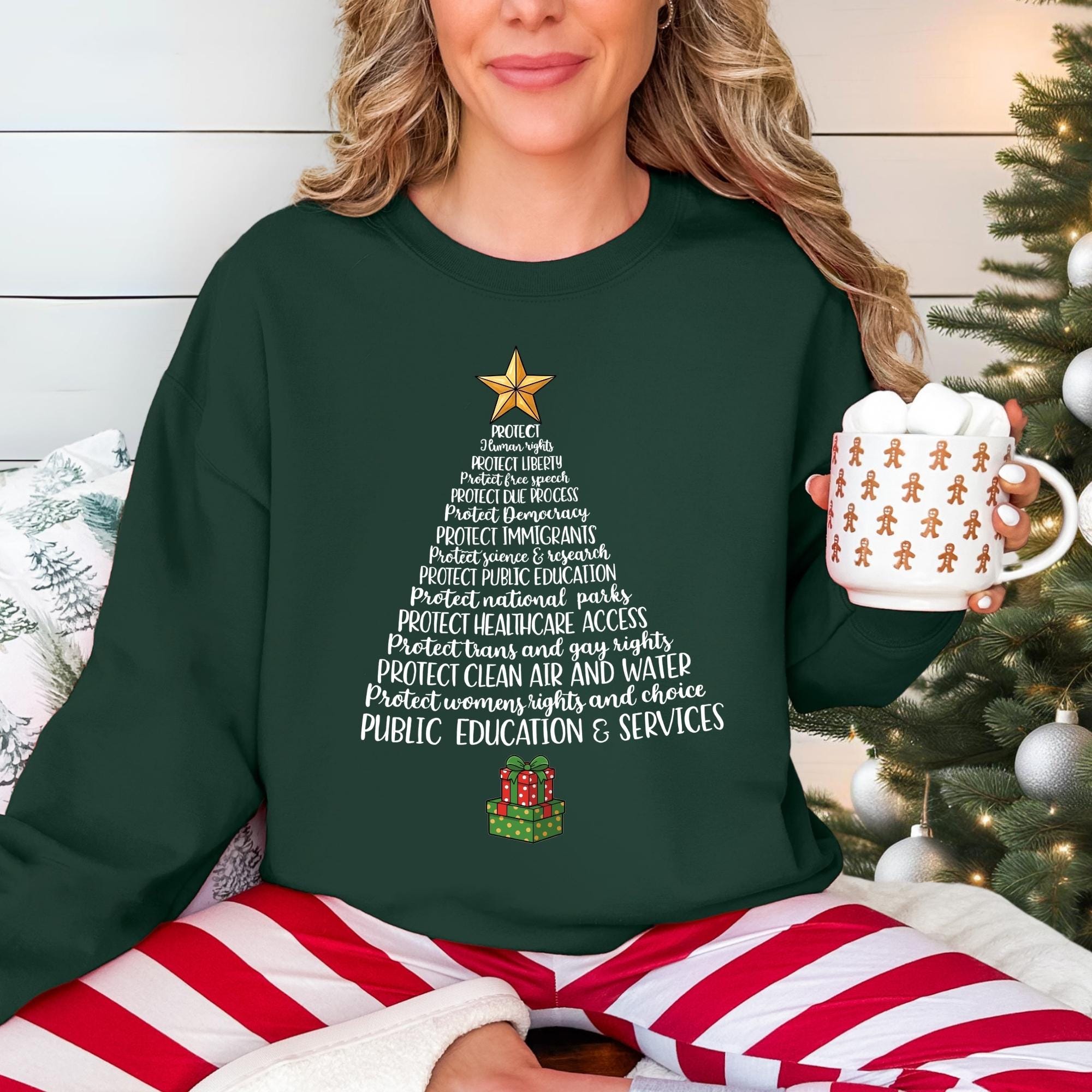Protect Democracy Christmas Tree Shirt, Anti-Trump Liberal Values Tee, Social Justice Holiday Sweatshirt, Pro-Democracy Christmas Top
