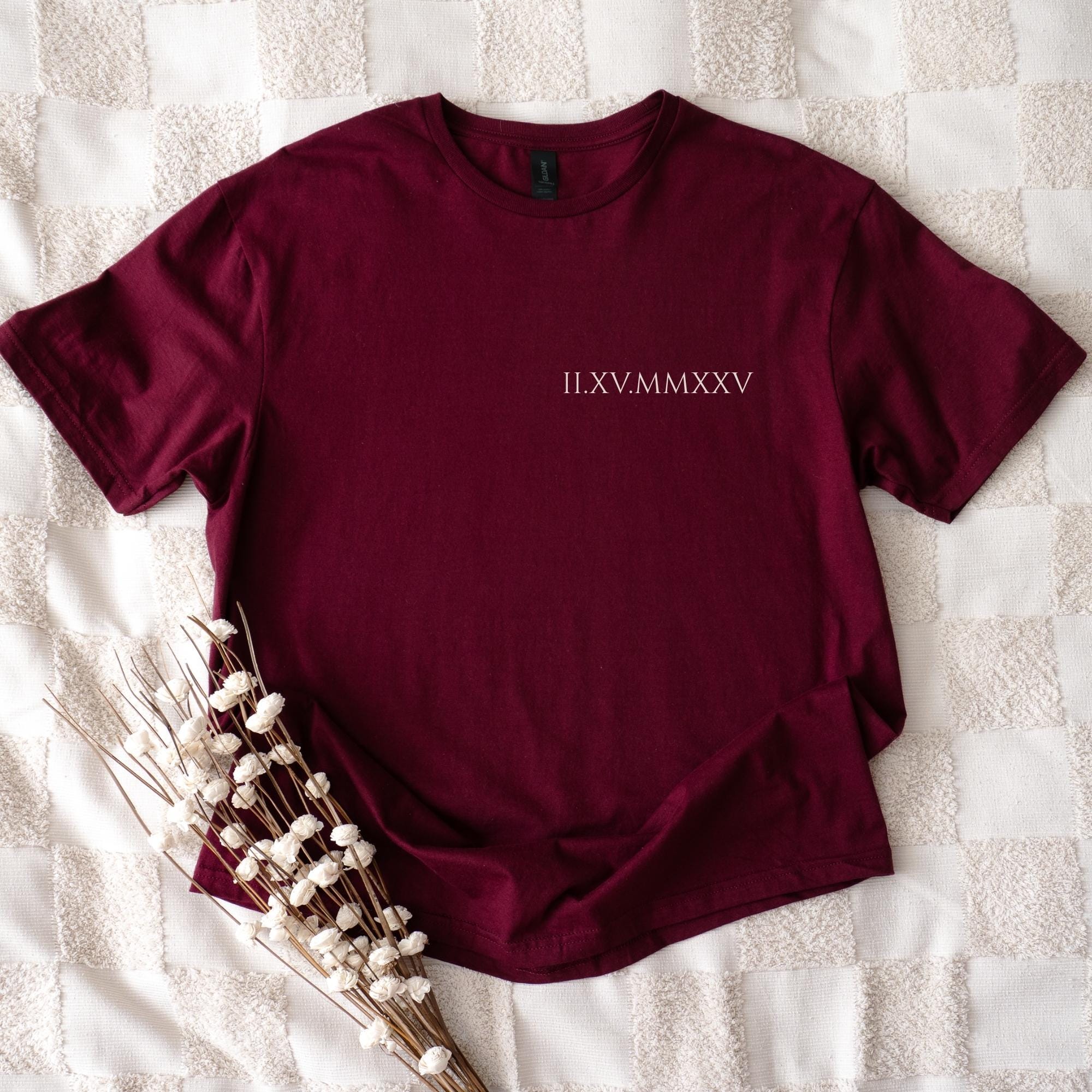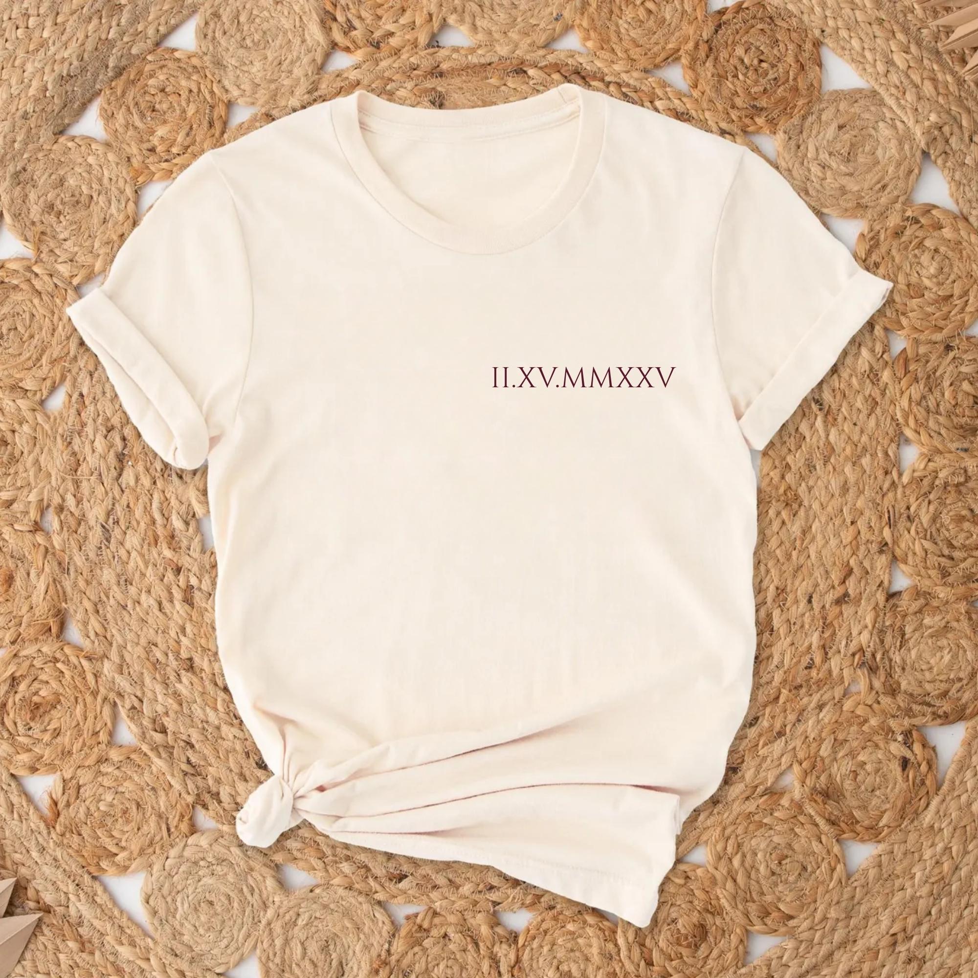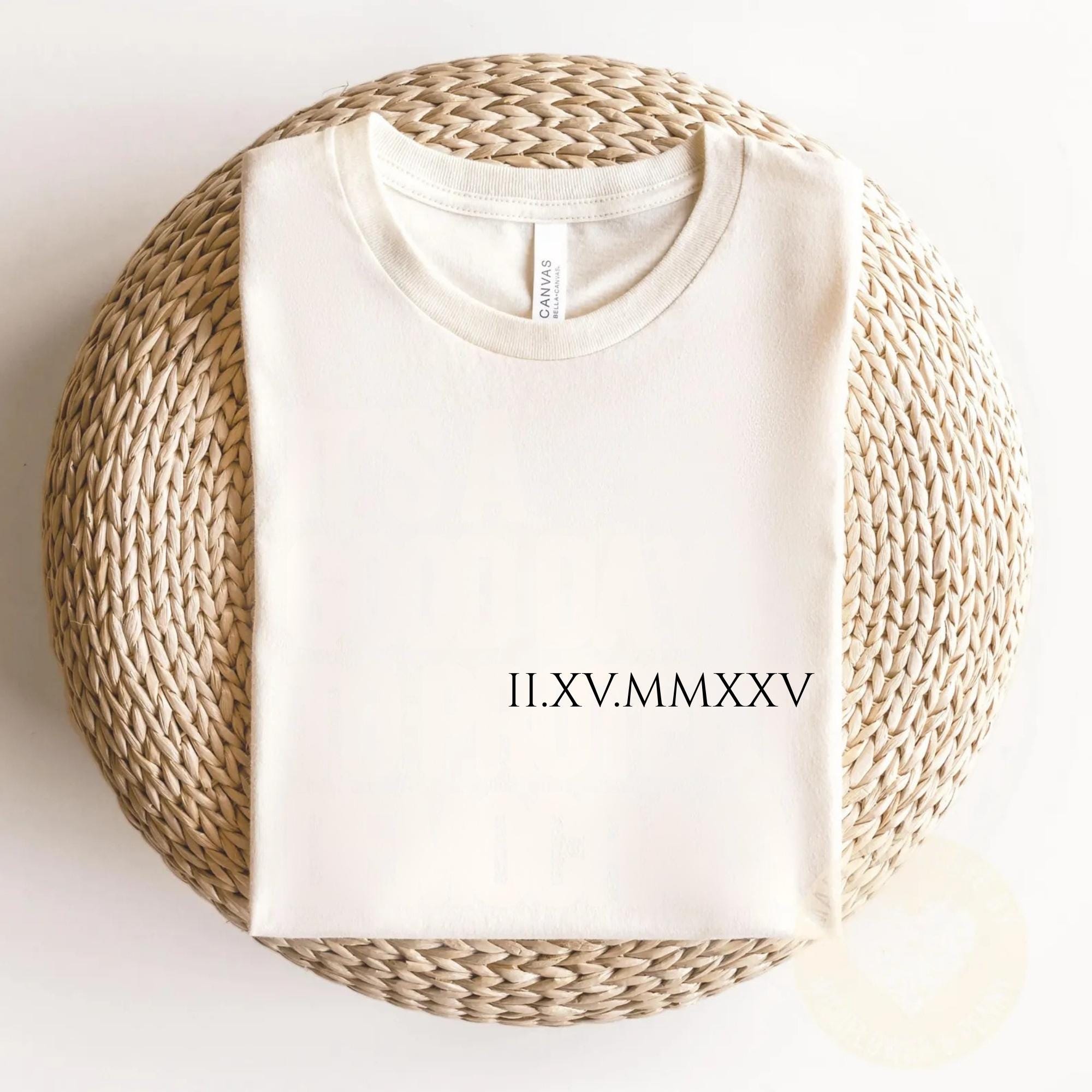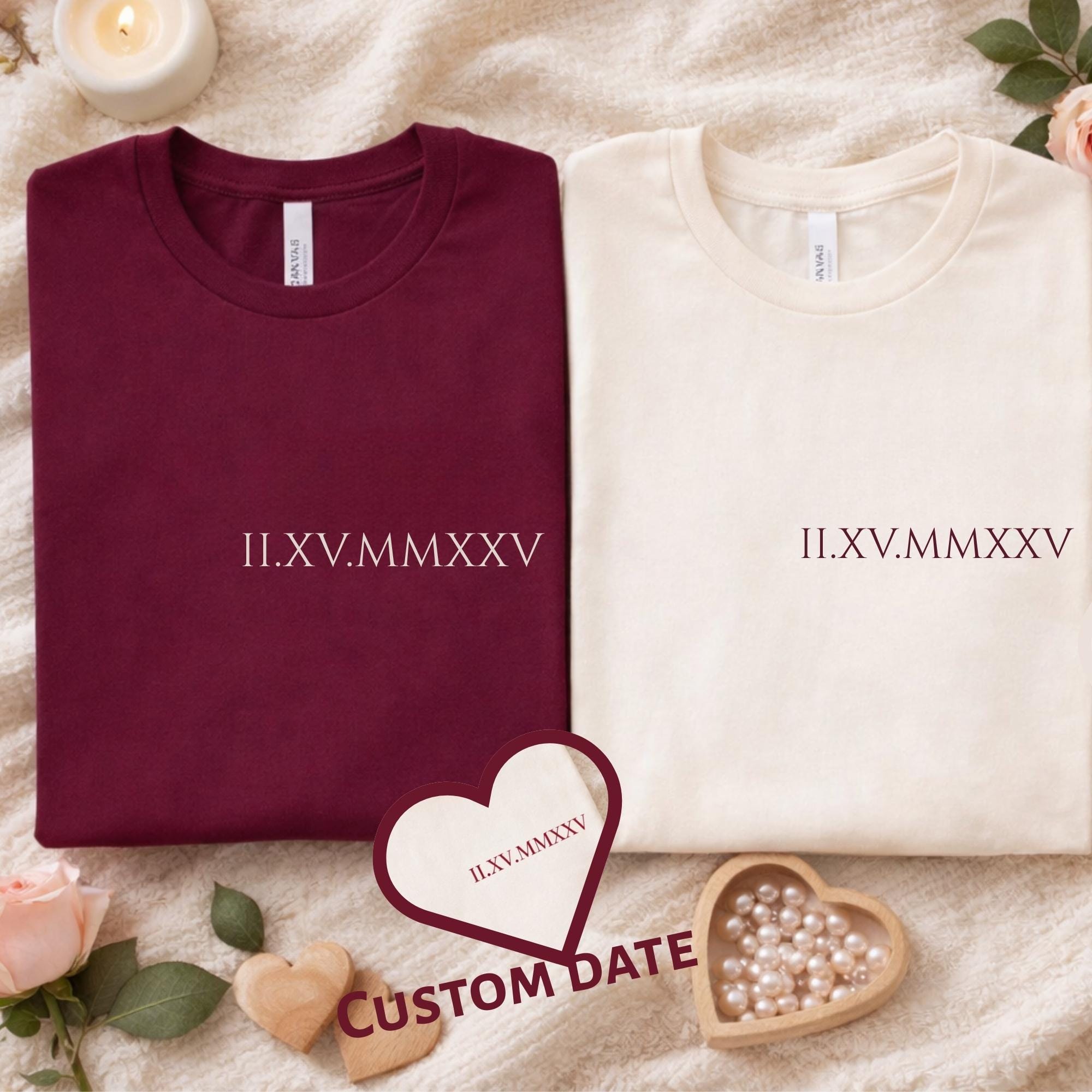 Custom Roman Numeral Date Shirt, Couple Matching Shirts, Anniversary Gift, Minimal Aesthetic Unisex Pullover
