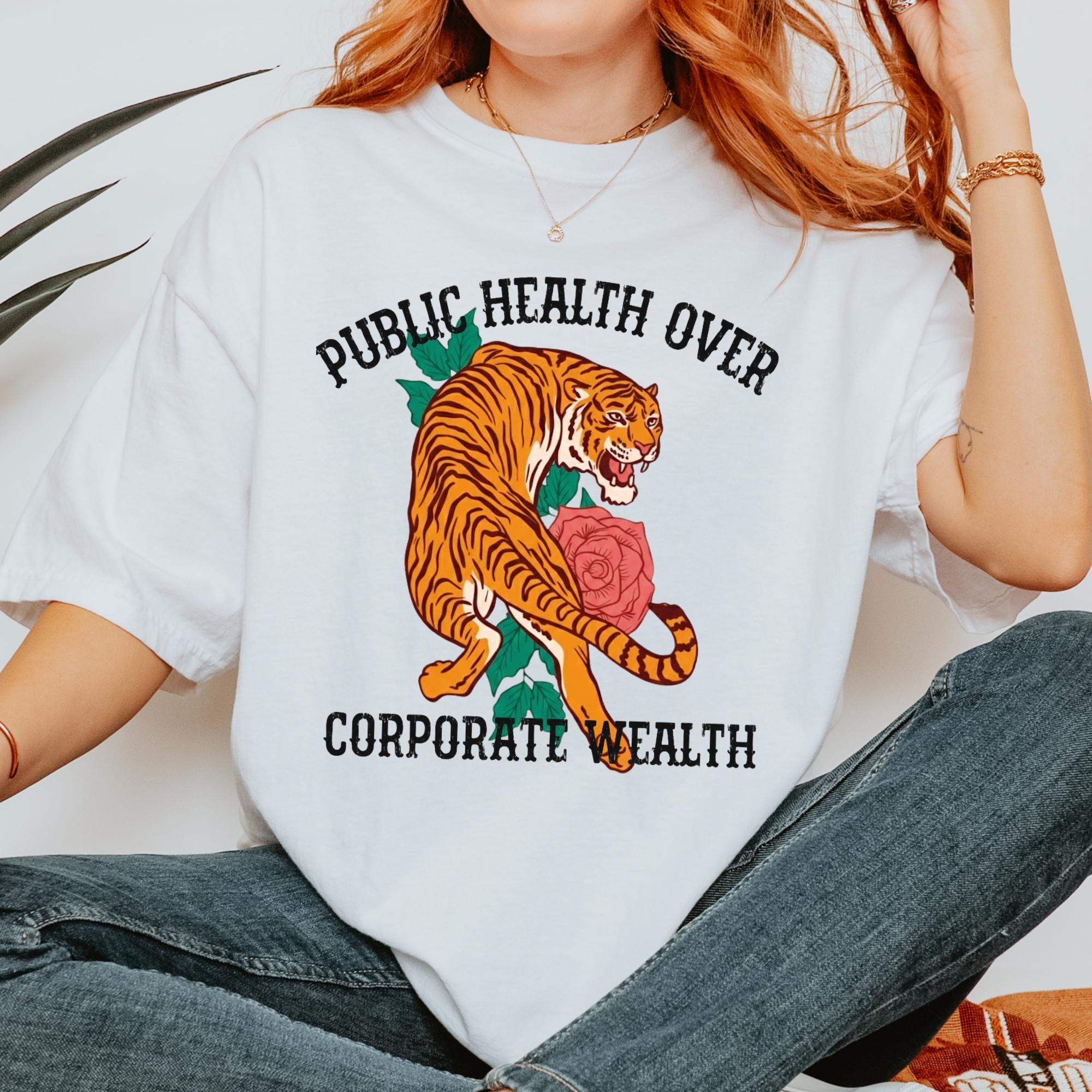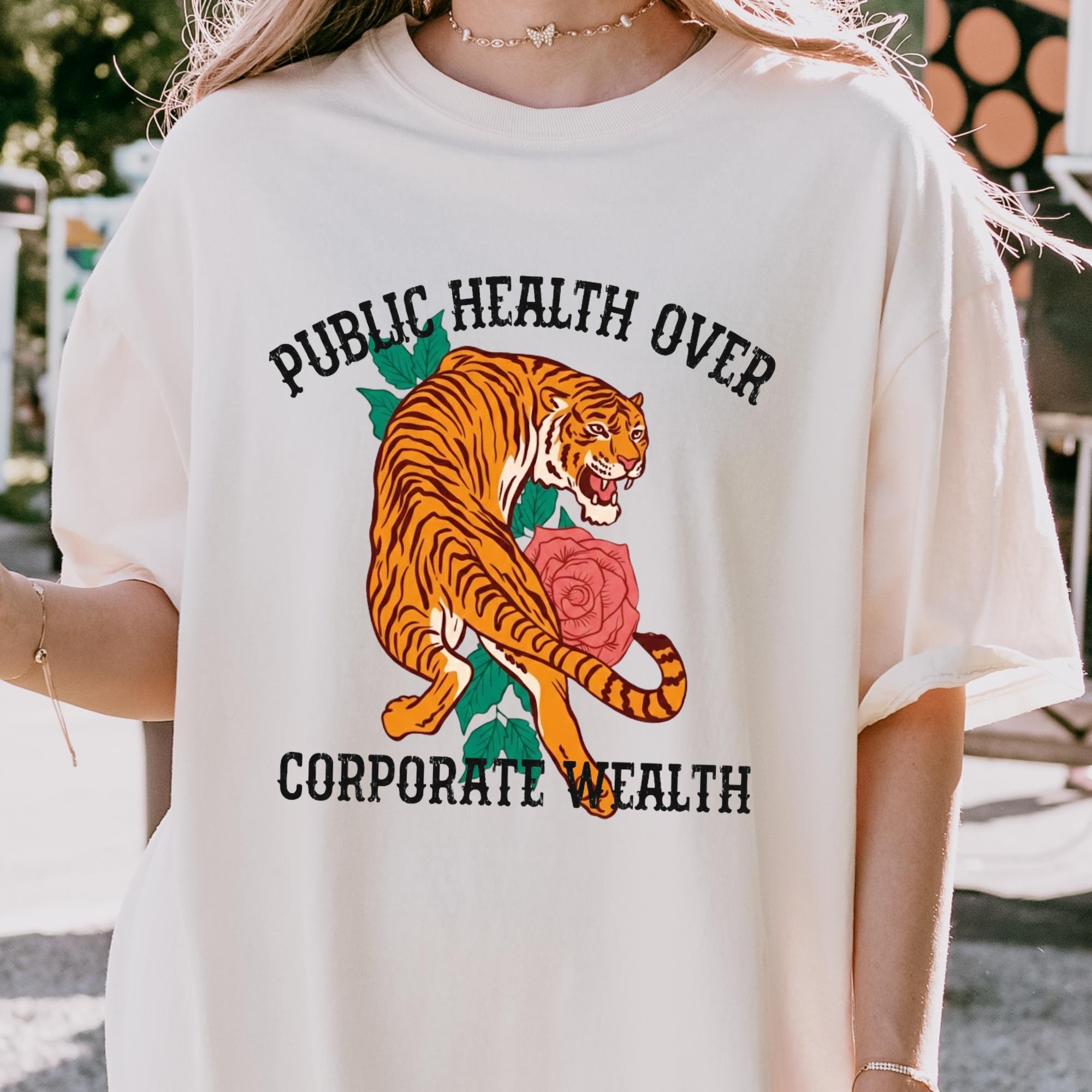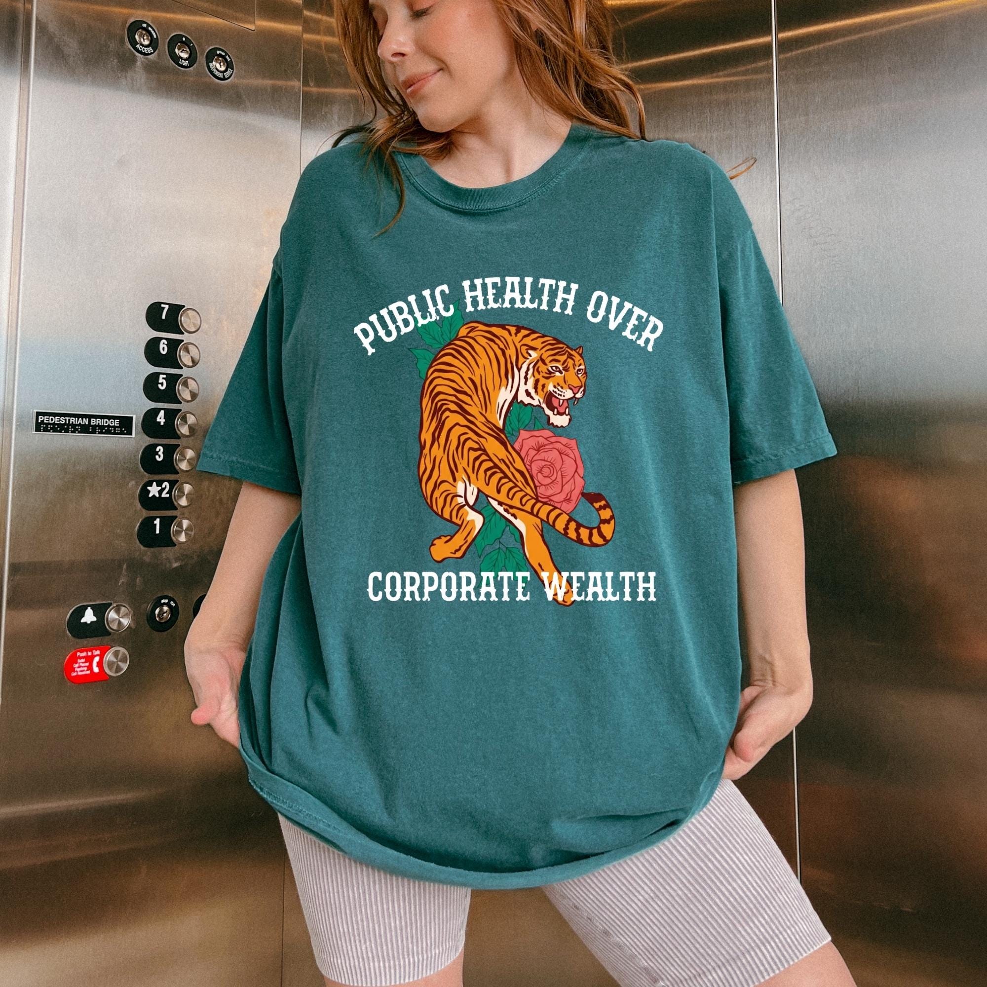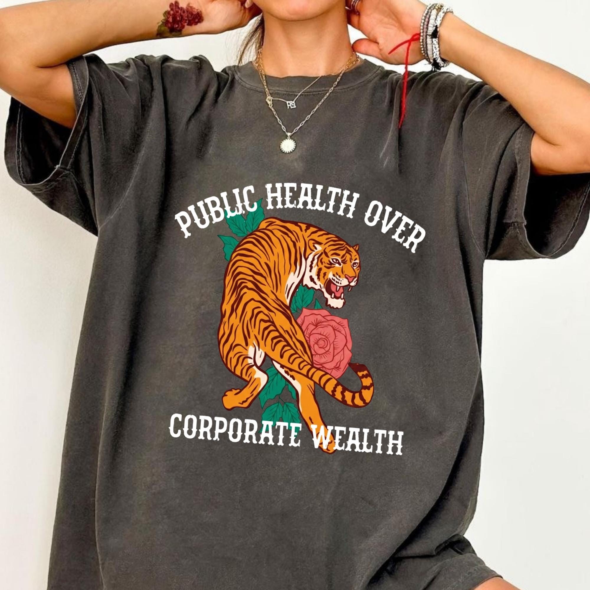 Tiger Boho Public Health Over Corporate Wealth Comfort Colors Shirt, Social Justice Anti Oligarchy Activism Anti Fascism Shirt, Resistance
