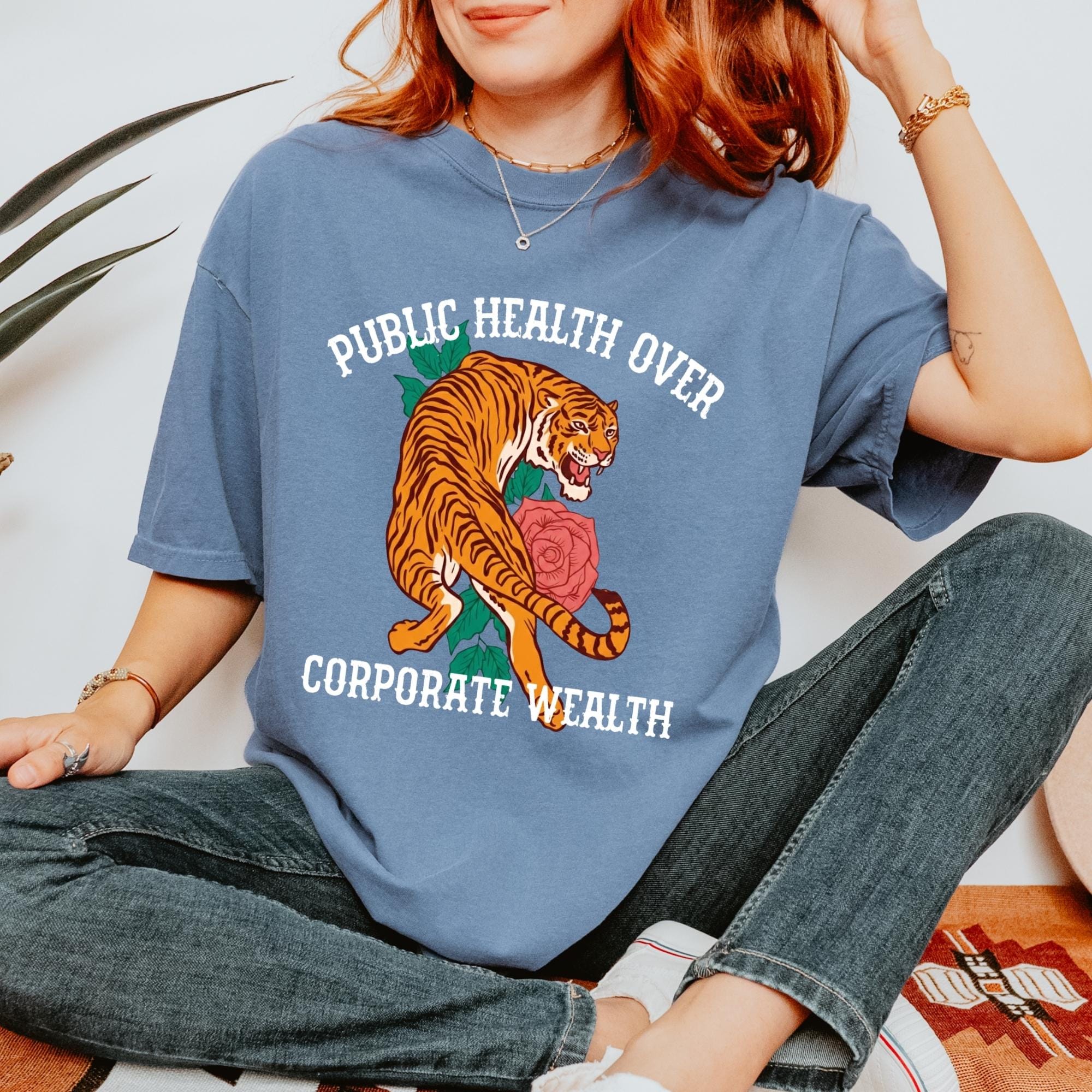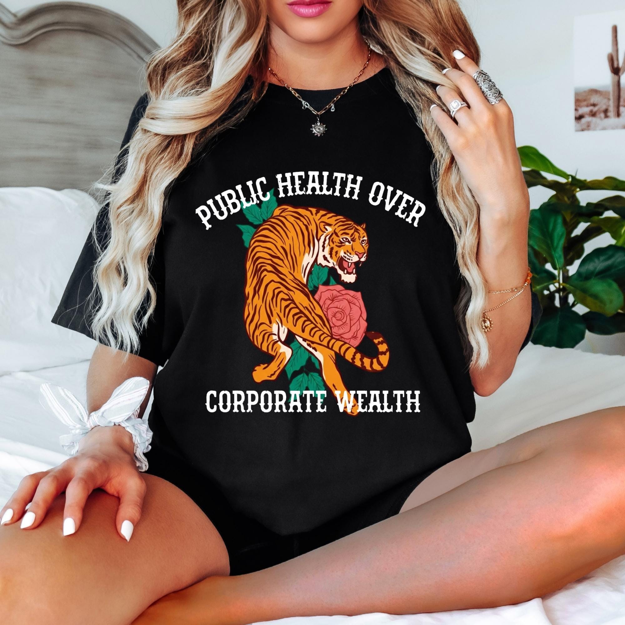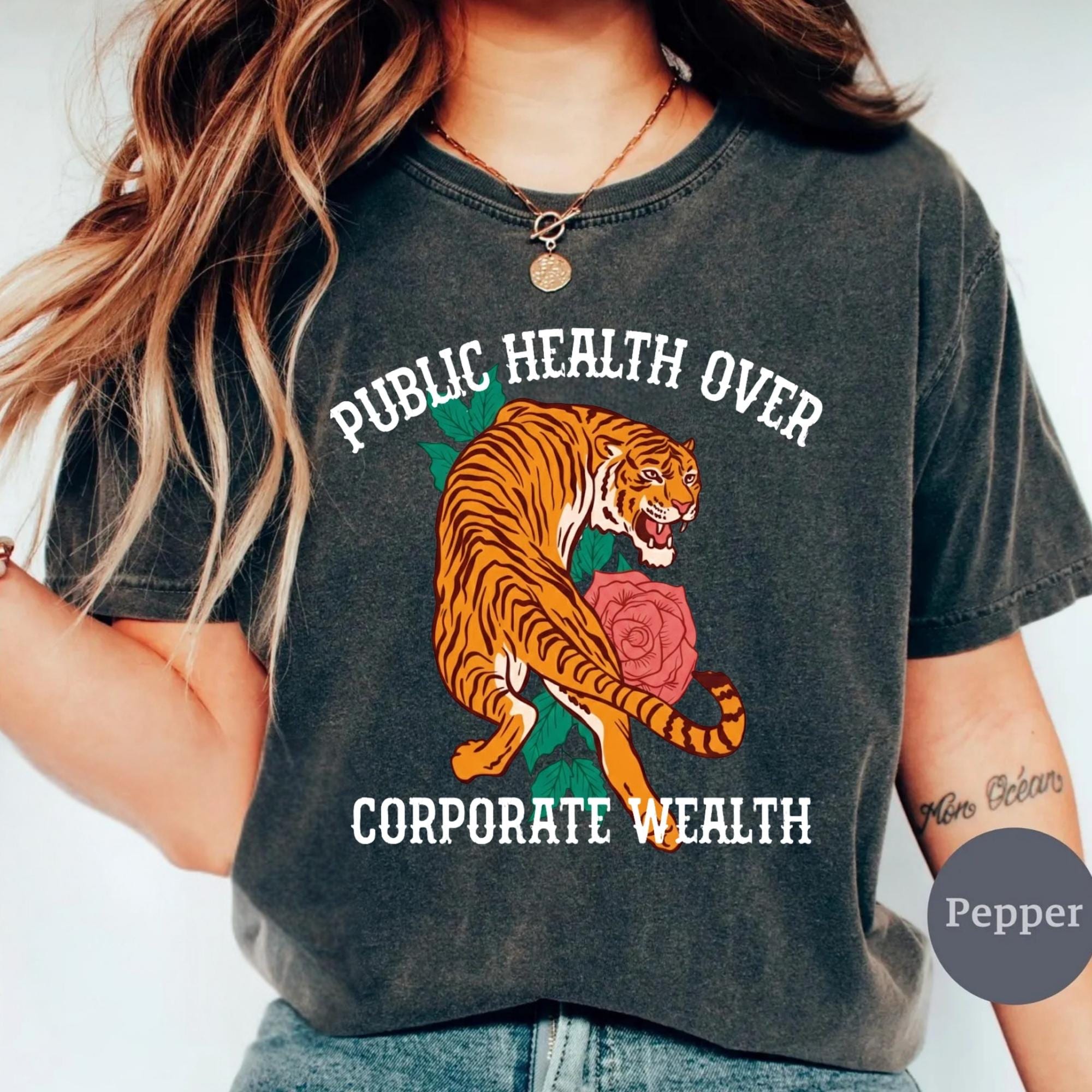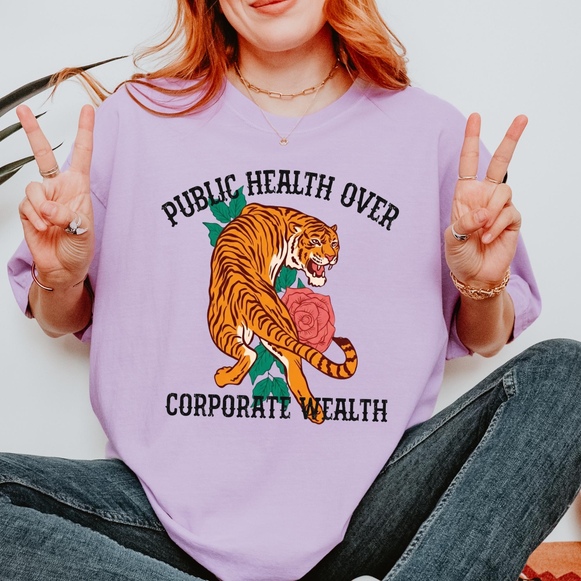 Tiger Boho Public Health Over Corporate Wealth Comfort Colors Shirt, Social Justice Anti Oligarchy Activism Anti Fascism Shirt, Resistance