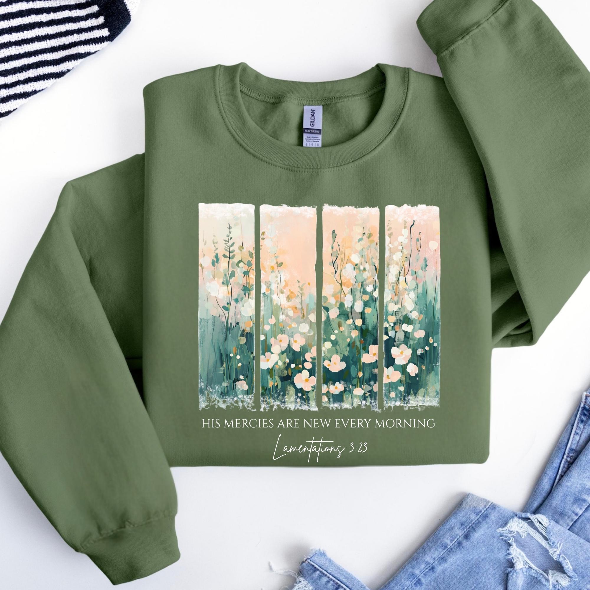 Christian Sweatshirt ,His Mercies Are New Every Morning, Bible Verse Sweatshirt, Religious Women Gift, Faith Tee, Christian Gifts, Jesus Tee