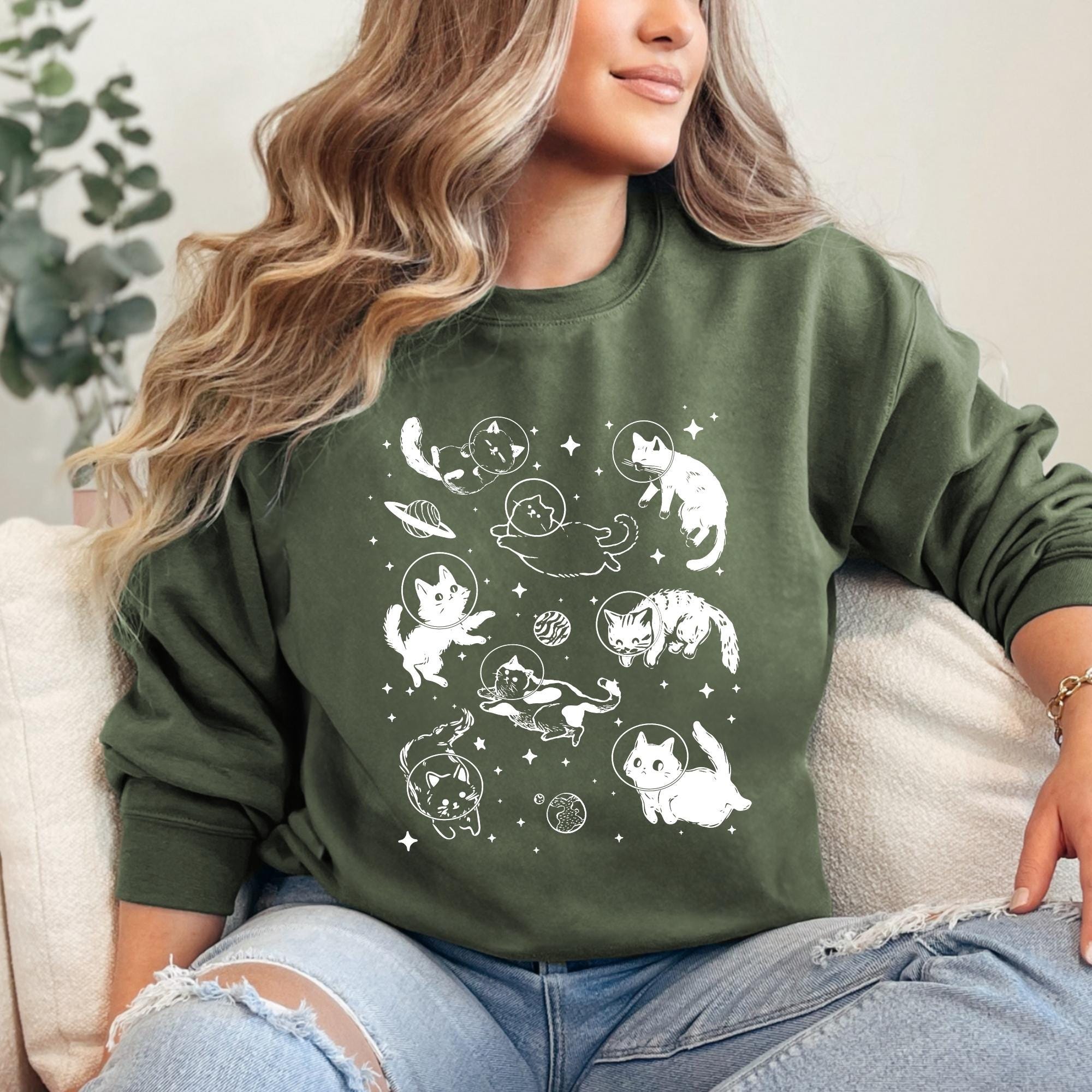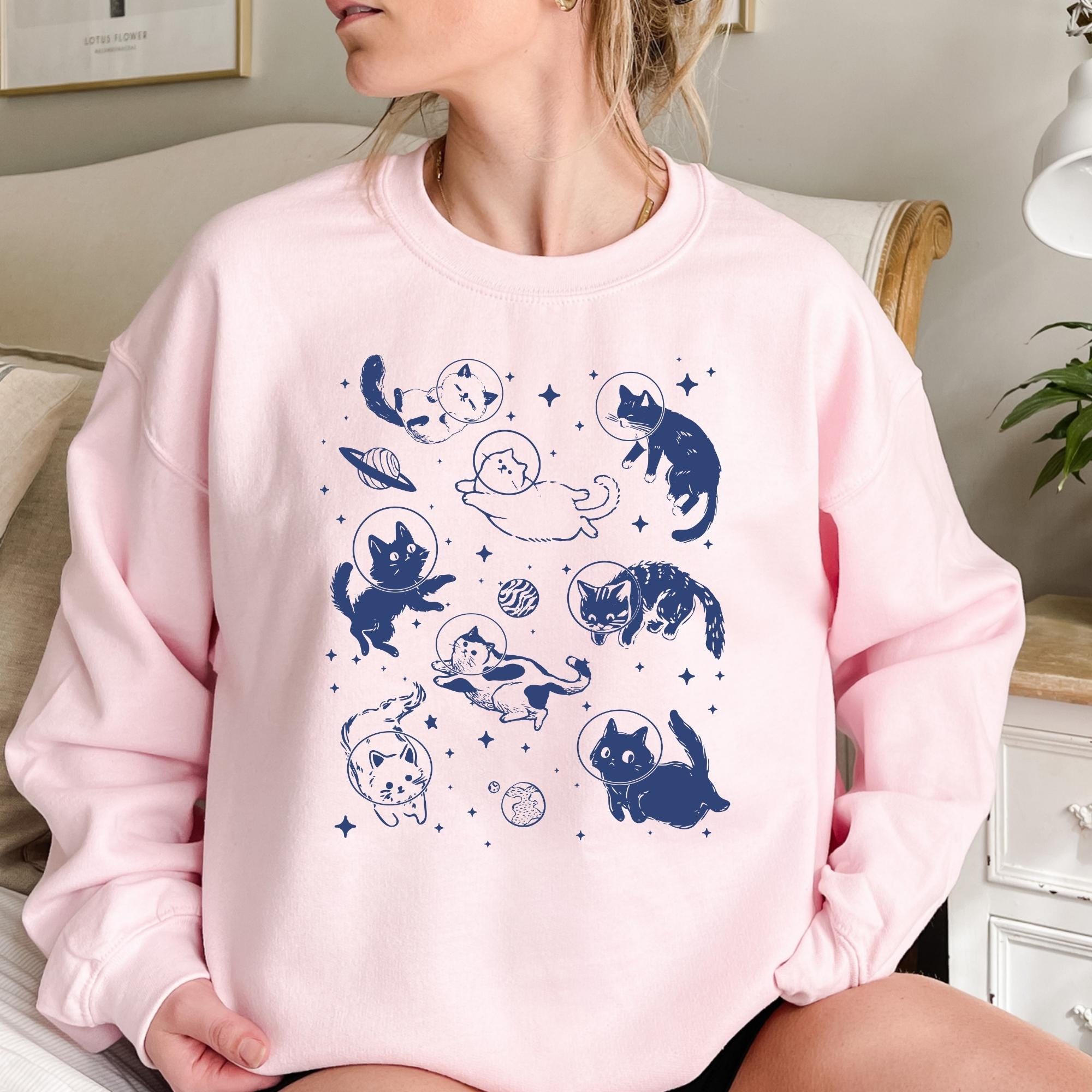 Cats in Space Hoodie,Funny Cat Hoodie,Retro Kitten Trendy Hoodie,Cat Lover Gift,Unisex Graphic Hoodie,Aesthetic Graphic Retro Vintage Hoodie