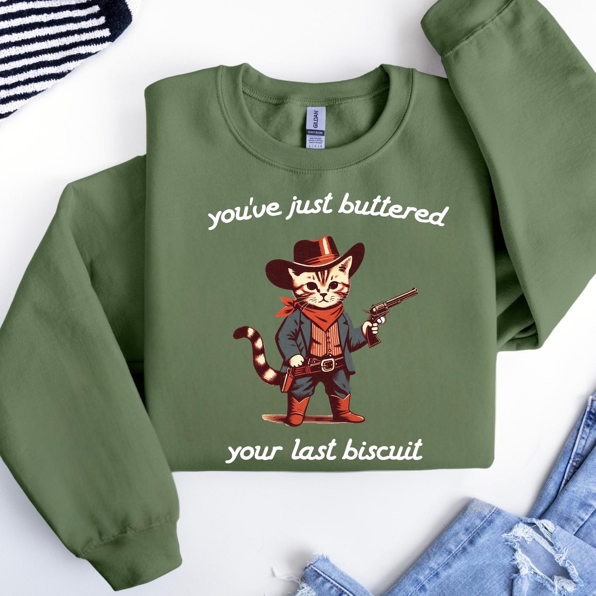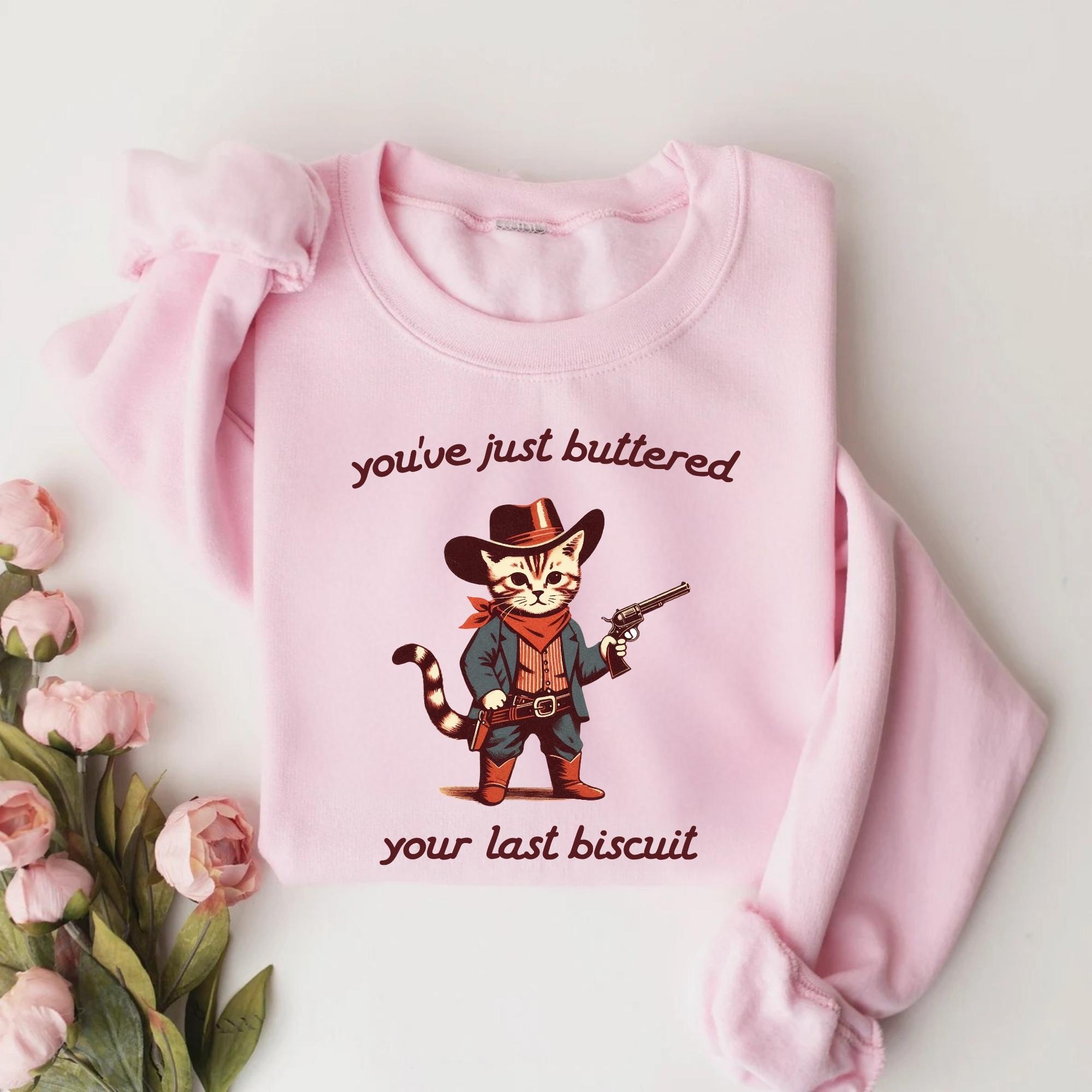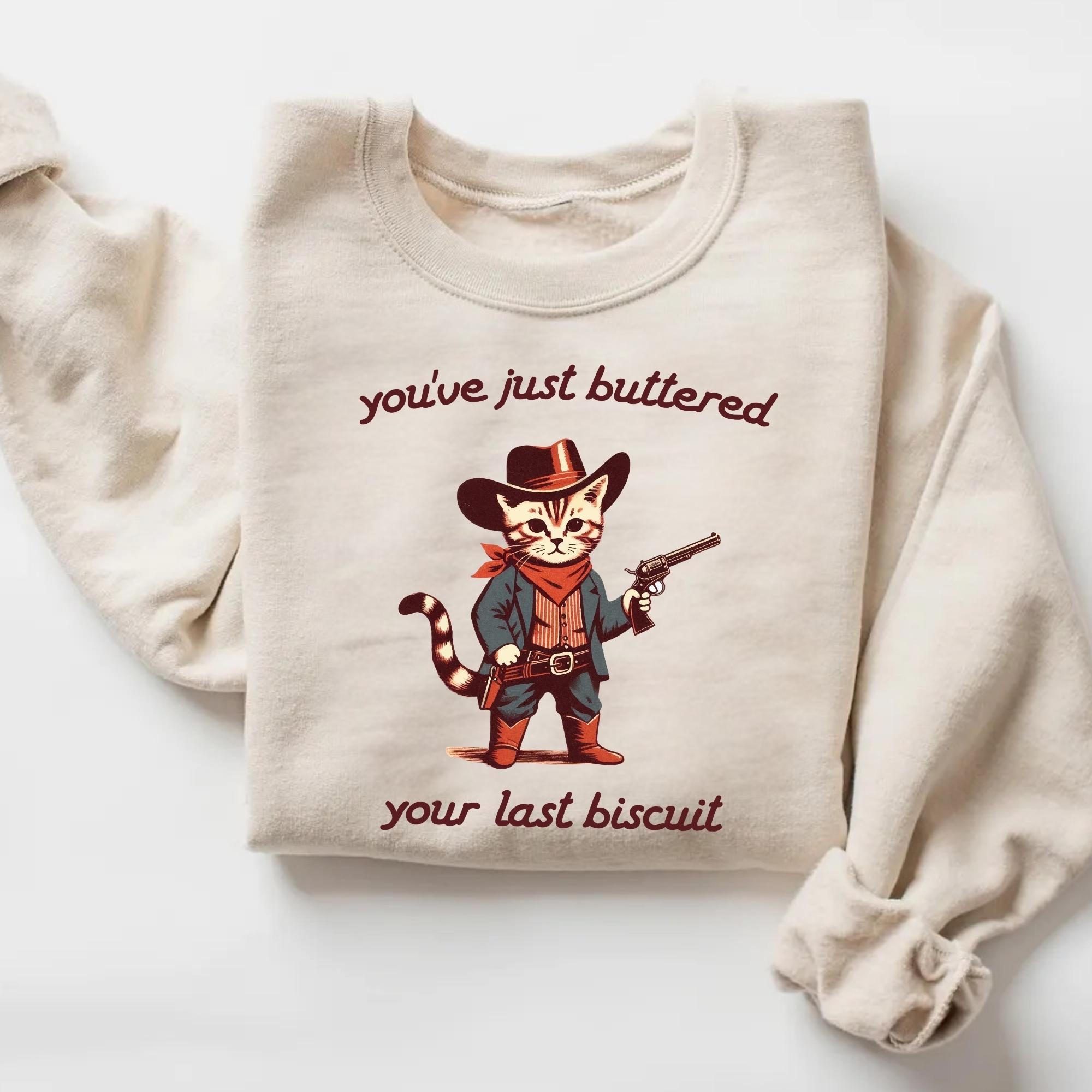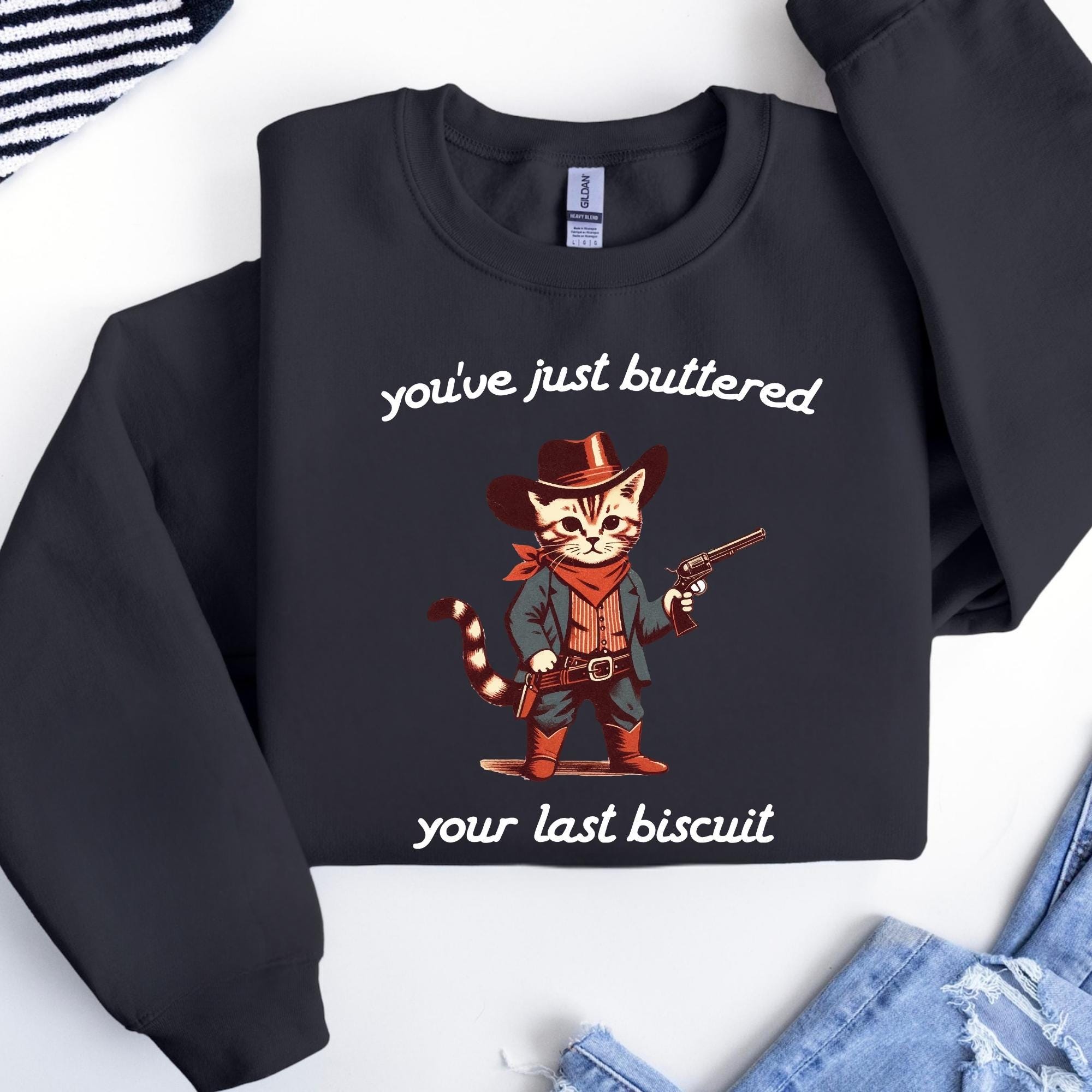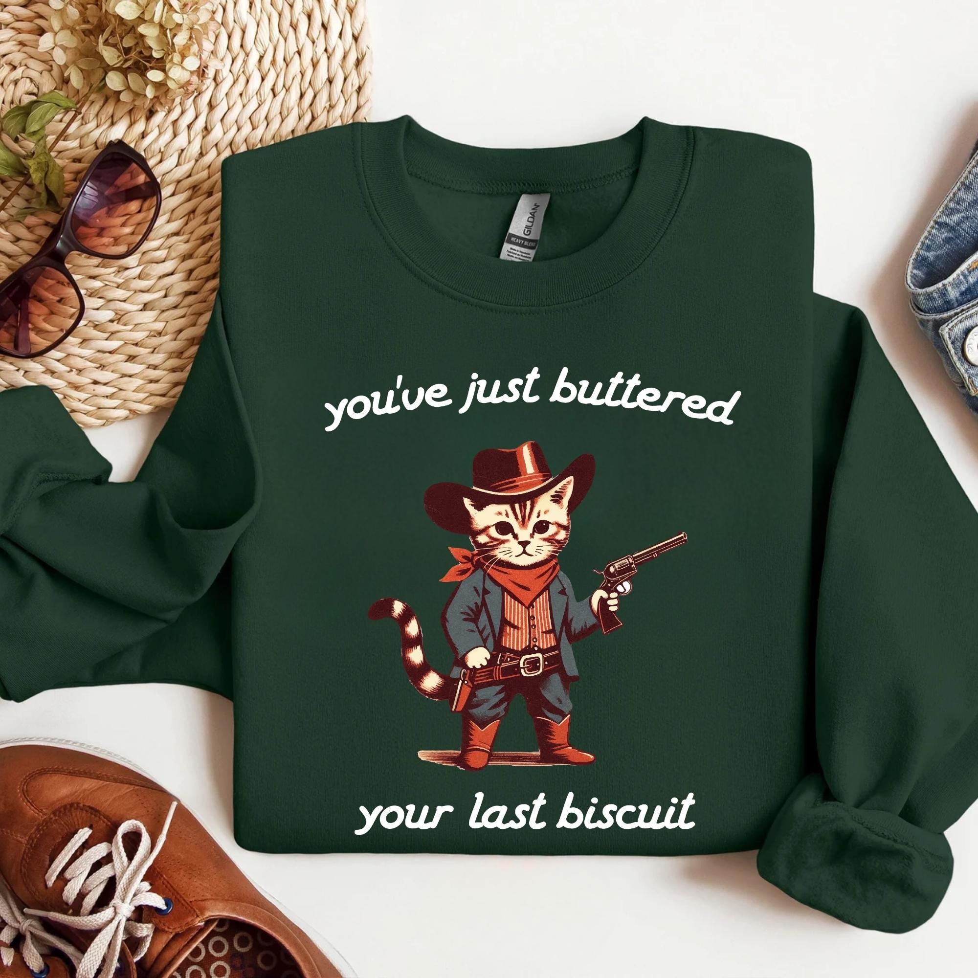 You've Just Buttered Your Last Biscuit, Funny Shirts, Sarcastic Shirt, Meowdy Partner Shirt, Funny Womens Shirt, Funny Cowboy Cat Shirt